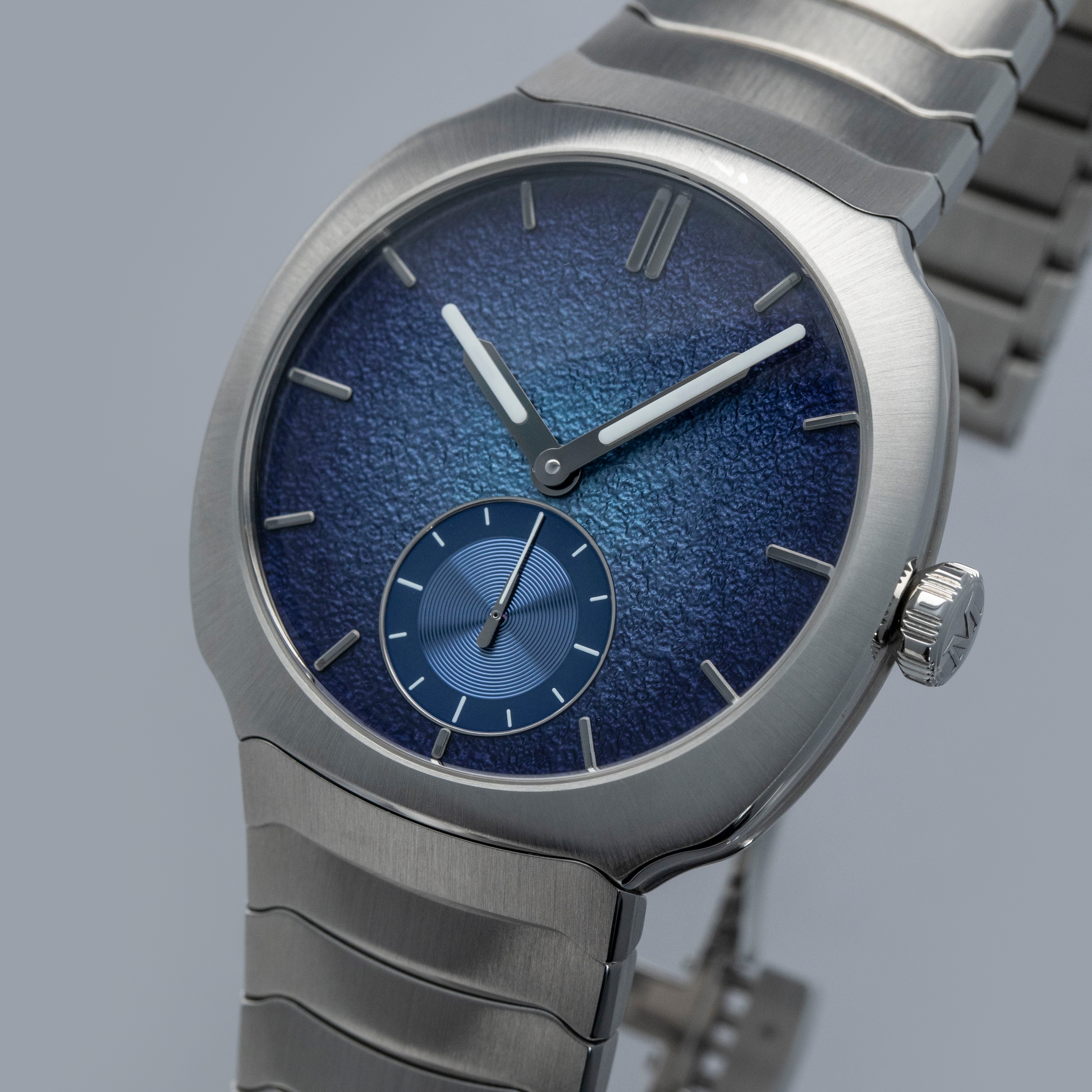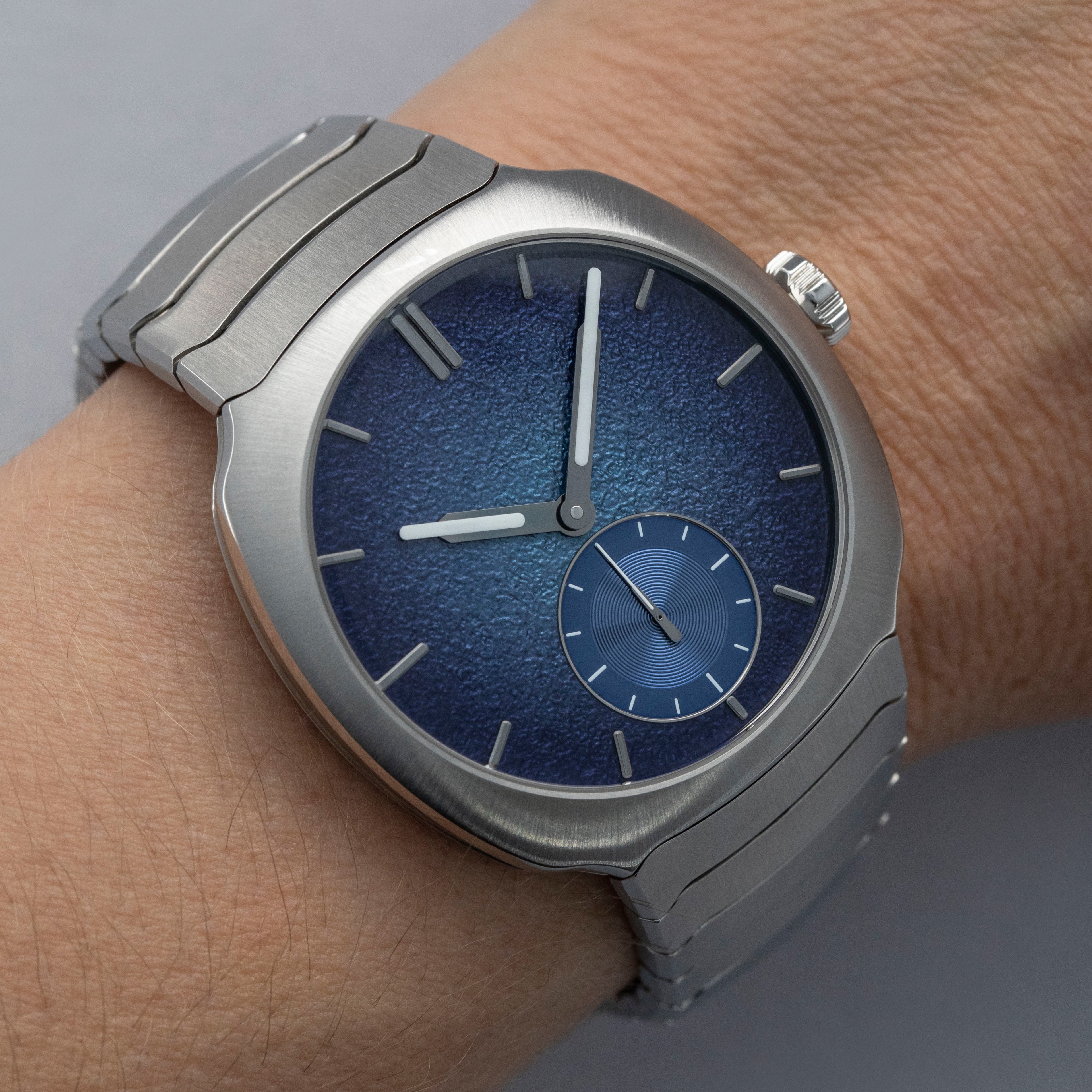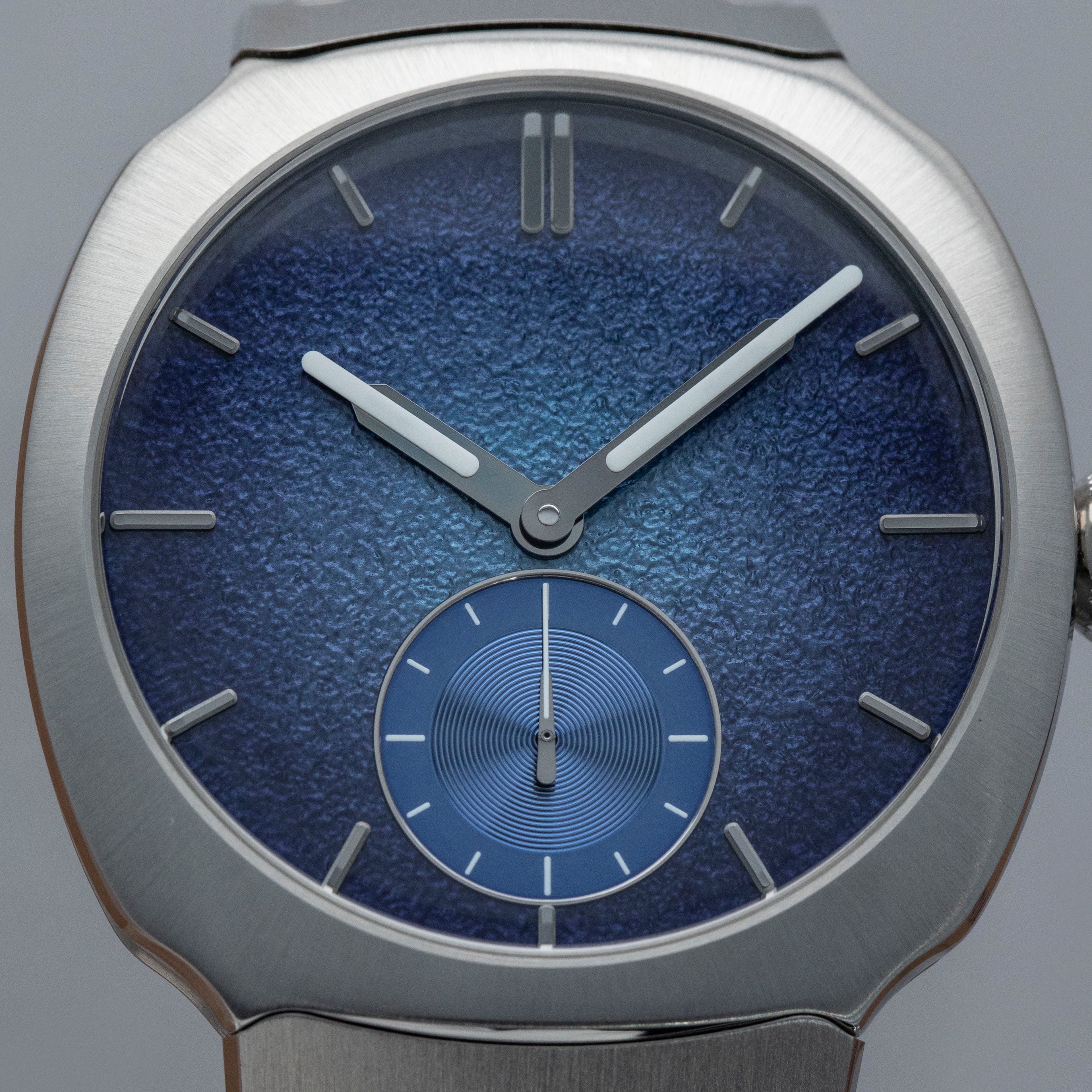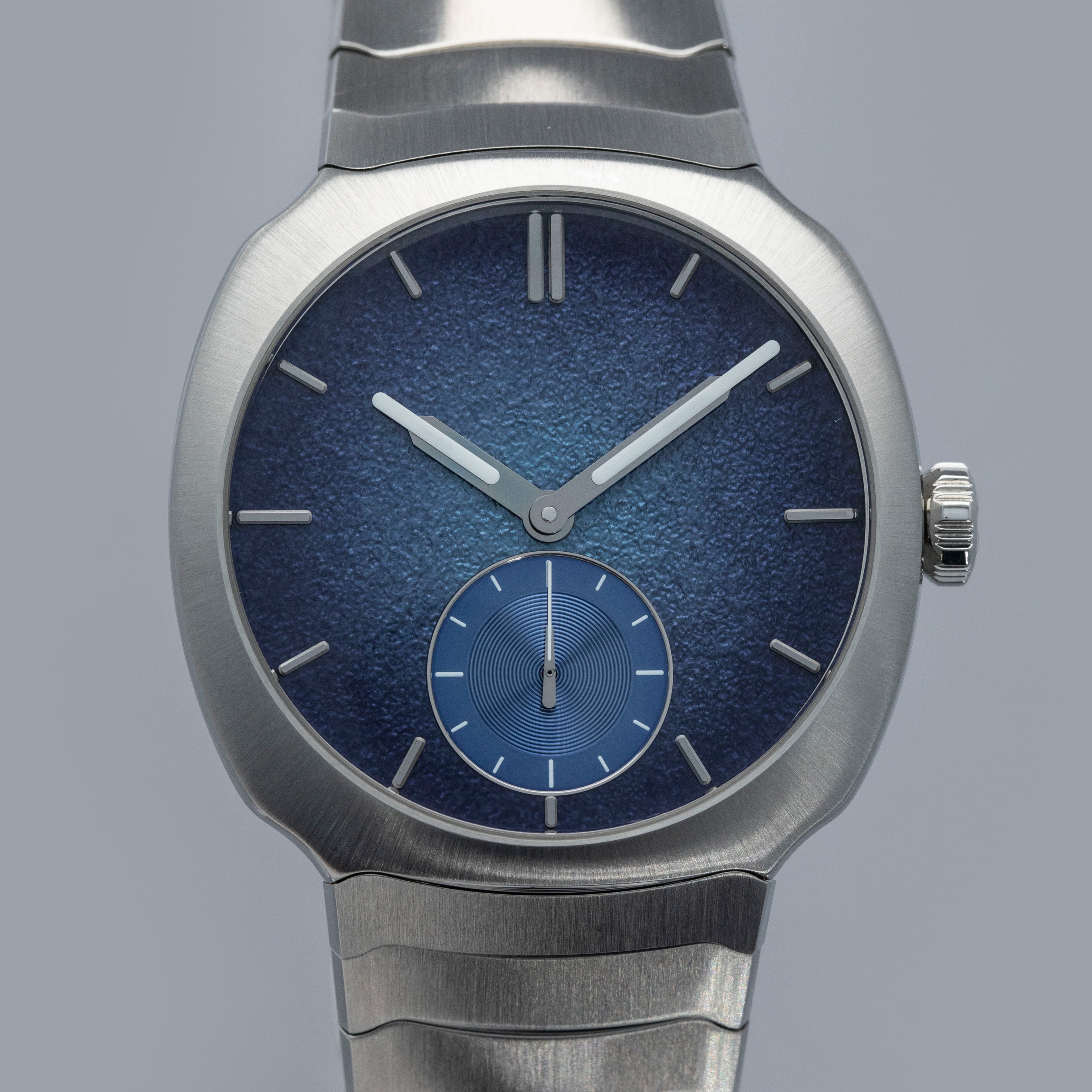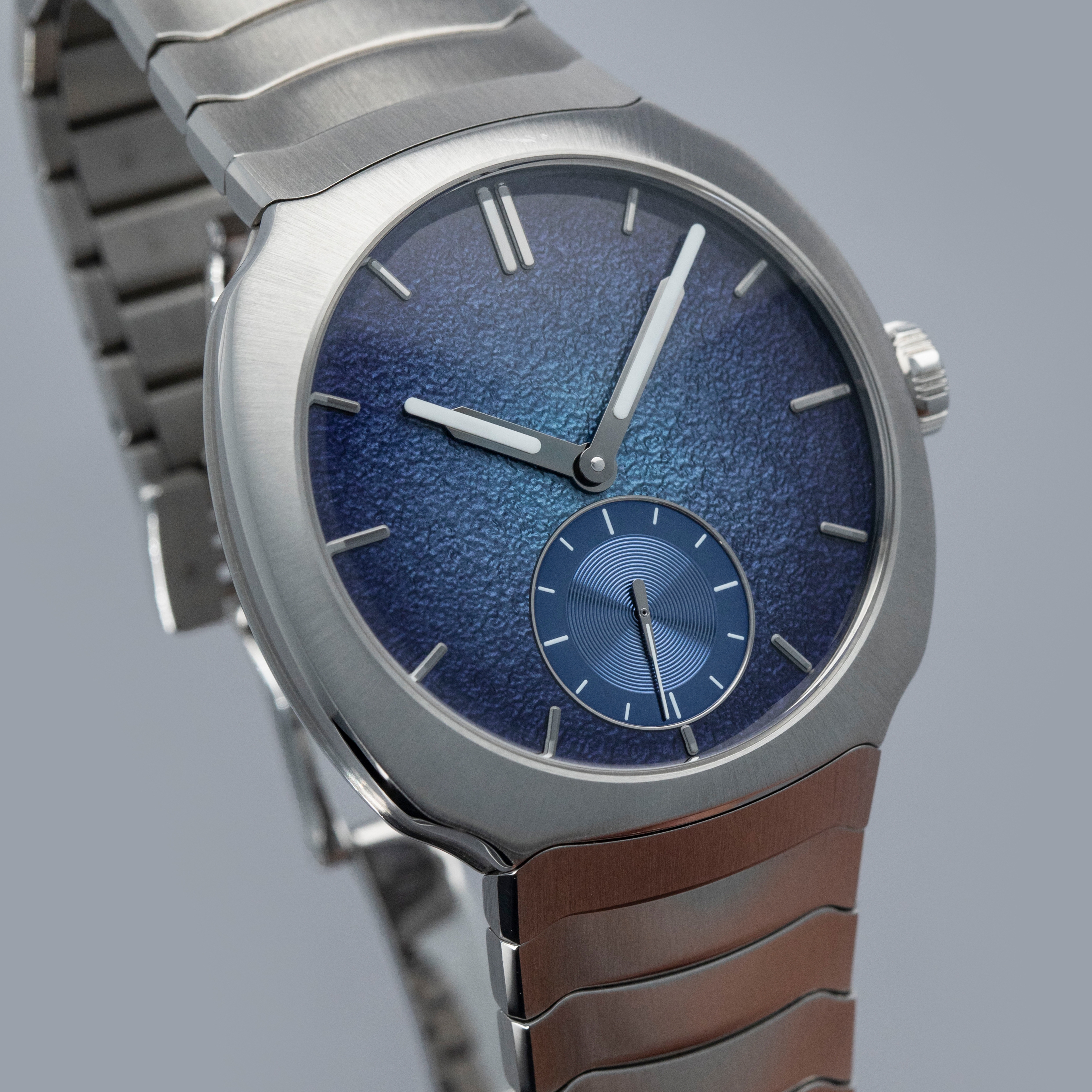 Speaking to Moser's speciality of creating incredible watch dials, the Streamliner Small Seconds features a stunning blue Grand Feu fumé enamel display with a hammered texture finish that is utterly beautiful.