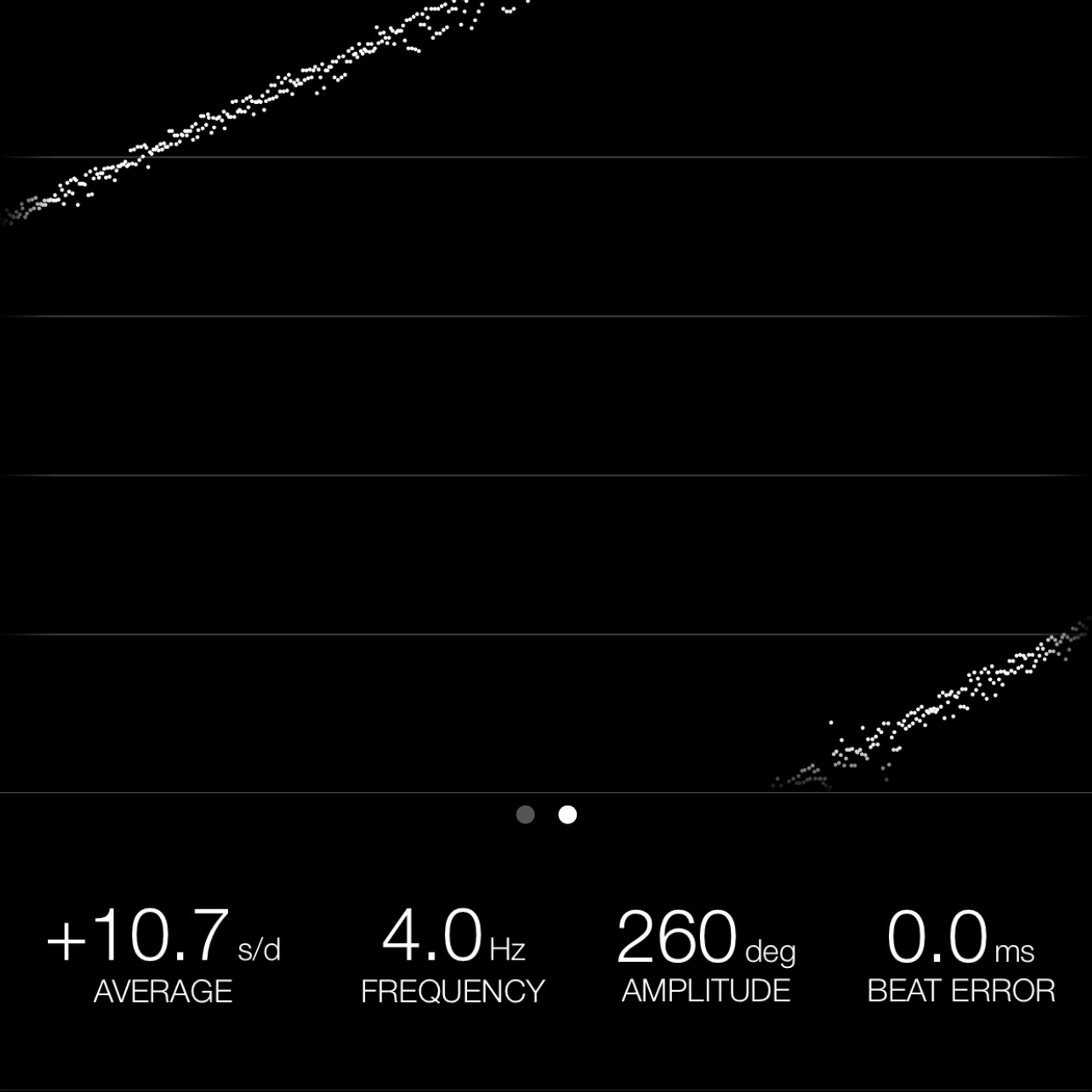 This reading was taken (crown down) with a ONEOF Accuracy Boutique Edition timing machine at time of cataloging. It is provided as a courtesy only, and shall not be construed as a warranty or guarantee of any kind. Please refer to our terms and conditions of sale for more information.