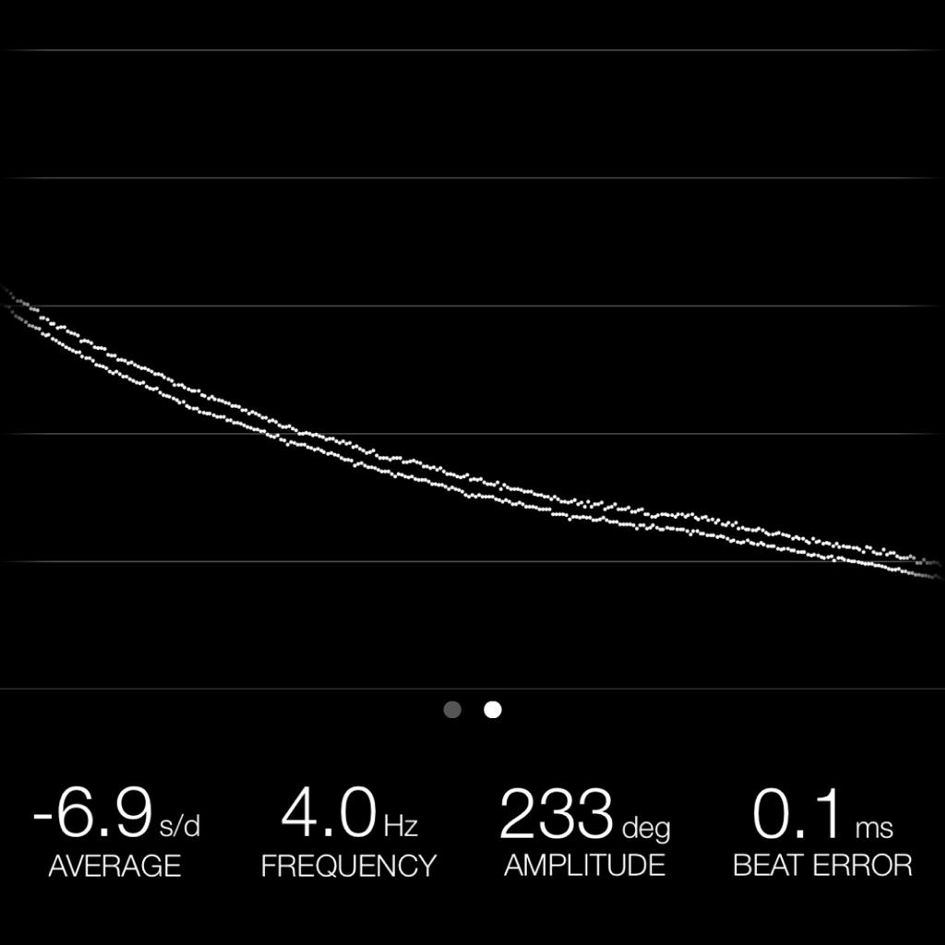 This reading was taken (crown down) with a ONEOF Accuracy Boutique Edition timing machine at time of cataloging. It is provided as a courtesy only, and shall not be construed as a warranty or guarantee of any kind. Please refer to our terms and conditions of sale for more information.