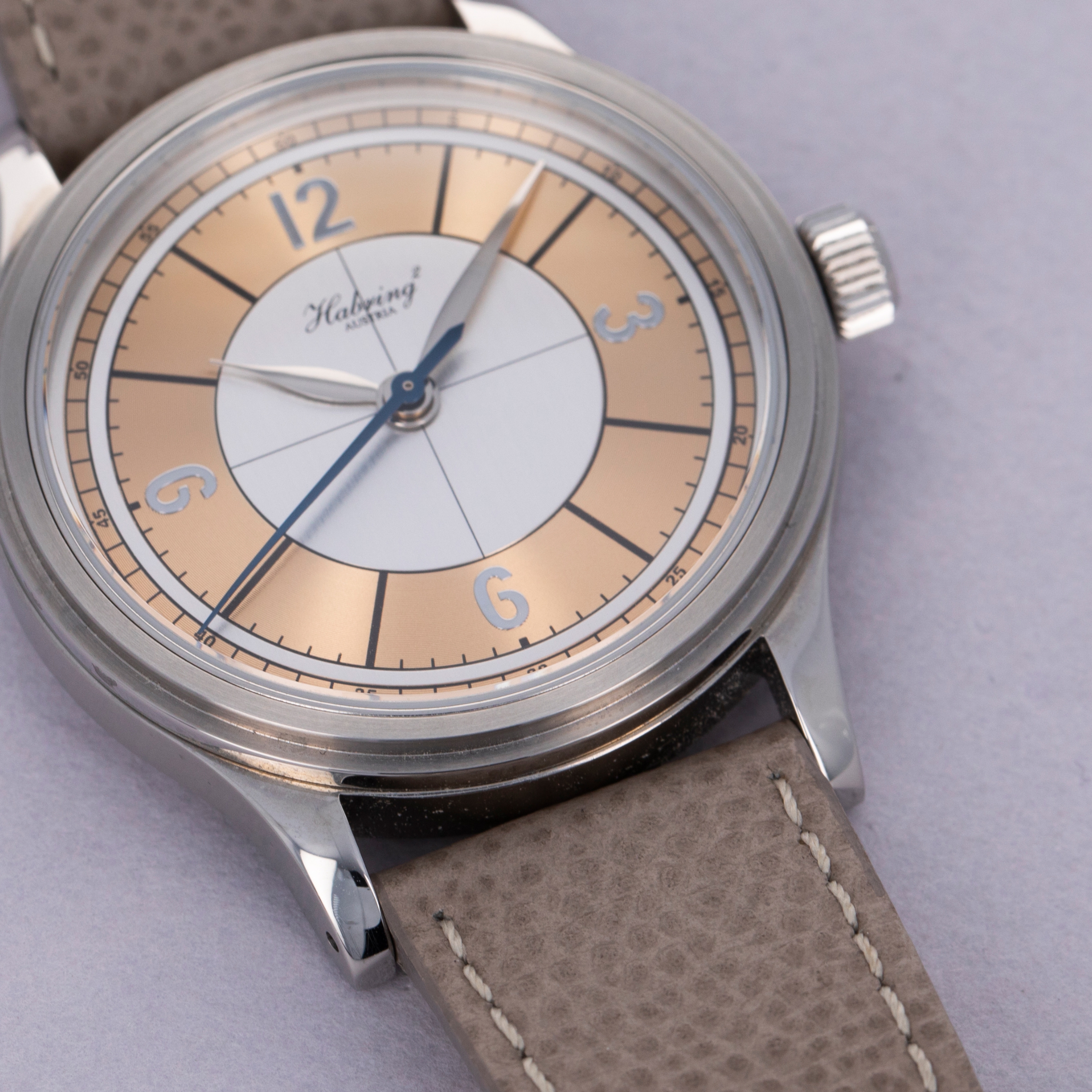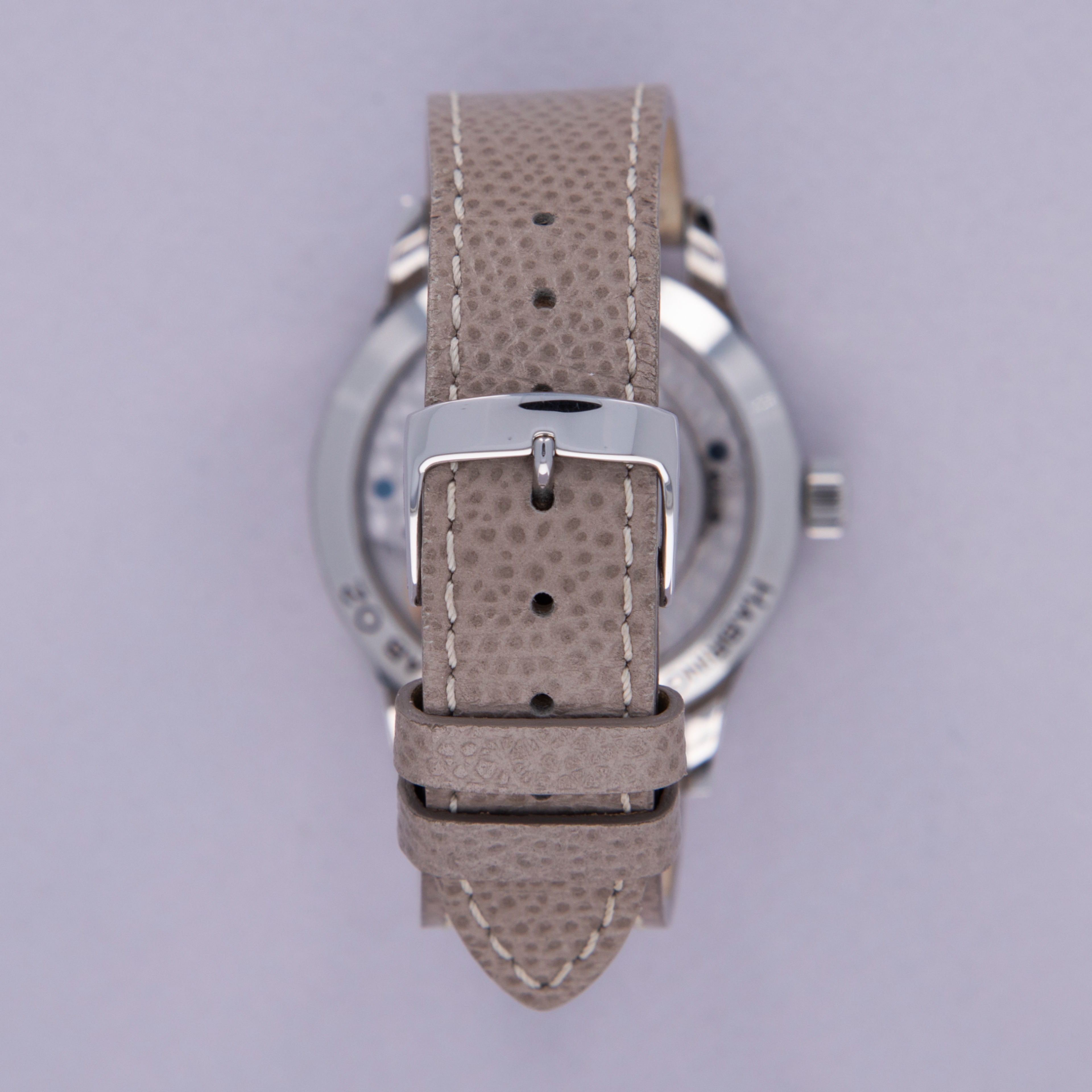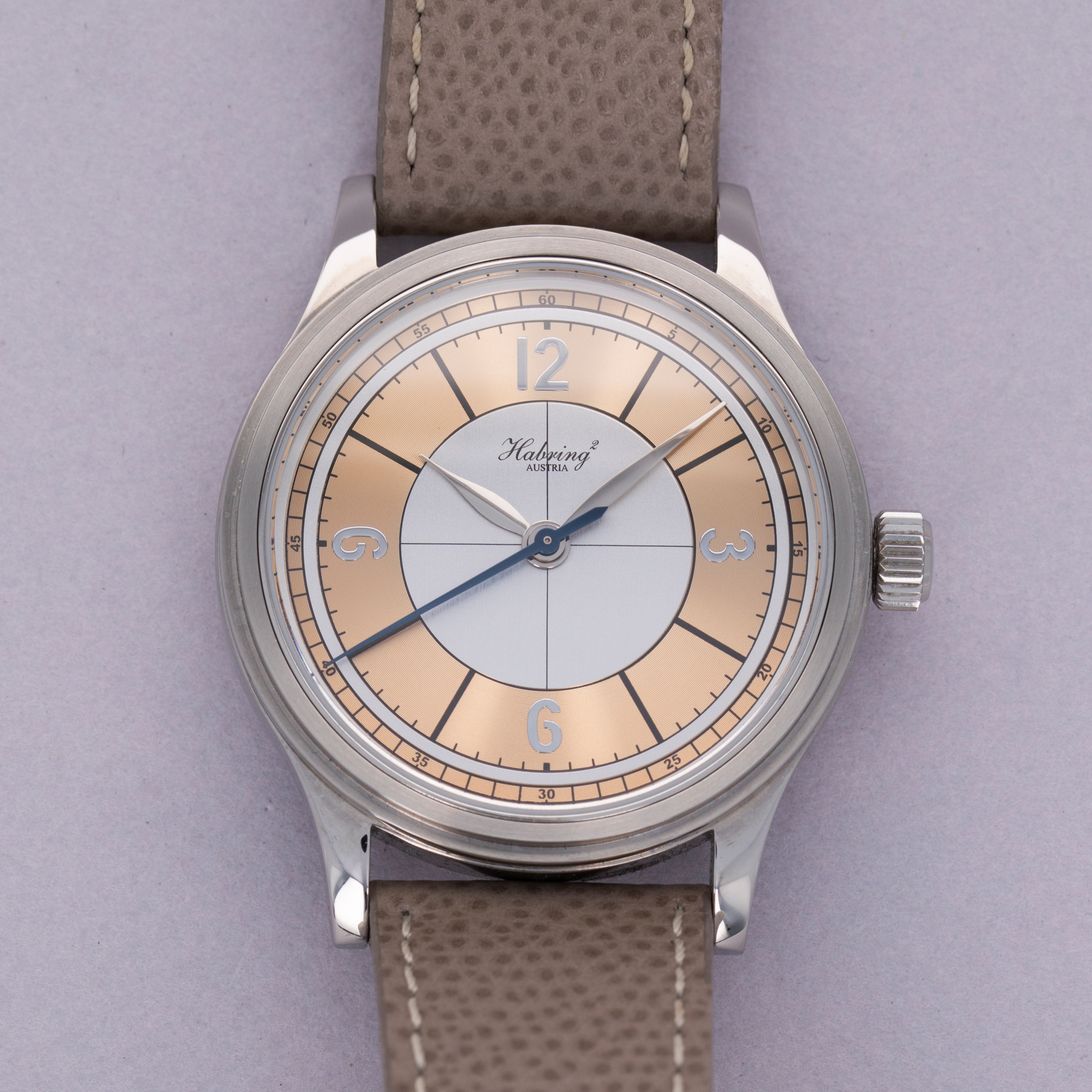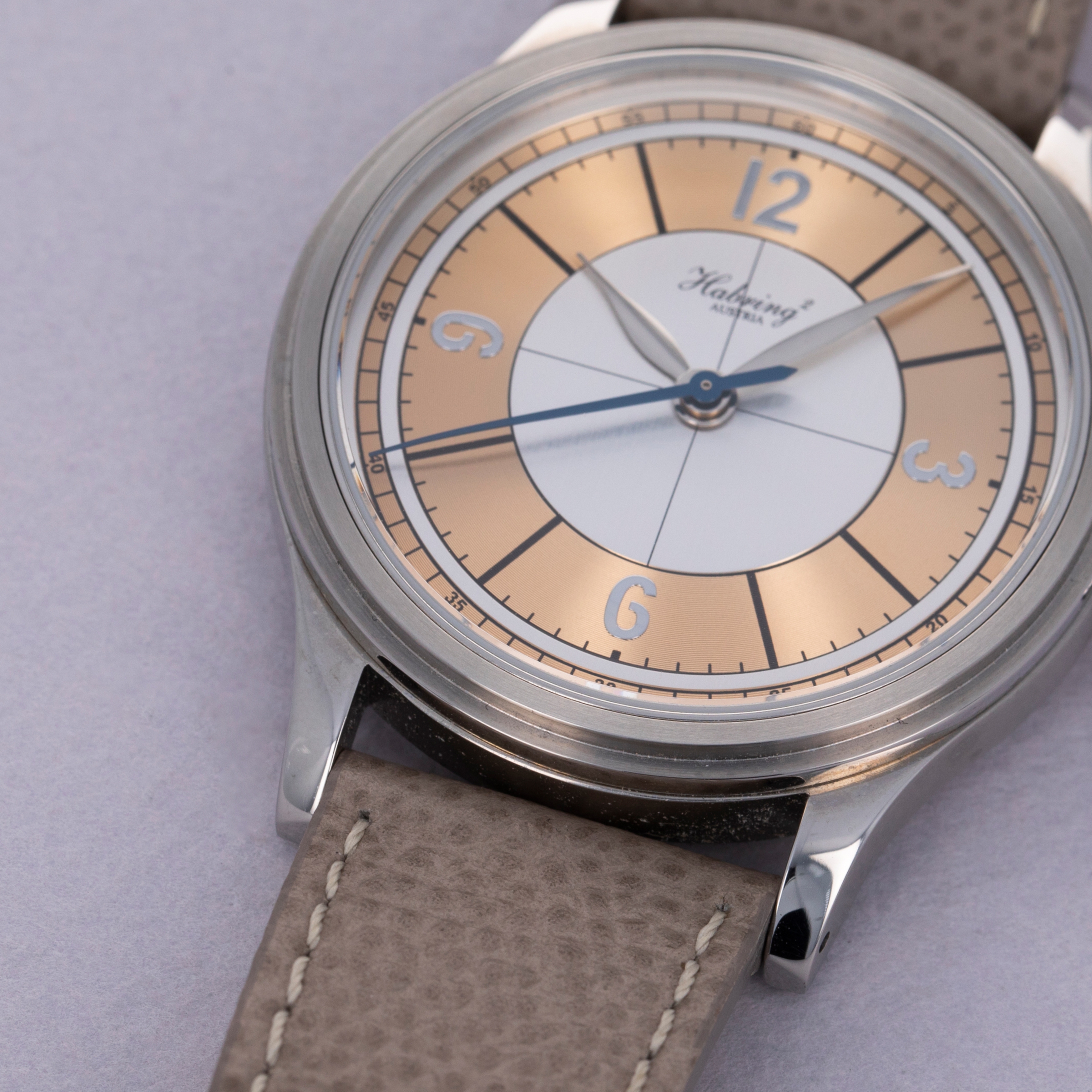 The world of independent watchmaking is particularly diverse, but two of the industry's most prominent names have been Habring2 and Massena Lab, founded by husband and wife duo Richard and Maria Kristina Habring and William Massena respectively. In 2020, these three independent powerhouses decided to collaborate for the second time and launch the Erwin LAB02 that we have here. Inspired by 1930s watchmaking like the Erwin LAB01, the LAB02 features a sector dial that is now a two-tone display with a silver center and a champagne chapter ring that houses its raised Arabic numerals. Continuing with the LAB01’s 1930’s dress watch-inspired aesthetic, the LAB02 features the same 38.5mm case construction, but in a more traditional stainless steel than the LAB01’s bronze case. However, unchanged from the LAB01, the LAB02’s caseback still provides a stunning view of its manual-wind movement, the cal. A11MS. Featuring the ever-complicated deadbeat function, the LAB02’s movement drives the second hand only once per second, giving the LAB02 the appearance of a quartz watch. A particularly complicated mechanism, the LAB02 had to be kept as a limited release like its predecessor, and so only 50 examples were produced.