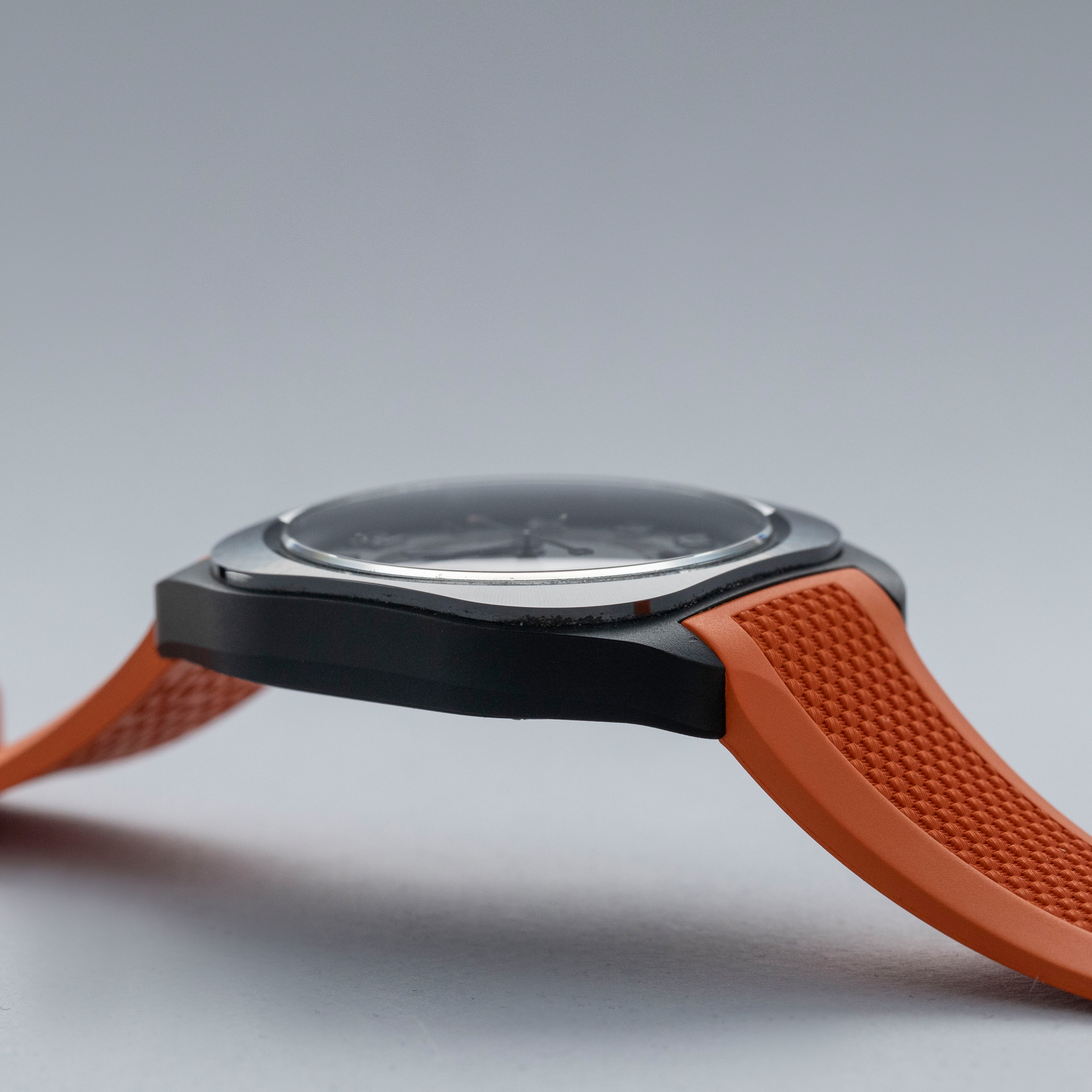 While they might be best-known for their leather goods, Hermes have made large strides into the world of watchmaking thanks to watches like this, the H08. A fresh take on watch design, the H08 juggles aesthetics and wearability in interesting and unique ways. With comfort at the forefront of its design process, the H08 Graphene features a 42mm slightly rectangular case that, in this instance, is made of graphene composite and ceramic to ensure that it is both; black in color and extremely light and strong on the wrist. Topped with a satin-brushed and polished ceramic bezel with mirror-polished chamfers, the H08’s aesthetic is surprisingly bright for a blacked-out watch. Featuring a black gold-coated dial and a color-matched date aperture at half-past-four, the H08’s monochromatic aesthetic proves that Hermes have their eyes on the prize with regards to paying attention to the details that watch collectors love.