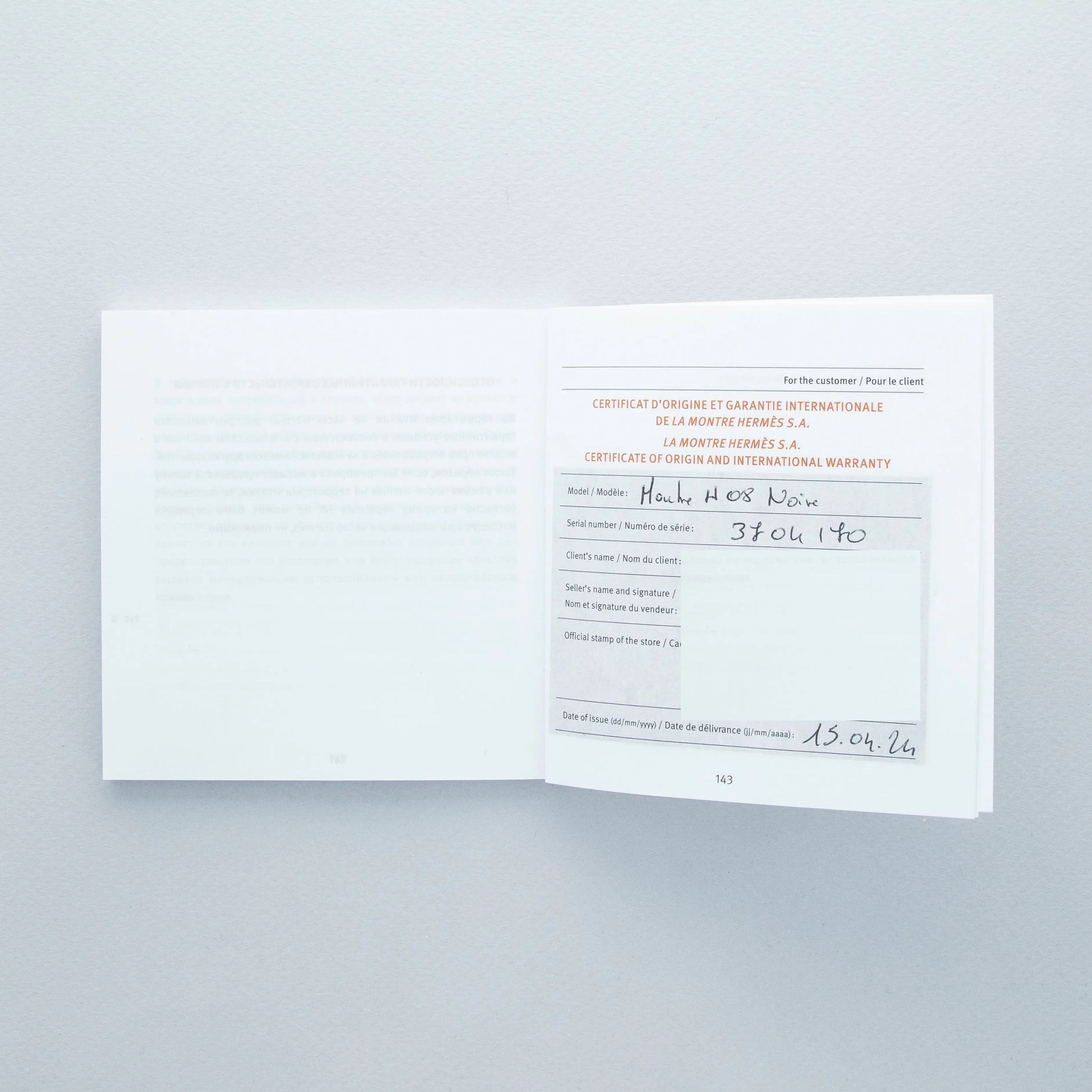 Fitted upon its stunning monochromatic black dial, the H08's Arabic hour markers stand out thanks to their unique design, a creation of Hermès' own in-house design team.