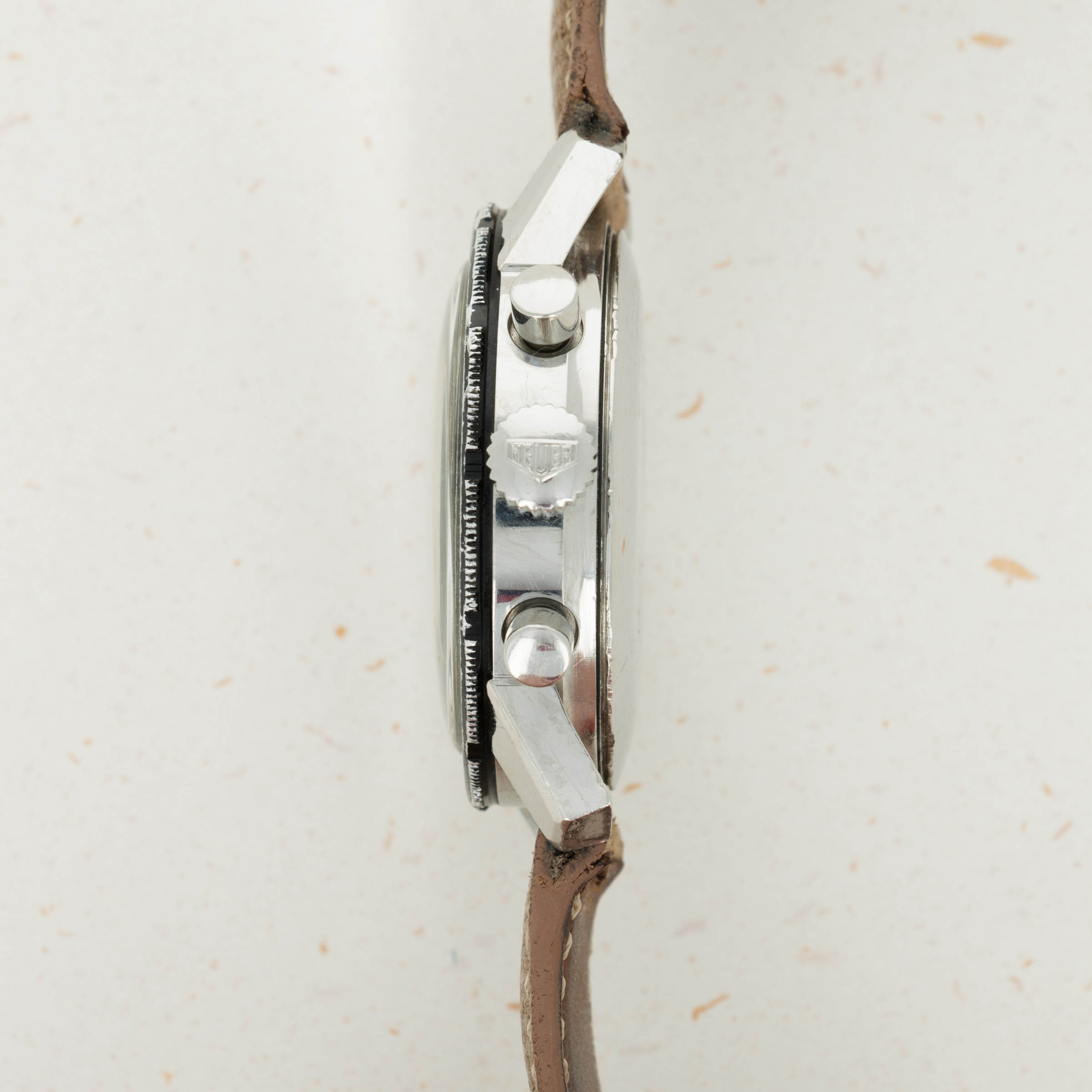 Launched in 1962 as their first wrist-mounted chronograph with a turning bezel, the Heuer Autavia is one of the most iconic watches in automotive history. Named after a dash counter that Heuer offered for cars, boats and planes - the word Autavia is created by combining “AUTomobile” and “AVIAtion”. With its iconic panda dial, luminescent hour markers, 100m water resistance, and robust case design, the Autavia was truly a versatile watch that succeeded in fulfilling Heuer’s simple ethos of being a legible chronograph. Moreover, thanks to its aforementioned features, the Autavia could be used by pilots just as well as divers and drivers alike. Due to its commercial success and immense popularity in the early 60s, Heuer released the 2nd generation of the Autavia, which they did in 1968 with the ref. 2446, as pictured here. This gave the Autavia a revamped look in the form of squared lugs and a larger bezel. Kept in Heuer’s catalogue until 1986, the Autavia was a hugely successful watch that truly was one of the early champions in the chronograph arena.