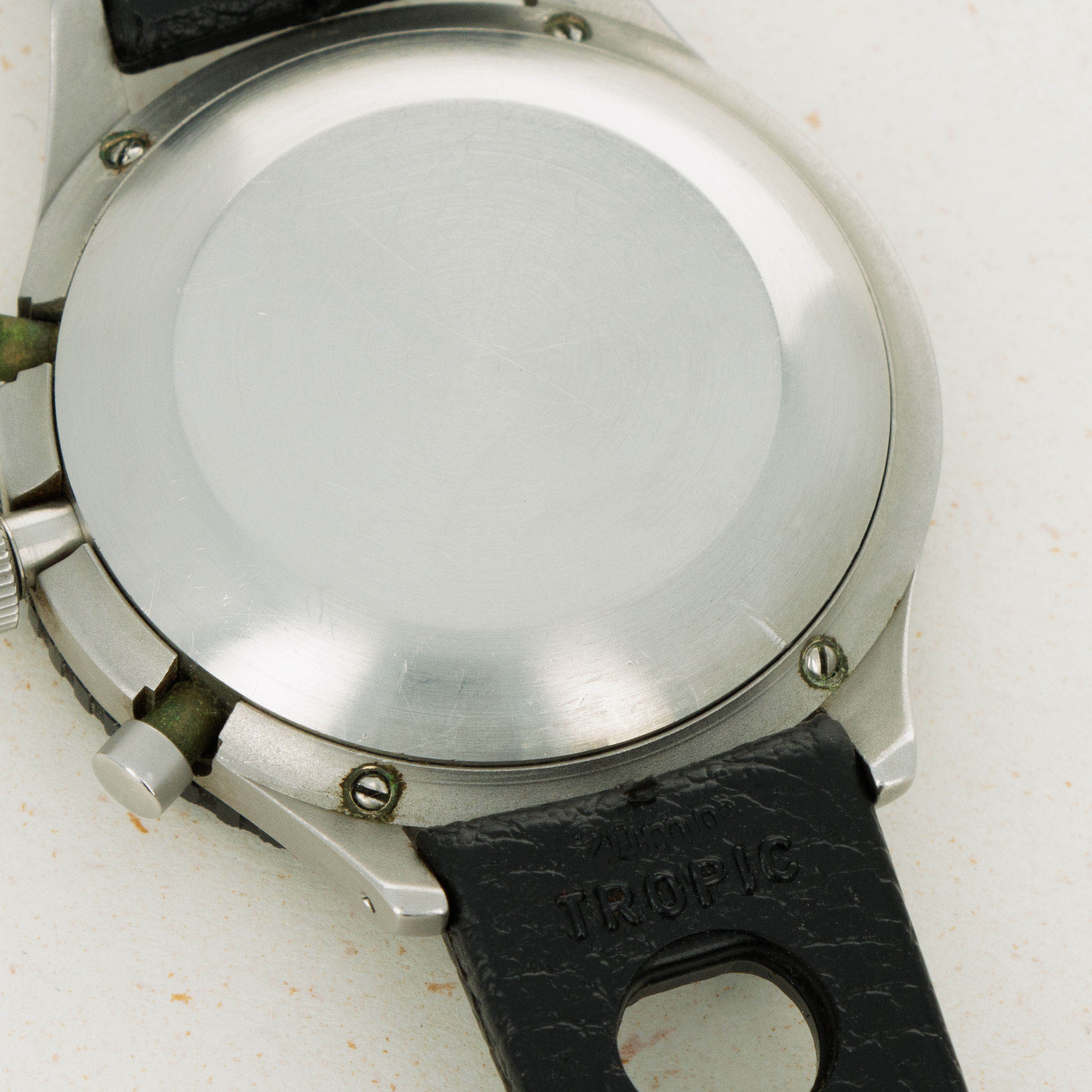 Boasting an understated black dial, the Bundeswehr's bi-compax chronograph dial was famed for its simplicity, with large luminous Arabic hour markers ensuring maximum legibility alongside its equally large and luminous hands.
