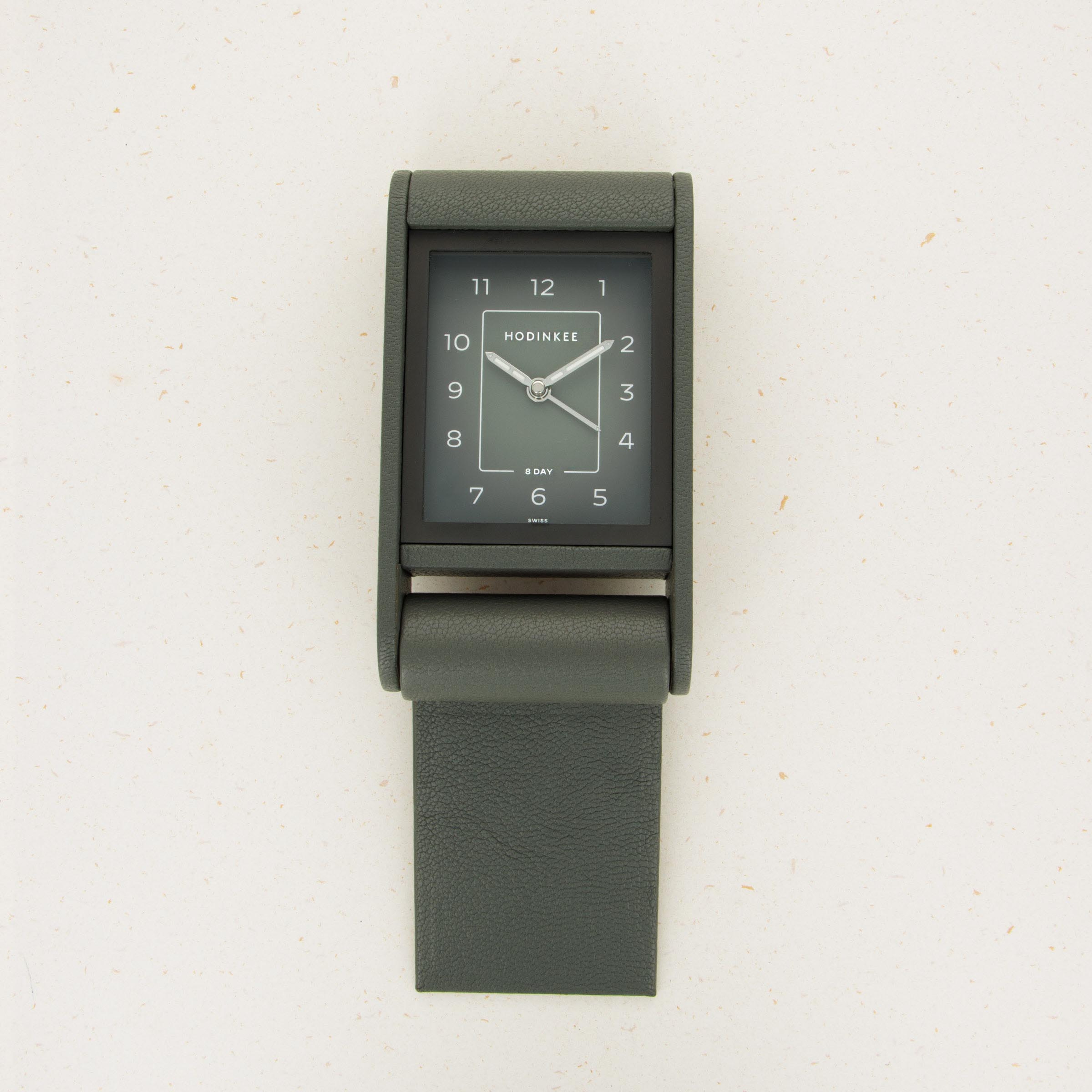 No, your eyes don’t deceive you. We were just as surprised to see this land on our desk as you are to be reading this description – it’s not every day one of the rarest and most infamous product launches within the entire watchmaking industry finds themselves on the open market, yet here we are. Needing no introduction, but we’ll introduce it anyway, this is the Hodinkee Eight-Day Travel Clock, but you probably knew that already. Debuting in 2020 as an intended limited edition run of 96 pieces, the Hodinkee Eight-Day Travel Clock received some rather… let’s say; “constructive criticism”. Rarer than hen's teeth, only one or two of these legendary clocks has surfaced since its announcement, leading many to speculate if it was even produced, or if the entire production run was destroyed or abandoned in a warehouse in Long Island City. Featuring a goat leather-wrapped exterior, a new-old-stock Pontifa cal. 7320 eight-day movement and a large grey dial to match its Hodinkee grey exterior, this travel clock is entirely monochromatic and luxuriously constructed. Boasting a typeface on the dial that Hodinkee had created specifically for the Eight-Day Travel Clock called “Decimal,” the travel clock pays homage to the vintage wristwatches produced during the same era as its new-old-stock Pontifa movement. Igniting some intense discourse at launch, this is one travel clock that is sure to be a genuine conversation starter for whoever gets to add it to their collection.