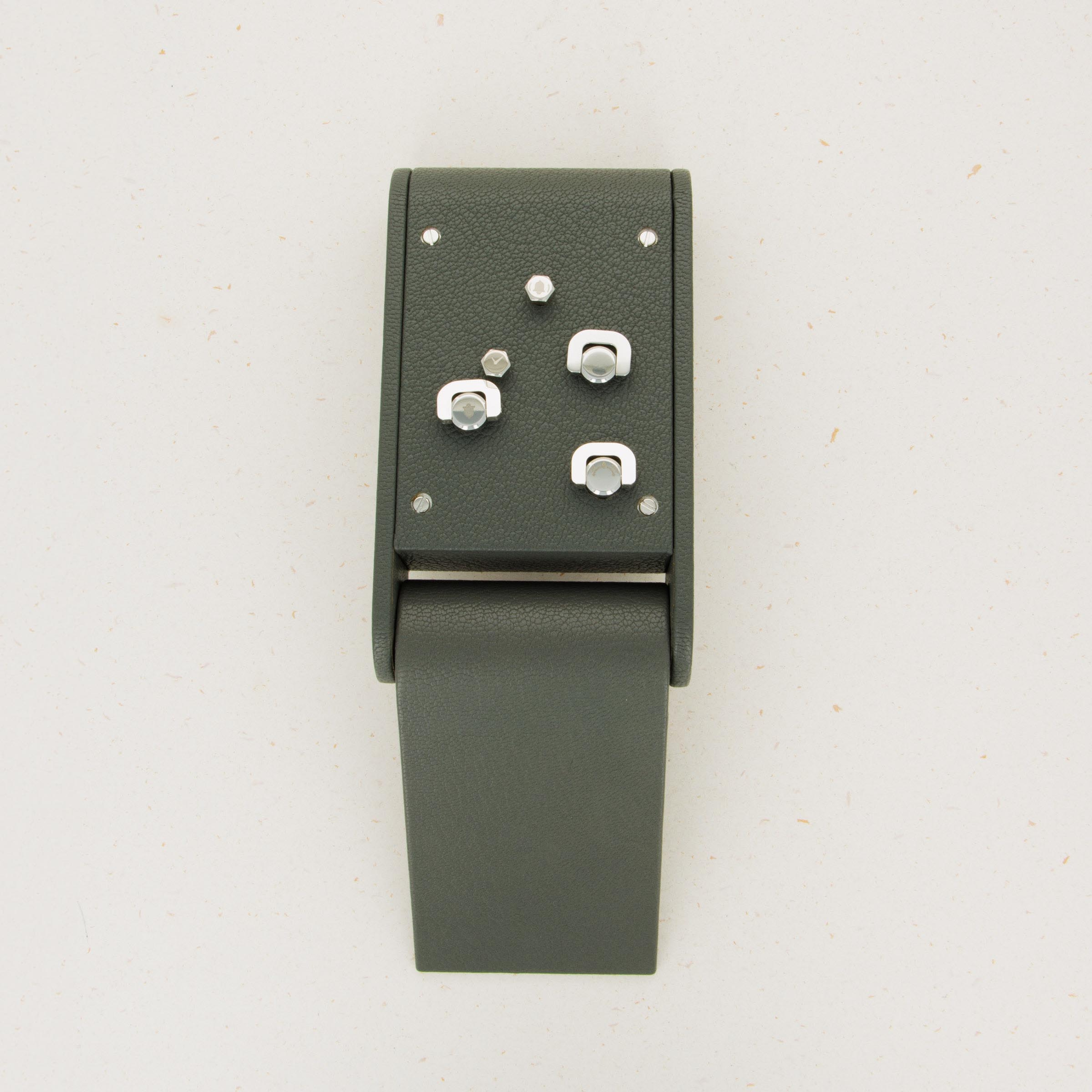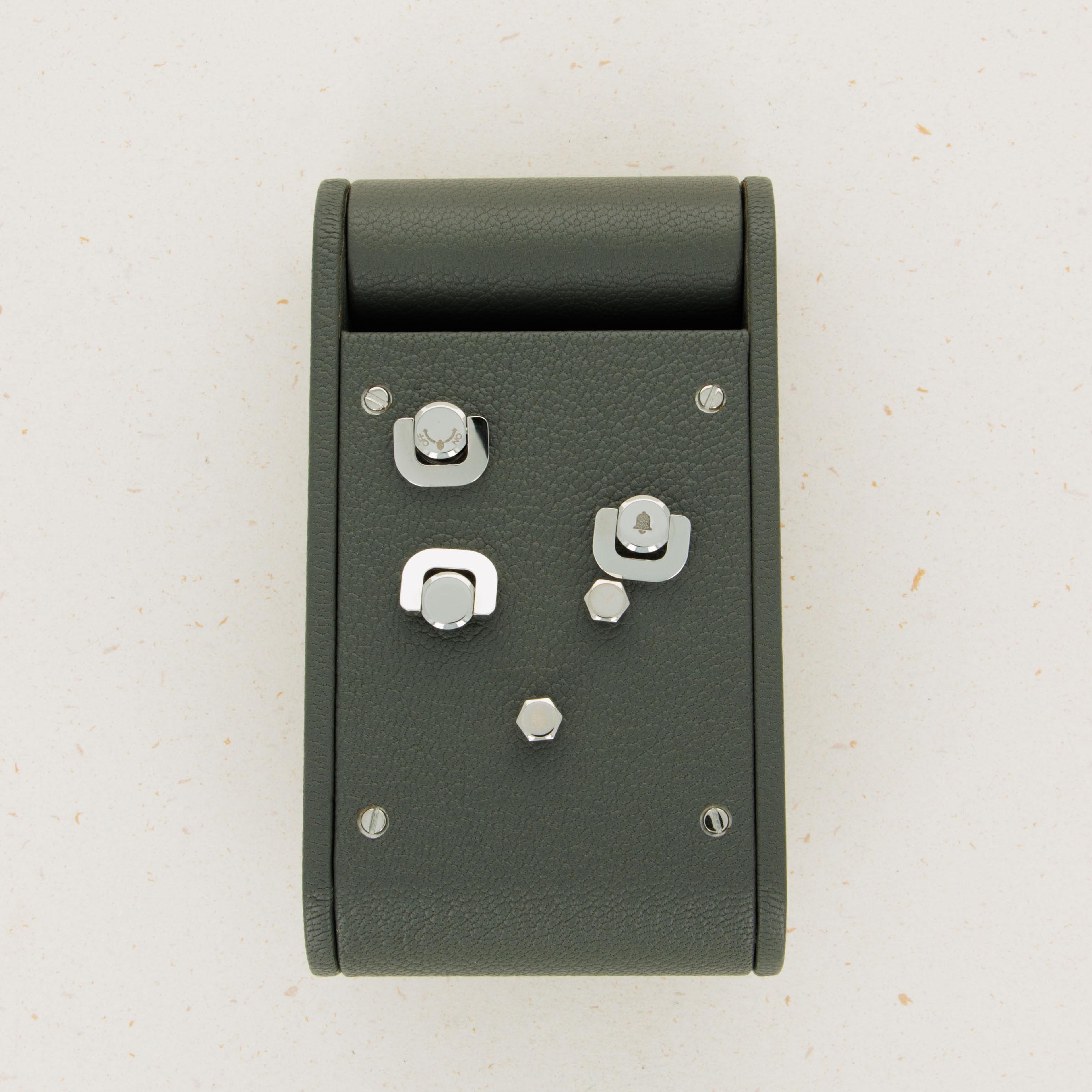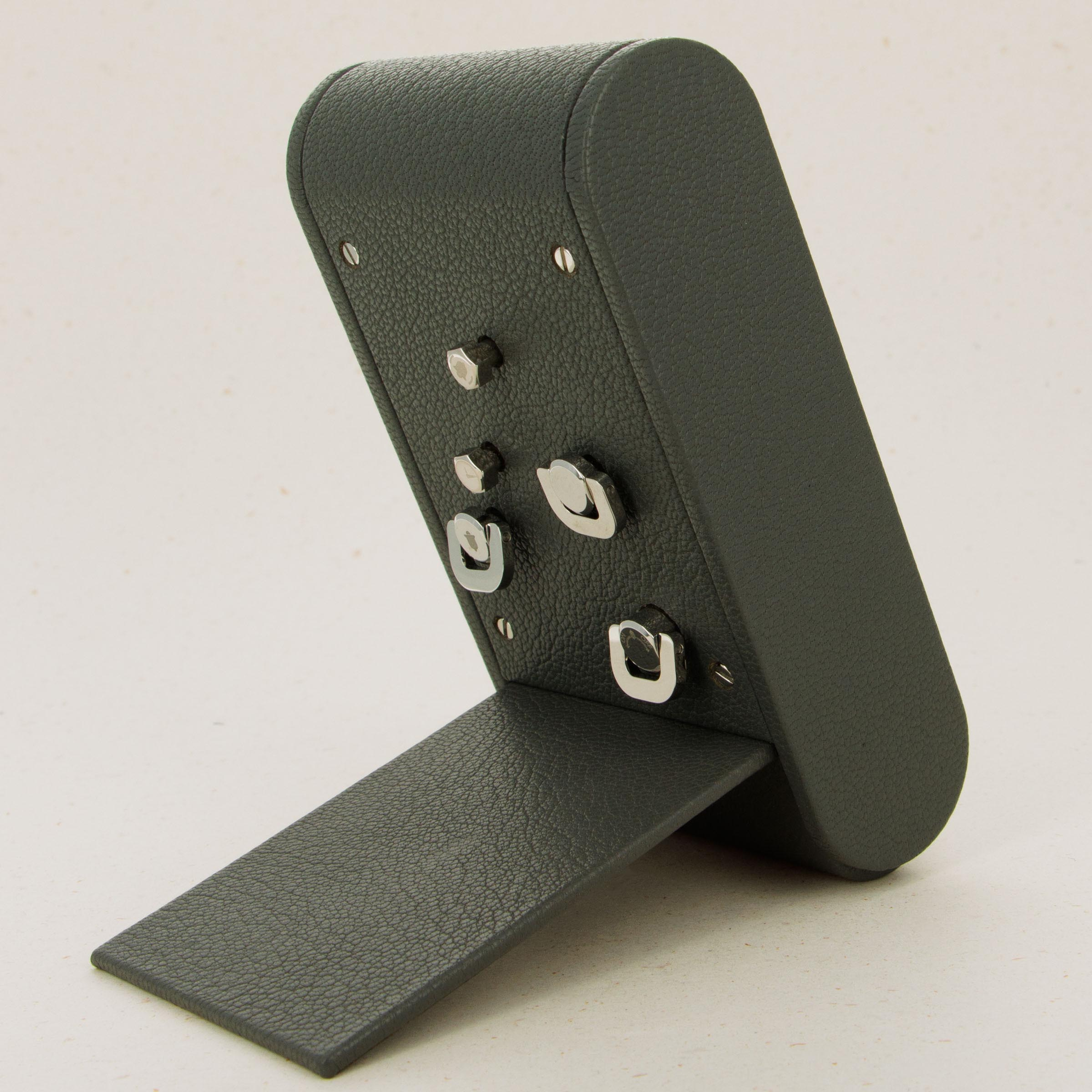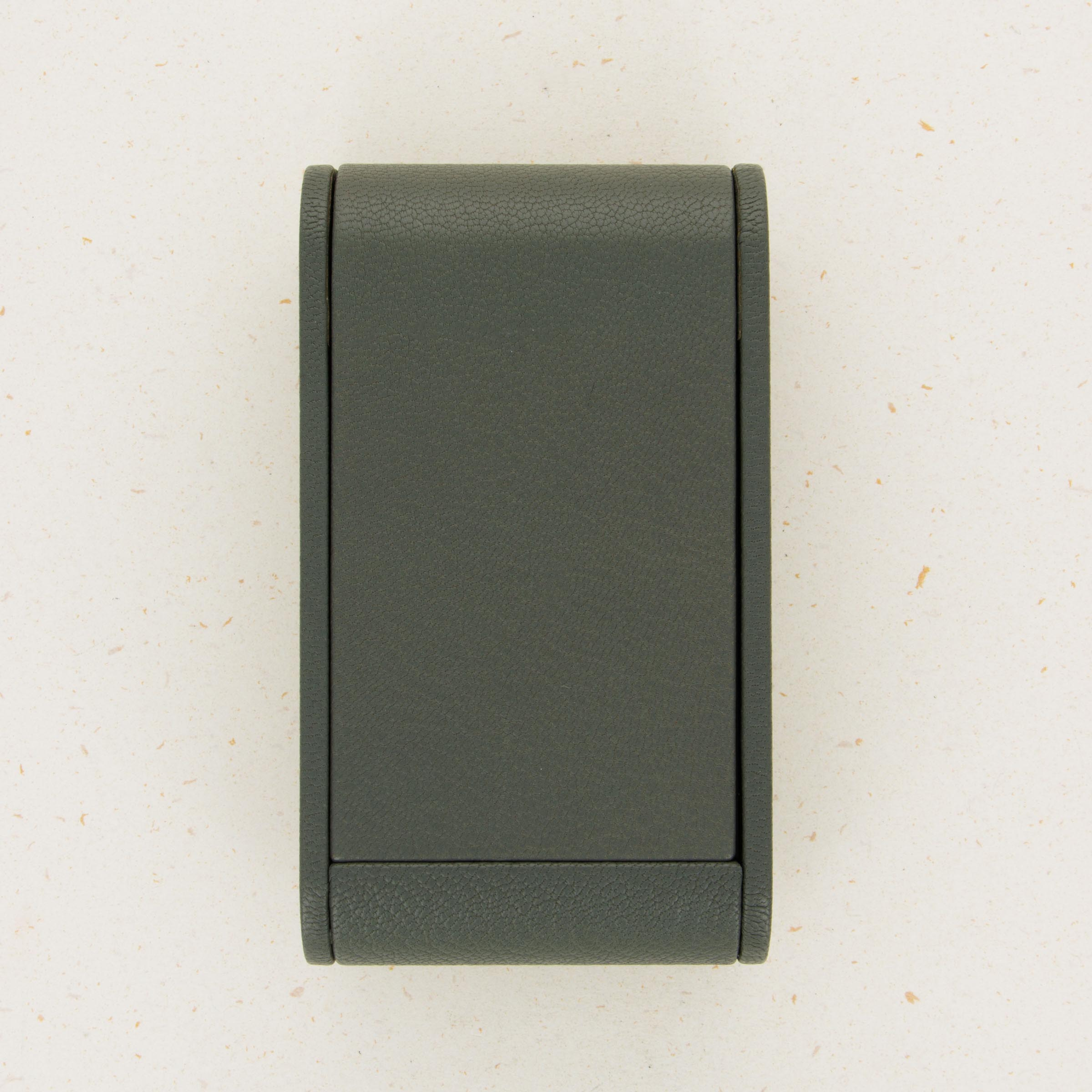 Featuring the "Decimal" font that was designed specifically for the Travel Clock, this timepiece recalls the aesthetics of the wristwatches that were popular when its Pontifa movement was created. Grey like its goat leather-wrapped construction, the Travel Clock's dial is elegantly executed with a subtle fade from its bright center to its dark peripheries.