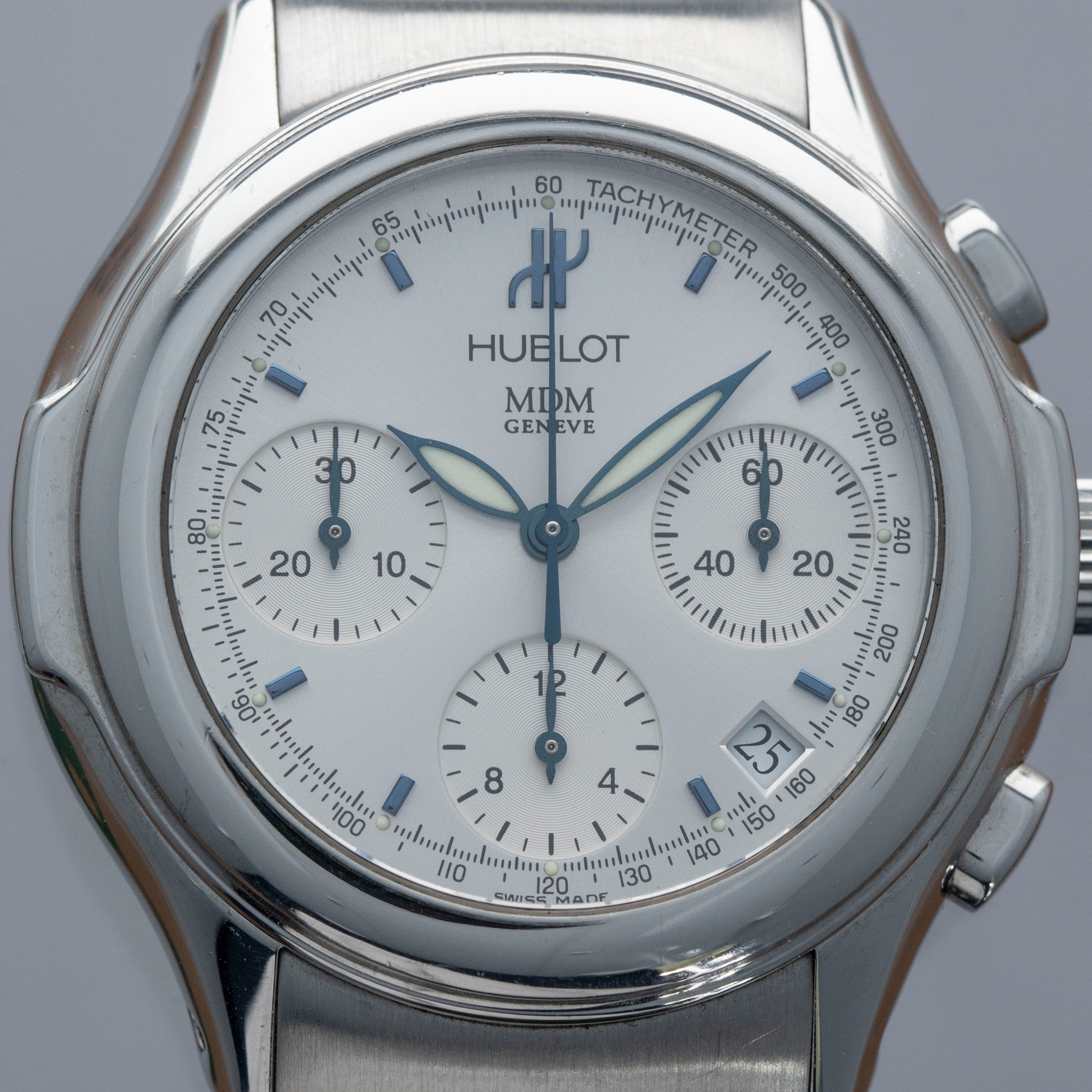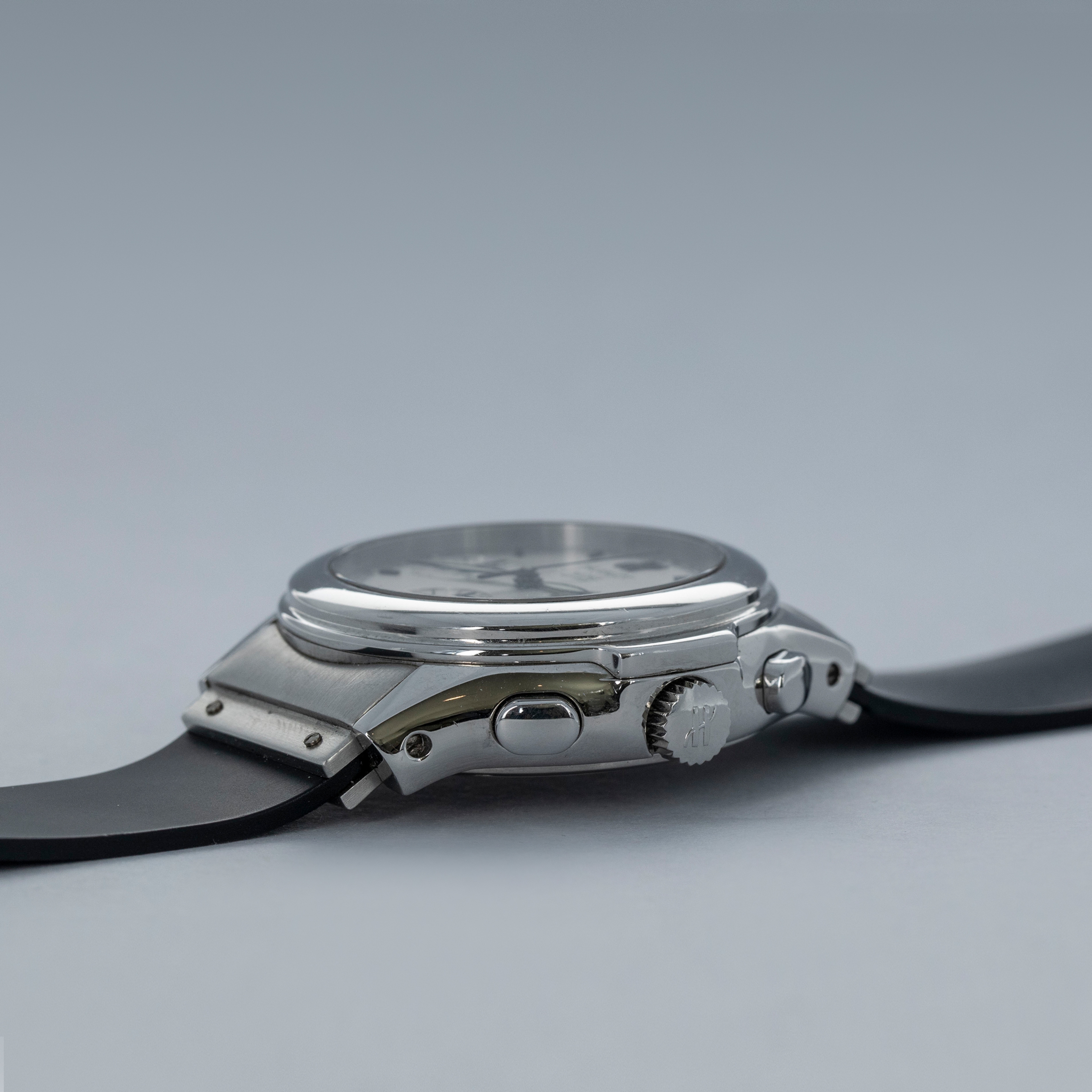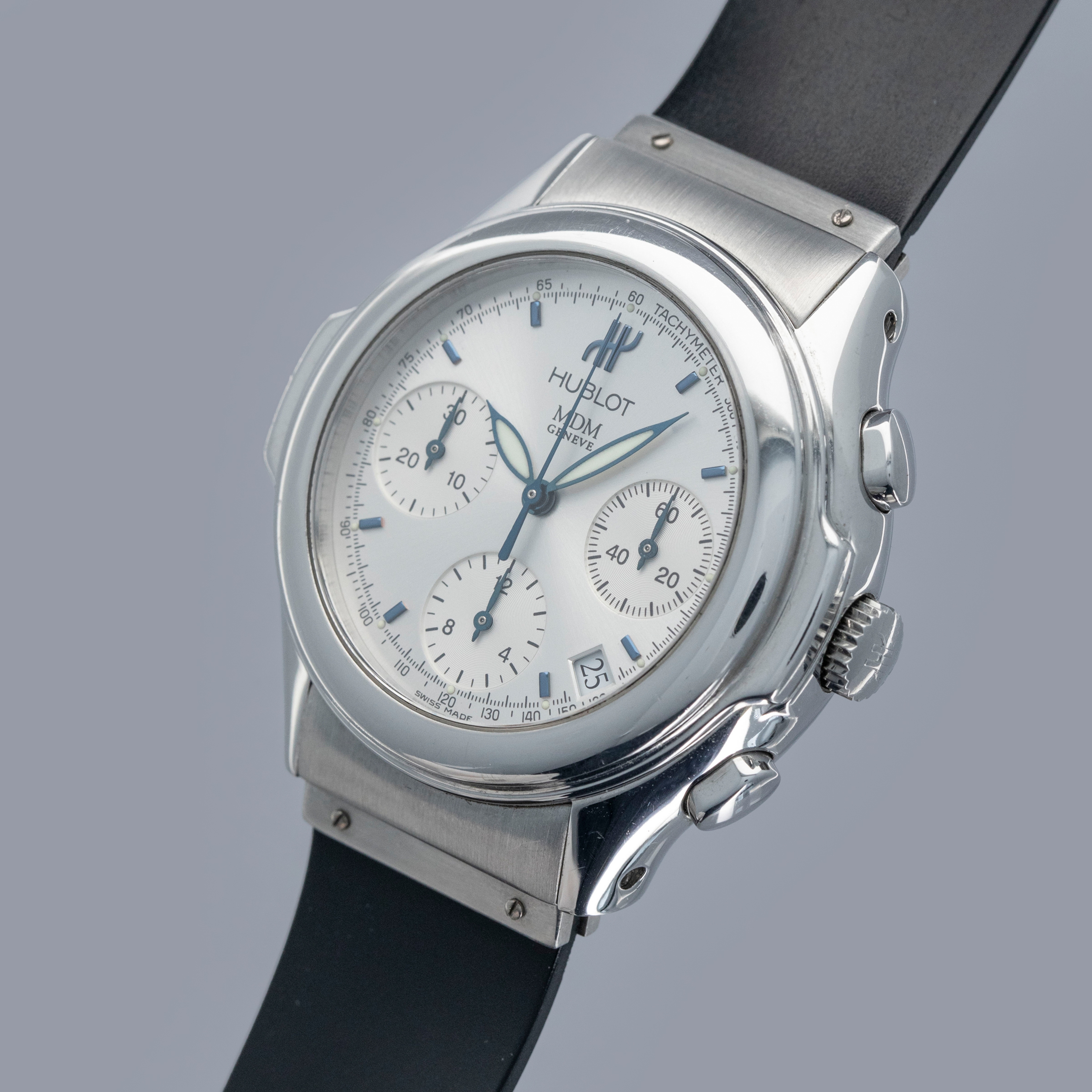 While not hammering home Hublot's case design like later watches would, the MDM Geneva Chronograph still offers just enough of the brand's details to make it clear that it is an early Hublot, with its case's ears and integrated rubber strap giving it the right amount of wrist presence.
