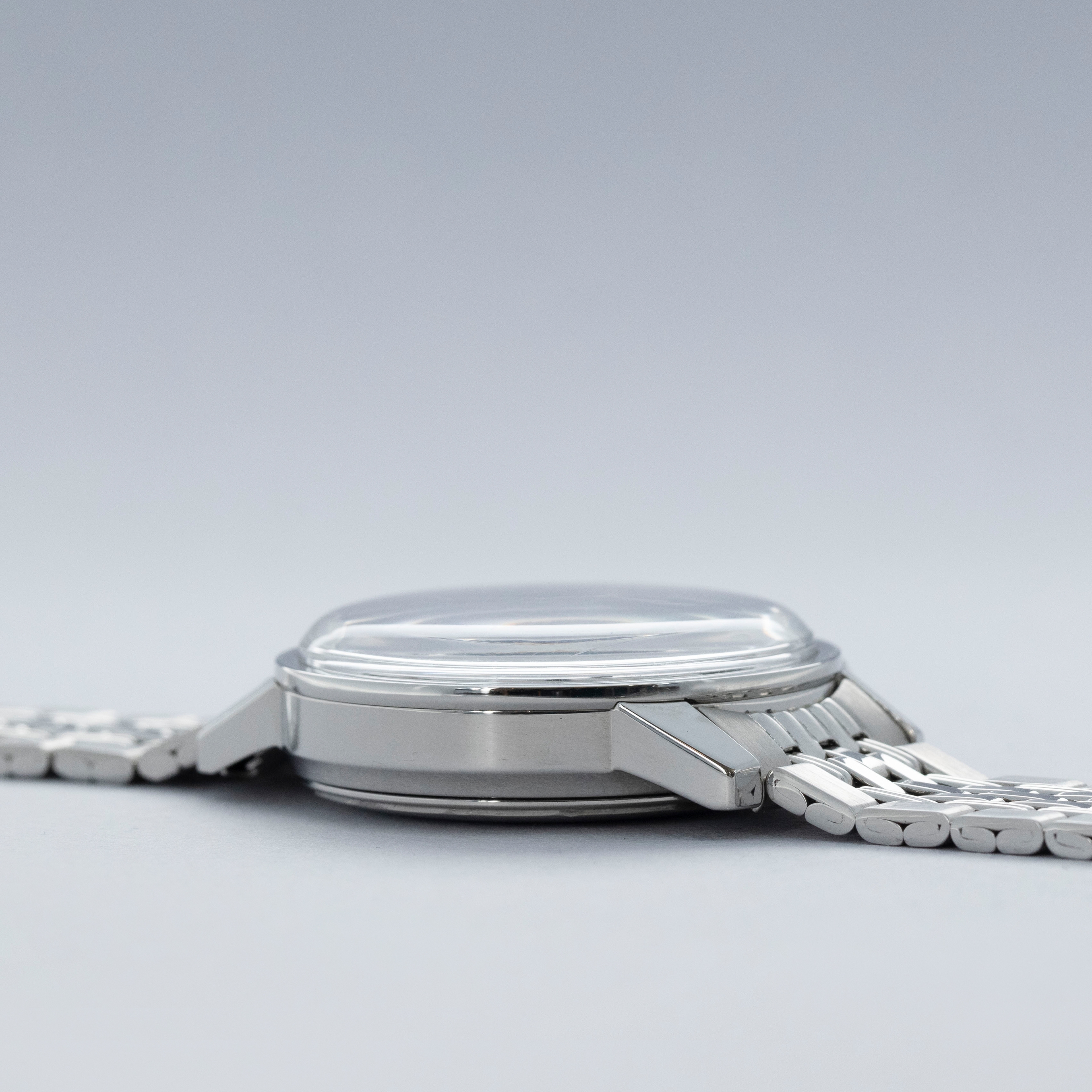 Launched in 1967 as IWC’s first dive watch, the Aquatimer has become a legendary example of an iconic dive watch. While it is undoubtedly a diver, the Aquatimer retains IWC’s refined dressy demeanor in part thanks to its sophisticated bezel system. While external bezels are typically associated with tool watches and dive watches, the Aquatimer uses an internally rotating bezel that is operated by the crown at 2 o’clock, which is mirrored by the crown at 4 o’clock to create a distinct and symmetrical design. Combined with its clear and legible dial layout, stick hands and hour markers, the Aquatimer’s classic round case and angular lugs create a wonderfully familiar presence on the wrist that will comfortably fit most wearers. Powered by an automatic movement and packed with 200m of water resistance, the Aquatimer ref. 812 was an incredibly capable watch when it first came out, and is certainly still up to the task of taking on the daily battles of life on the wrist of a vintage watch enthusiast.