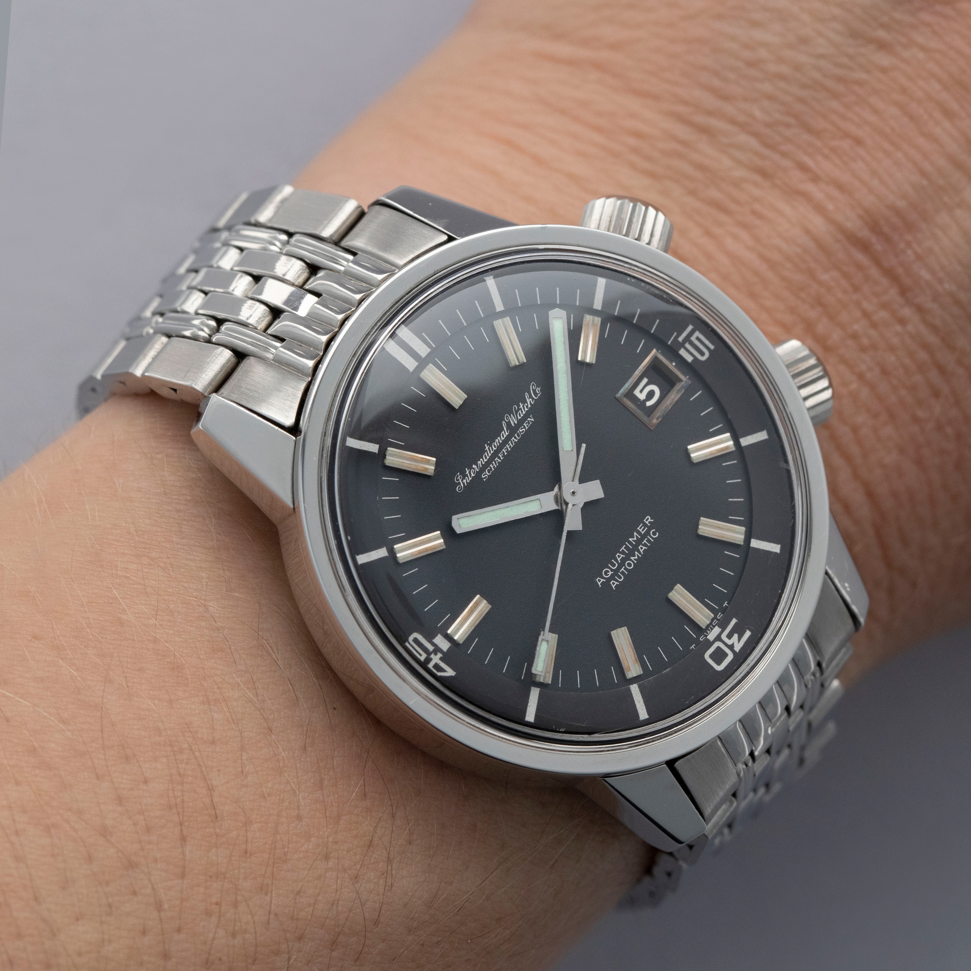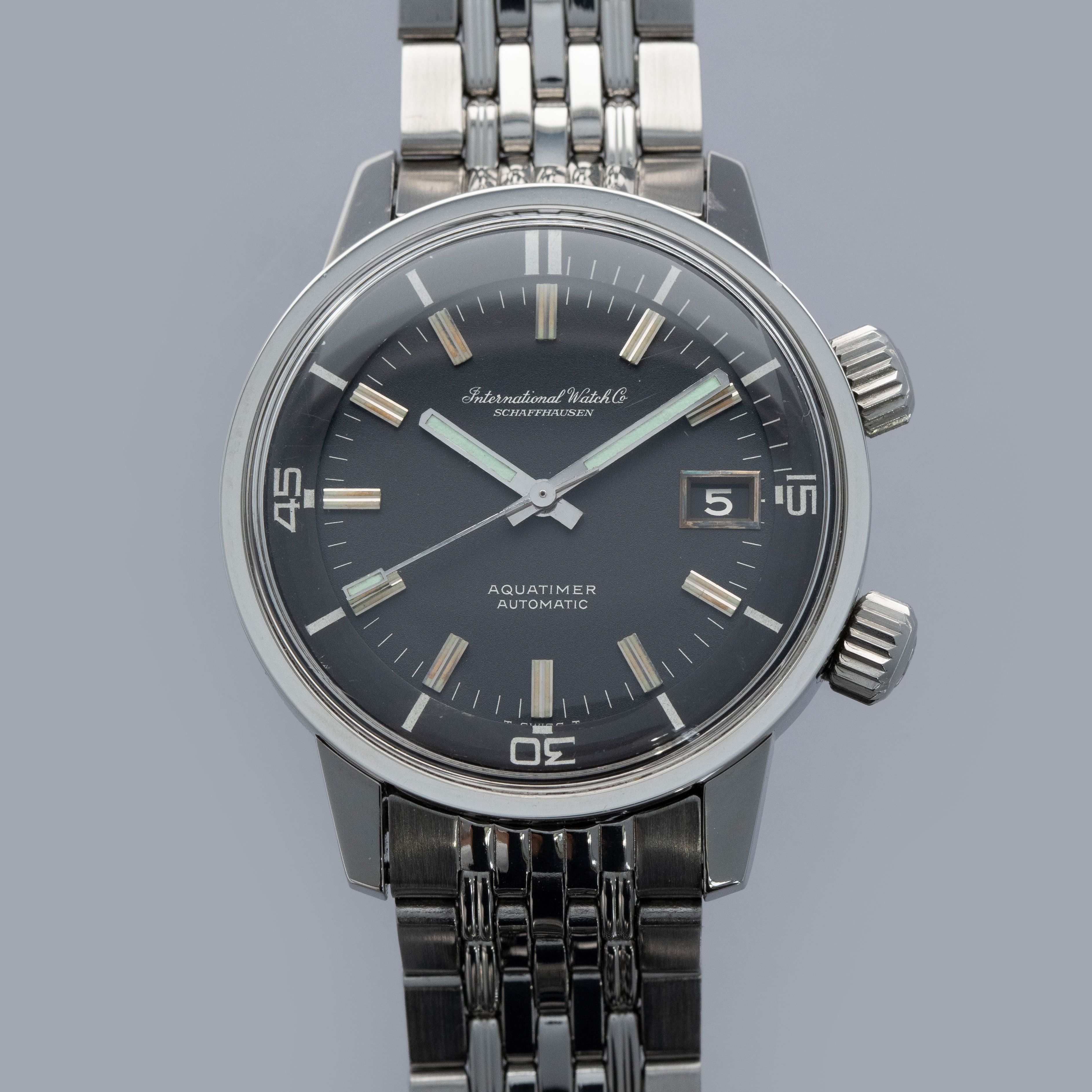 Offered on a rare 7-piece IWC by Gay Freres bracelet, this stunning vintage Aquatimer wears on the wrist with a unique poise and profile. Additionally, the bracelet is dated for the 4th quarter of 1969, aligning with when this watch would have been produced, as suggested by its dial.