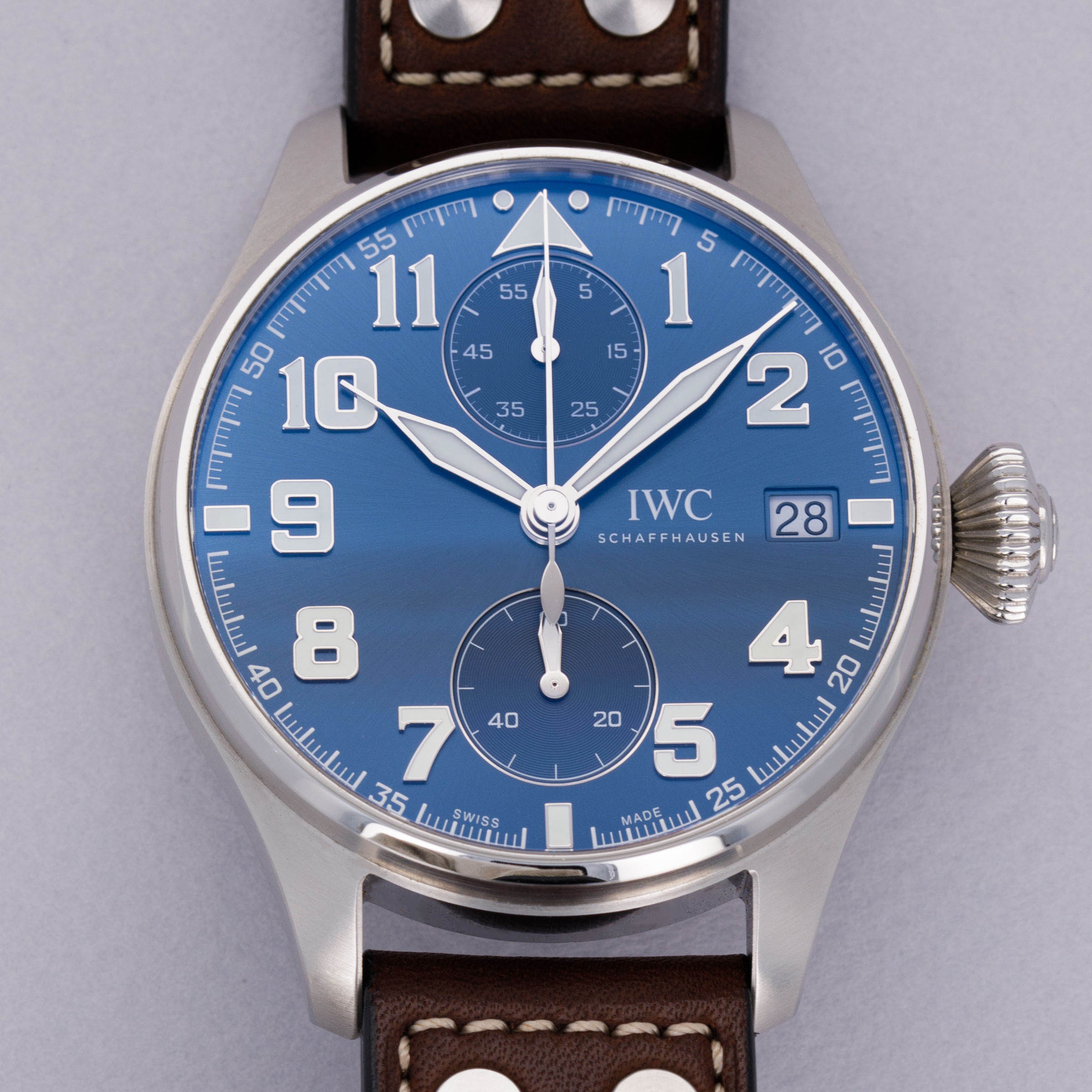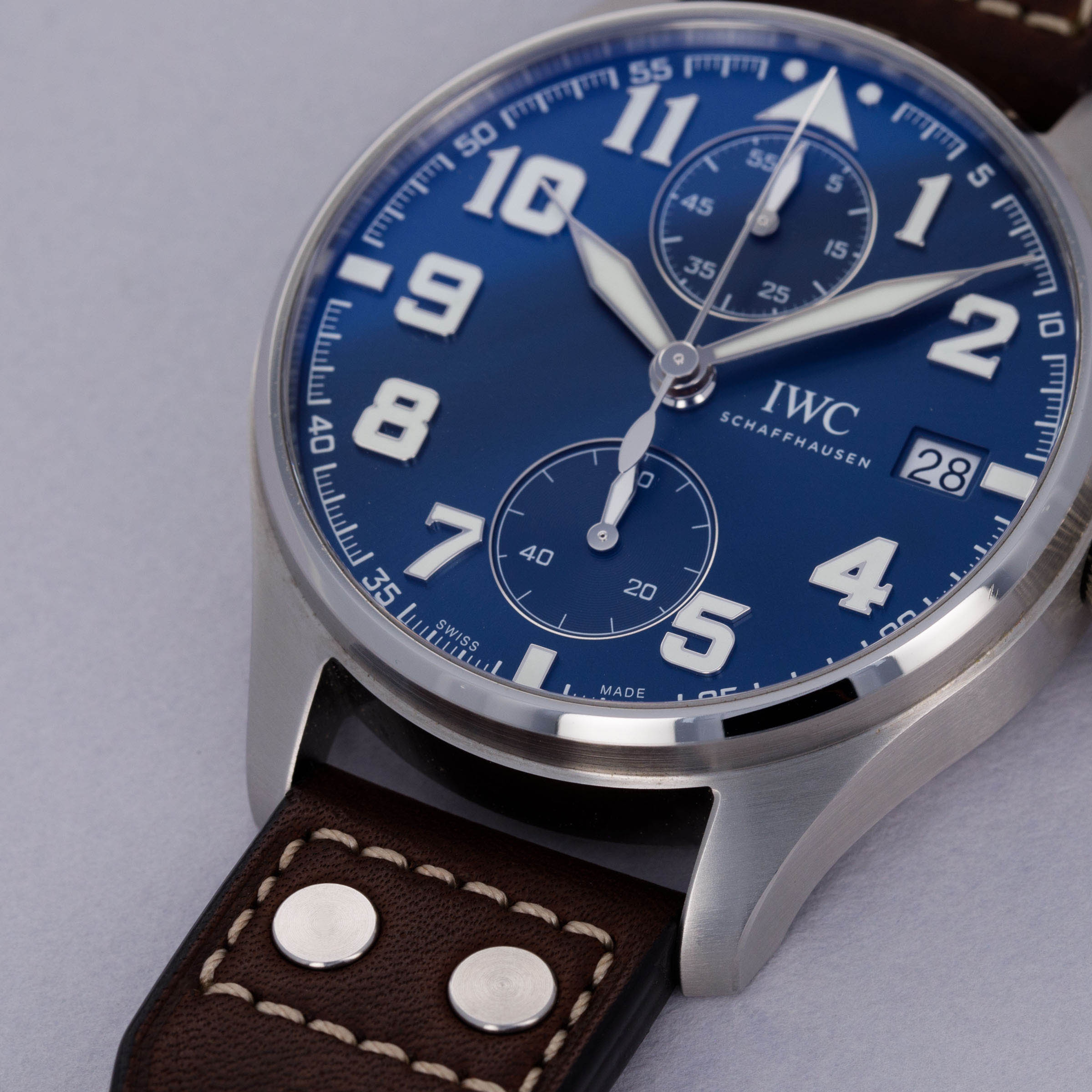 Launched in 2006 in partnership with the estate of iconic French aviator, diplomat, writer and poet Antoine de Saint-Exupéry, the IWC Le Petit Prince collection is a humble nod from IWC to the importance of story-telling in the world of watch-making and a testament to Antoine’s incredible life. A thriving commercial pilot flying airmail routes before joining the French Air Force during WWII, Antoine moved to the US following the French armistice with Germany in 1940 where he tried to convince politicians to join the war efforts. Following 28 months in America, he joined the Free French Air Force and is thought to have died in 1944 while on a recon mission. During his time in America, Antoine wrote books, the best known of which is “Le Petite Prince”, a poetic, philosophical and self-illustrated tale in which a pilot becomes stranded in the Sahara and meets a young prince who falls from an asteroid. Written as a children’s book Le Petite Prince seeks to understand the strangeness of the adult world and all that goes on within it. IWC entered a partnership with the Saint-Exupéry-d’Agay Estate in 2005 to find ways to ensure that Antoine’s ideas would remain alive. With themes of aviation, exploration and dreams being so vivid within IWC and Antoine’s work, it began an organic and long-term relationship that resulted in several incredible timepieces, one of which being the Big Pilot Monopusher Chronograph that we have here. Boasting the Big Pilot’s iconic 46mm stainless steel case and a stunning blue dial that has become a lynchpin of the Le Petit Prince collection with large luminous Arabic numerals, the ref. IW515202 is a stunning combination of pure watchmaking excellence and Antoine’s incredible legacy as a legendary aviator.