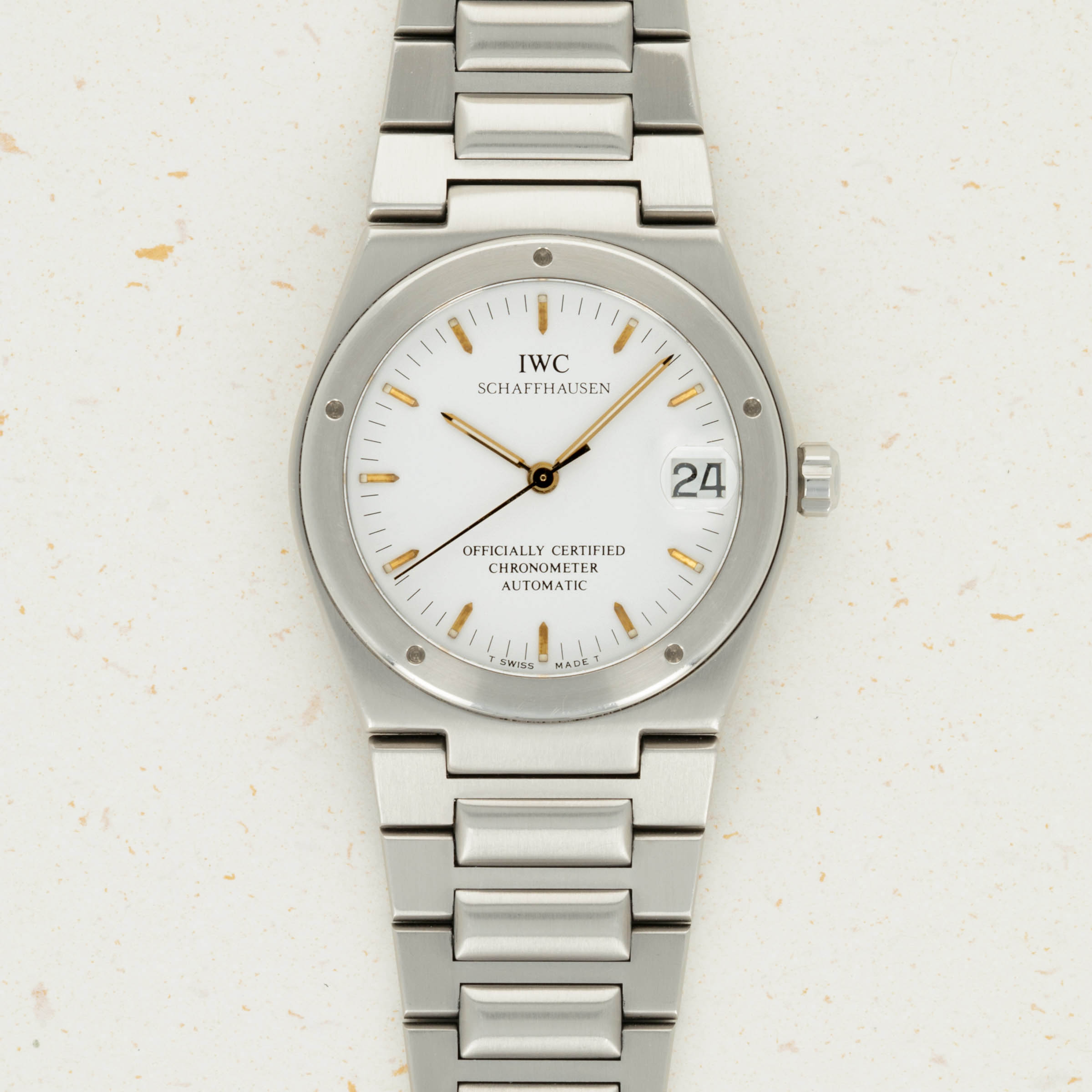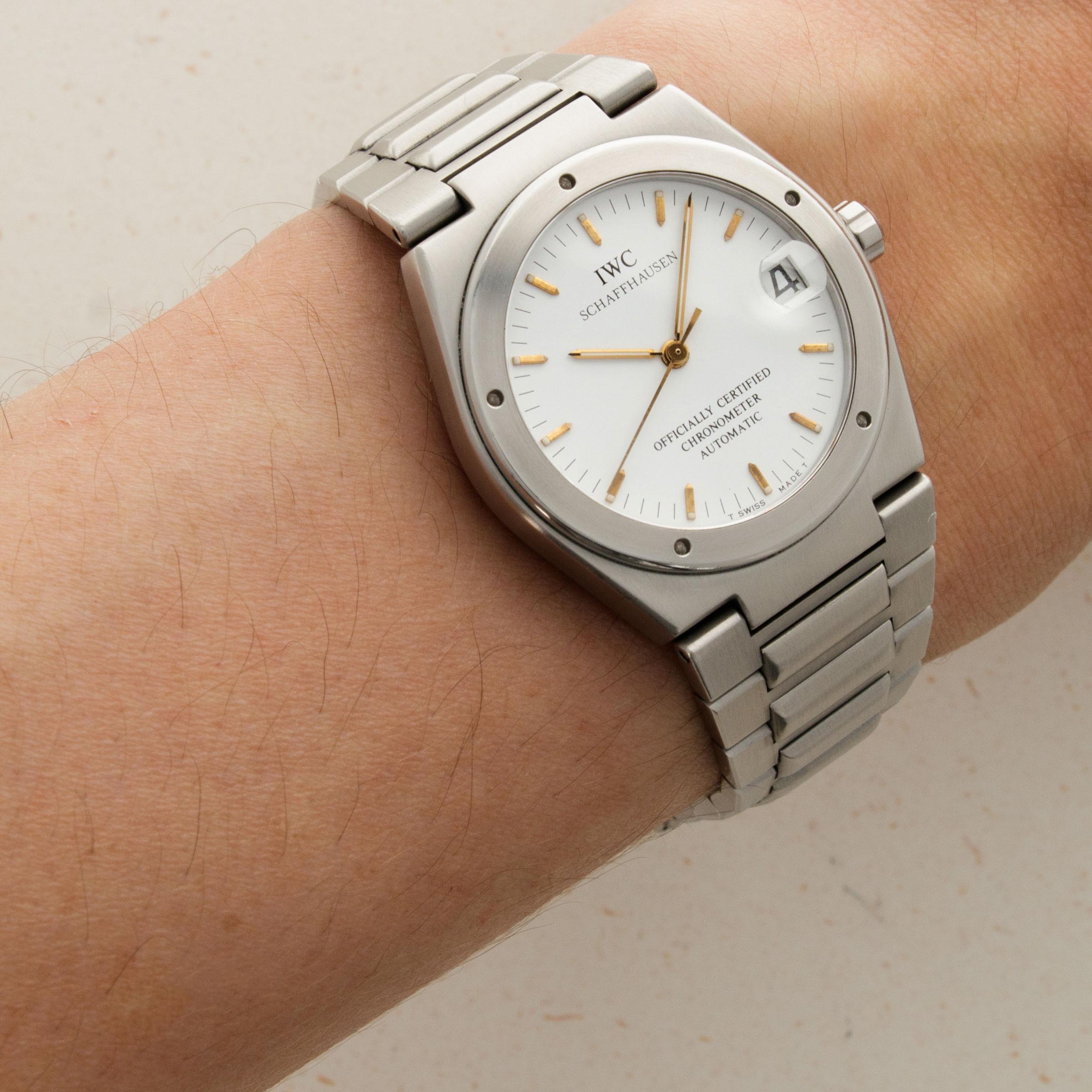 While the IWC Ingenieur can trace its origins as far back as 1955, the collection was revamped in a rather significant manner in the 1970s following the popularisation of stainless steel luxury sports watches. Designed by Gerald Genta himself, the new Ingenieur SL was a slim ‘Jumbo-sized’ case much like Genta’s Royal Oak that featured an integrated bracelet. Furthermore, it even featured a bezel with four rivets, much like the Royal Oak’s exposed screws. Eventually, following a period of insufficient sales, IWC decided to launch smaller variants of the Ingenieur, one of which was the ref. 3521, in the 1990s - which is what we have here. With an emphasis on IWC’s elegant design language, the ref. 3521 utilized design touches such as gold hour markers and hands along with an array of dials in a bid to swap the Ingenieur’s tool-watch design with a sophisticated look that echoed IWC's dress watch aesthetic while remaining true to the new Ingenieur. Produced until 2001, the ref. 3521's smaller proportions and officially certified movement combined to create a watch was well-received while it was in production, and today is a rare variant of the Ingenieur that collectors still love to see.