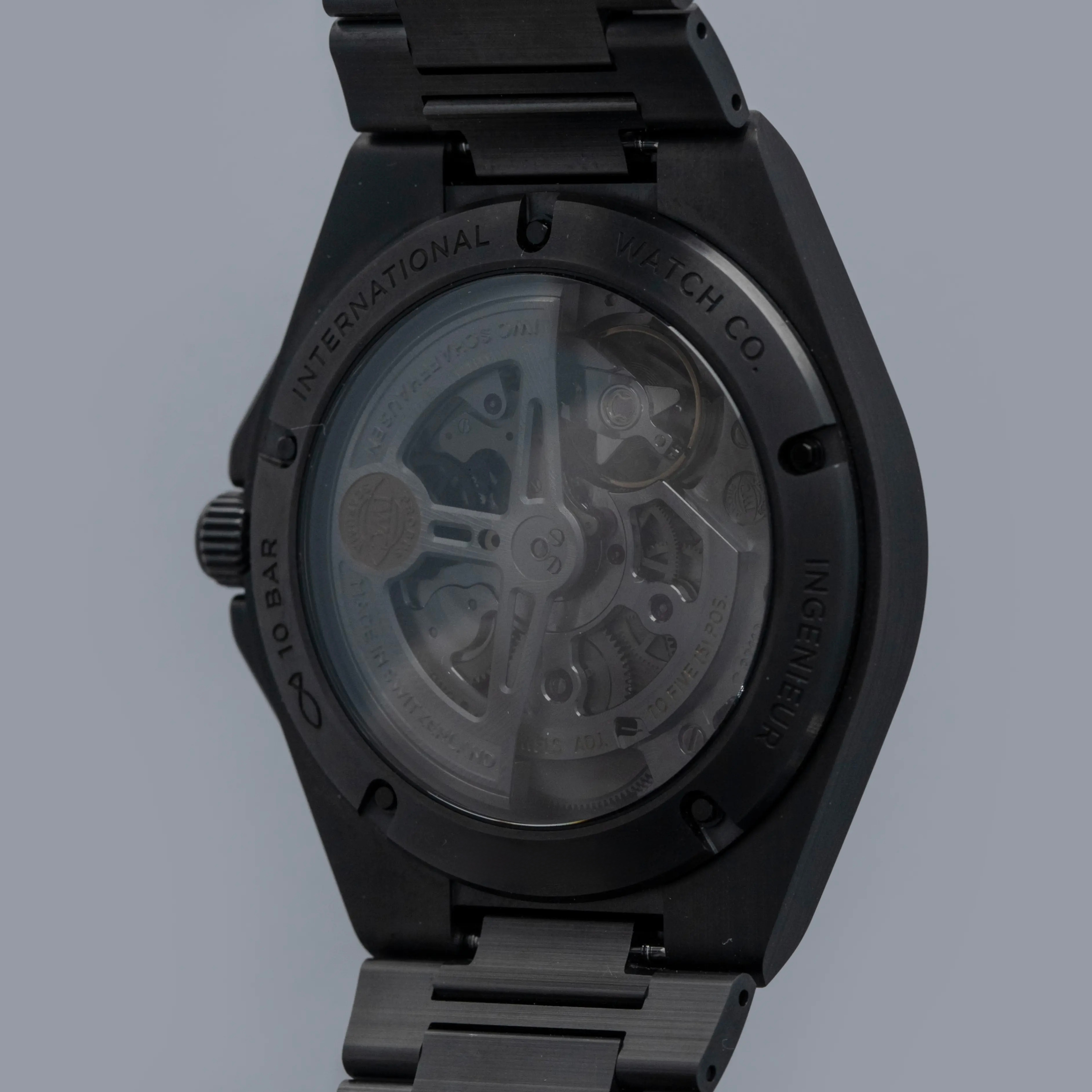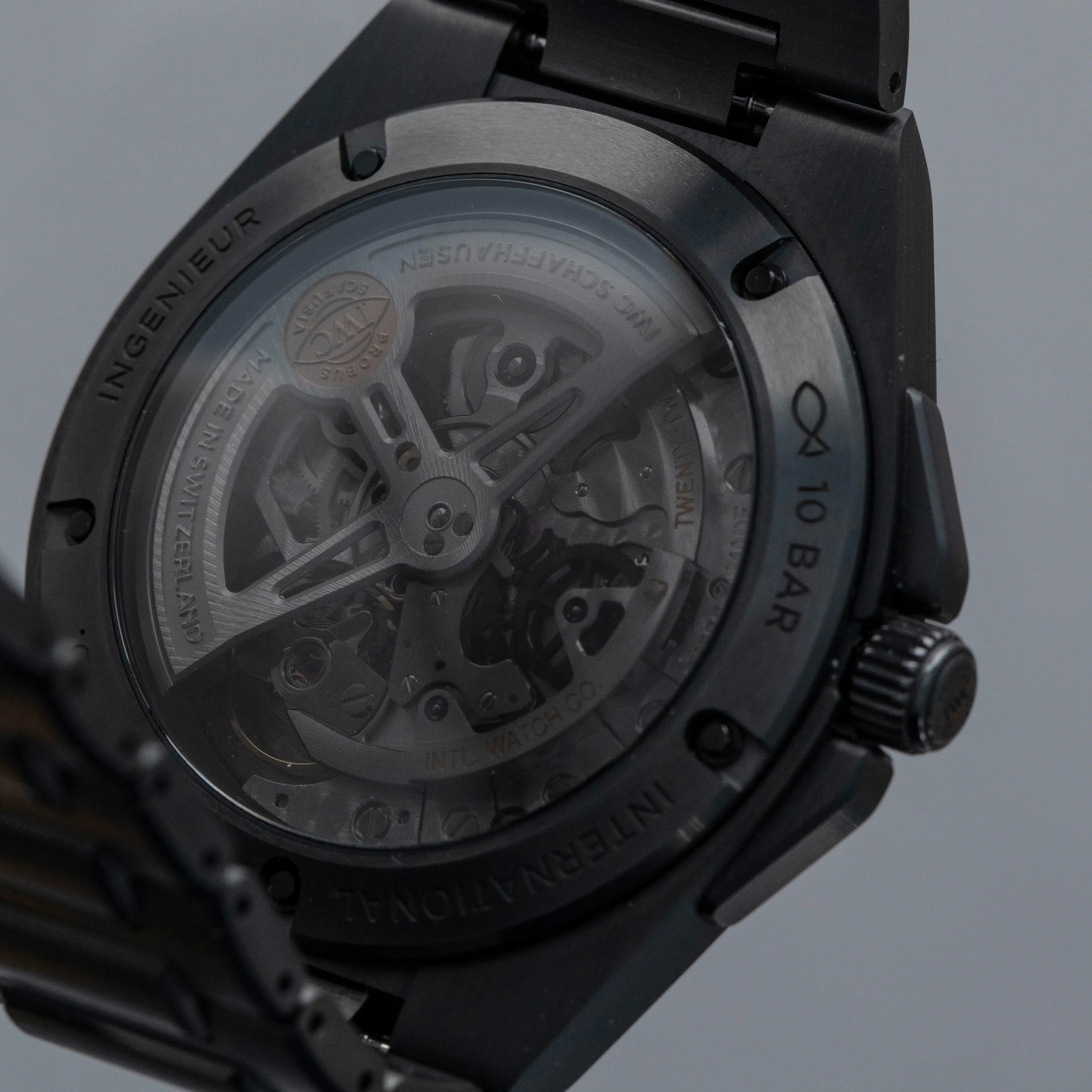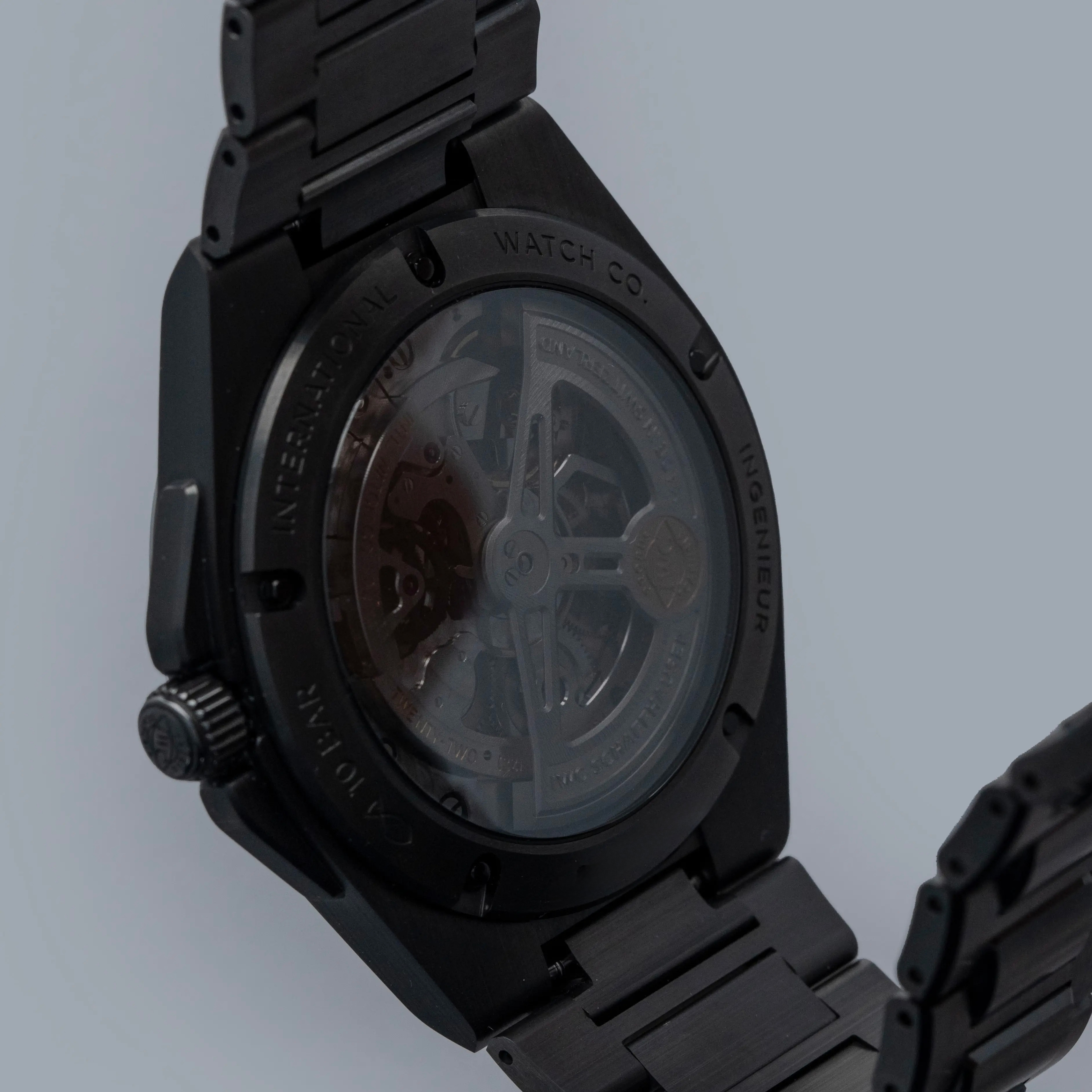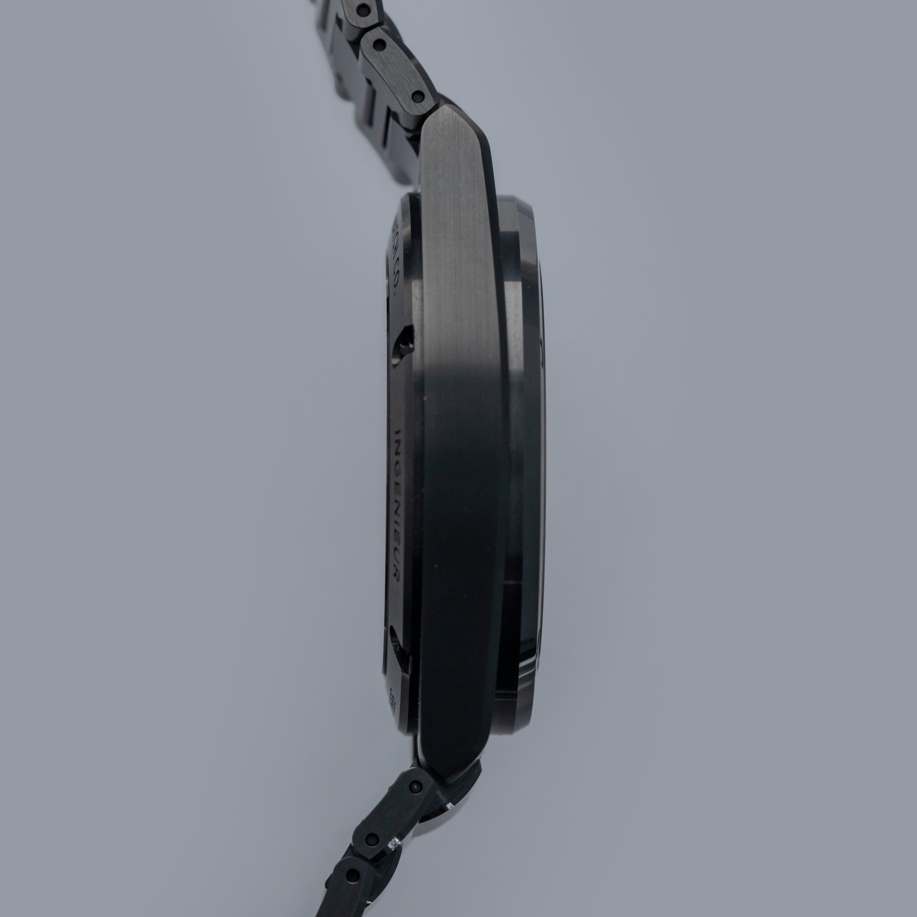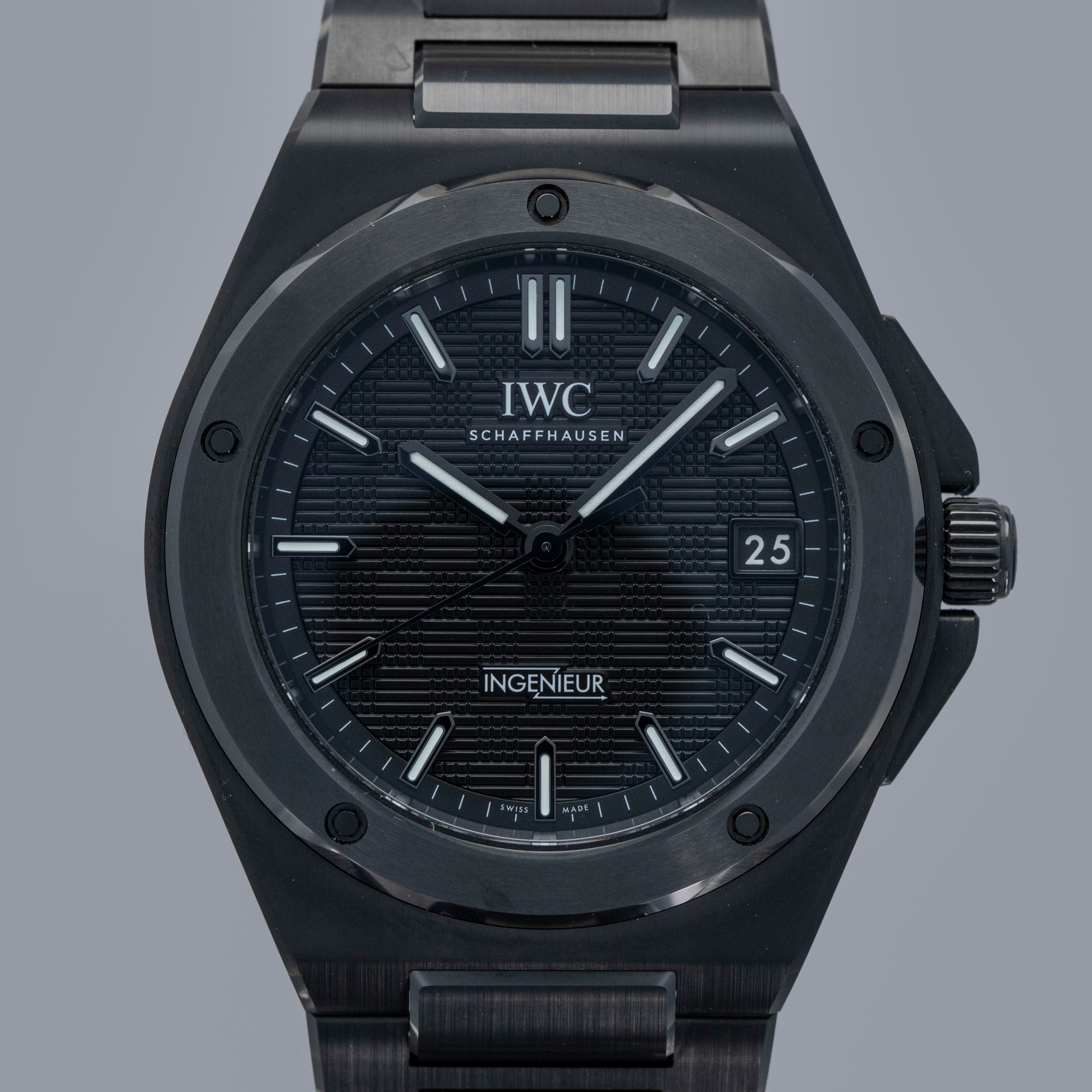 Featuring a black dial with a crosshatch textured pattern made up of blocks with alternating engraving directions, the Ingenieur's dial has a wonderful depth to it.