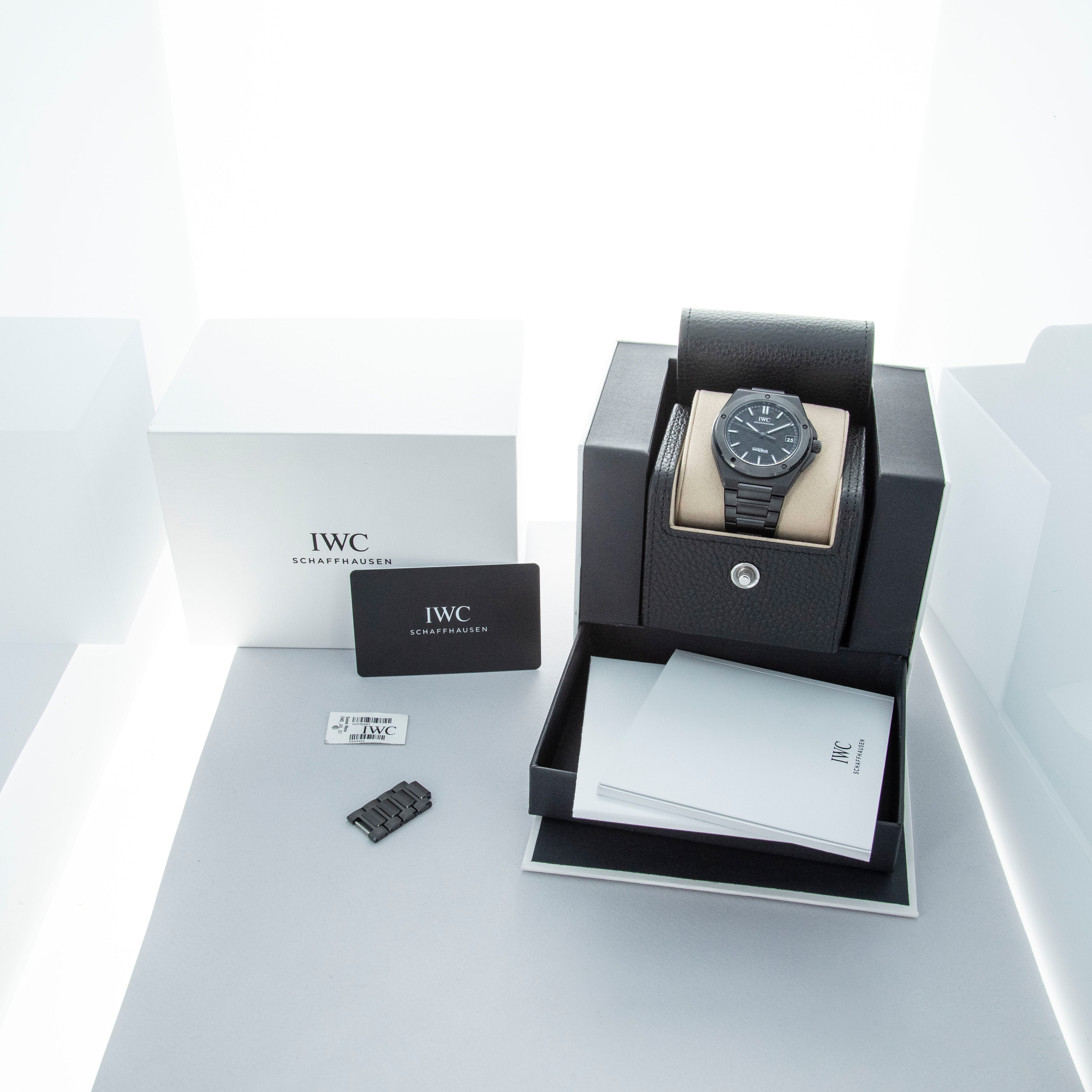 Incredibly light on the wrist thanks to its black ceramic case and bracelet, the ref. IW338903 is tremendously easy to wear, even with its enlarged 42mm case diameter, which increased upon the collection's 40mm case size.