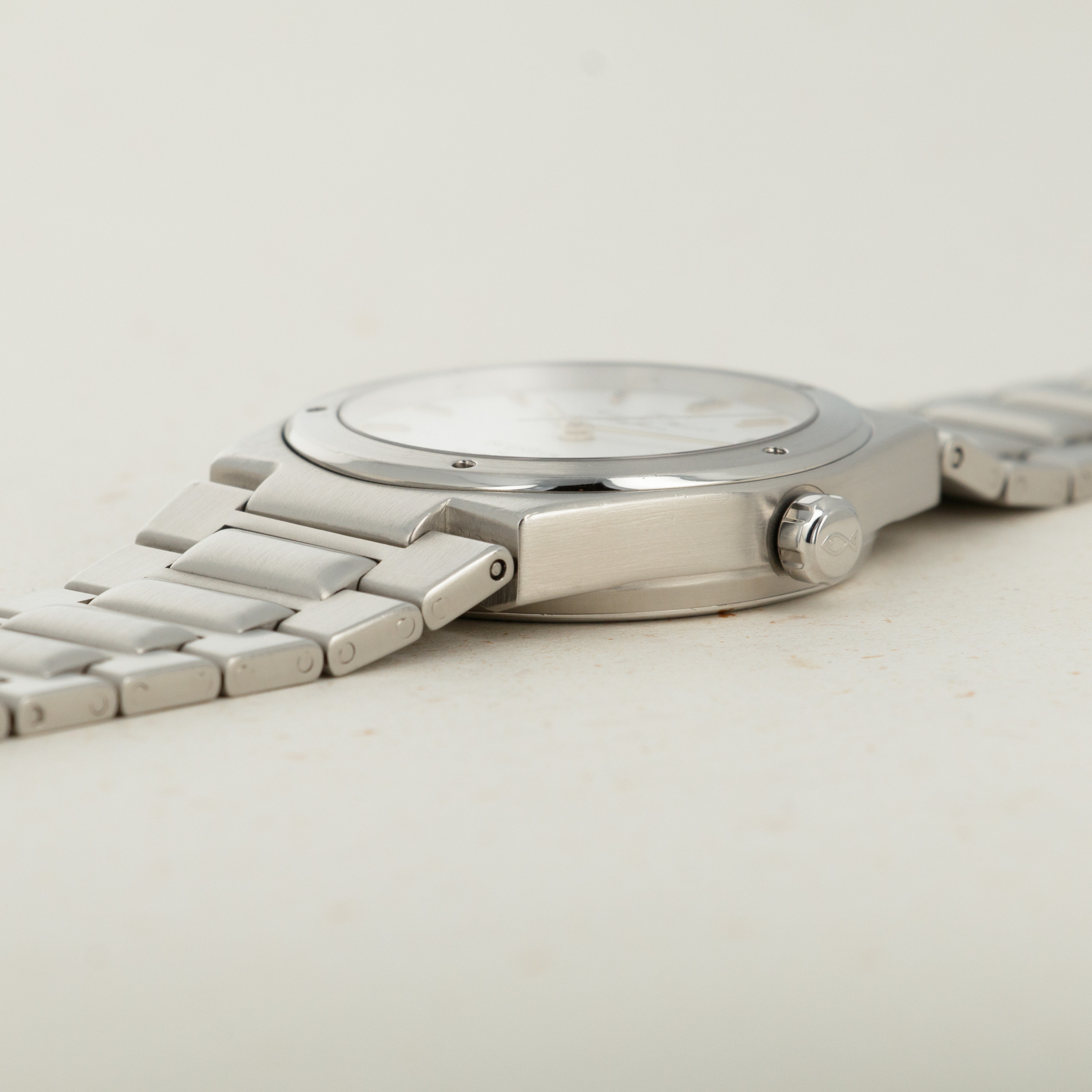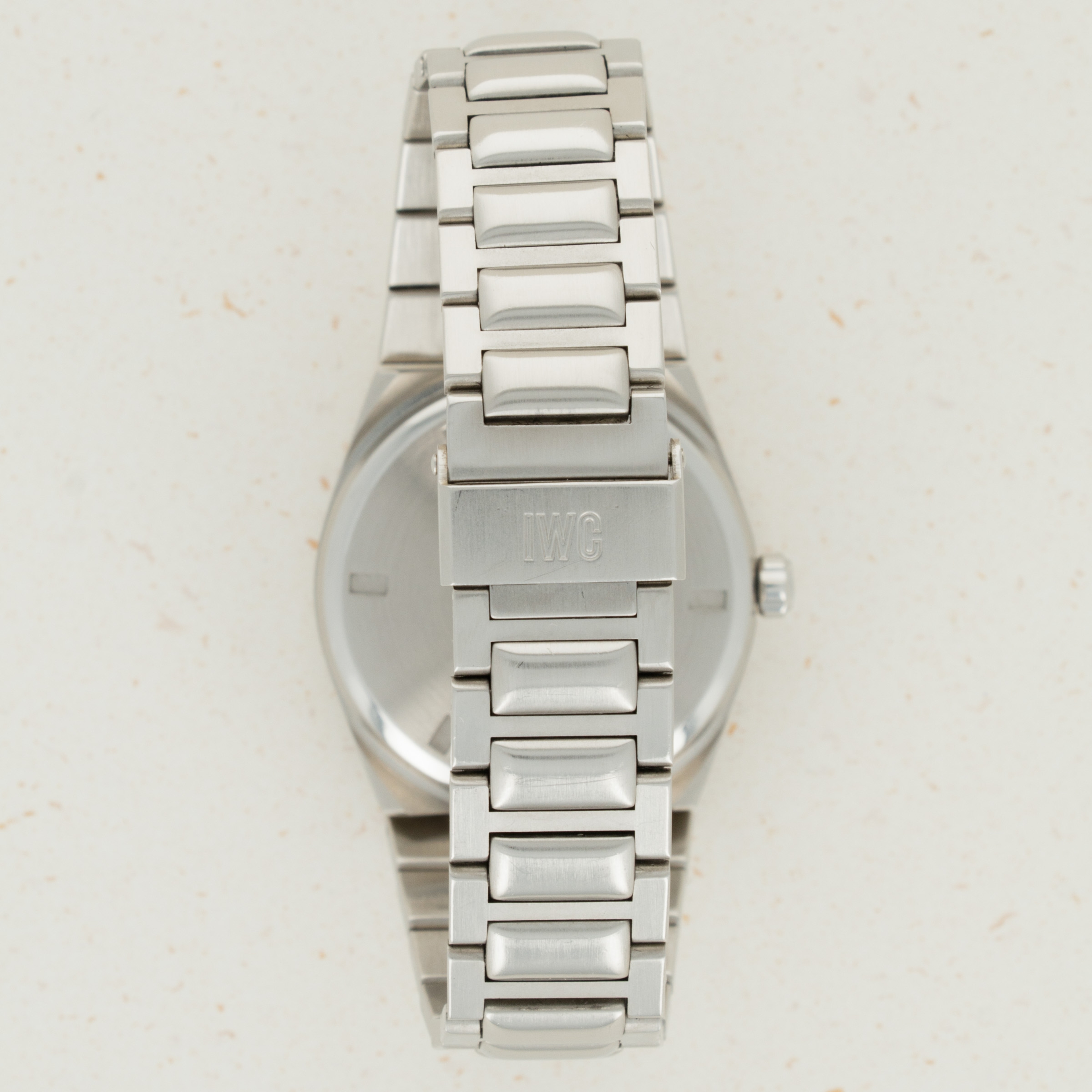 The watch is in overall excellent condition. It exhibits minor signs of wear on the case, including a few small superficial scratches. The original dial with tritium indexes is in excellent condition. Watch was serviced in 2017 by IWC in Schaffhausen and had its hands replaced with service luminova ones. The bracelet has 23 links, 5 of which are removable.