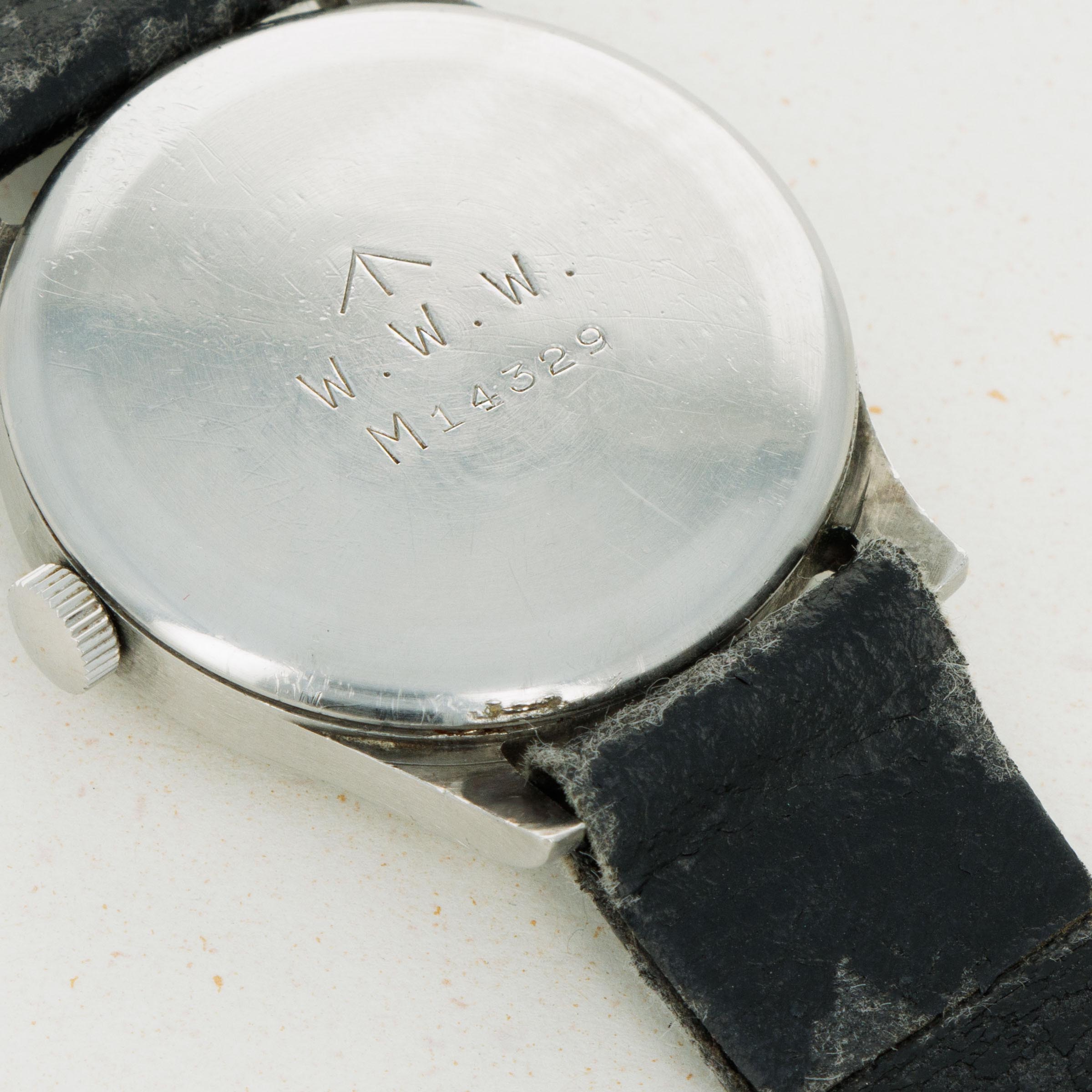 Featuring the W.W.W. engravig meaning "Watch Wristlet Waterproof," its Broad Arrow symbol, and its "M" number, which indicates that IWC produced it, this timepiece's status as a Dirty Dozen model is undeniable.