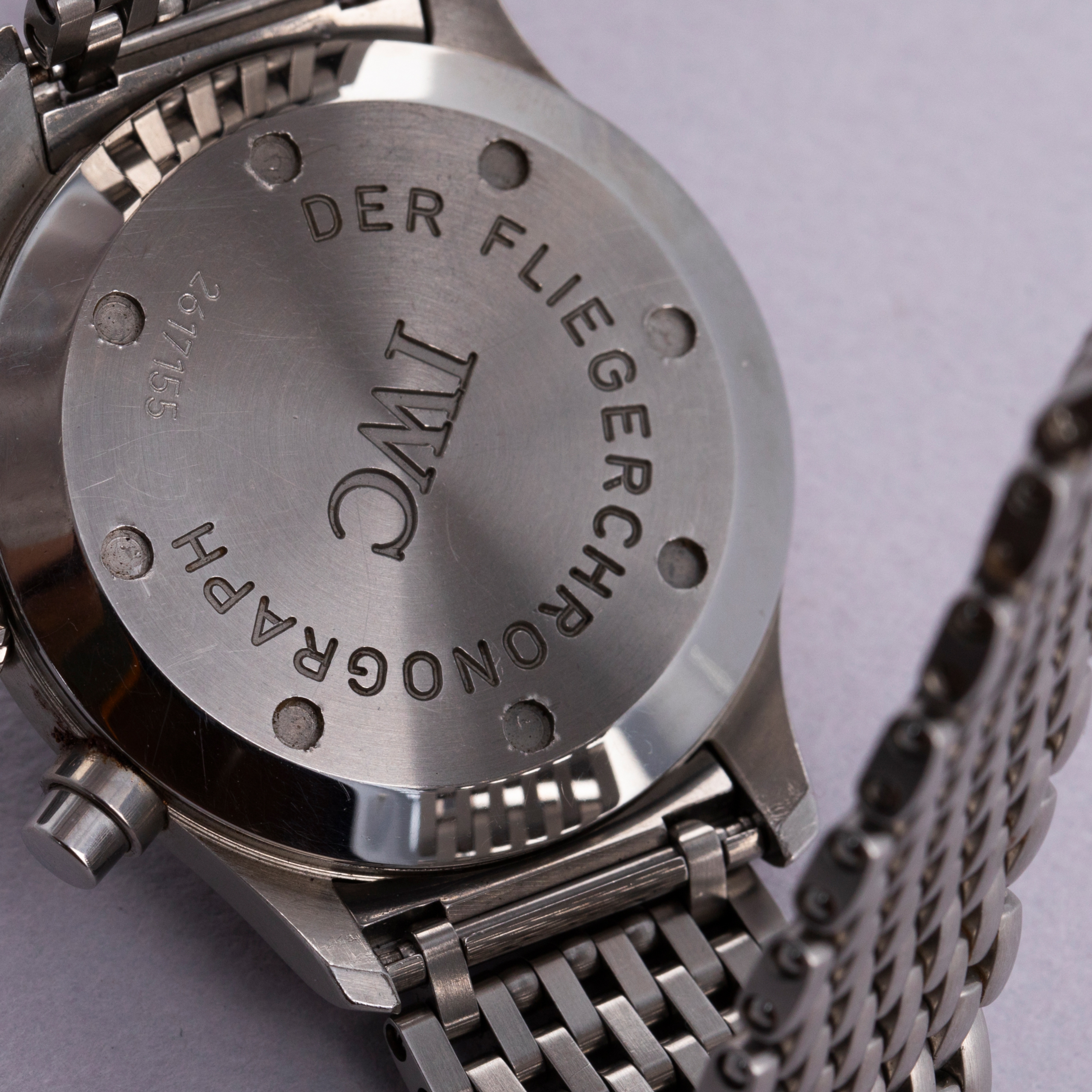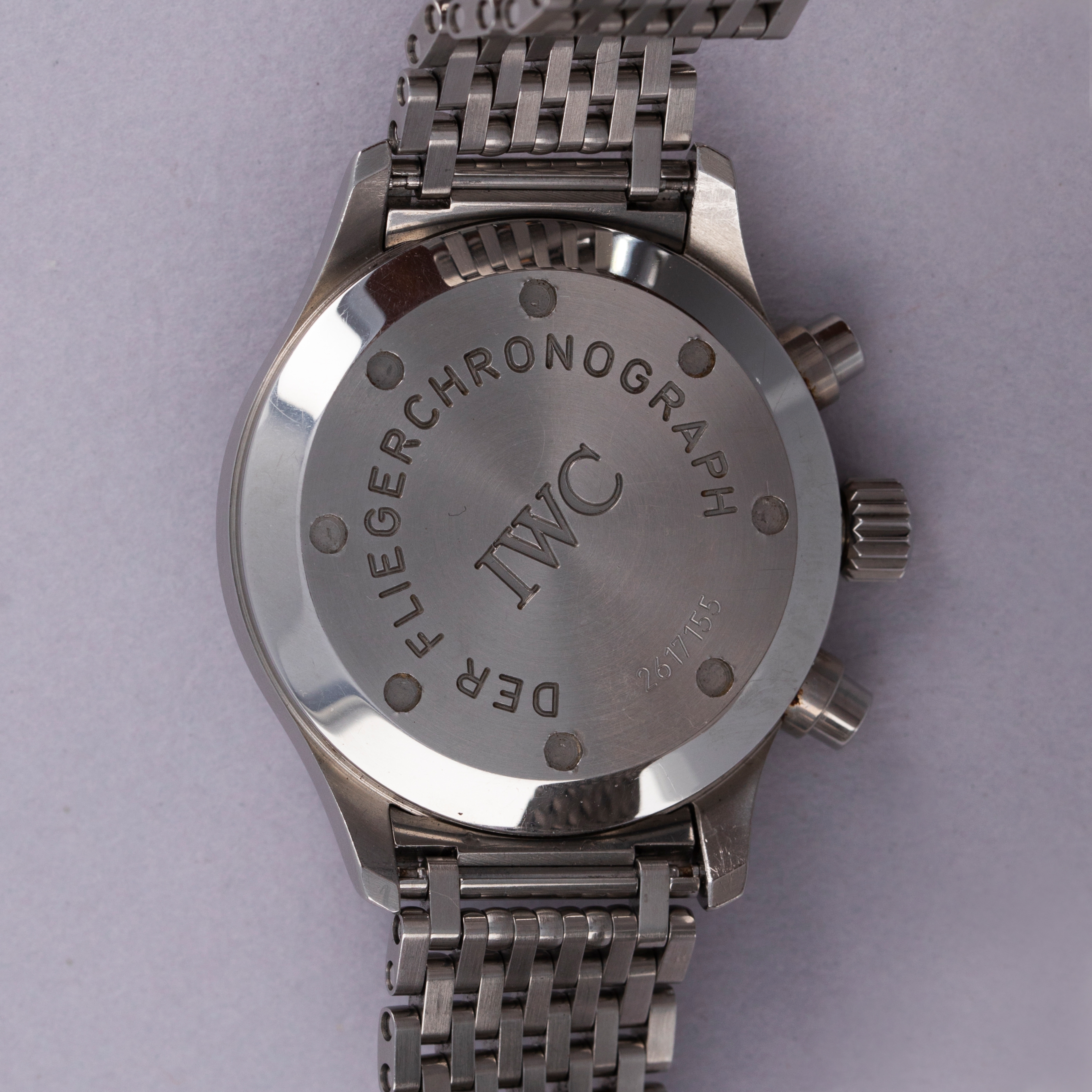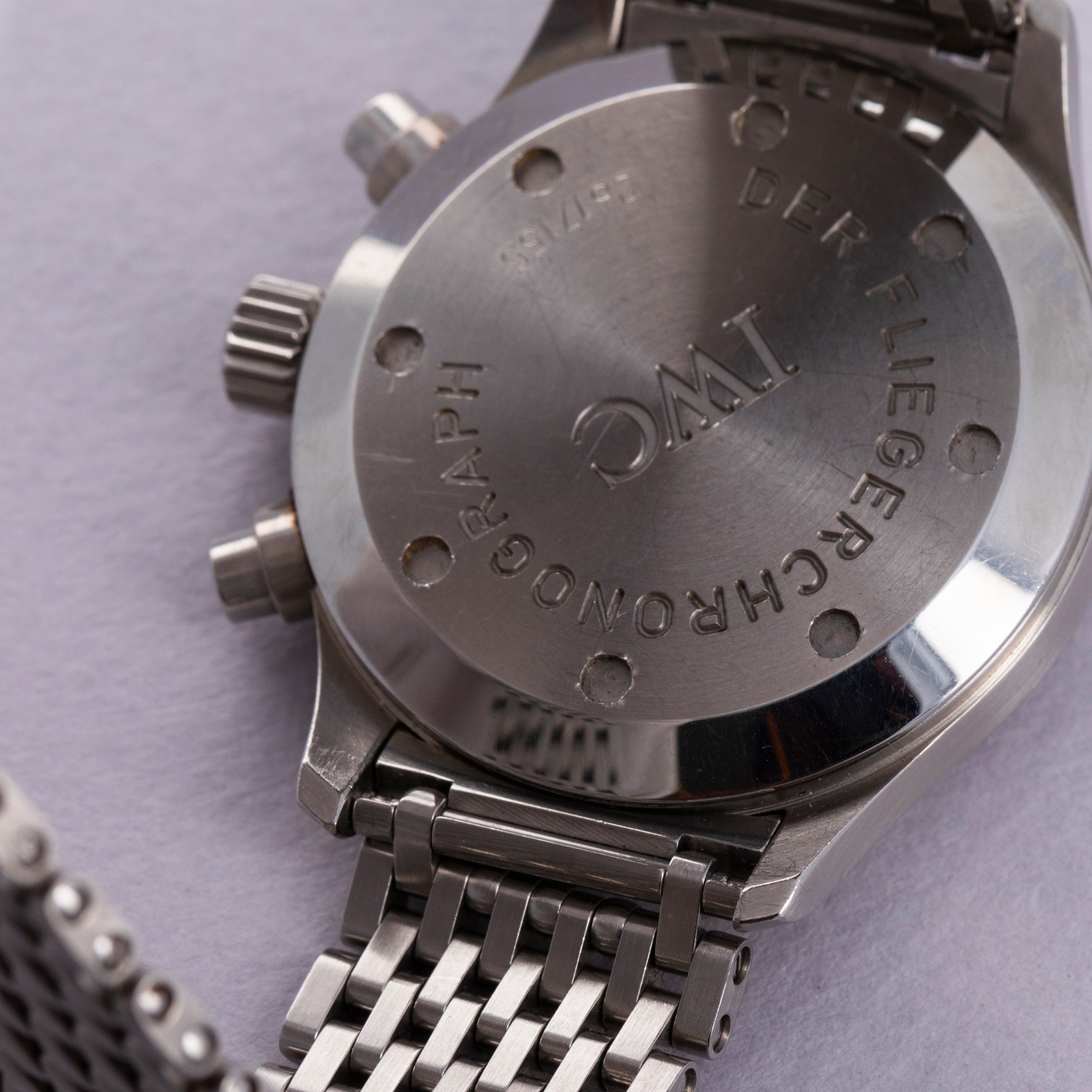 Offered with the original tritium dial as showcased by the two letter Ts in "T SWISS MADE T" across the 6 o'clock periphery of the black dial, this ref. IW3741's hour markers and hands have aged to include a wonderful orange patina that is a highly cherished detail among collectors.