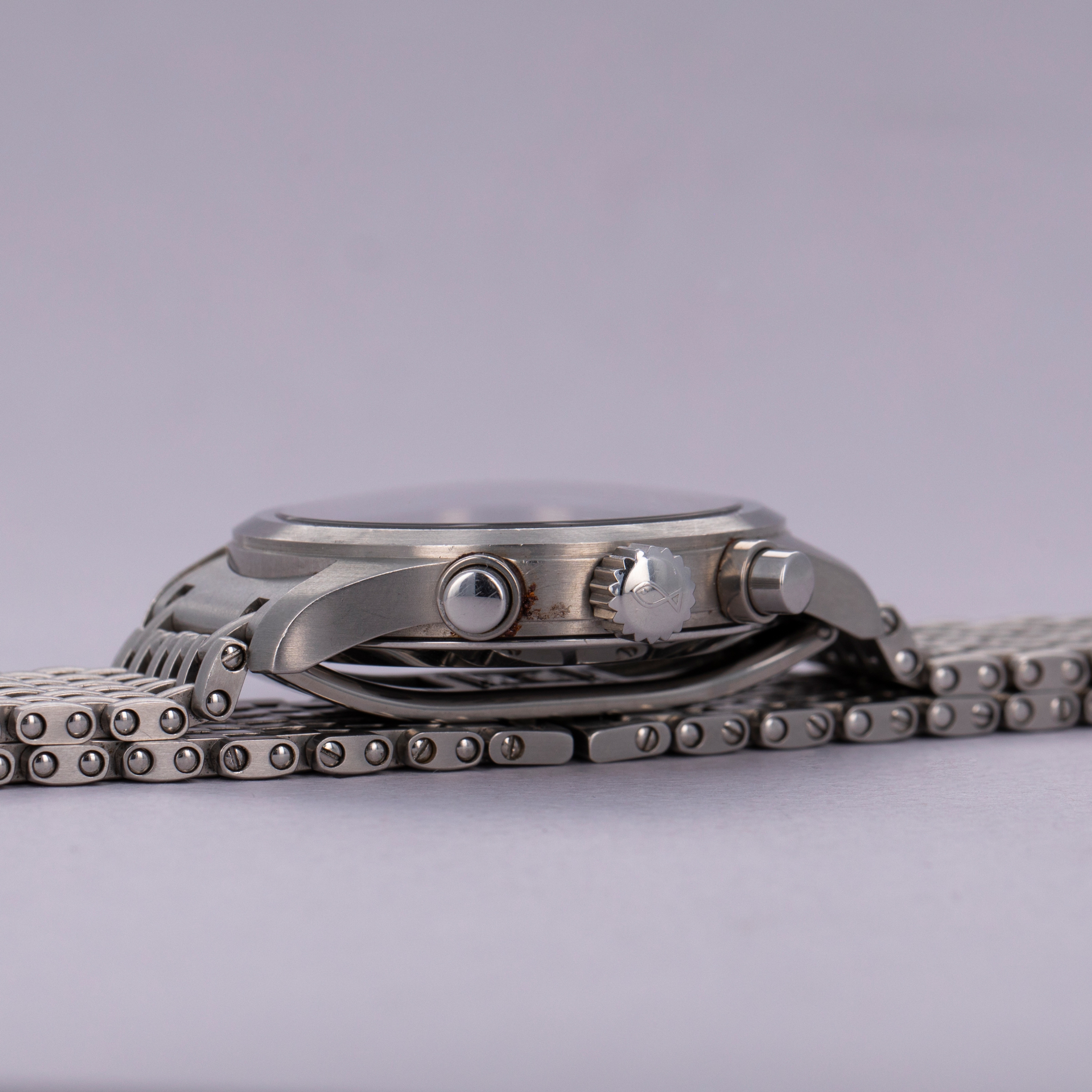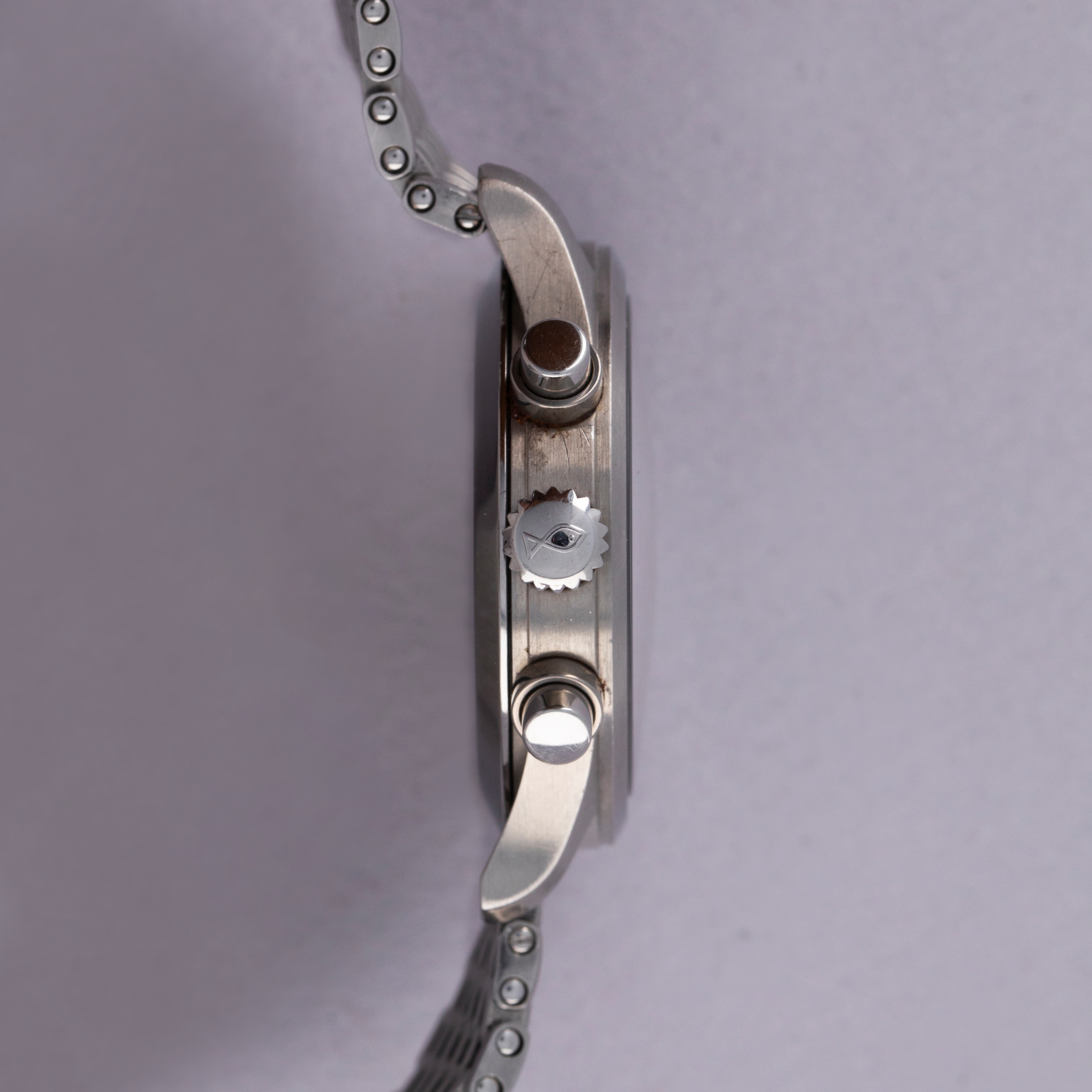 A remarkable fusion of traditional watchmaking and modern technology, the IWC Pilot Chronograph ref. 3741-01 Mechaquartz embodyies the spirit of aviation with its striking design. Featuring a robust 36mm stainless steel case and a sleek black dial that enhances legibility, crucial for pilots, this chronograph is built on pure function. Powered by JLC’s innovative cal. 631 Mechaquartz movement, the IW3741 offers the precision of quartz combined with the mechanical charm of traditional chronographs. This unique mechanism provides a smooth sweep of the second hand, reminiscent of mechanical watches, while maintaining exceptional accuracy. The watch’s durability make it suitable for various environments, and its supple Milanese bracelet make it exceptionally easy to wear. With its blend of functionality and style, the IWC Pilot Chronograph IW3741-01 Mechaquartz stands out as a reliable companion for both aviation enthusiasts and watch collectors alike.