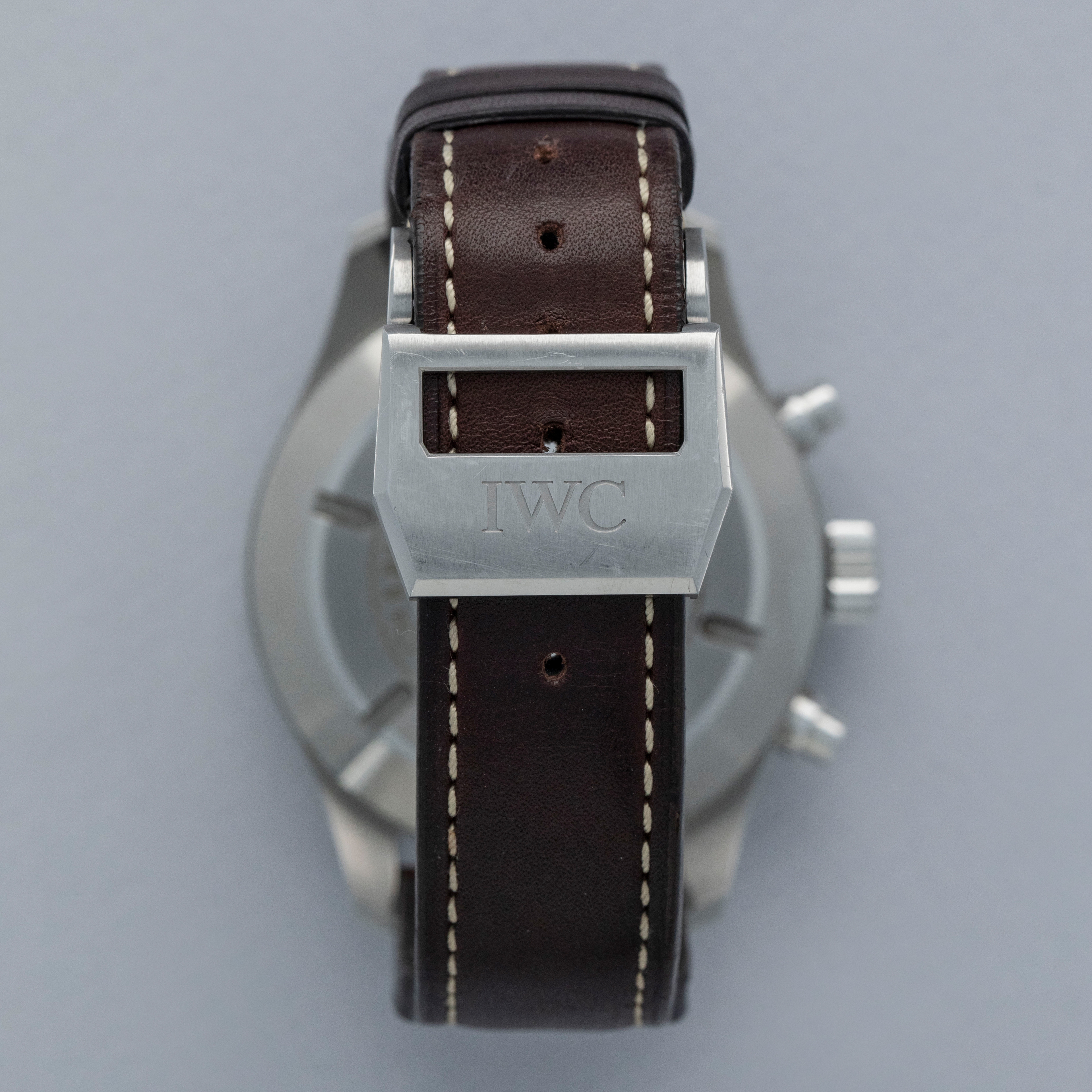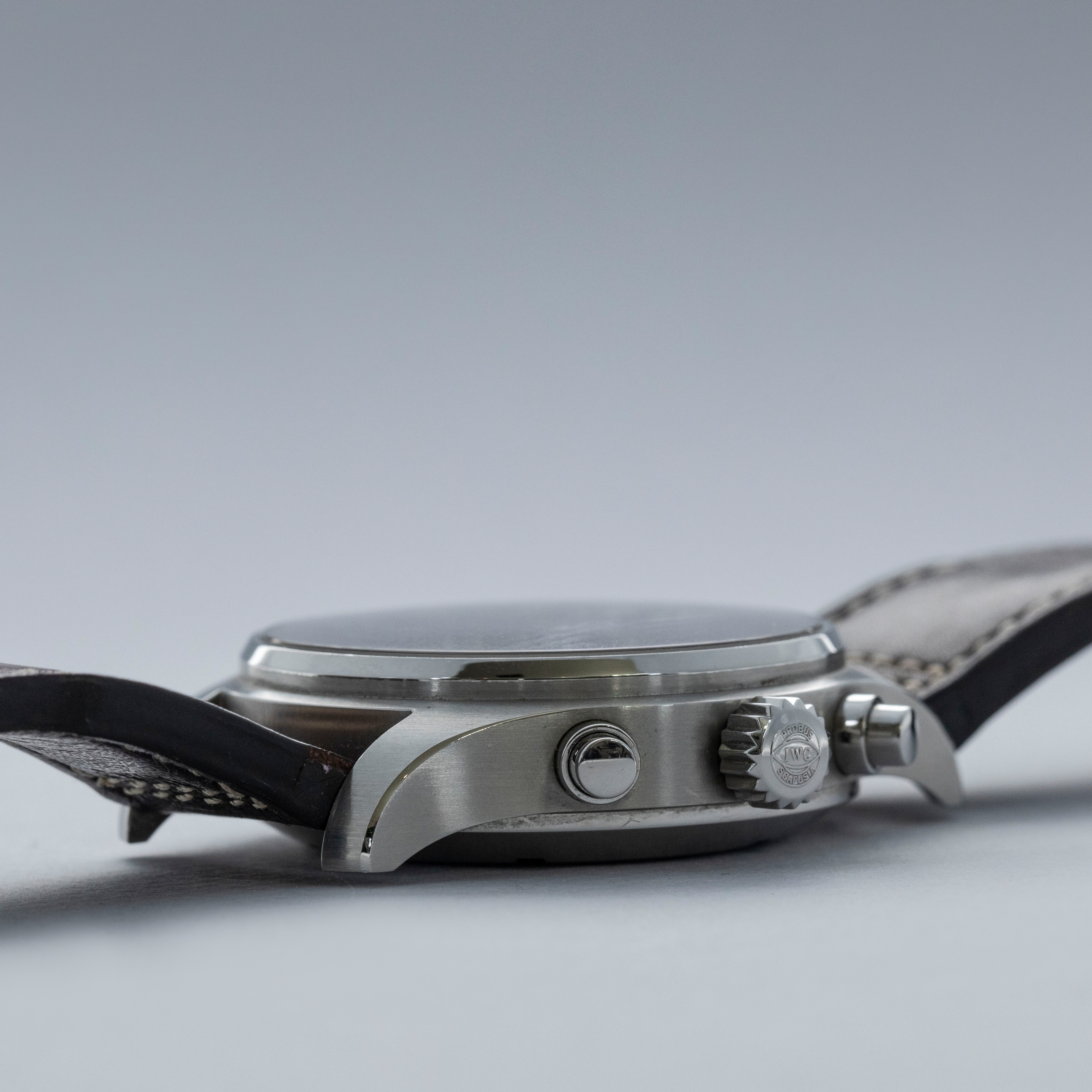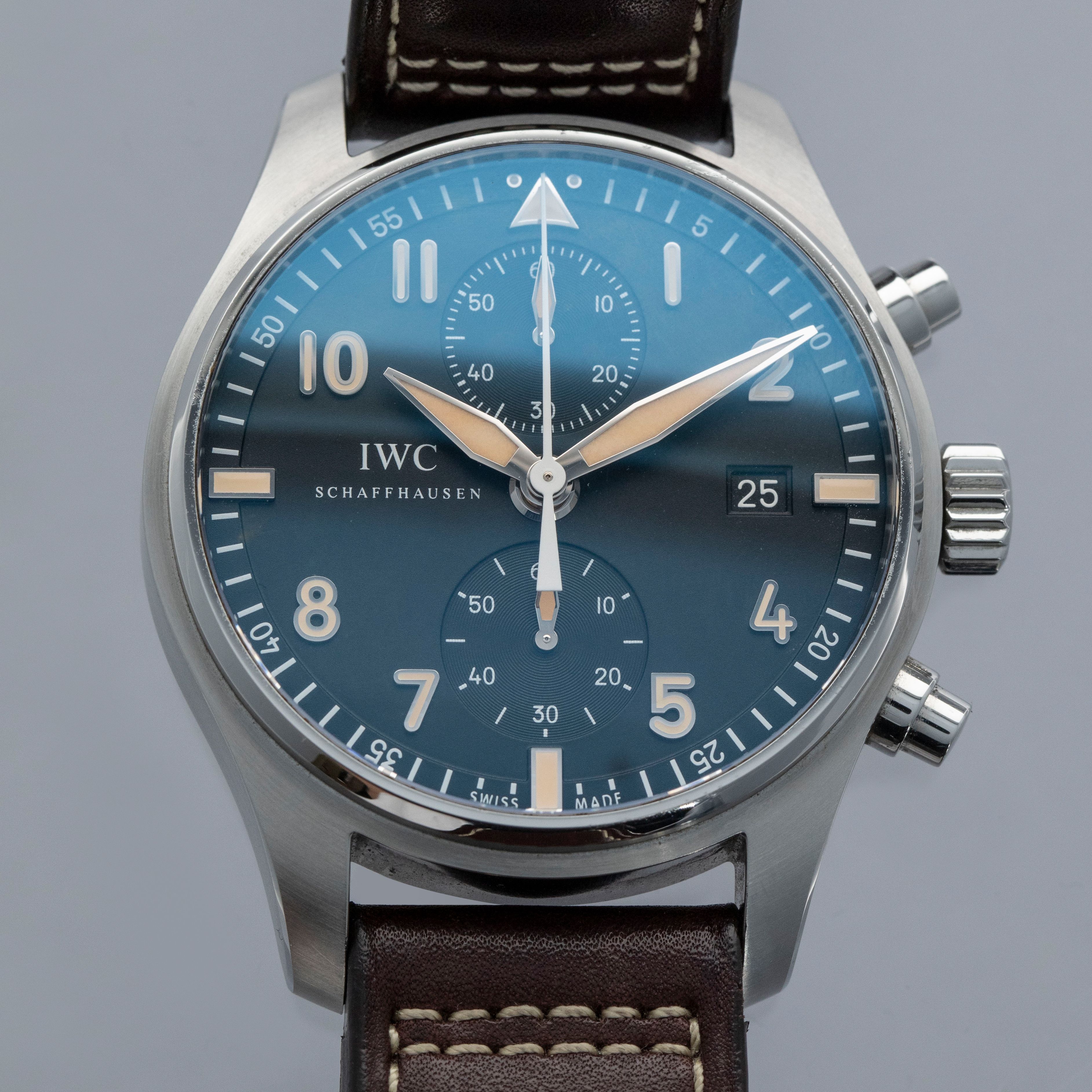 Boasting a powerful 43mm stainless steel construction, the IW3878-08 offers IWC's distinctive wrist presence with its thin bezel, shielded pump pushers, and large footprint.