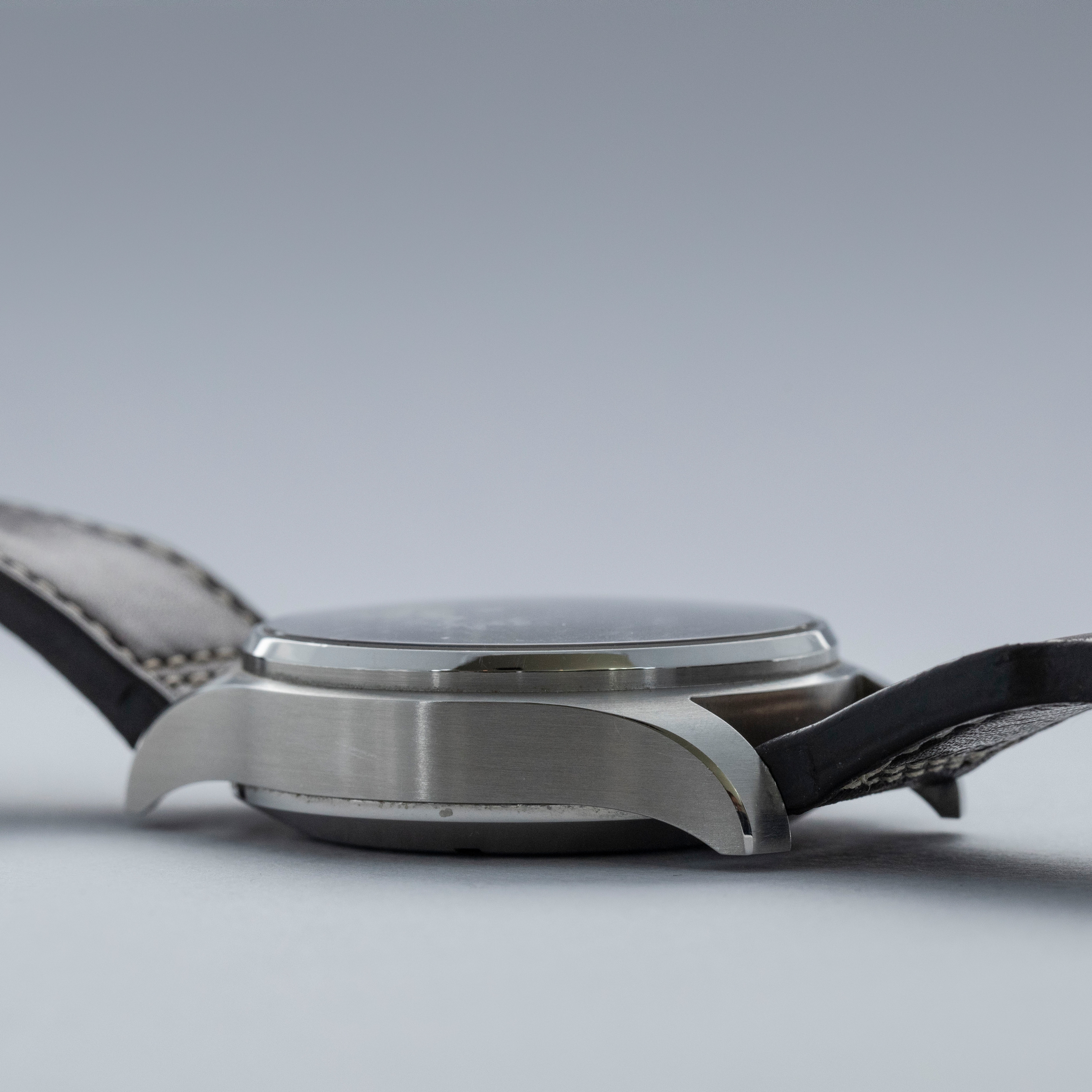 Watch is in overall excellent condition. The steel case shows light surface scratches and signs of wear, while the polished bezel also displays some surface scratches. The case back shows signs of wear with well-defined engravings. The dial and hands remain near mint, with a couple of small spots visible on the applied hour marker at three o’clock. It is fitted with a brown leather strap and a steel deployant clasp showing surface scratches. Comes complete with box and papers.