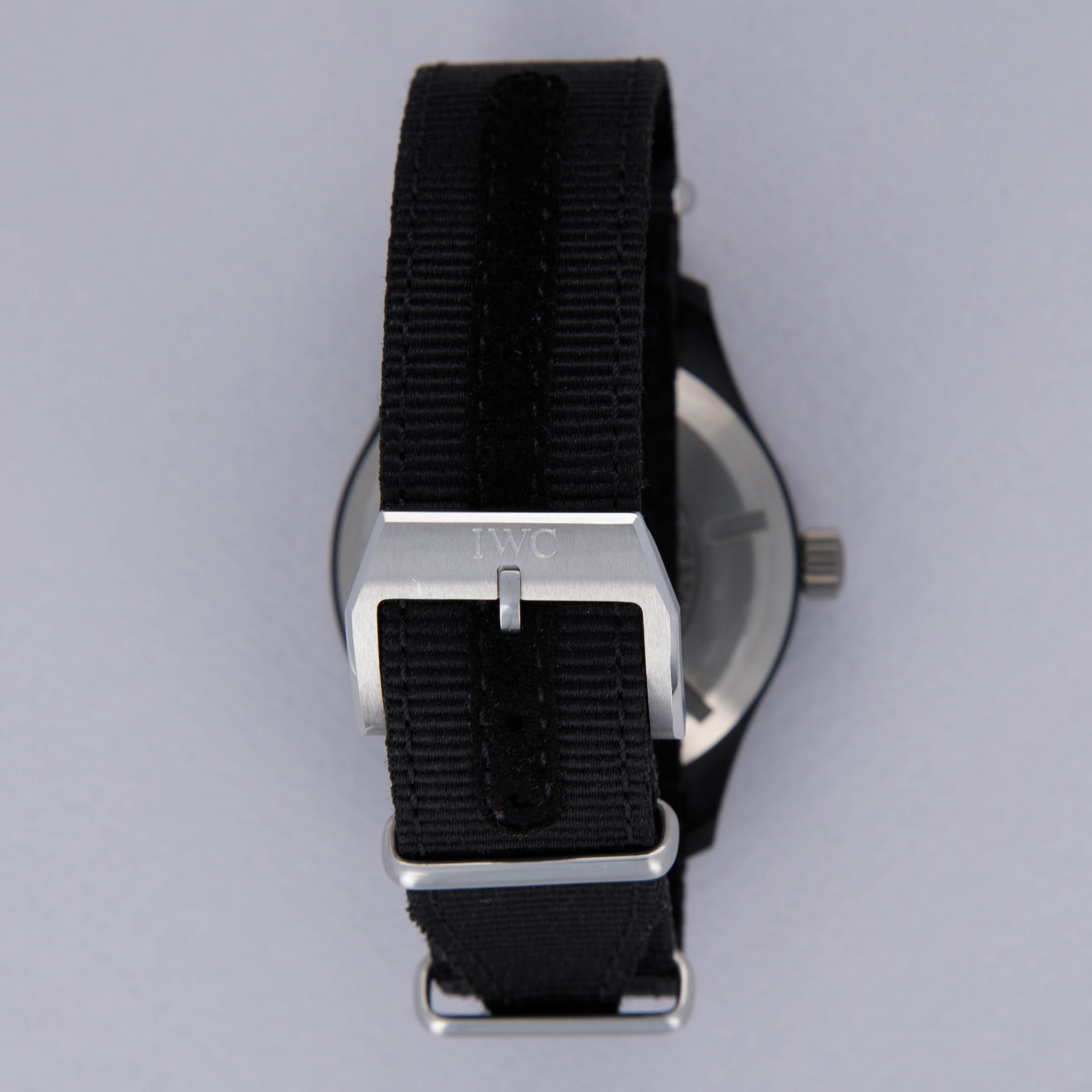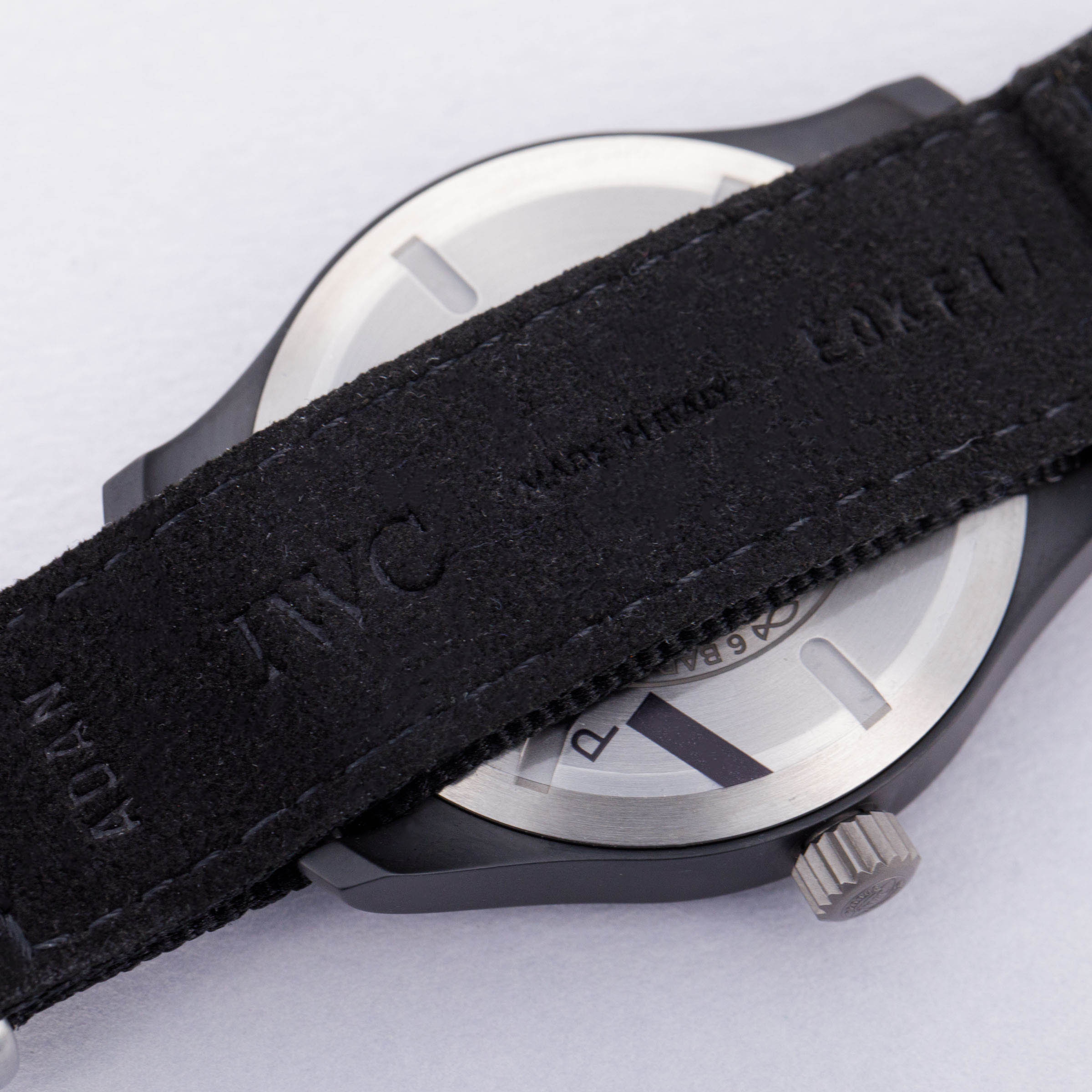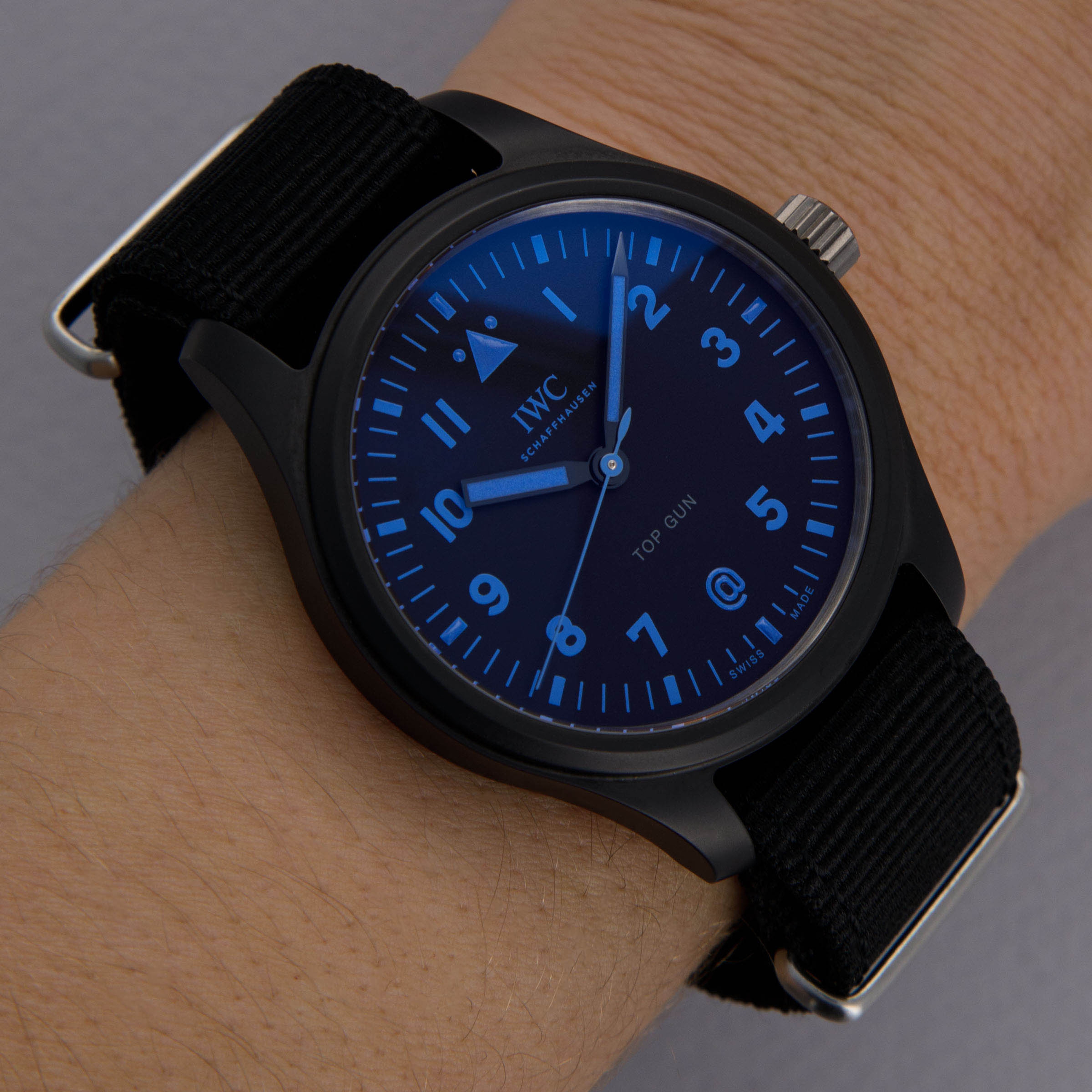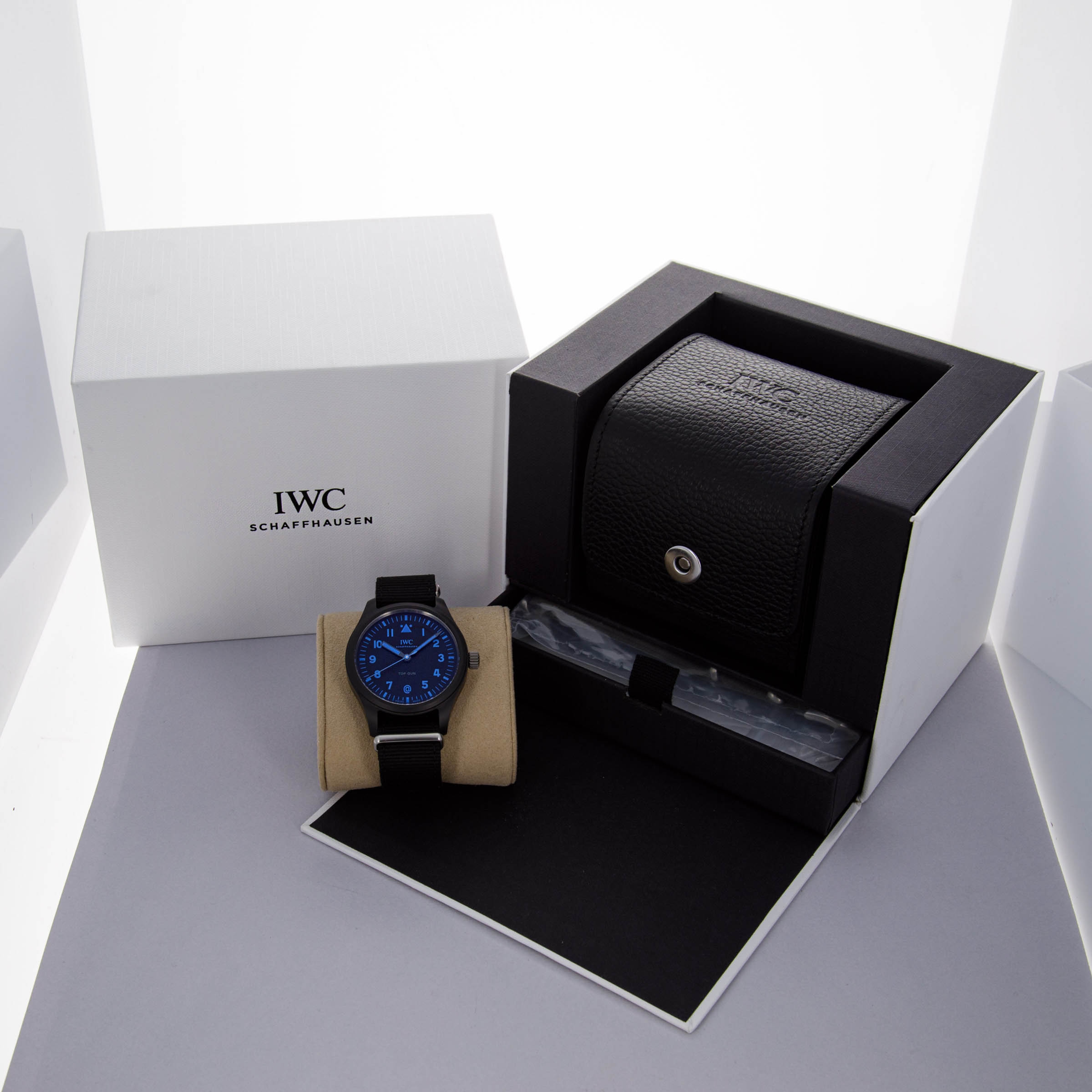 Incredibly rare and equally stunning, this special edition IWC Pilot Top Gun boasts a subtle hint as to its limited quantity through its blue inscriptions and tasteful @ symbol.