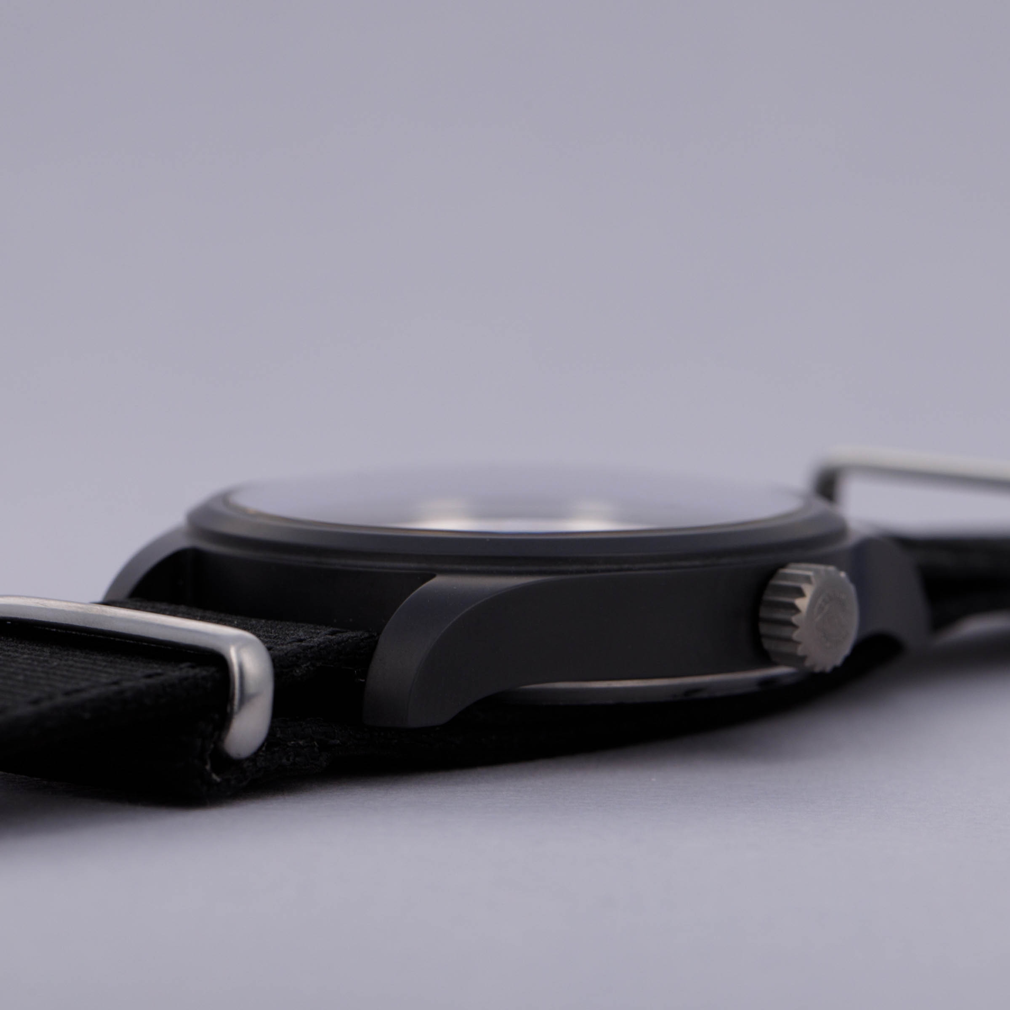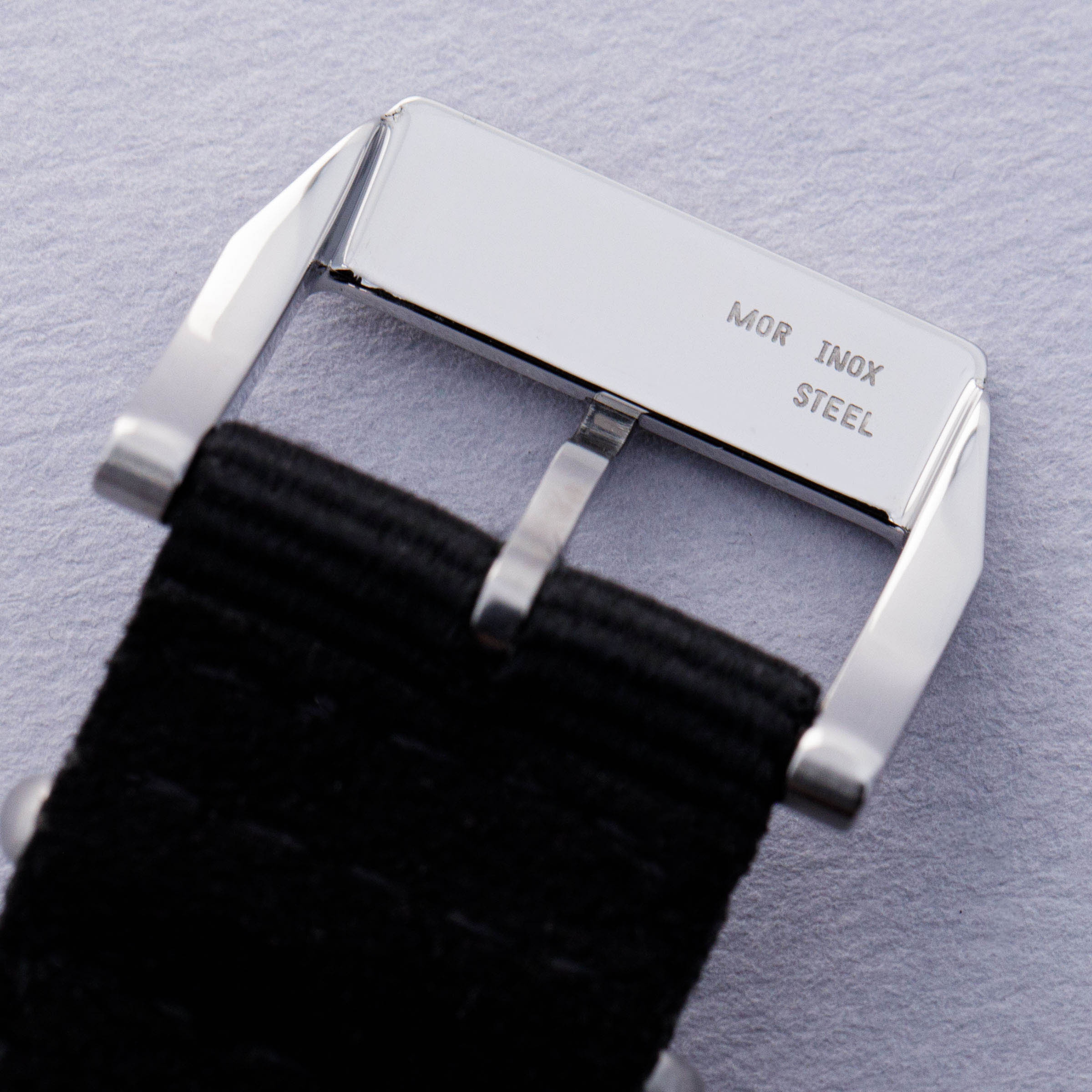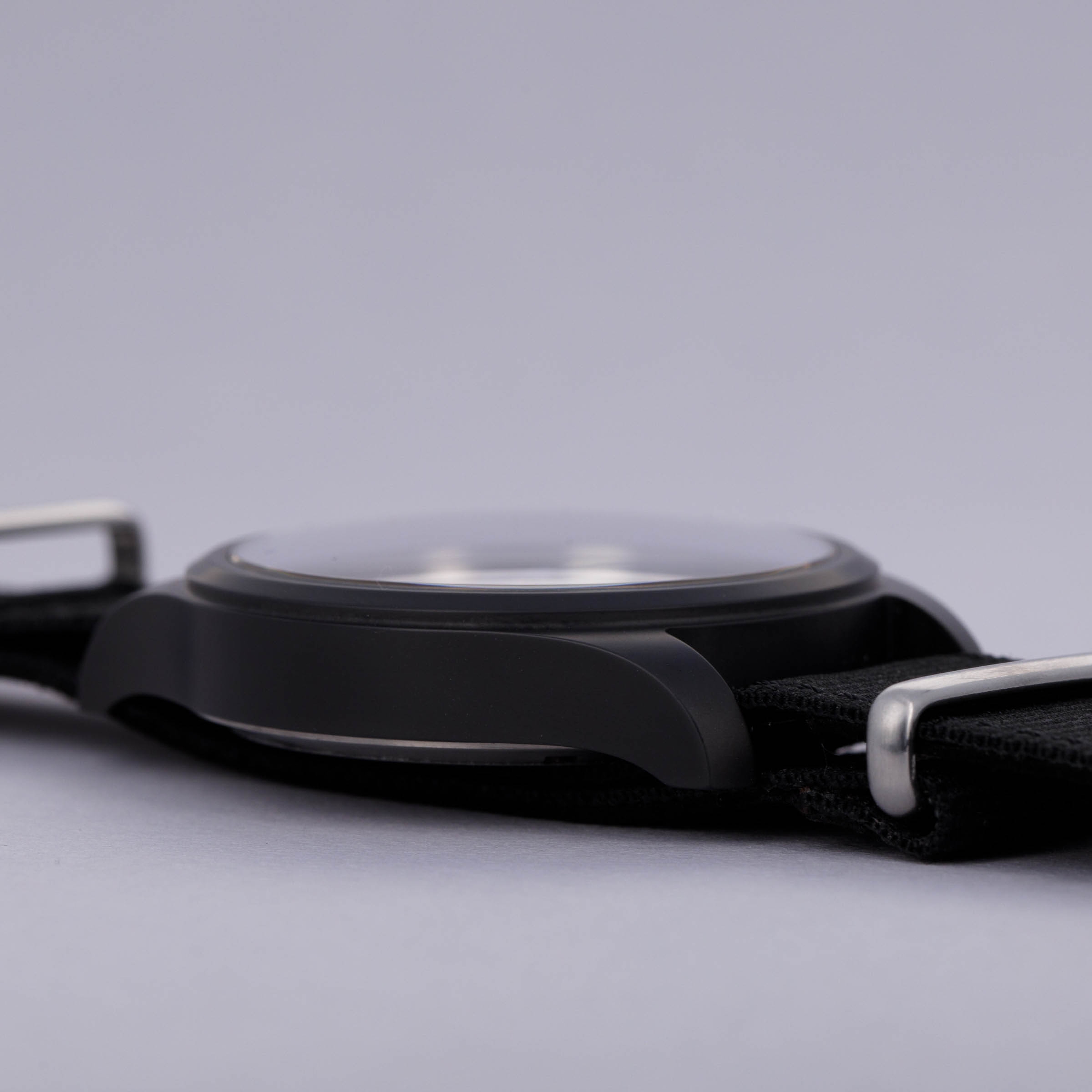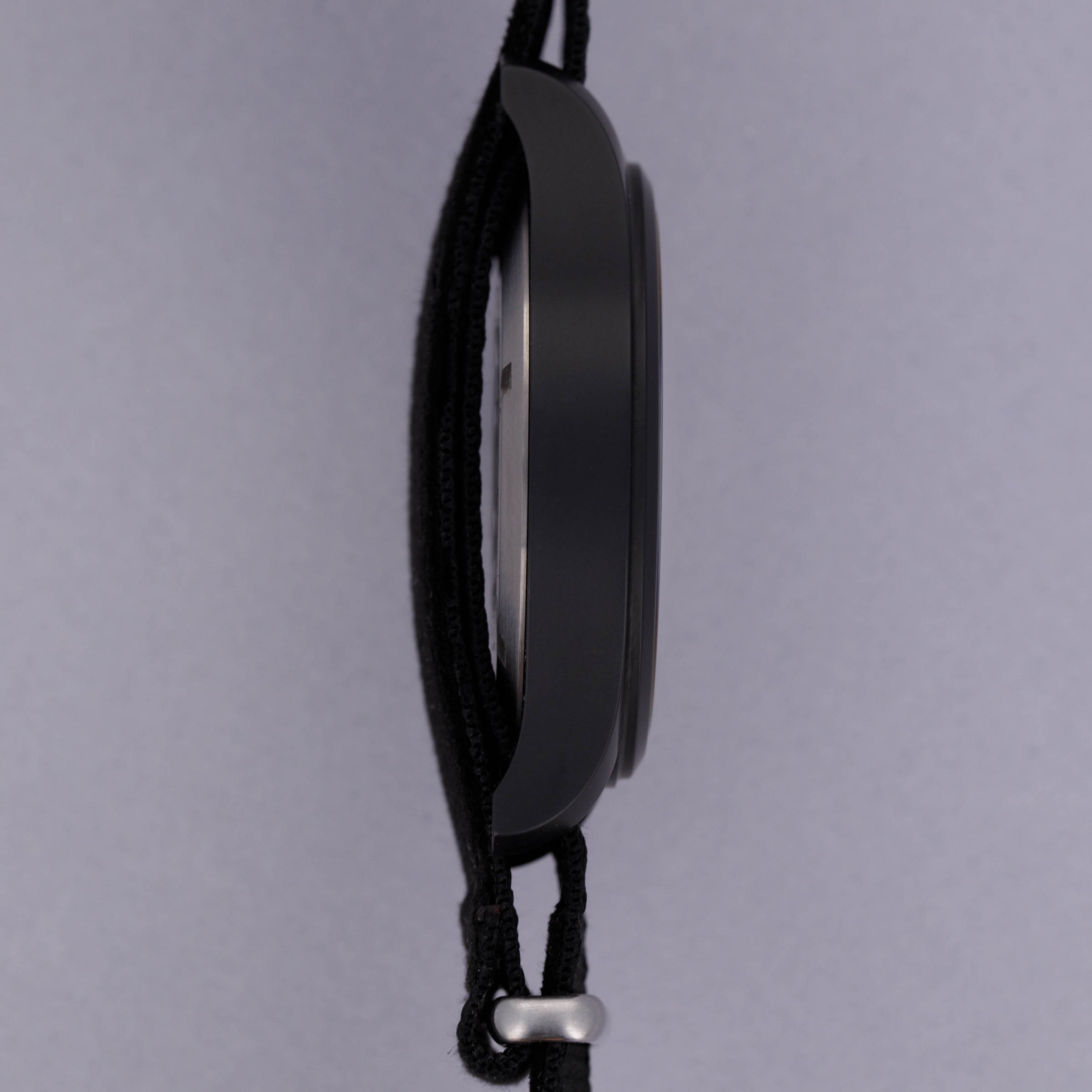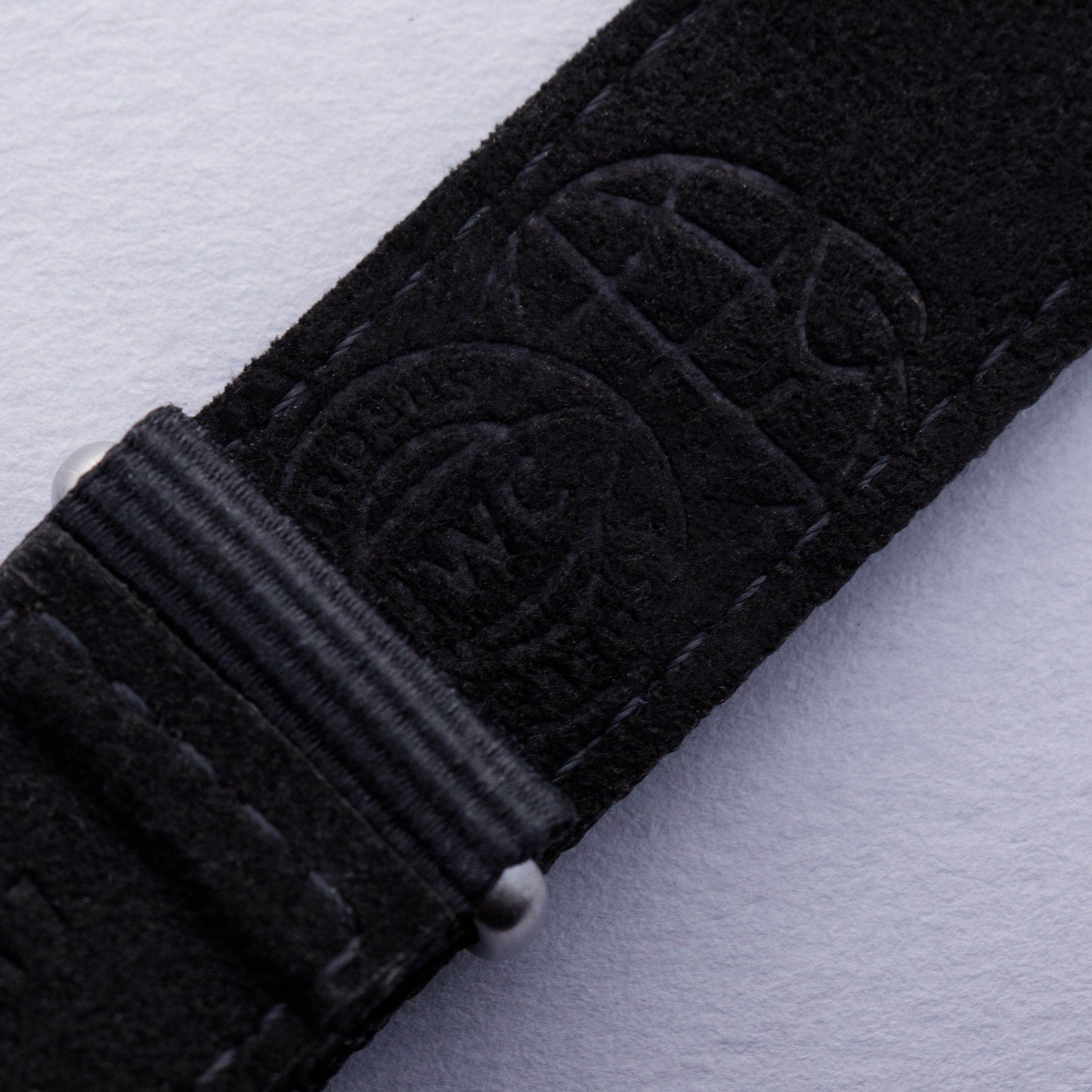 Launched in secret in 2023 as a special edition IWC Pilot Top Gun for “Watches@” - a private watch group made up of Google employees, the IWC Pilot Top Gun ref. IW326904 that we have here is a sleek and understated timepiece that has been designed to fly under the radar exactly like the characters in the film the watch was inspired by. While this model’s exact production quantities are unknown at the moment, this is likely the first time this watch has appeared on the open market, making it a rare beast indeed. Offered in a black ceramic case, with a matching black dial that has its date window at 3 o’clock deleted and IWC’s iconic square hour hand, the IW326904’s design is stunning However, its most telling detail is the array of blue inscriptions throughout its dial and luminous @ symbol, which is Watch@’s logo, at 6 o’clock which subtly hints at its limited edition status and obscurity within IWC’s catalog.