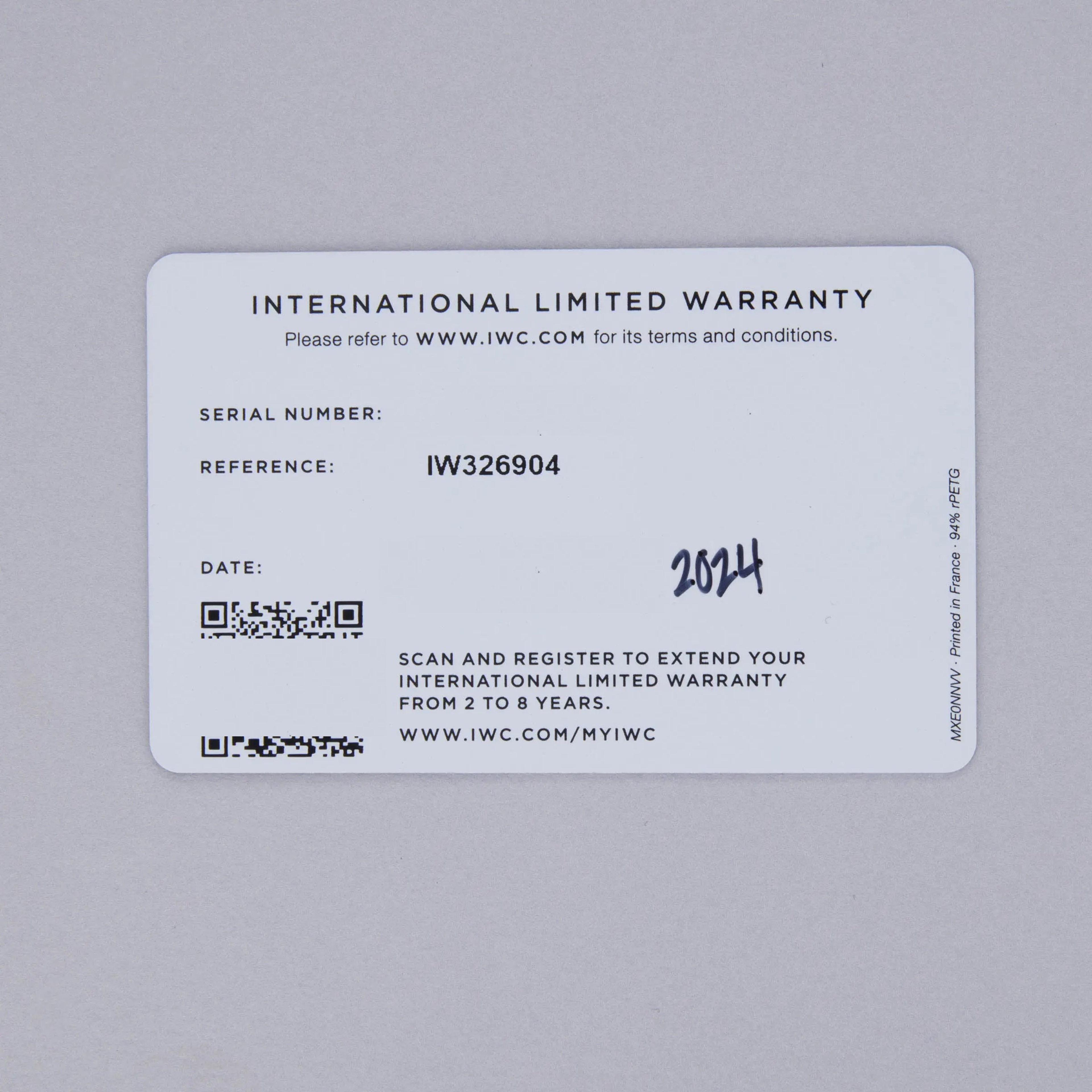 Boasting a symmetrical blacked-out dial thanks to its deleted date aperture, the IW326904 immediately reveals itself as being a special edition watch through its @ symbol at 6 o'clock and beautiful blue inscriptions throughout.