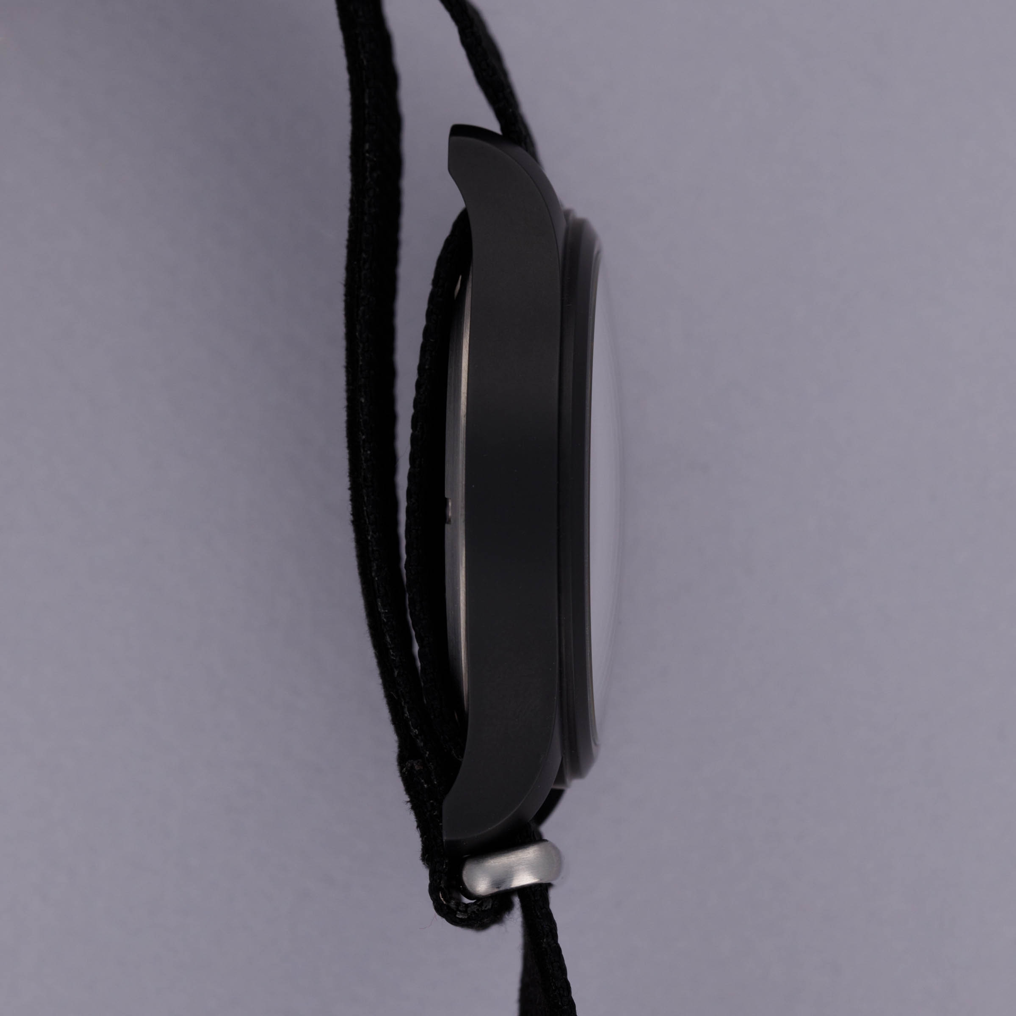 Launched in secret in 2023 as a special edition IWC Pilot Top Gun for “Watches@” - a private watch group made up of Google employees, the IWC Pilot Top Gun ref. IW326904 that we have here is a sleek and understated timepiece that has been designed to fly under the radar exactly like the characters in the film the watch was inspired by. While this model’s exact production quantities are unknown at the moment, there is no question that this is a rare beast indeed. Offered in a black ceramic case, with a matching black dial that has its date window at 3 o’clock deleted and IWC’s iconic square hour hand, the IW326904’s design is stunning However, its most telling detail is the array of blue inscriptions throughout its dial and luminous @ symbol, which is Watch@’s logo, at 6 o’clock which subtly hints at its limited edition status and obscurity within IWC’s catalog.