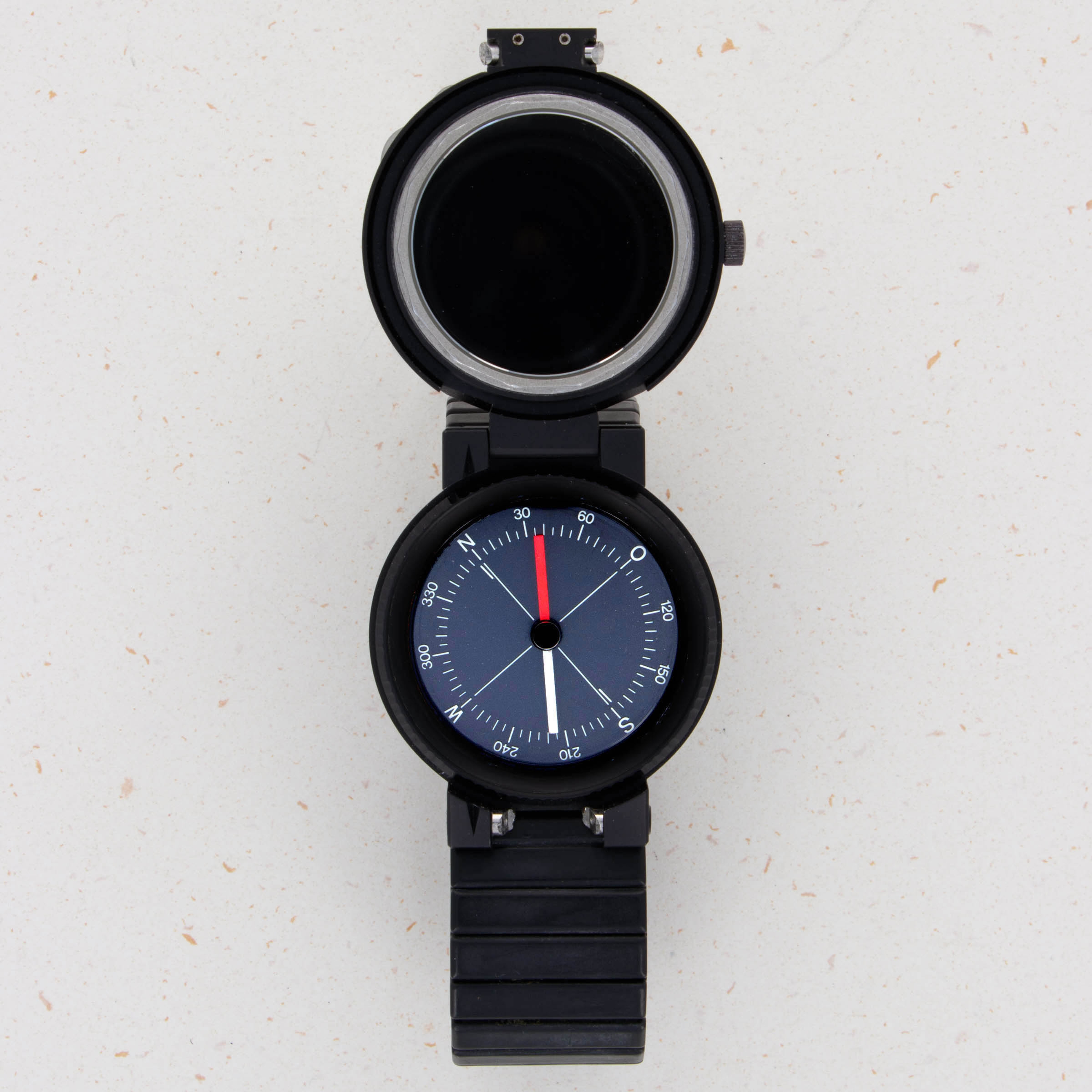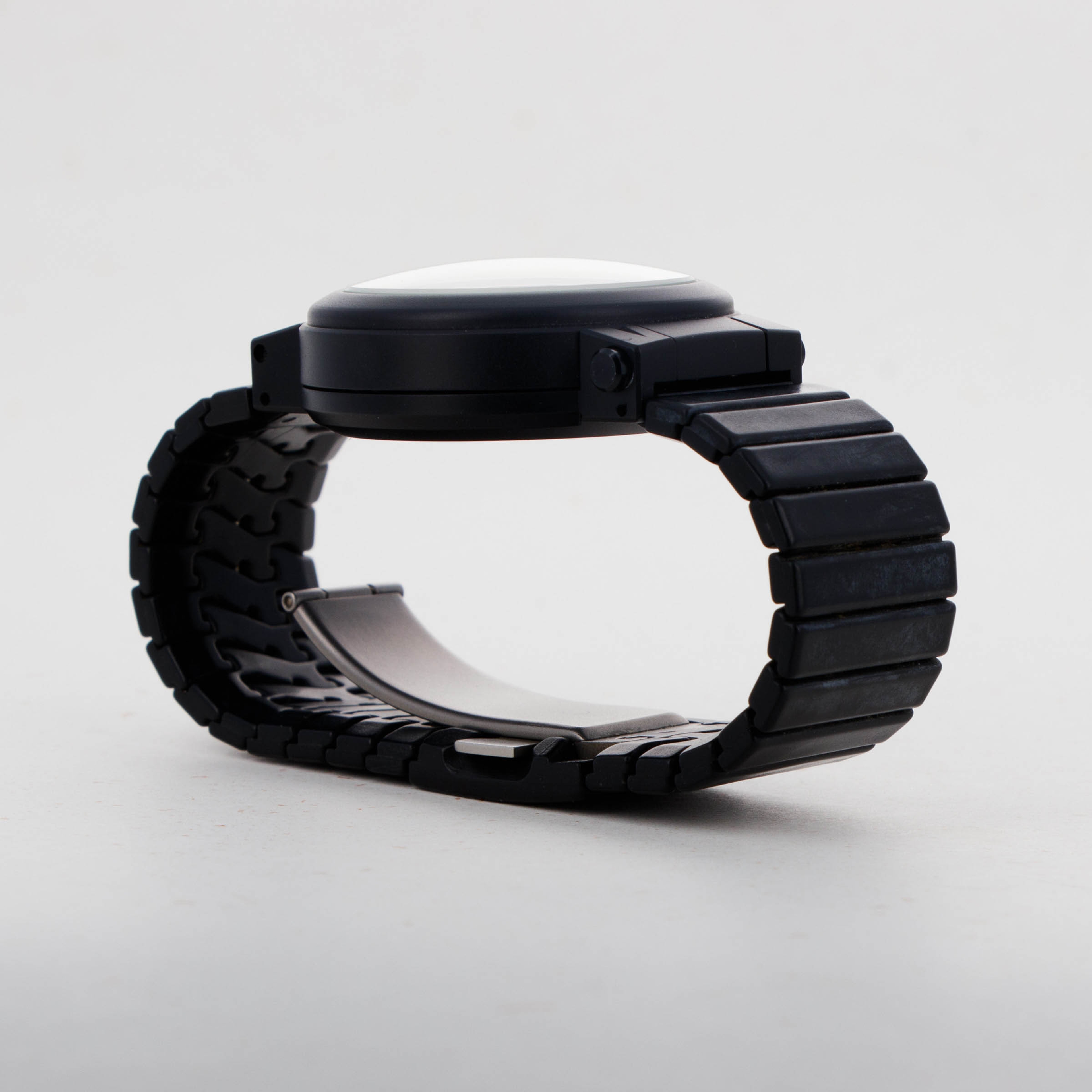 Made from PVD-coated aluminum, the Compass watch's black bracelet and case are an incredibly sleek combination that add to its already minimalist design aesthetic. However, more importantly, aluminum's anti-magnetic properties allow the compass to operate as intended.