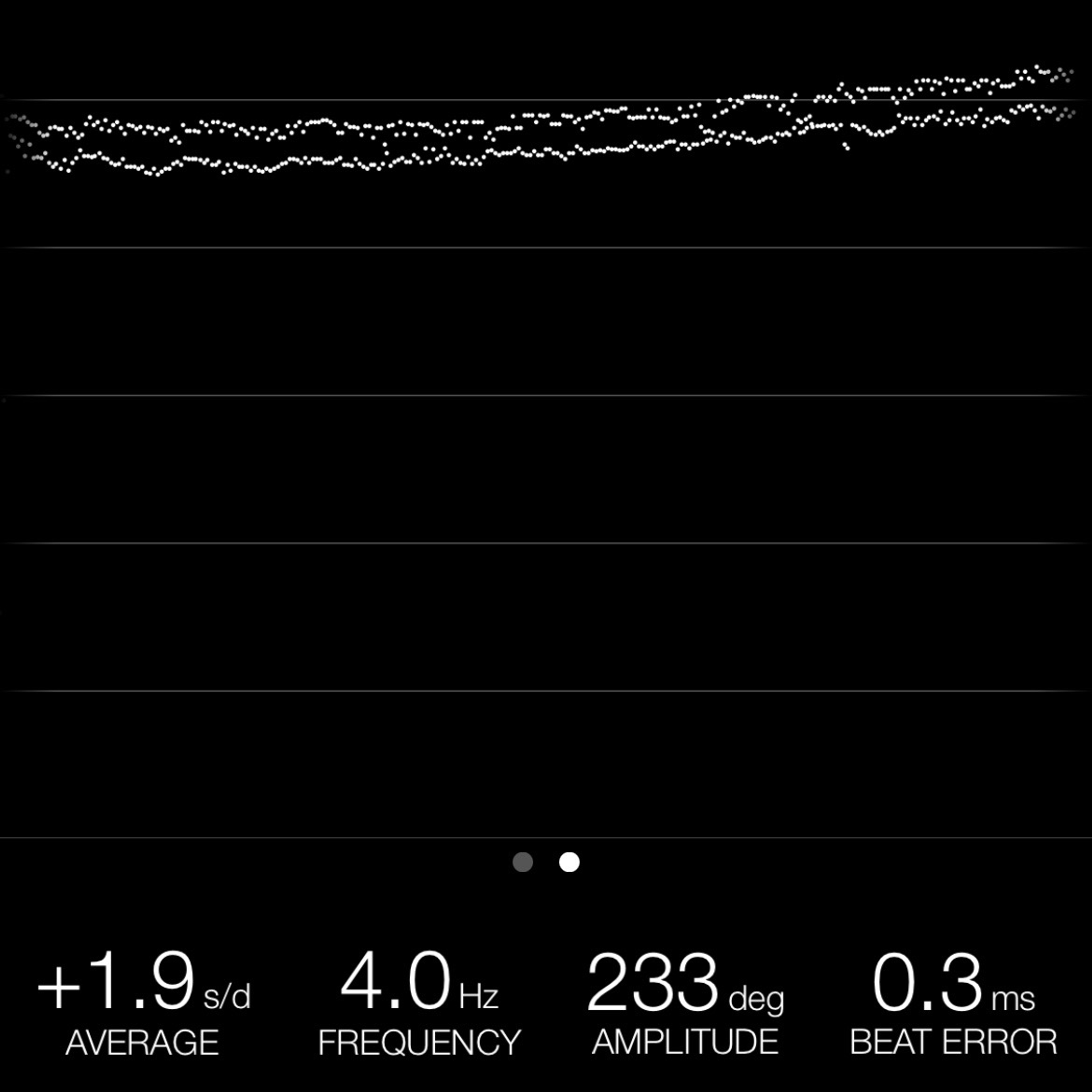 This reading was taken (crown down) with a ONEOF Accuracy Boutique Edition timing machine at time of cataloging. It is provided as a courtesy only, and shall not be construed as a warranty or guarantee of any kind. Please refer to our terms and conditions of sale for more information.