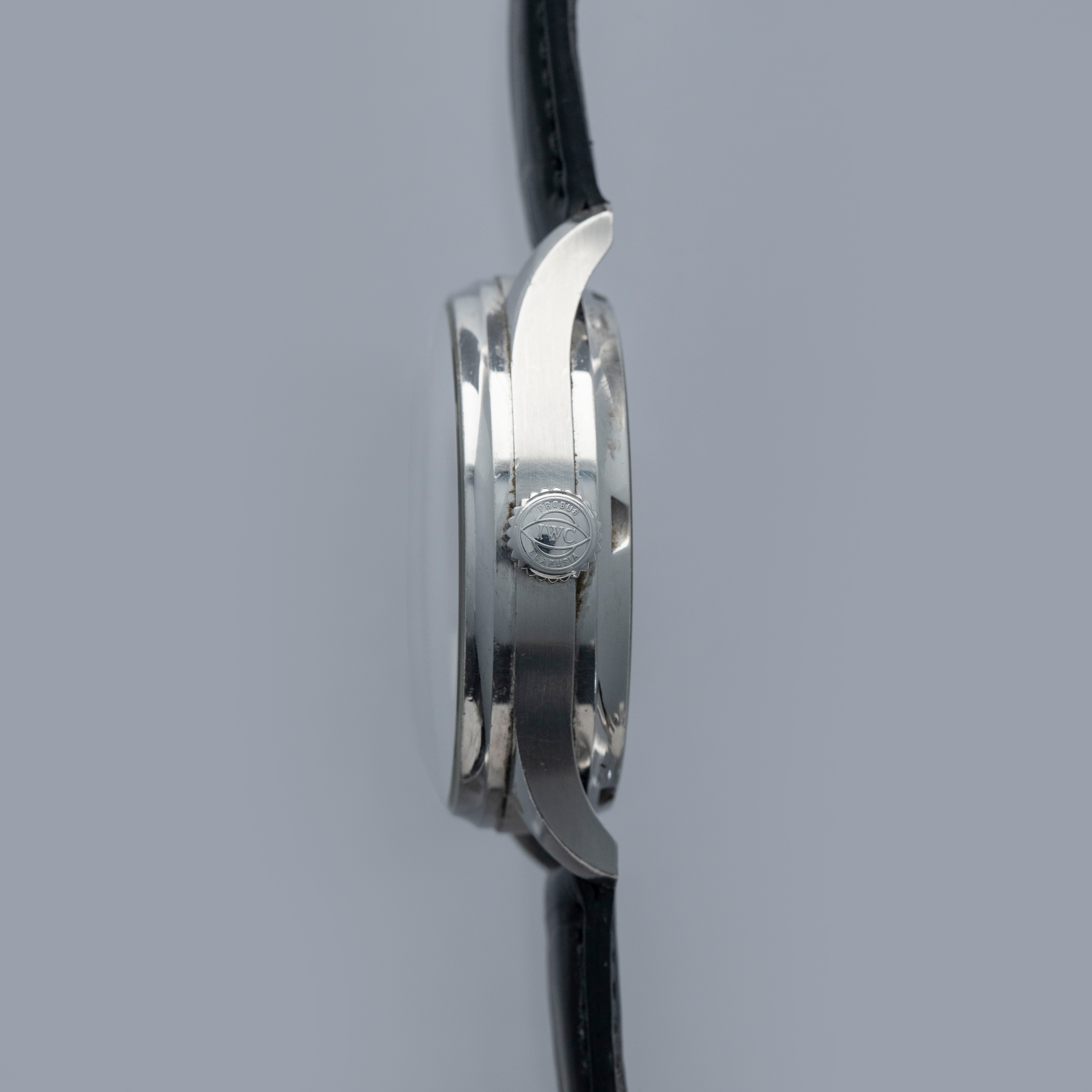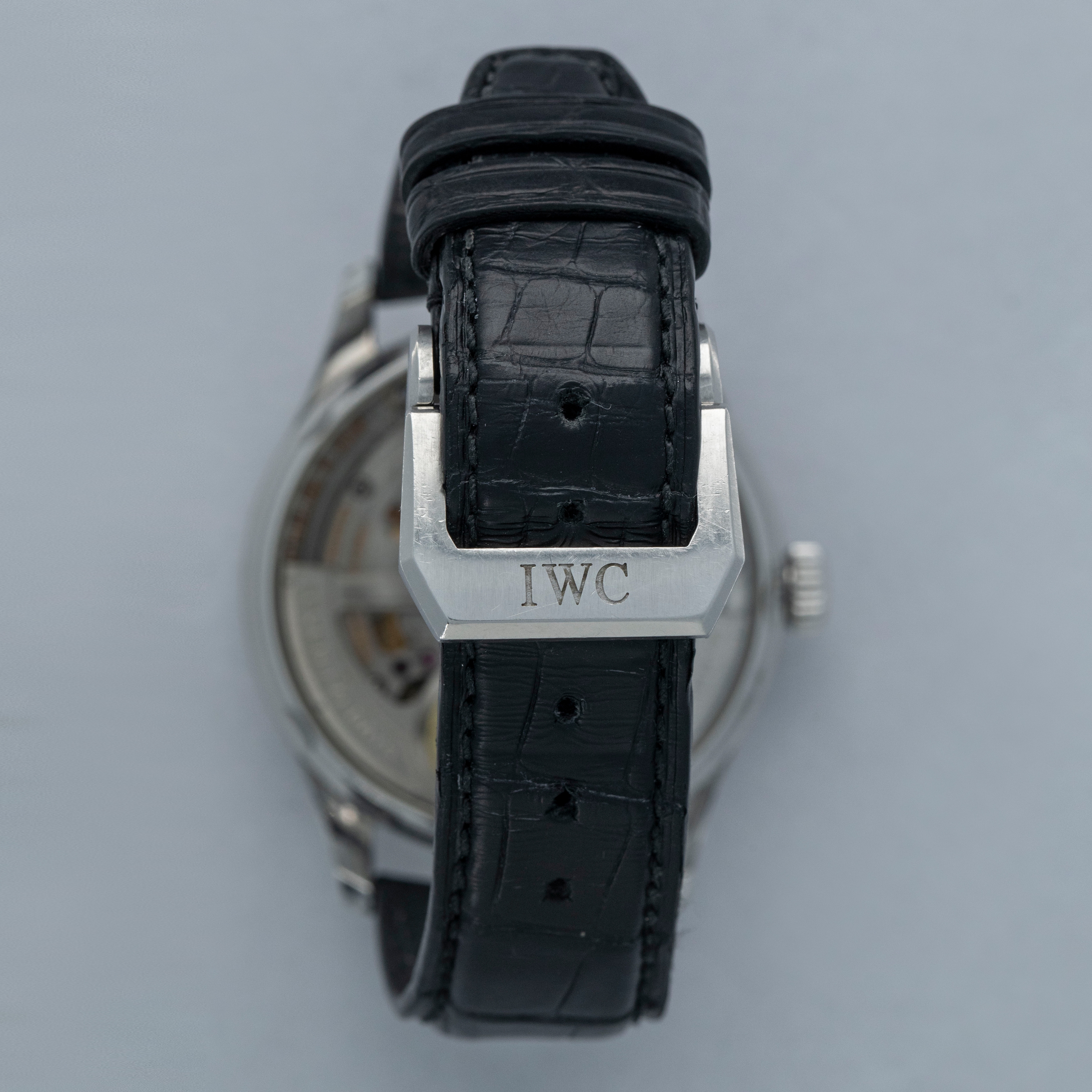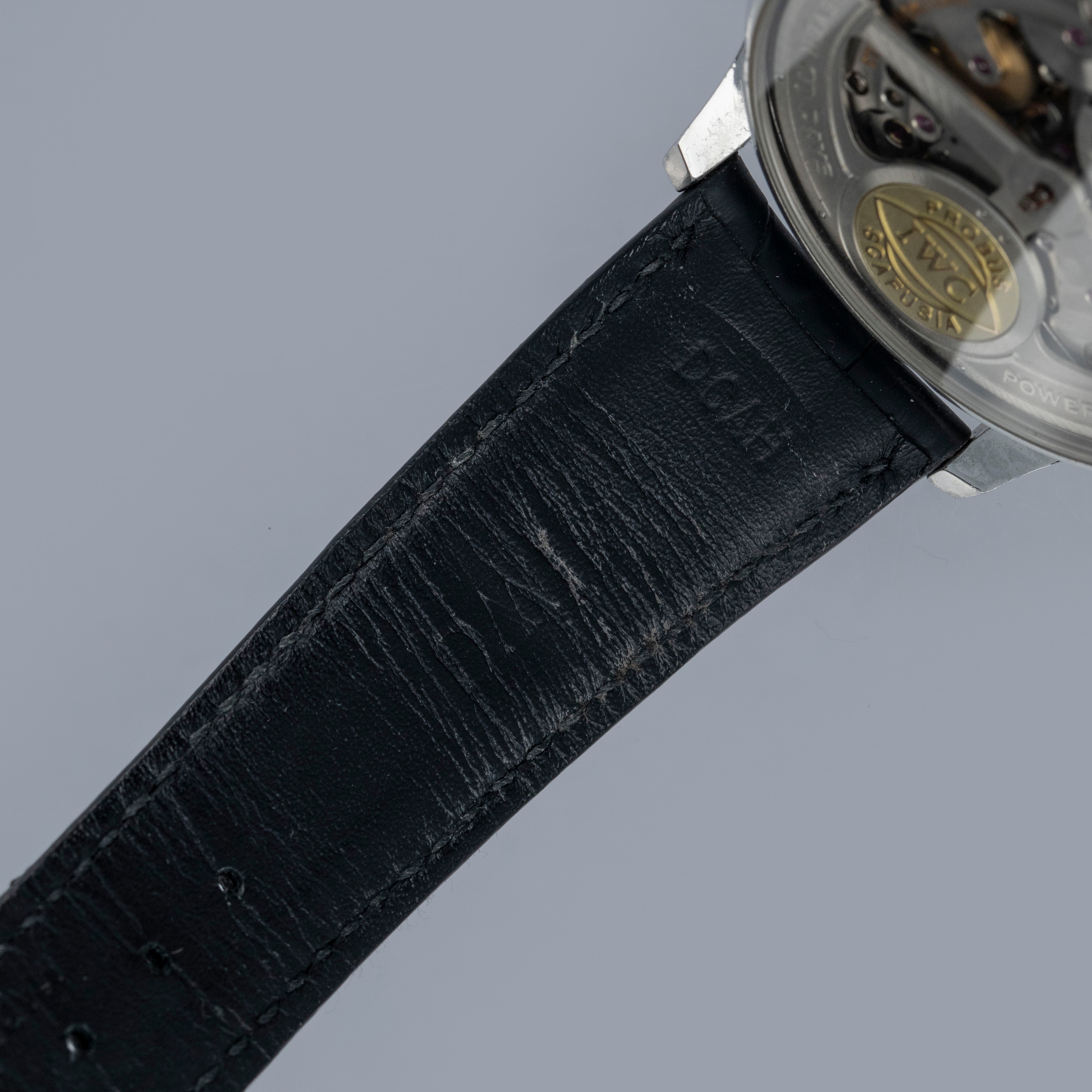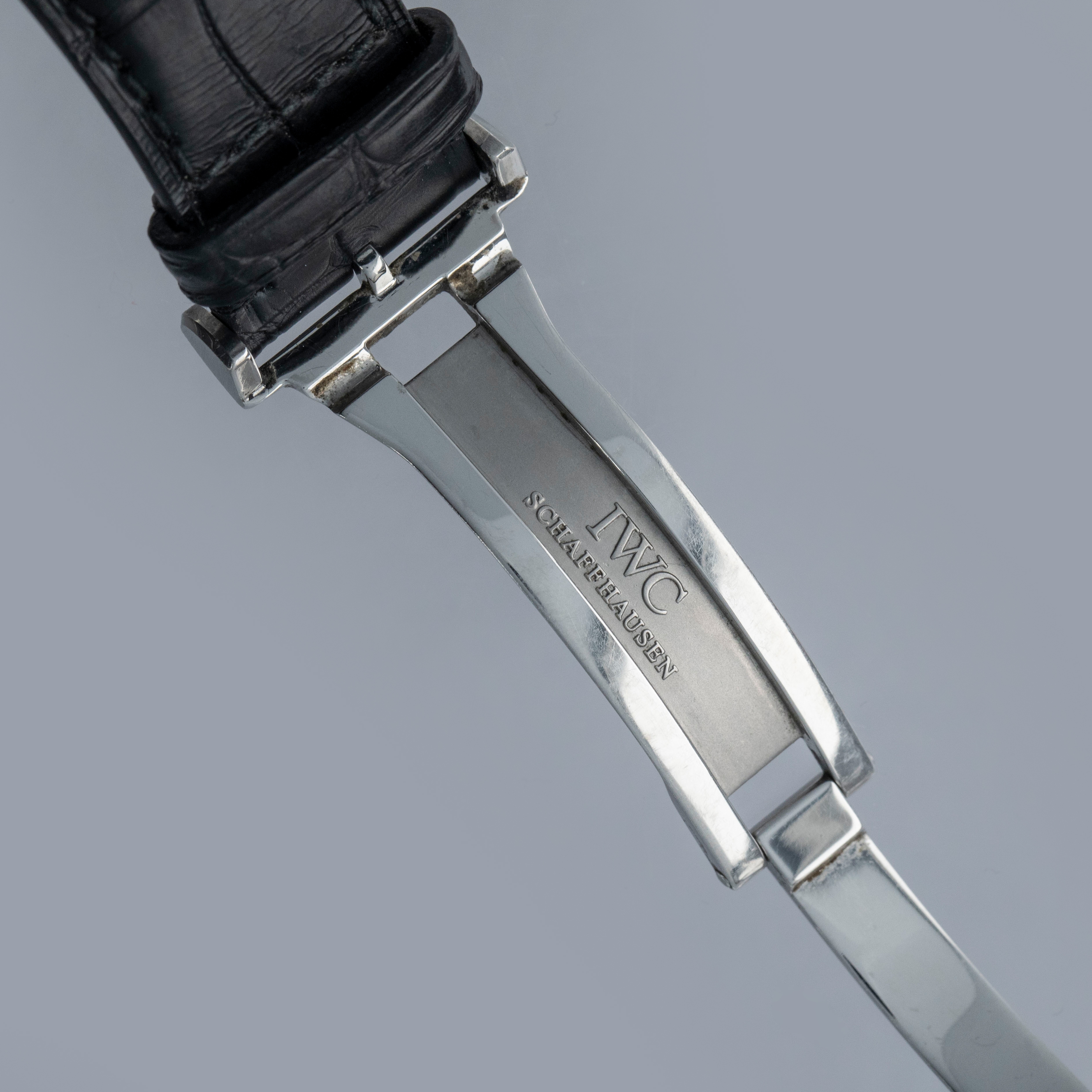 Watch is in overall excellent condition. The steel case is well defined with a number of surface scratches and a few small nicks. The dial and blued hands are like new. Fitted with a black IWC alligator strap with steel deployant clasp in excellent condition. Comes with warranty card and booklet.