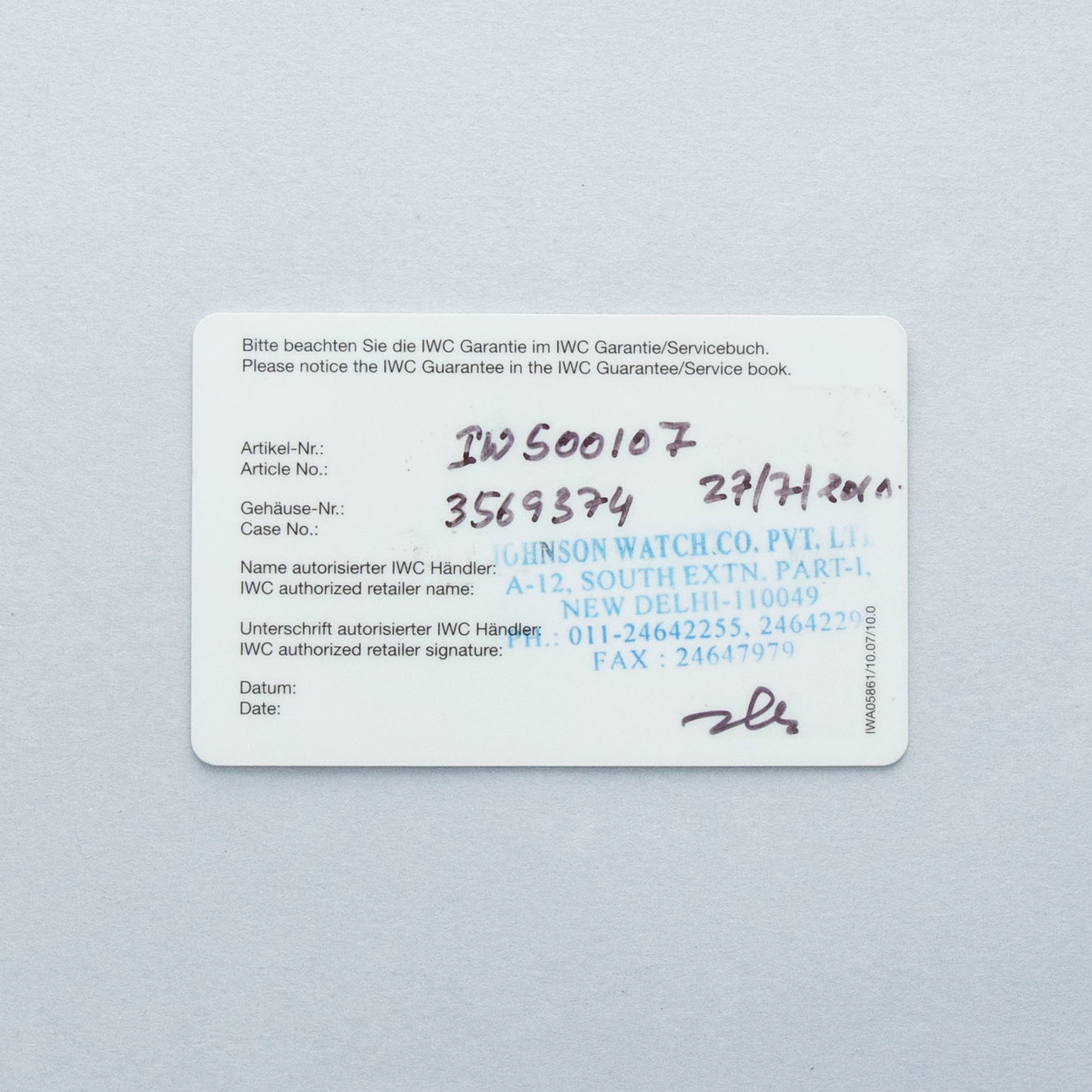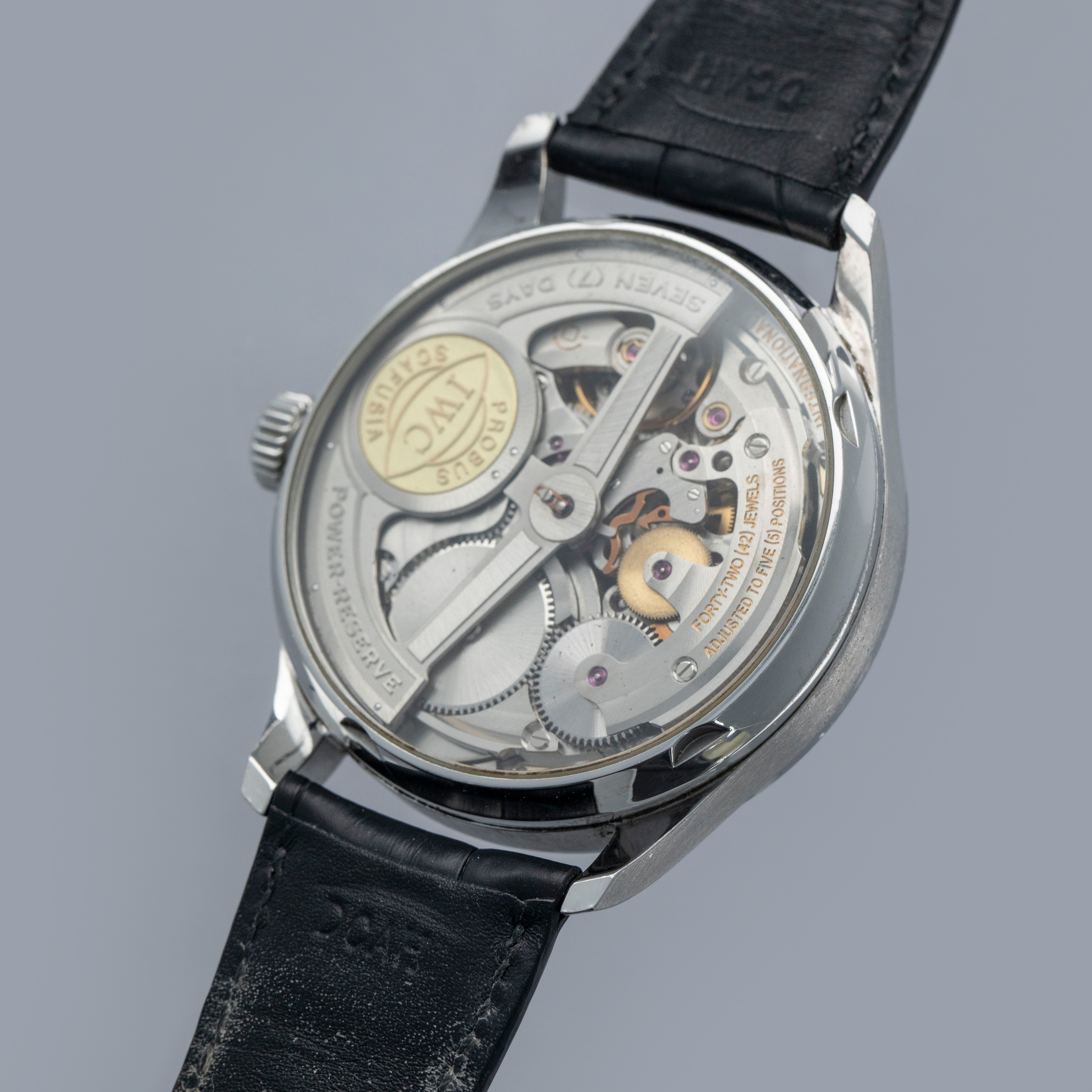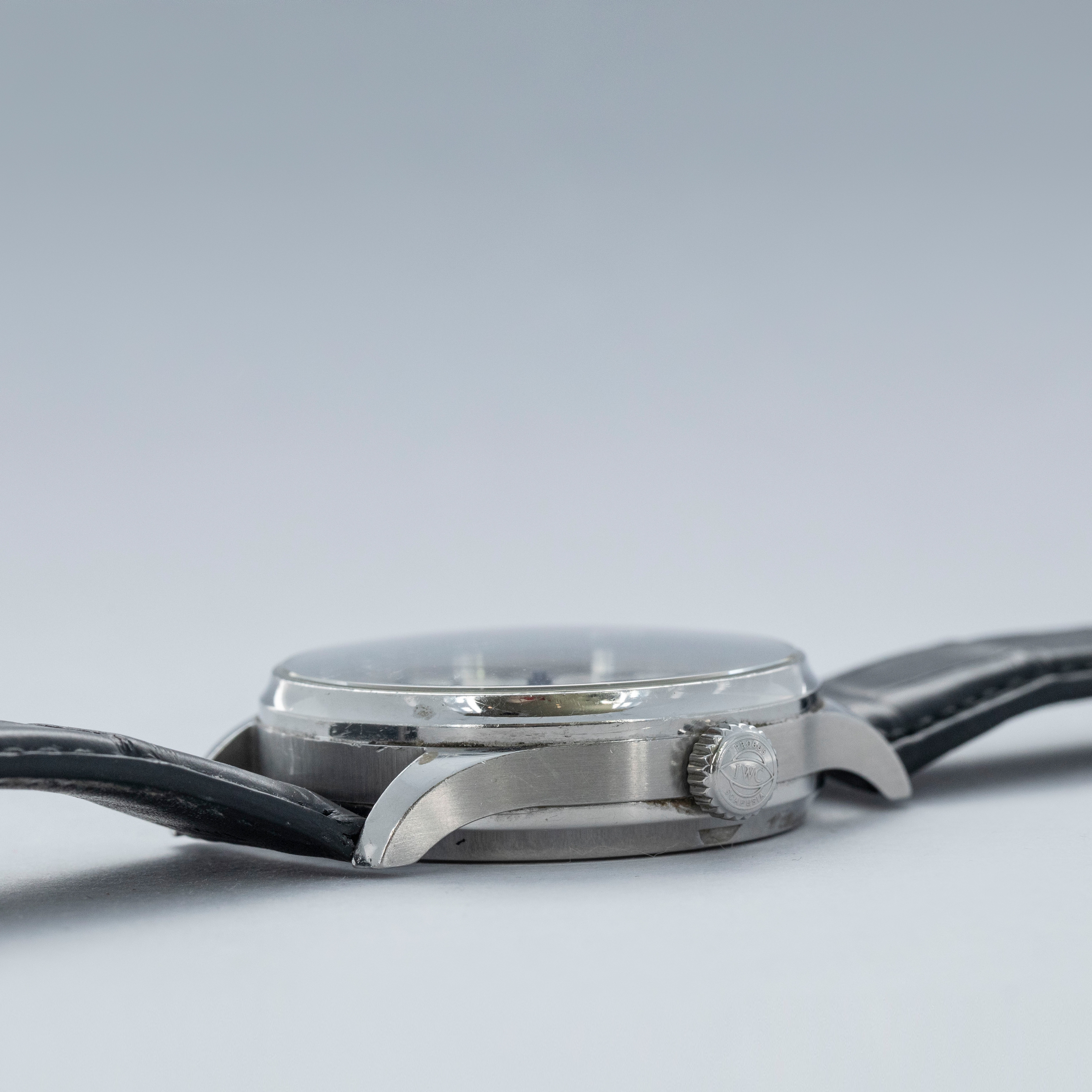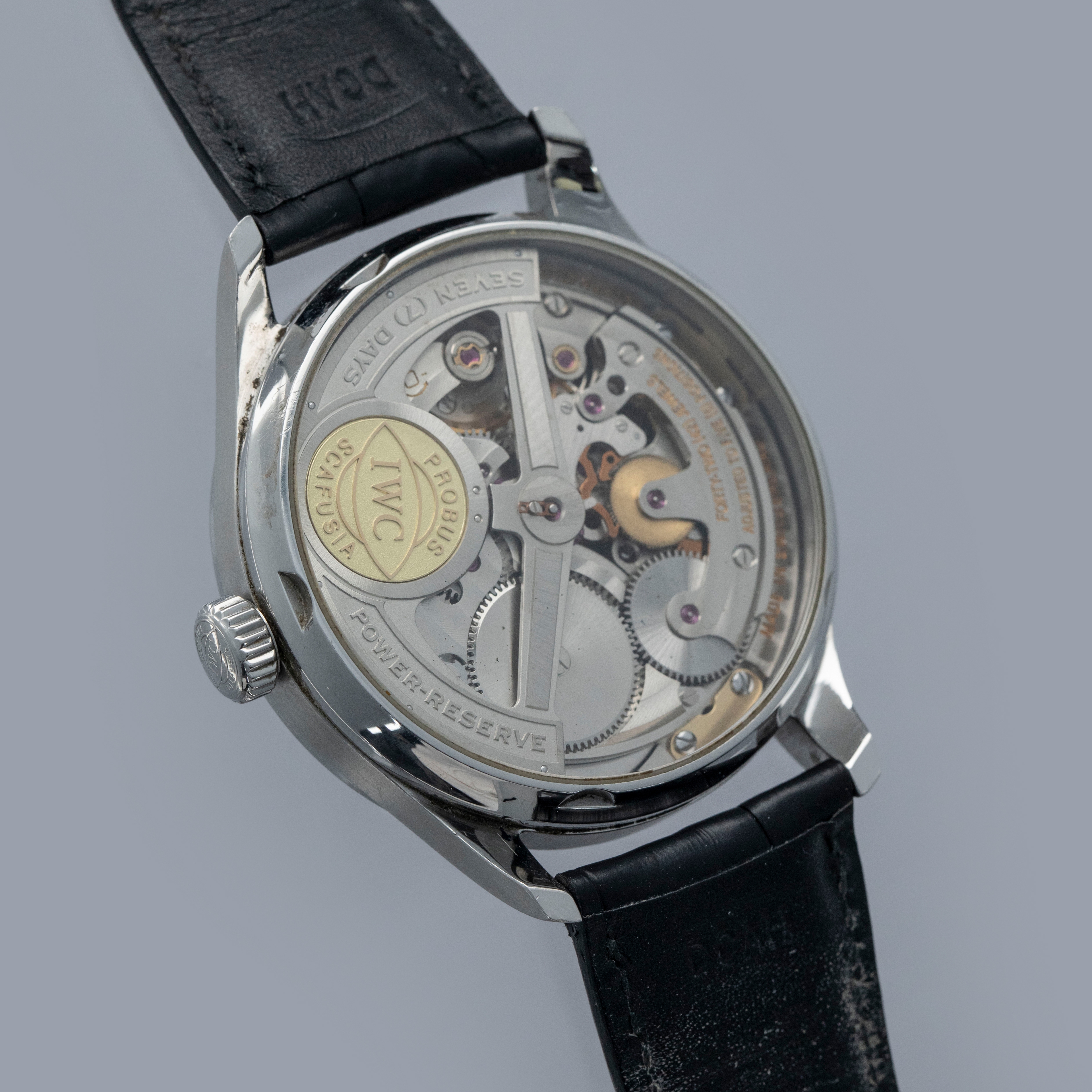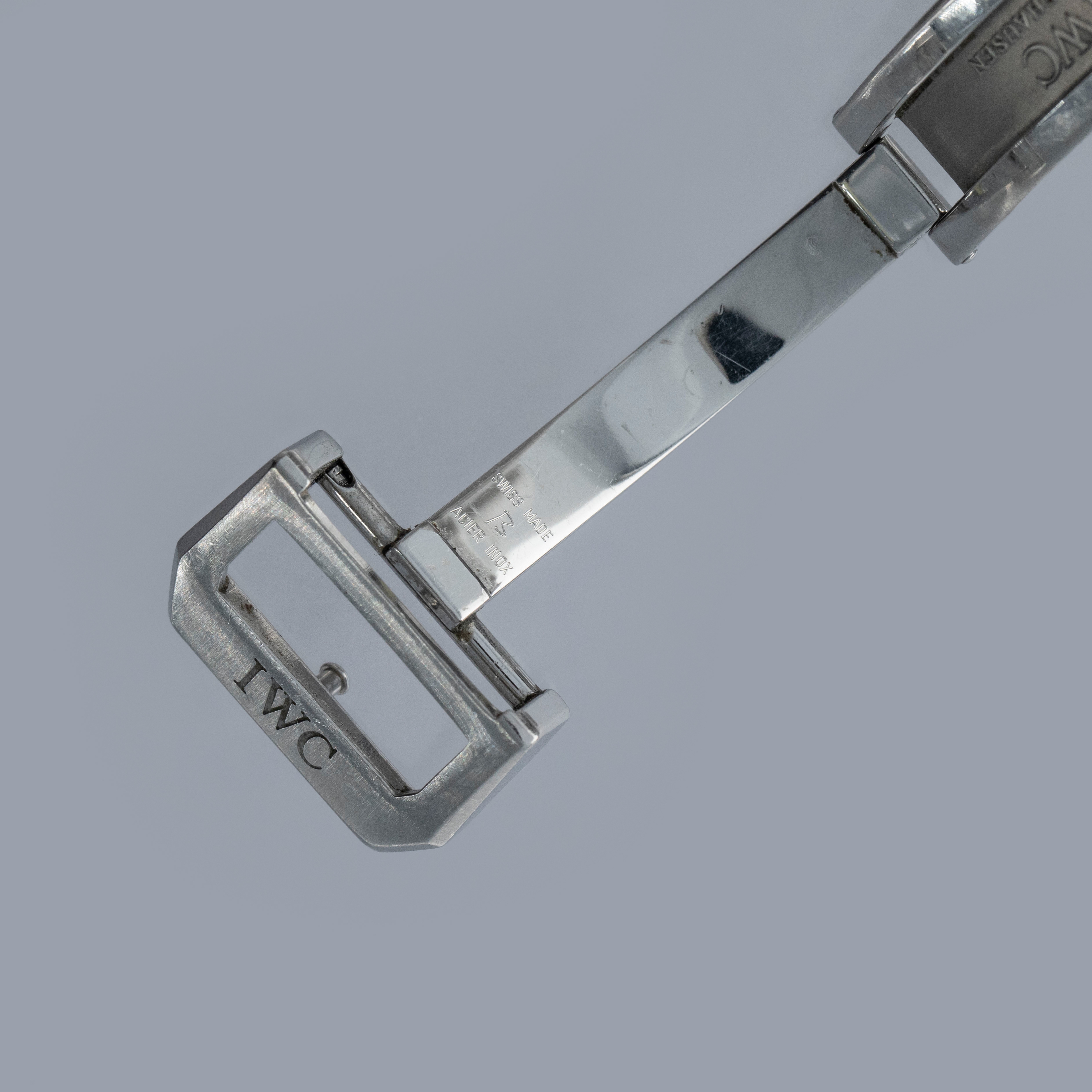 Watch is in overall excellent condition. The steel case is well defined with a number of surface scratches and a few small nicks. The dial and blued hands are like new. Fitted with a black IWC alligator strap with steel deployant clasp in excellent condition. Comes with warranty card and booklet.
