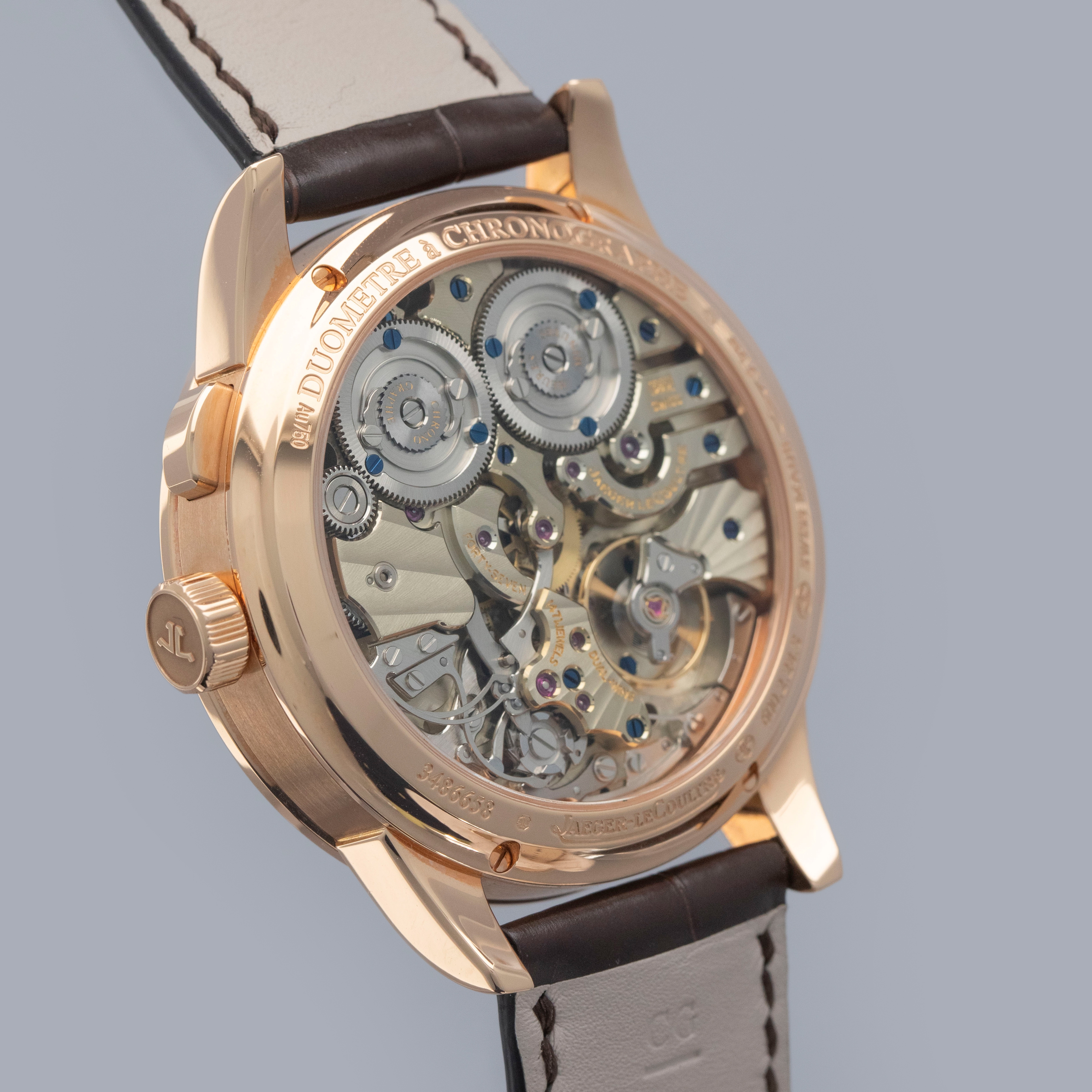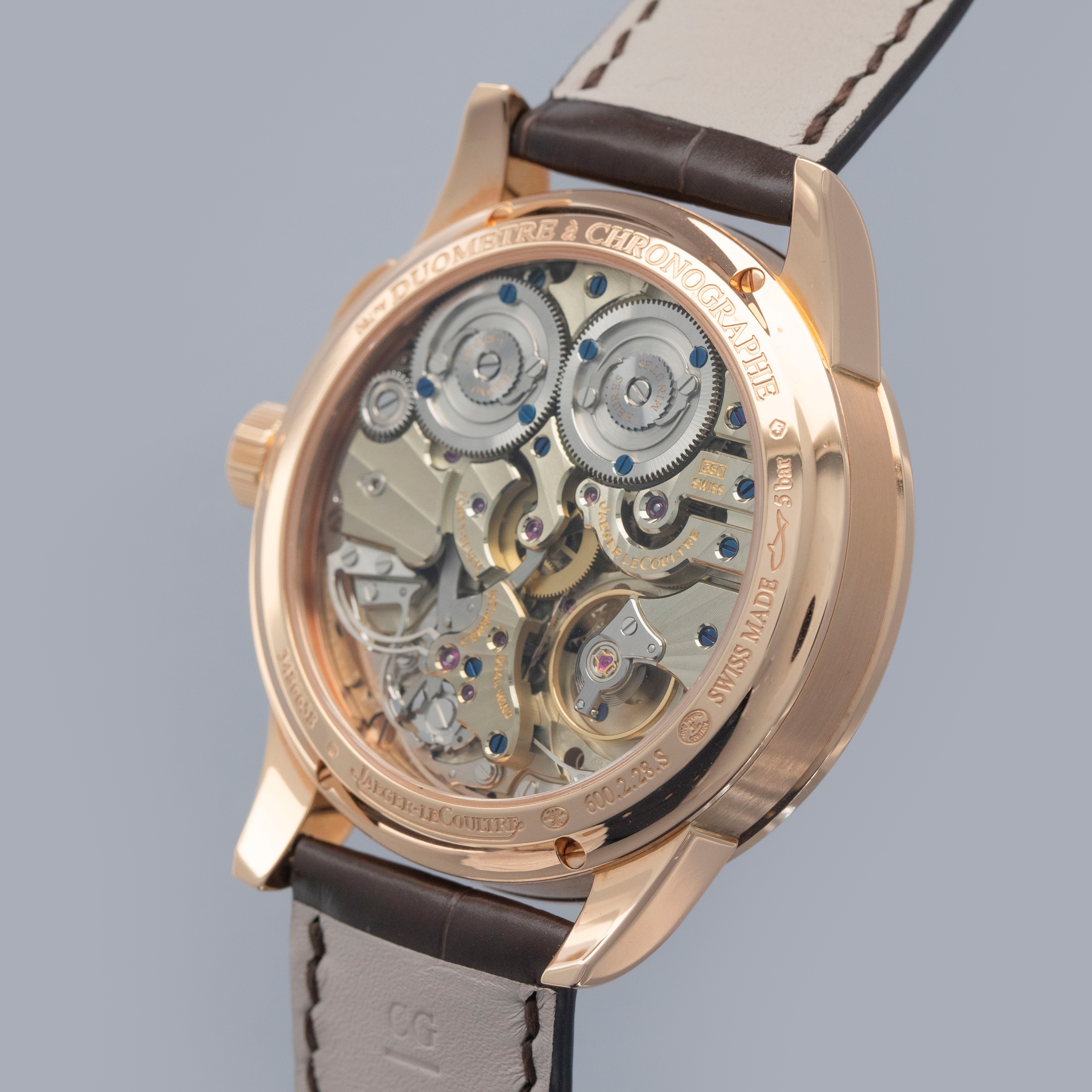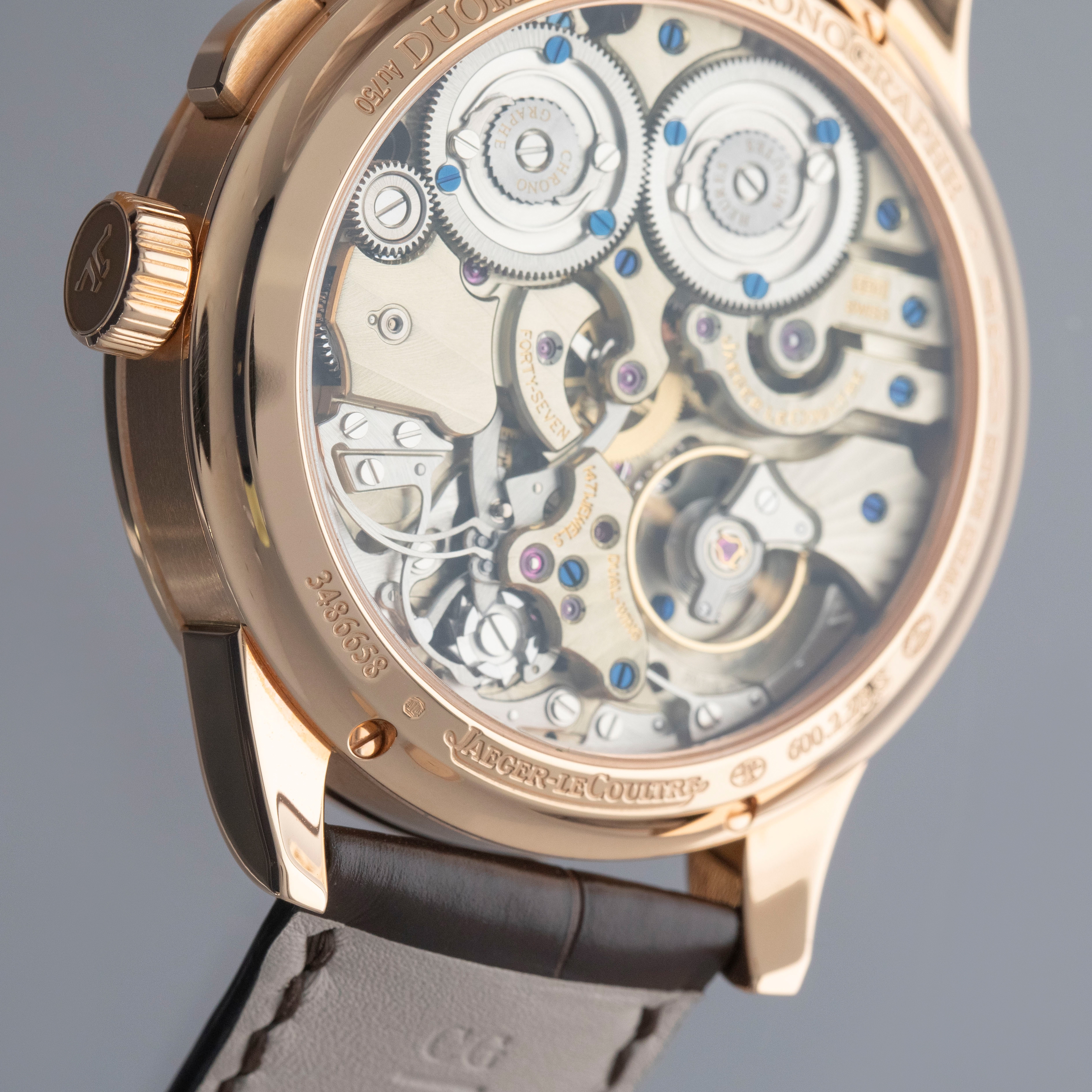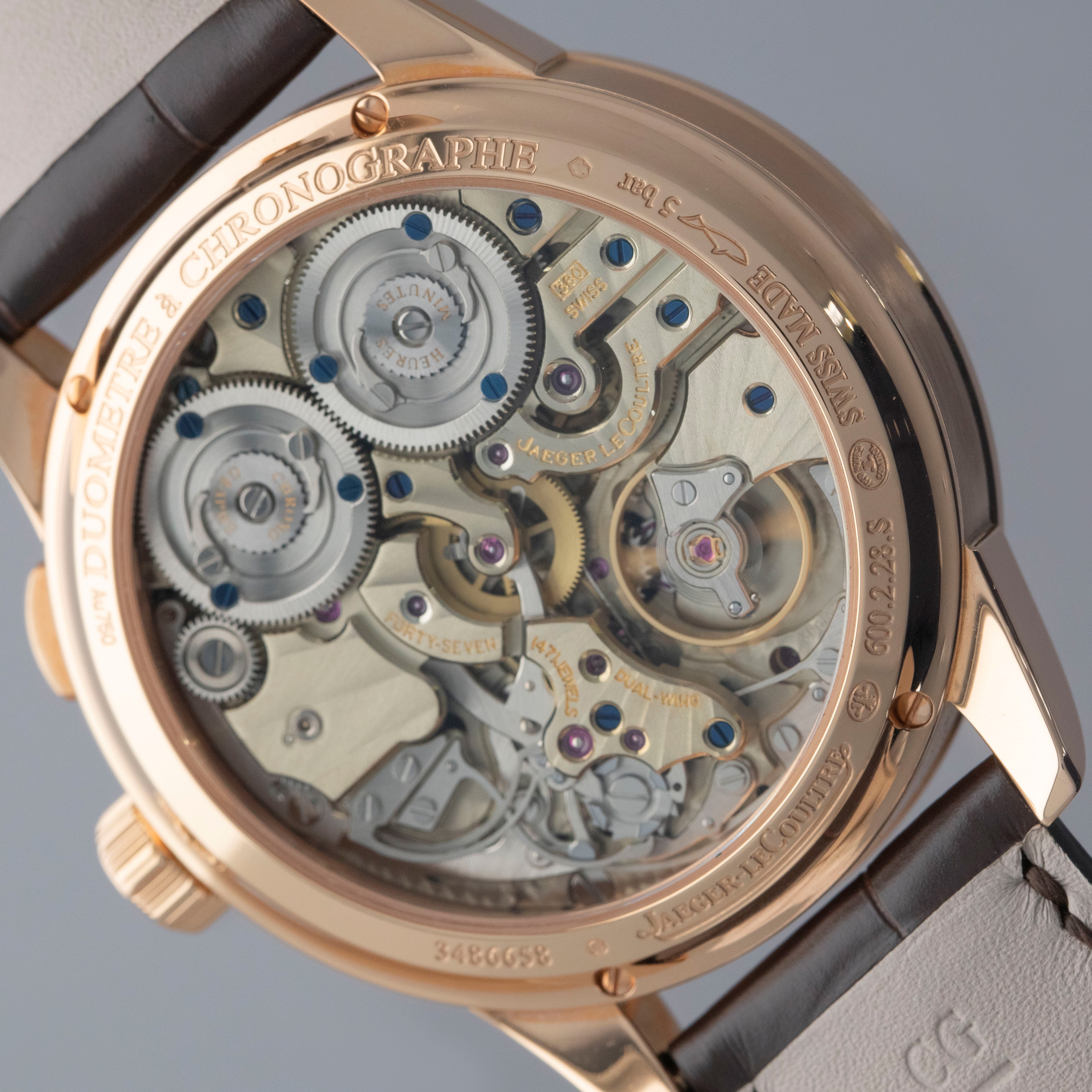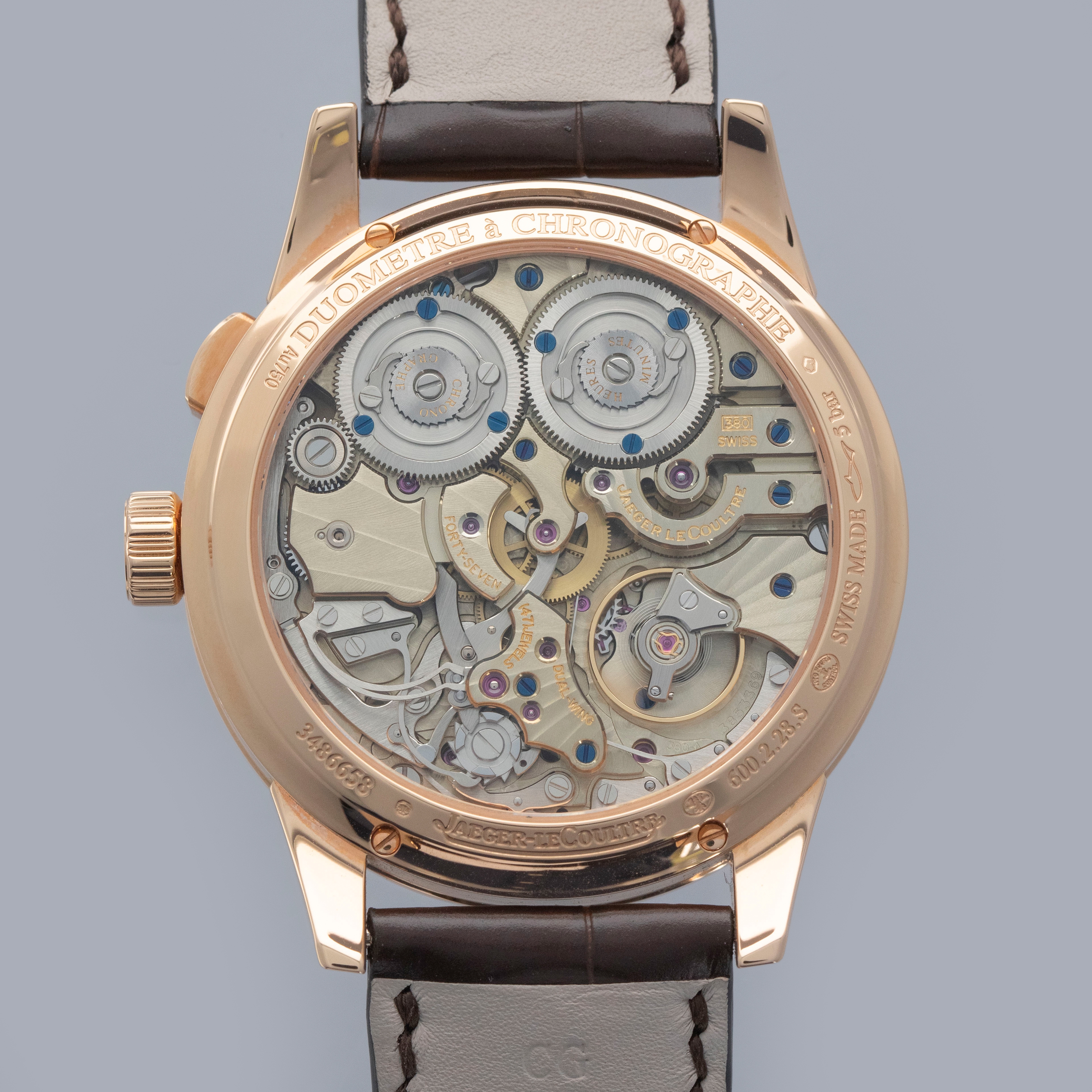 With its partially skeletonized design, dual power reserve indicators, and litany of complications, the Duometre's display showcases just how complicated the ref. Q6012421 is.