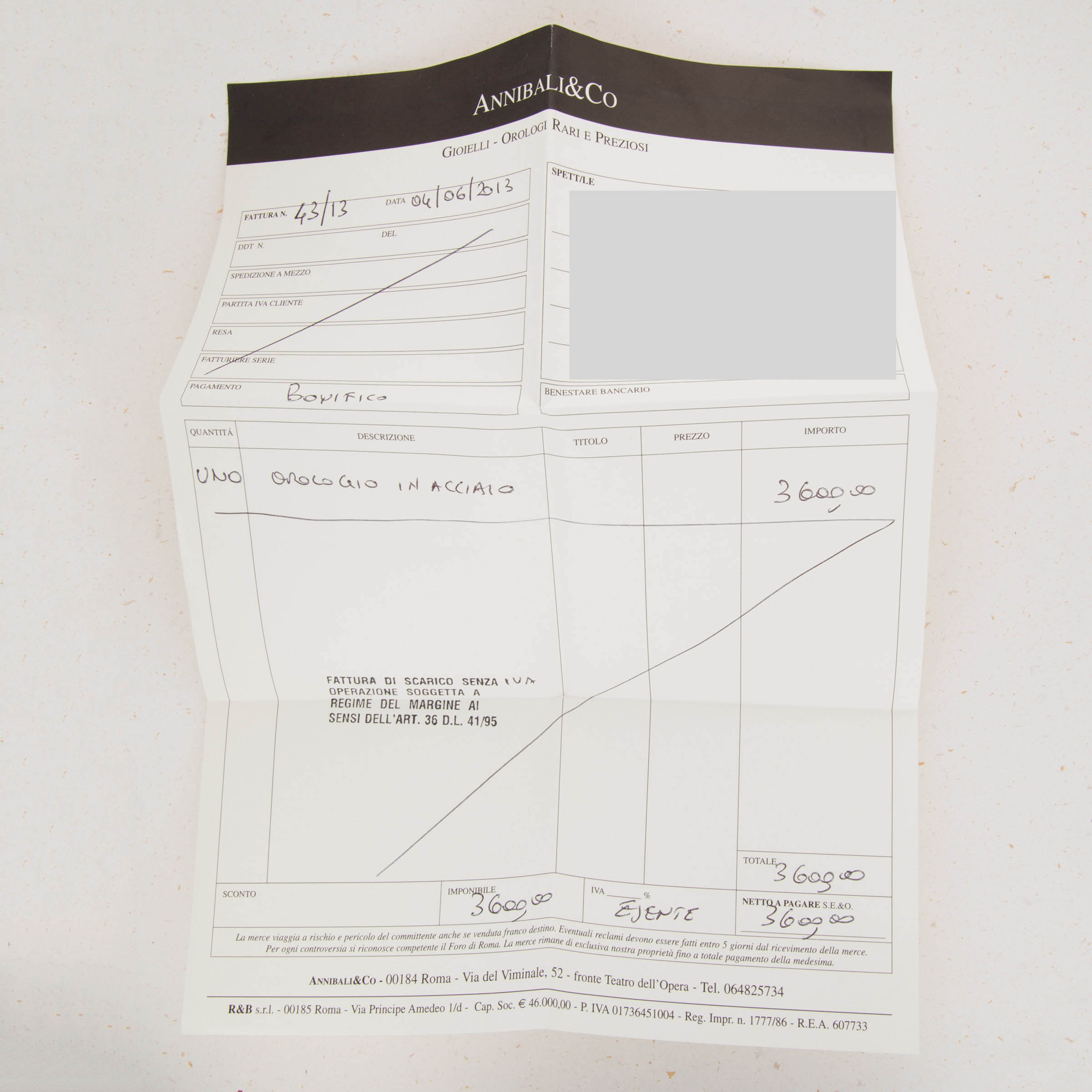 Watch, box, papers, spare strap and curved spring bars and spring bar pusher.