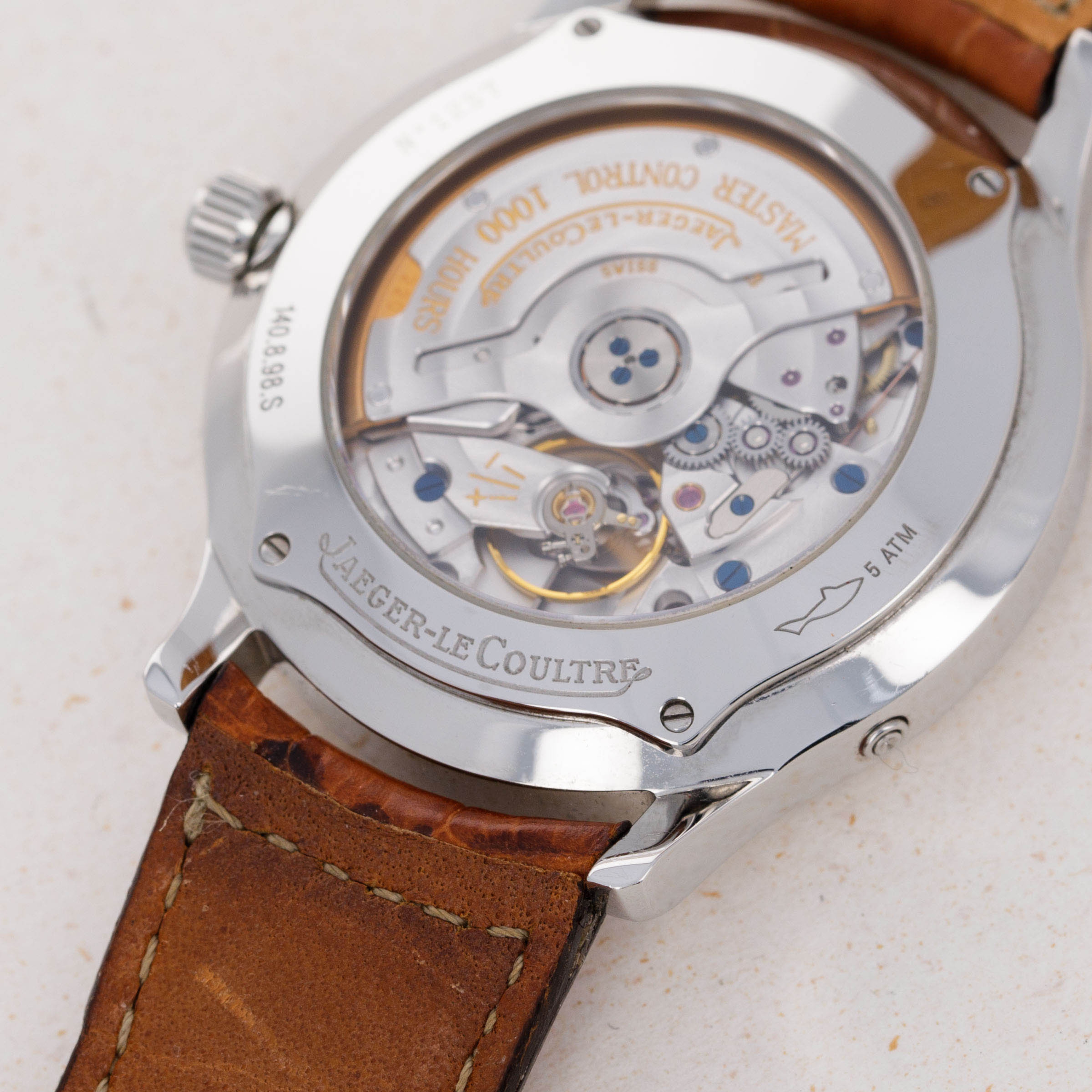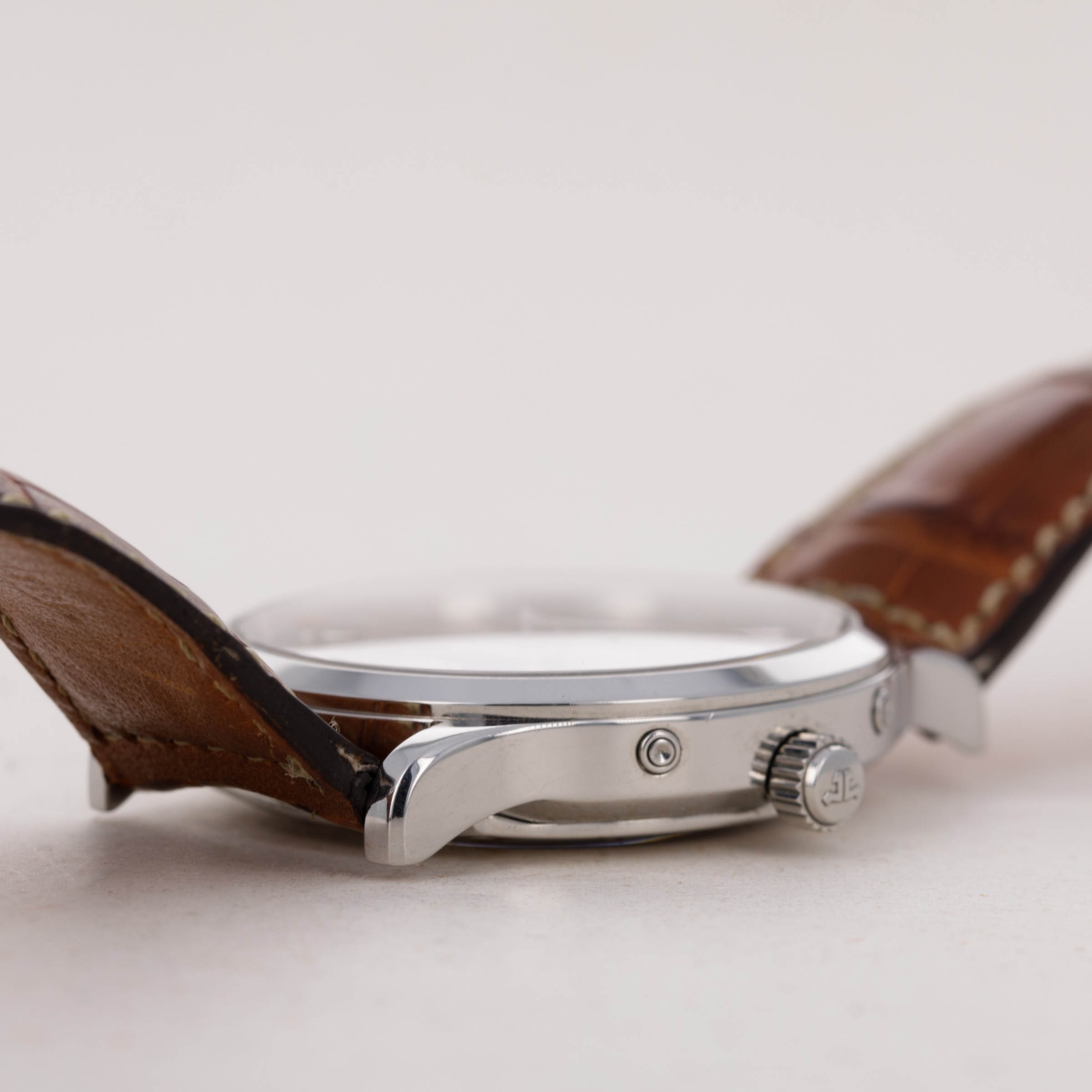 First debuting in 1992, the Jaeger LeCoultre Master Control is a vintage-inspired collection rooted to the 1950s aesthetic of old with elegant dials, refined constructions and brilliantly executed movements – all benchmarks of JLC’s talents as a watchmaker. Offered here, we have the Master Control Calendar Moon ref. 140.8.98.S from the late 1990s to early 2000s. Boasting a stunning black dial and a stainless steel case that comes in at a perfectly wearable 37mm diameter, this timepiece has everything one would want from JLC, the “watchmaker’s watchmaker.” Boasting applied dagger indices along with applied Arabic numerals at 12, 3 and 9 o’clock that help fill its dial with appealing details, the ref. 140.8.98.S’s display is reserved and restrained, while still packed with information such as its pointer date function, day and month apertures at 12 o’clock and moonphase subdial at 6 o’clock, which complete its triple calendar functions that come with the watch as per its automatic cal. 891/2/448 movement. Sporting a flat, yet stepped bezel, gently curving lugs, and just a single crown, the Master Calendar is a wonderfully wearable watch that speaks to the collection’s original source of inspiration, the 1950s, while also celebrating JLC’s impressive craftsmanship.
