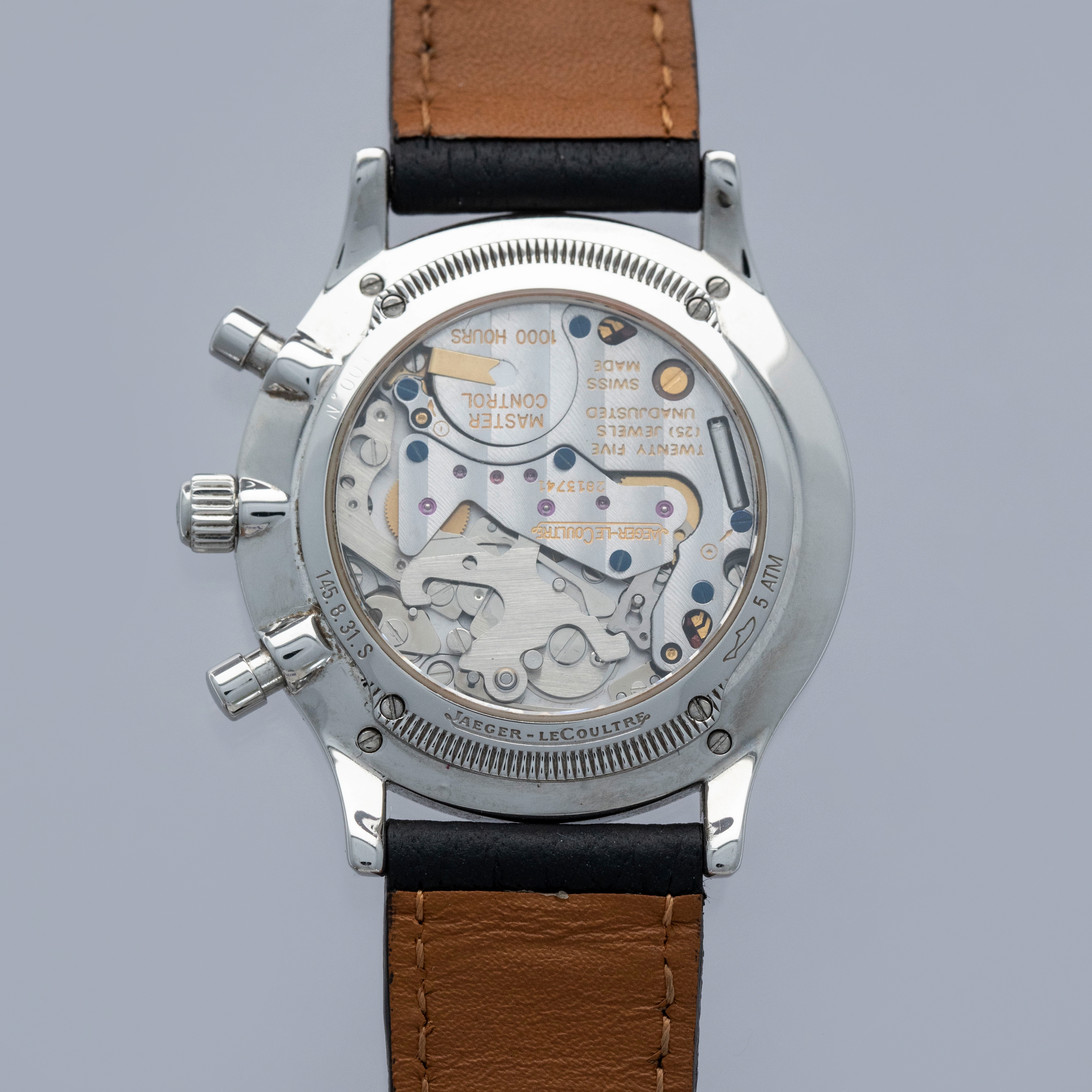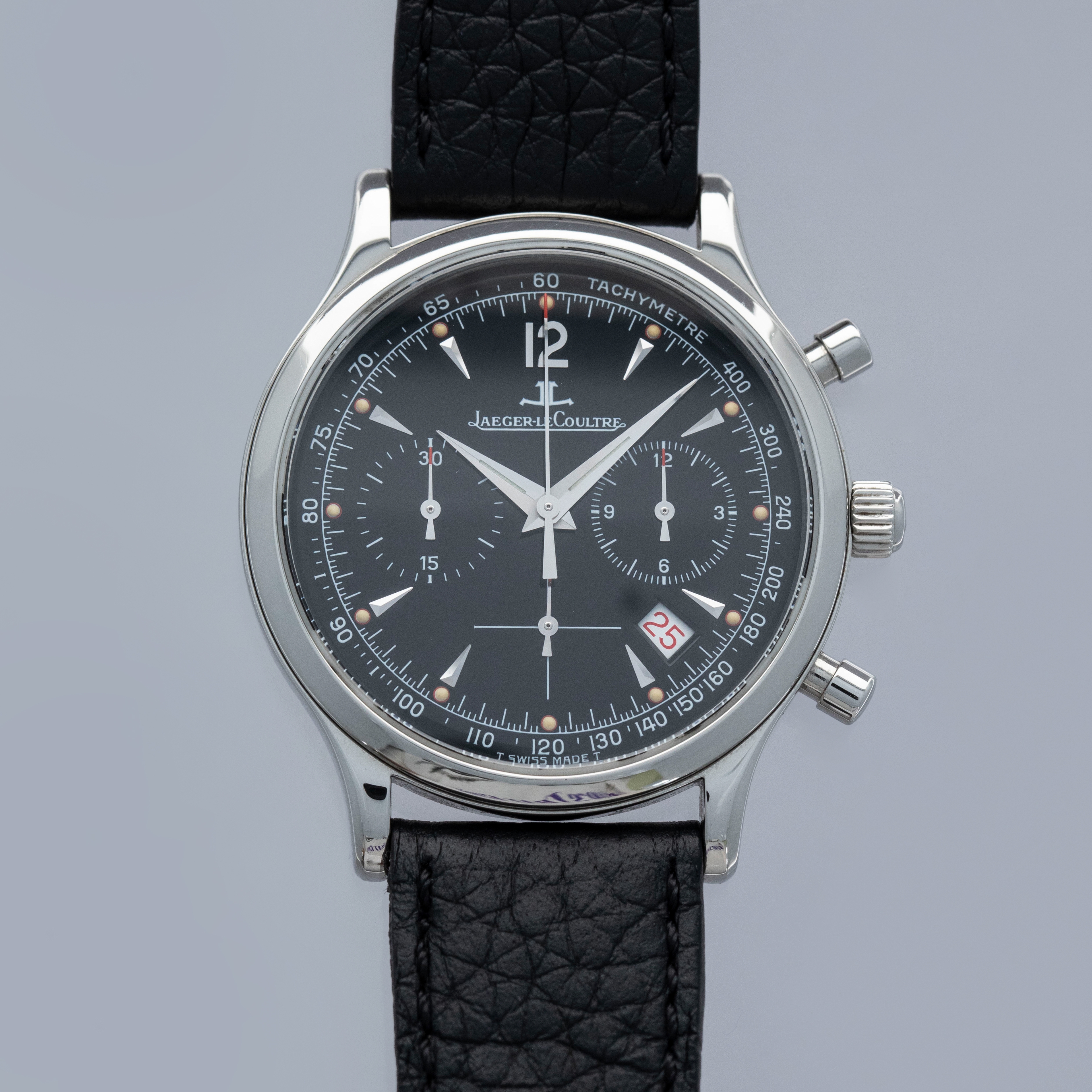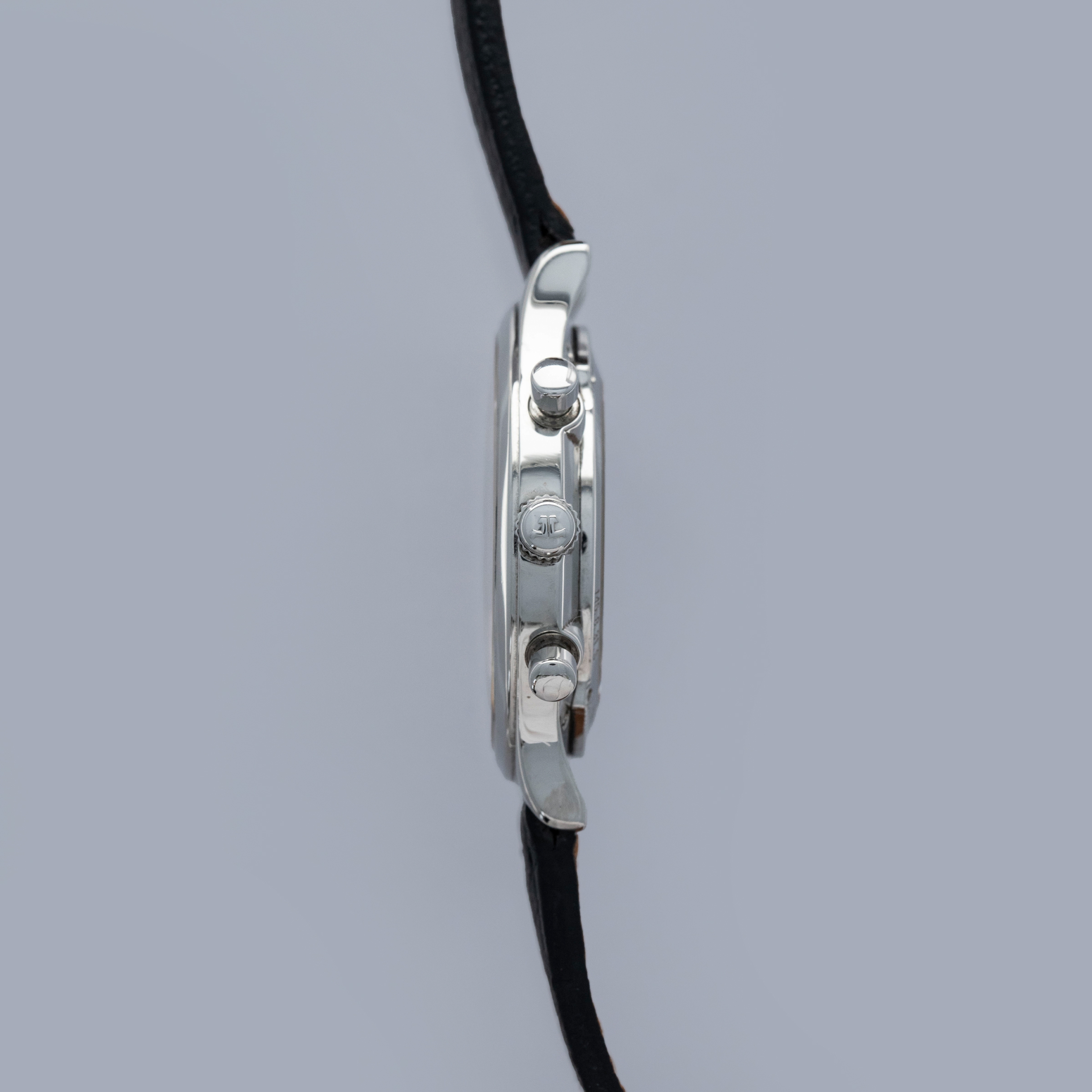 First debuting in 1992, the Jaeger LeCoultre Master Control is a vintage-inspired collection rooted to the 1950’s aesthetic of old with elegant dials, refined constructions and brilliantly executed movements – all benchmarks of JLC’s talents as a watchmaker. Offered here we have the Master Control Mechaquartz Chronograph 145.8.31 from the mid-2000s with a stunning silver dial and a stainless steel case that comes in at 34mm in diameter with a vintage-inspired silhouette arising from its curvy lugs and flat bezel. Boasting a black dial with white inscriptions and red accents, the ref. 145.8.31’s display is immediately legible while also stylish and unique. Functional through its mechaquartz cal. 630 movement, the ref. 145.8.31 comes complete with a mechanical chronograph function and a date function, joining the benefits of quartz technology with the artistry and mechanics of mechanical watchmaking. Sized at 34mm and only 8mm tall, the ref. 145.8.31 is imbued with the Master Control’s vintage styling and heritage-inspired construction.