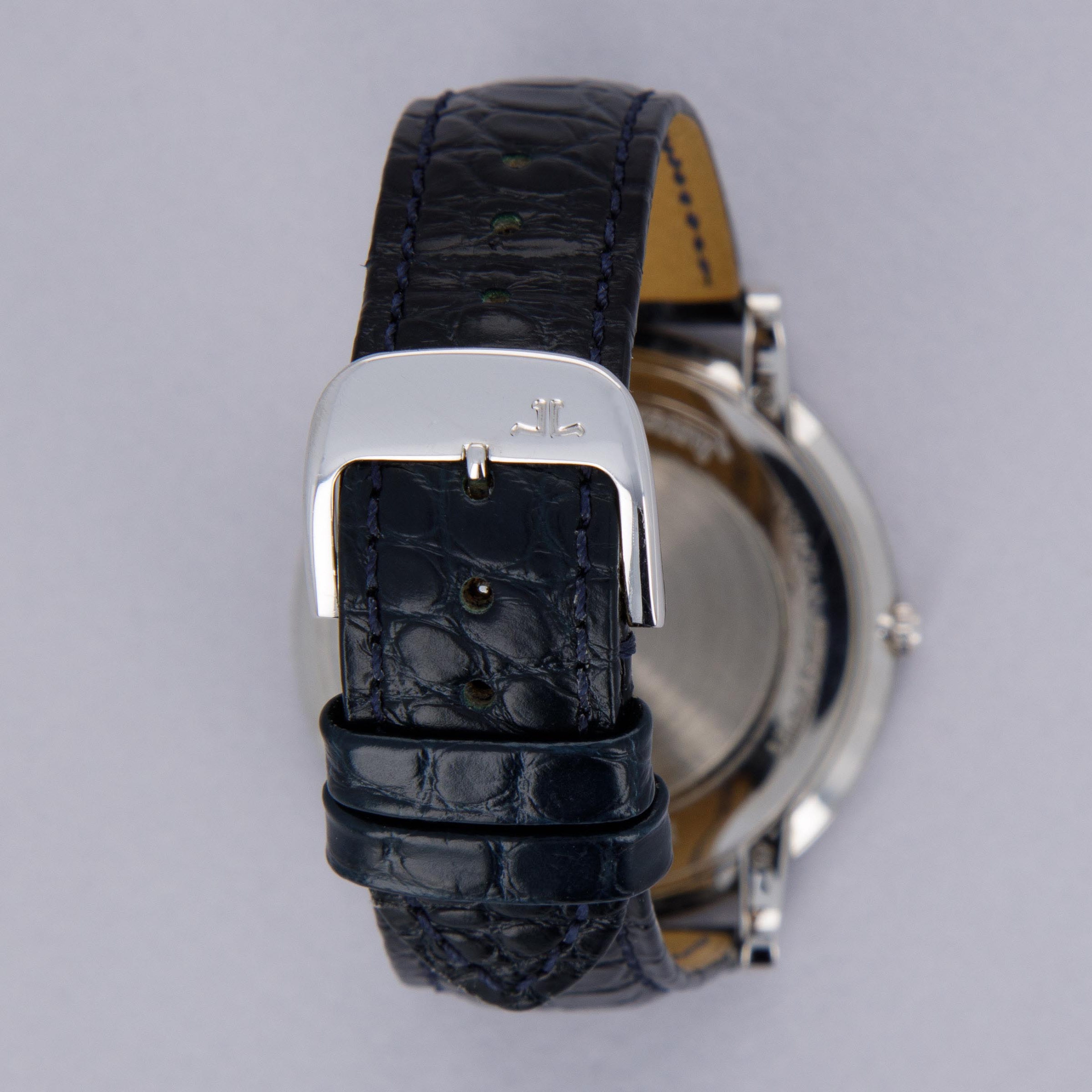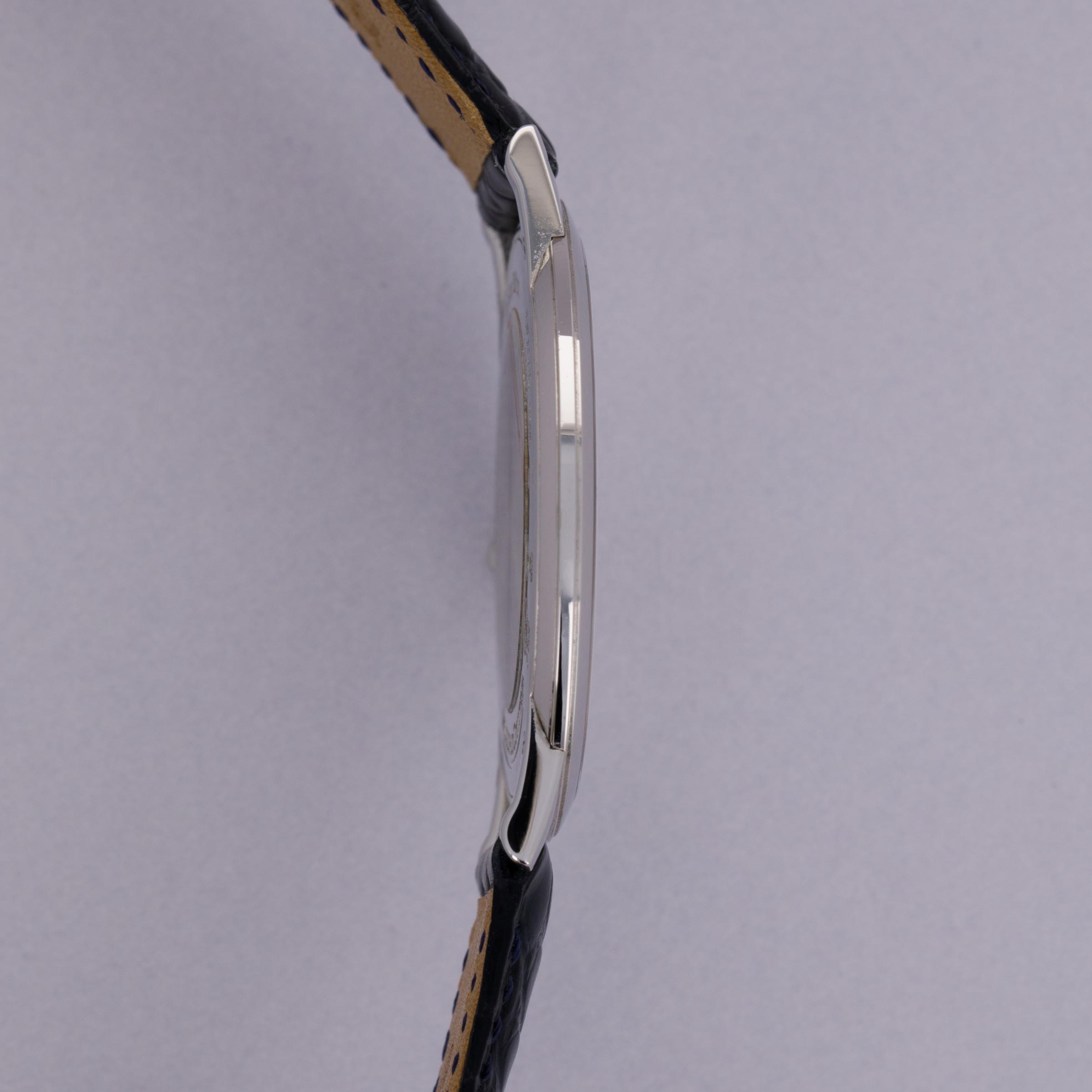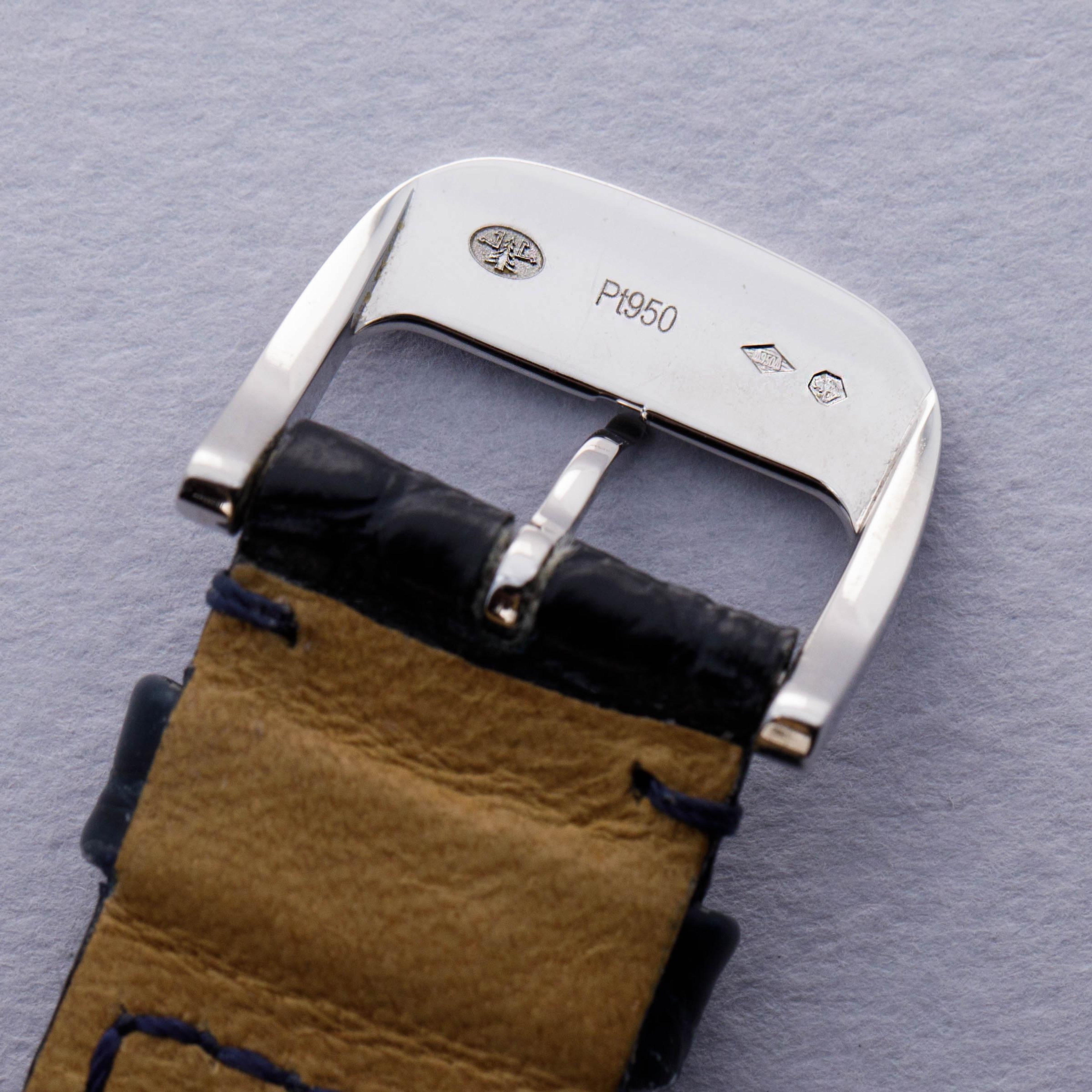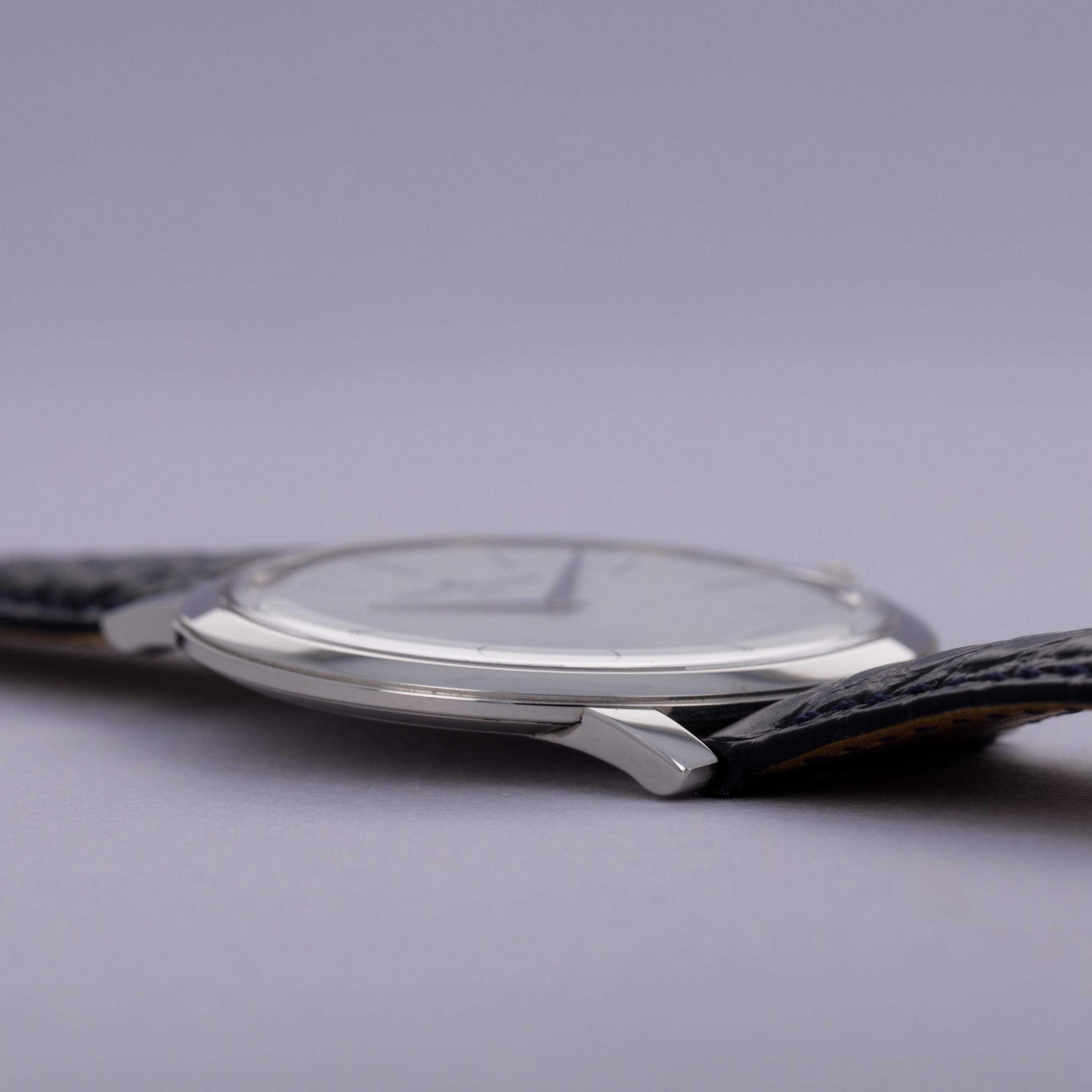 Effortlessly elegant, the ref. 120.6.79's 39mm platinum case's profile is exactly like the mid-century dress watches that have inspired the Master collection, with its perfectly circular shape, brightly polished surfaces and straight lugs.