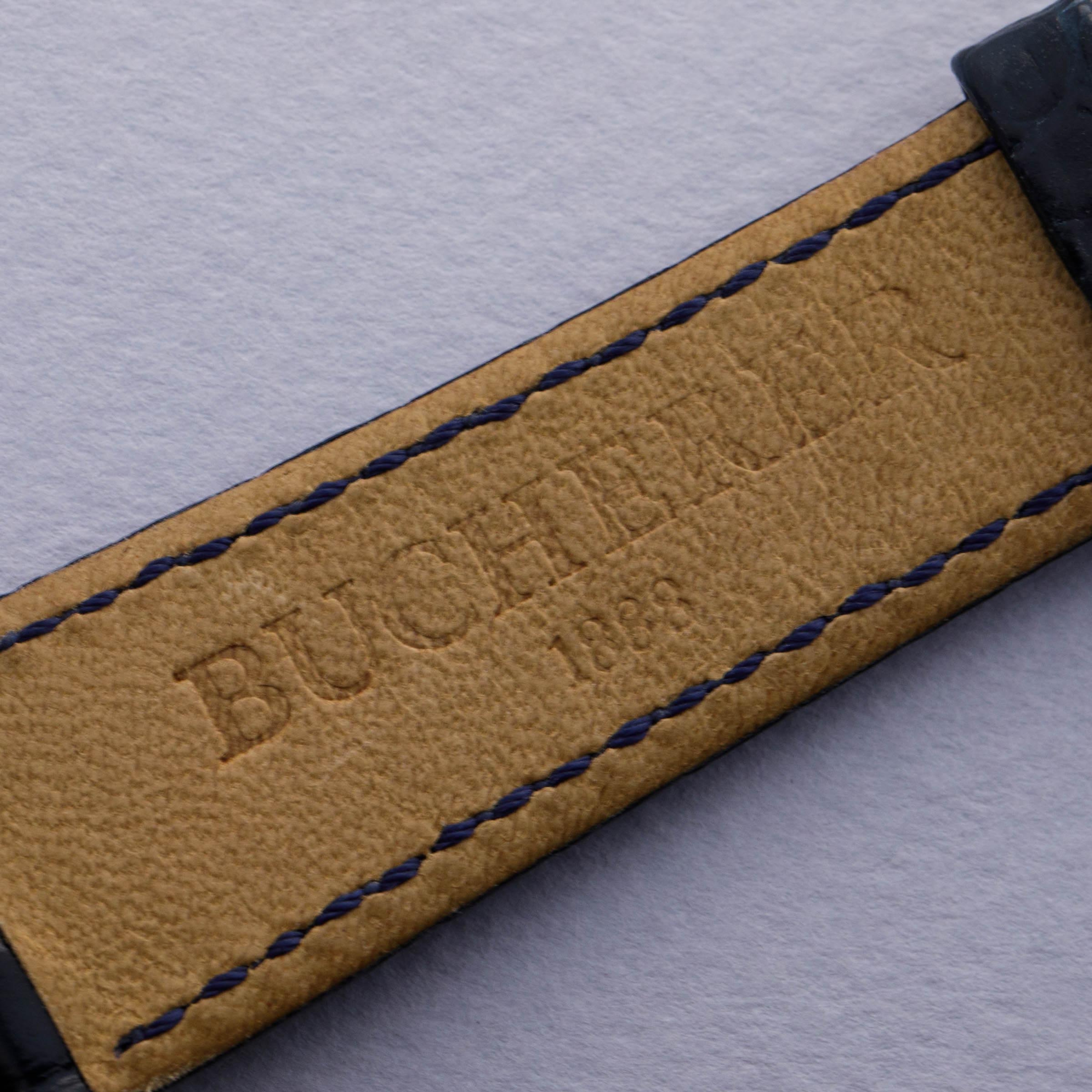 Watch is in excellent overall condtion. Minor signs of wear visible along the case, including a small scratch on the edge of the lower left lug. Watch comes on a Bucherer signed strap and original PT buckle.