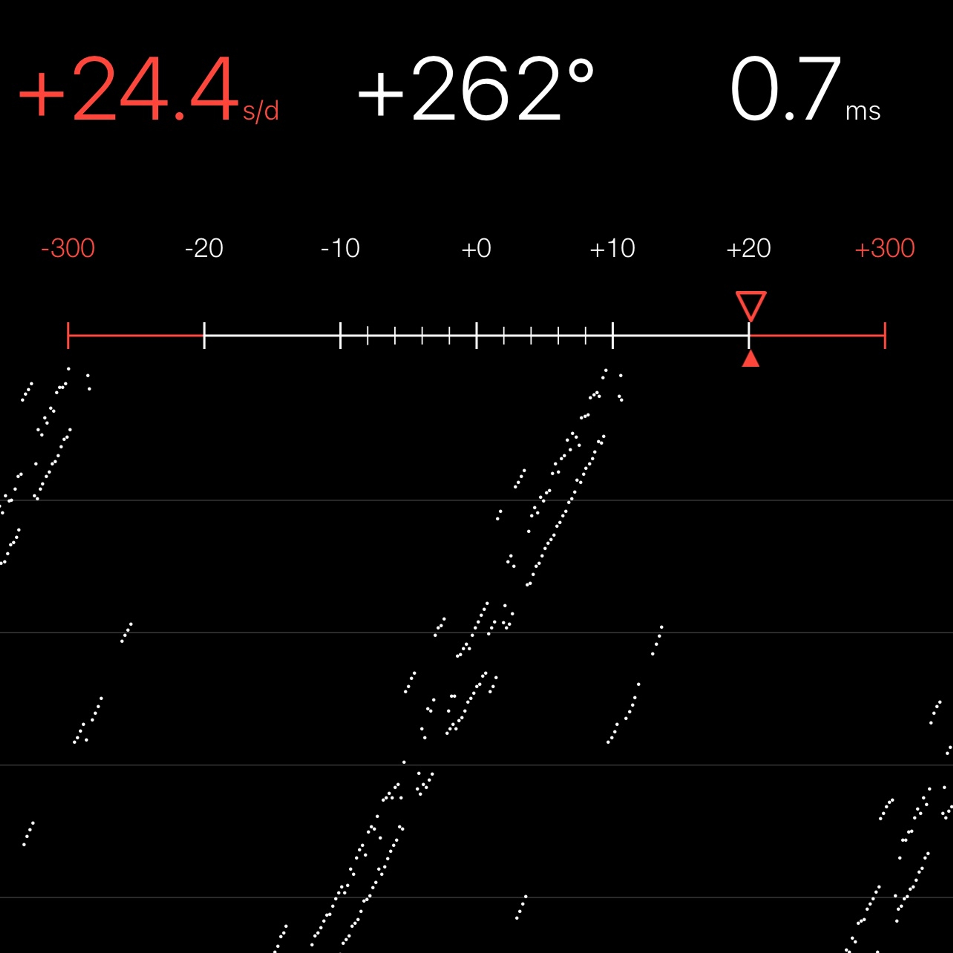 This reading was taken (crown down) with a ONEOF Accuracy Boutique Edition timing machine at time of cataloging. It is provided as a courtesy only, and shall not be construed as a warranty or guarantee of any kind. Please refer to our terms and conditions of sale for more information.