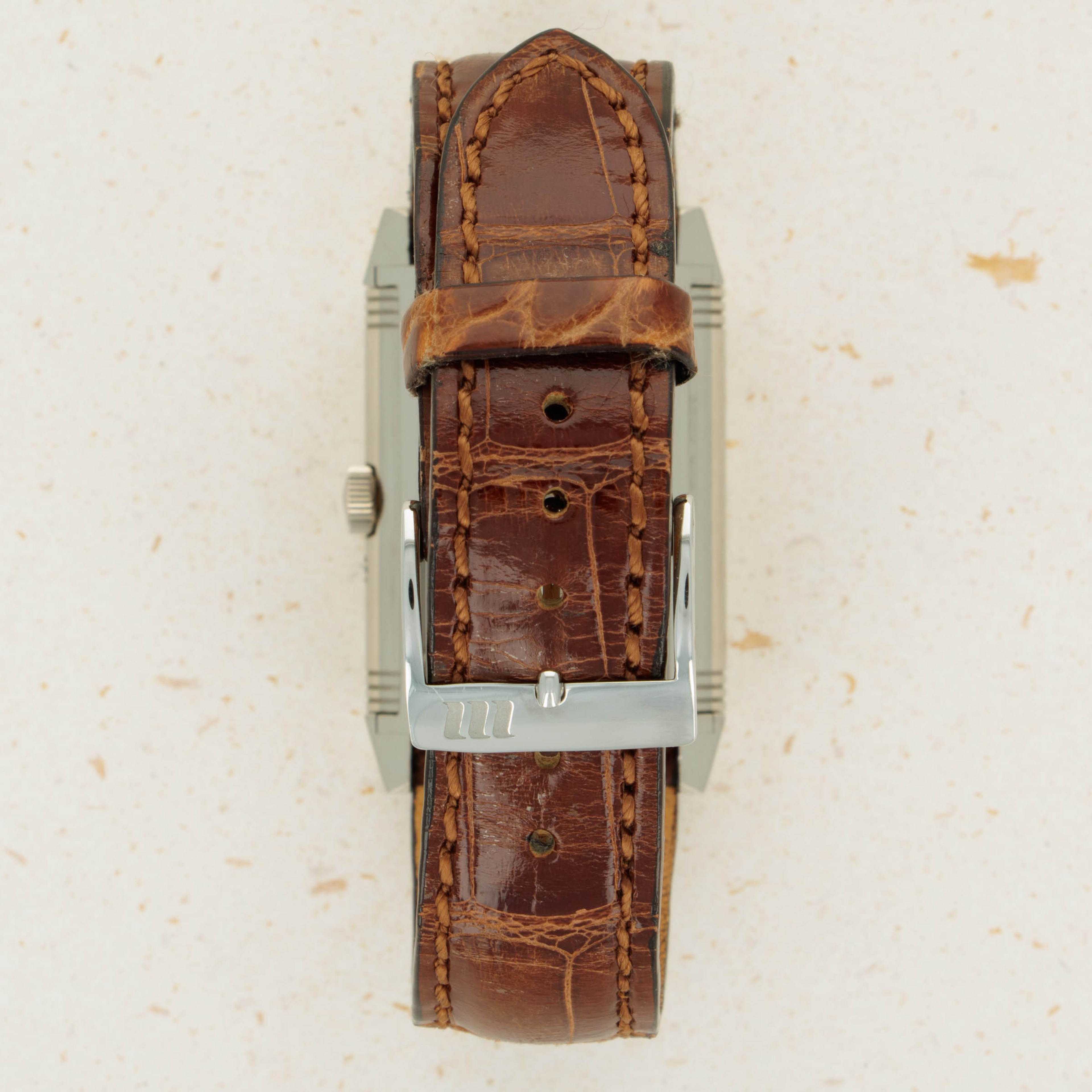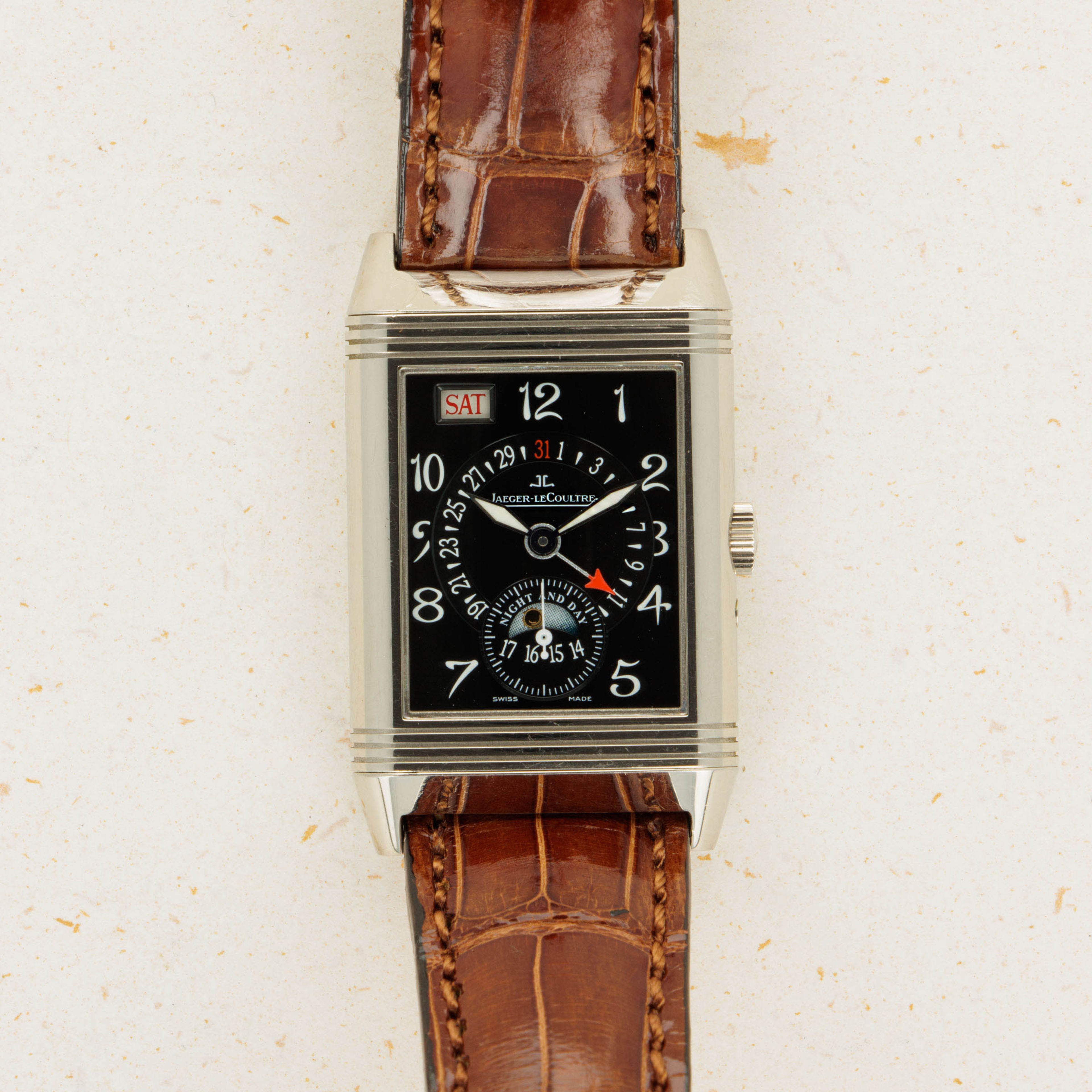 Designed by René-Alfred Chauvot, the Reverso was conceived with the express purpose of being able to withstand the harsh beating a watch would endure during a game of polo. This was put to JLC by entrepreneur César de Trey as a challenge for the brand in 1930. Born the year following in 1931, the Reverso was a sports watch, thanks to its unique case design. In the 1930s, the Reverso needed to be more durable than other available watches; hence its ingenious reversible case was born. This protected the dial from a direct hit and gave the Reverso its name. Over 90 years later and the Reverso’s design lives on as one of the most recognizable in watchmaking. Offering a construction that is immediately reminiscent of the Reverso’s original design, the ref. 270.3.36’s 18kt white gold case features 26mm x 42mm dimensions that make it immediately distinctive on wrist with true presence. Boasting a monochromatic single-texture black dial with white Arabic numerals in hand-written script, the ref. 270.3.36 is intensely refined and classical, as the Reverso has always been over the decades. Powered by a JLC caliber manual-wind movement, as the Reverso was originally, and offered on a brown leather strap with an 18kt white gold pin buckle, this example offers fantastic wearability that will certainly allow it to easily fit into any collection.