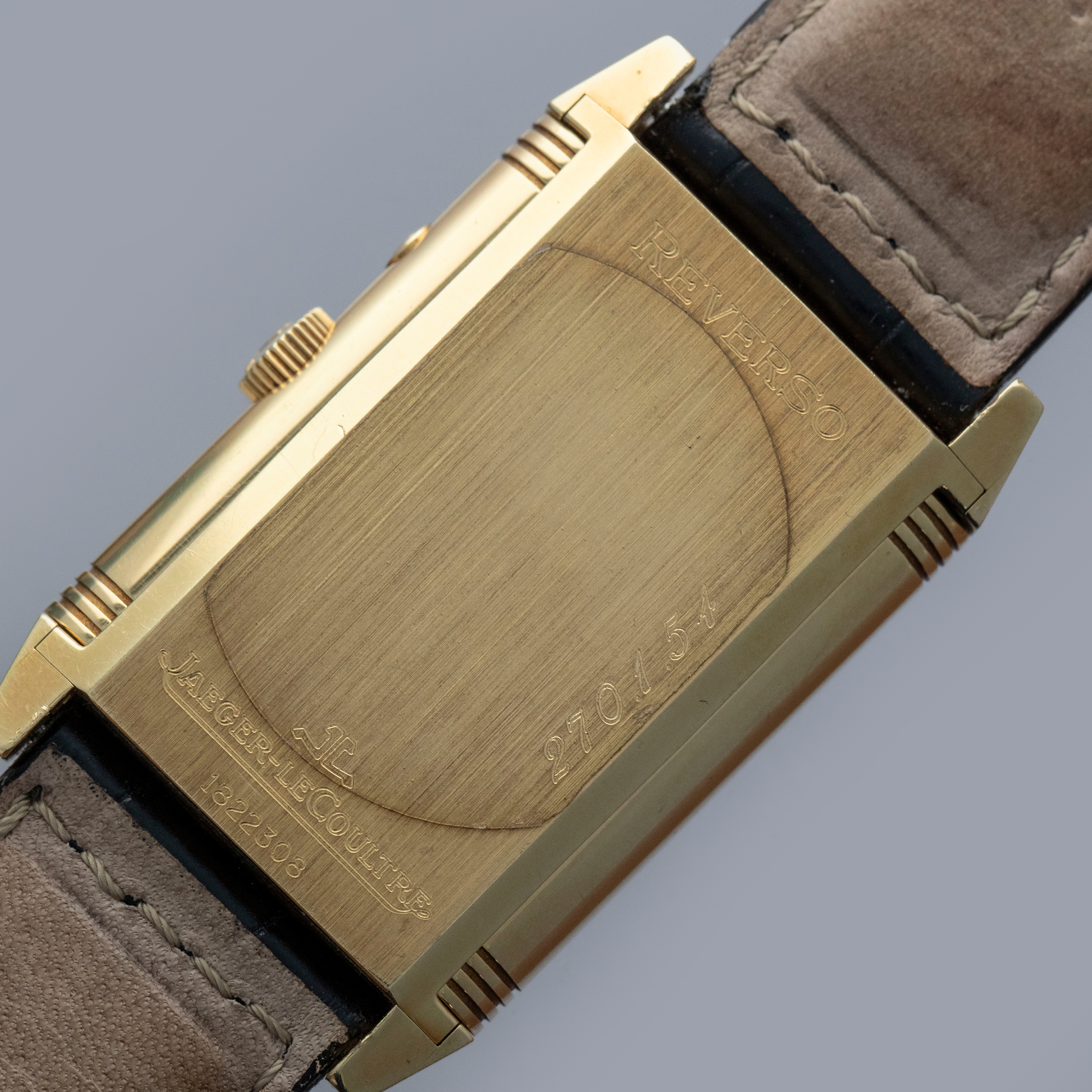 Made of 18kt yellow gold and measuring 26mm x 42mm, the Reverso Duoface makes up for its lack of width with its rectangular profile and hefty precious metal construction, which ensures that it packs a confidently elegant presence on the wrist that will always be able to remind its wearer of its presence.