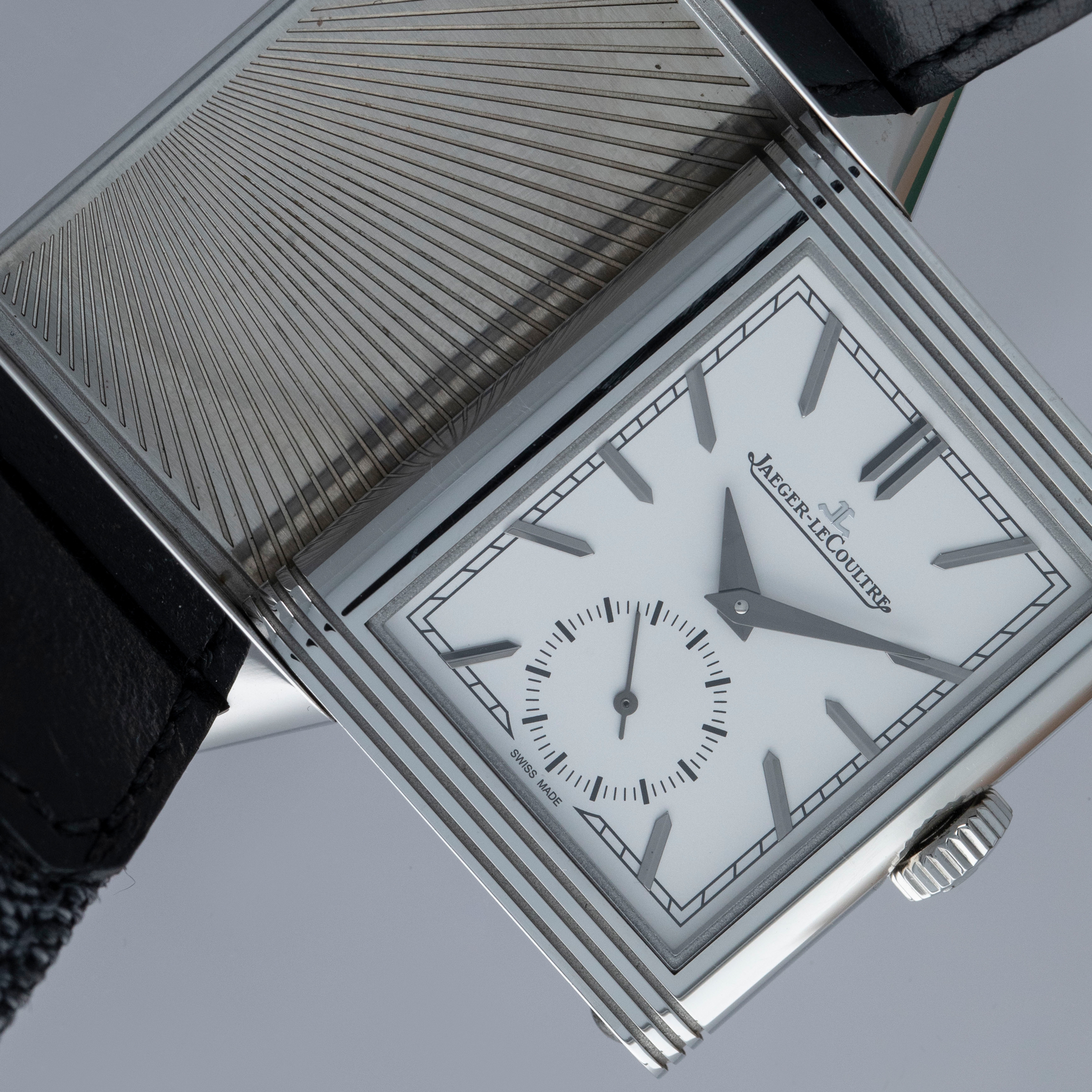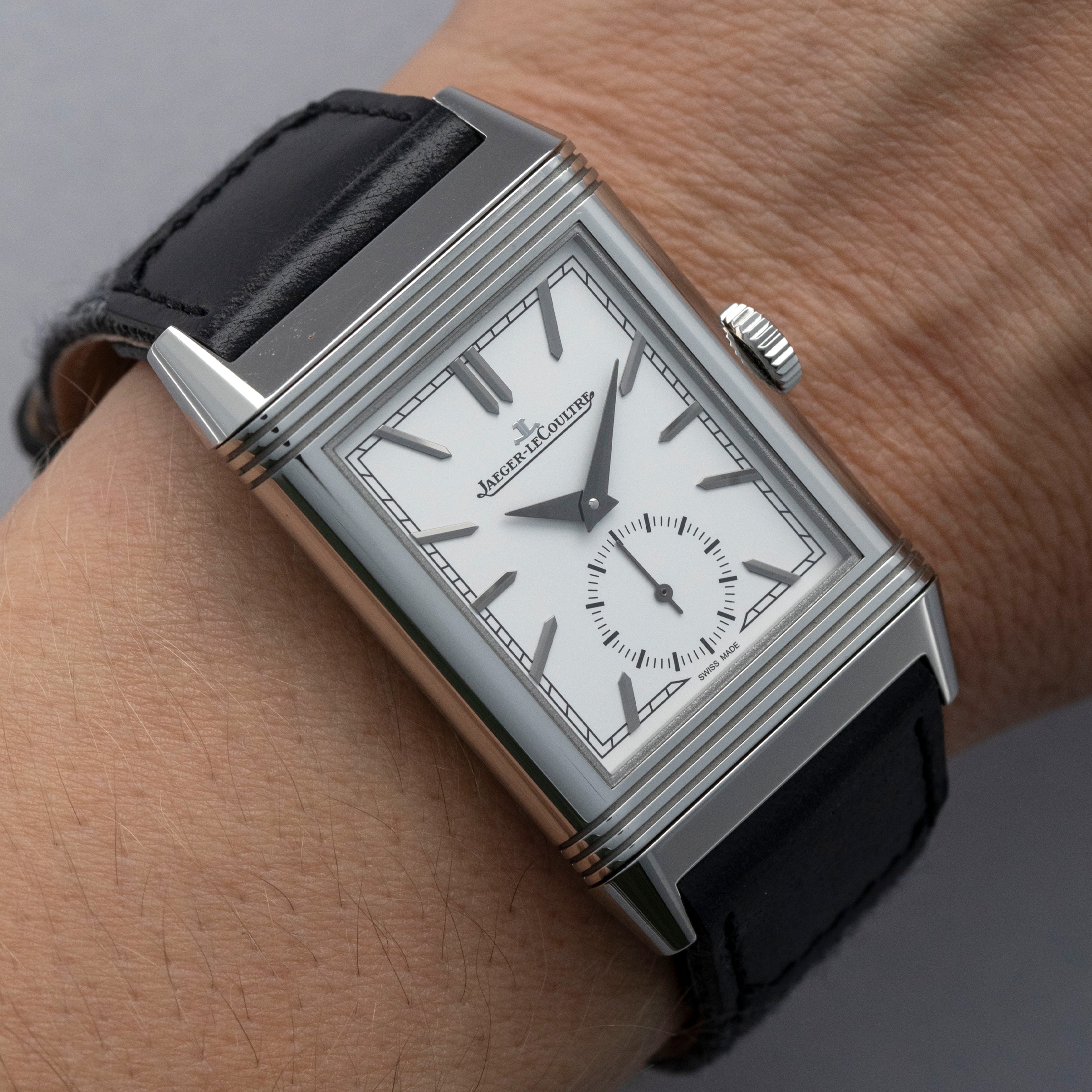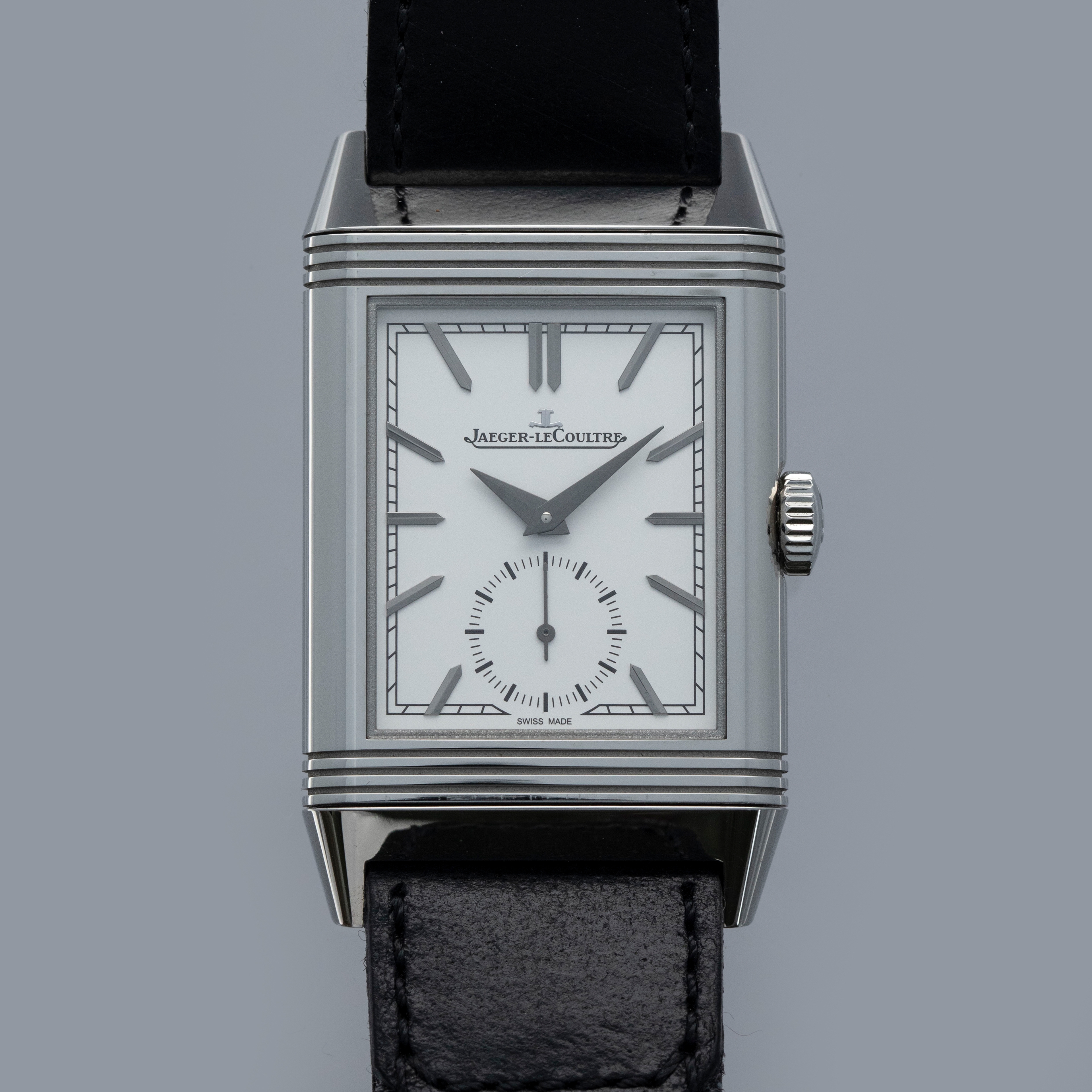 Designed by René-Alfred Chauvot, the Reverso was conceived with the express purpose of being able to withstand the harsh beating a watch would endure during a game of polo. This was put to JLC by entrepreneur César de Trey as a challenge for the brand in 1930. Born the year following in 1931, the Reverso was a sports watch, thanks to its unique case design. In the 1930s, the Reverso needed to be more durable than other available watches; hence its ingenious reversible case was born. This protected the dial from a direct hit and gave the Reverso its name. Over 90 years later and the Reverso’s design lives on as one of the most recognizable in watchmaking. First launched in 2011 and closely inspired by the Reverso’s small seconds variant that was launched in 1934, the Tribute Small Seconds features a small seconds subdial, as its name suggests, at 6 o’clock - providing tangible proof of its operation and another detail within its gorgeous white dial. A fantastic blend of timeless horological design and modern watchmaking, the ref. 214.8.62 features JLC’s in-house manual-wind cal. 822/2 movement and sits atop a sturdy leather strap with a stainless steel butterfly clasp to match its iconic stainless steel reversible case.