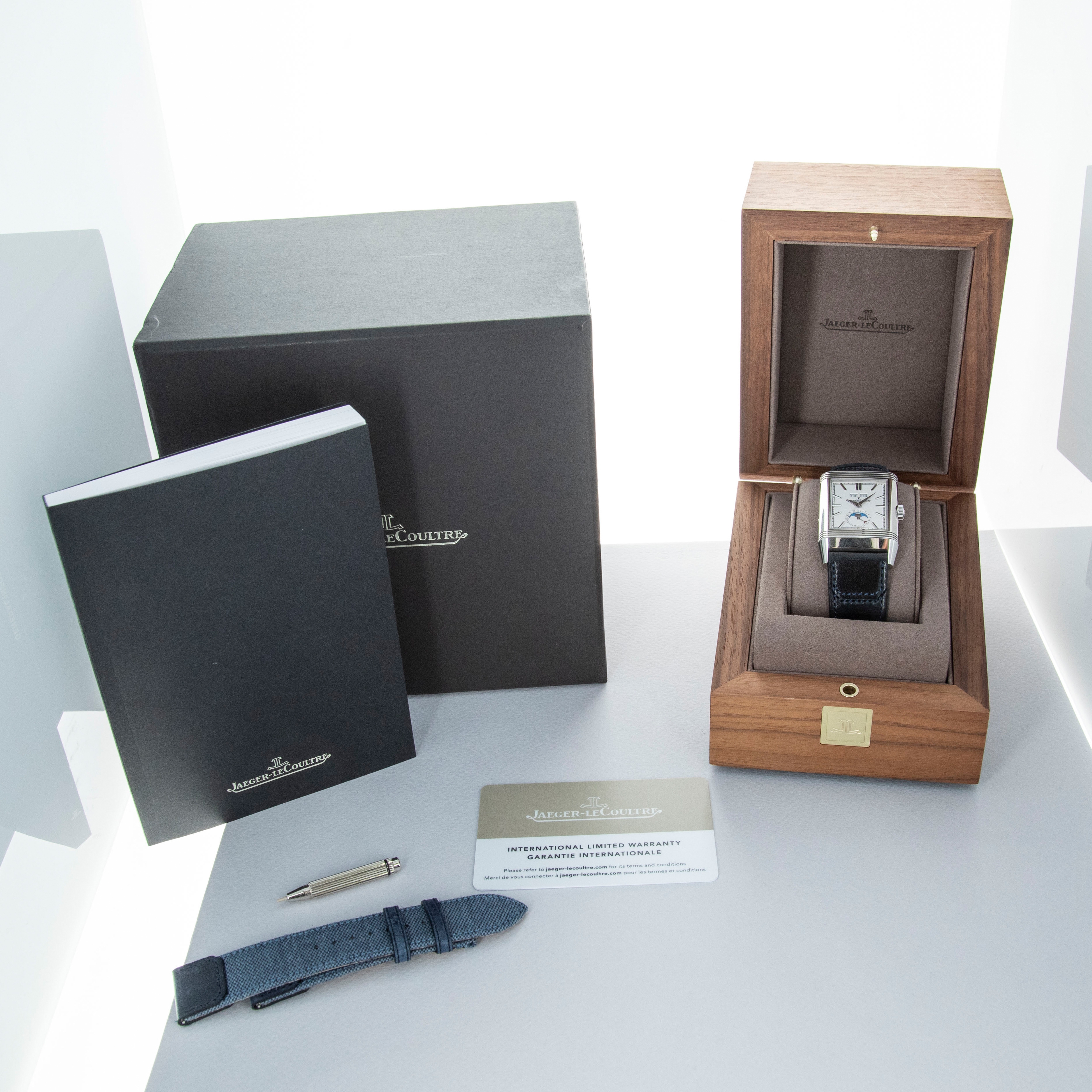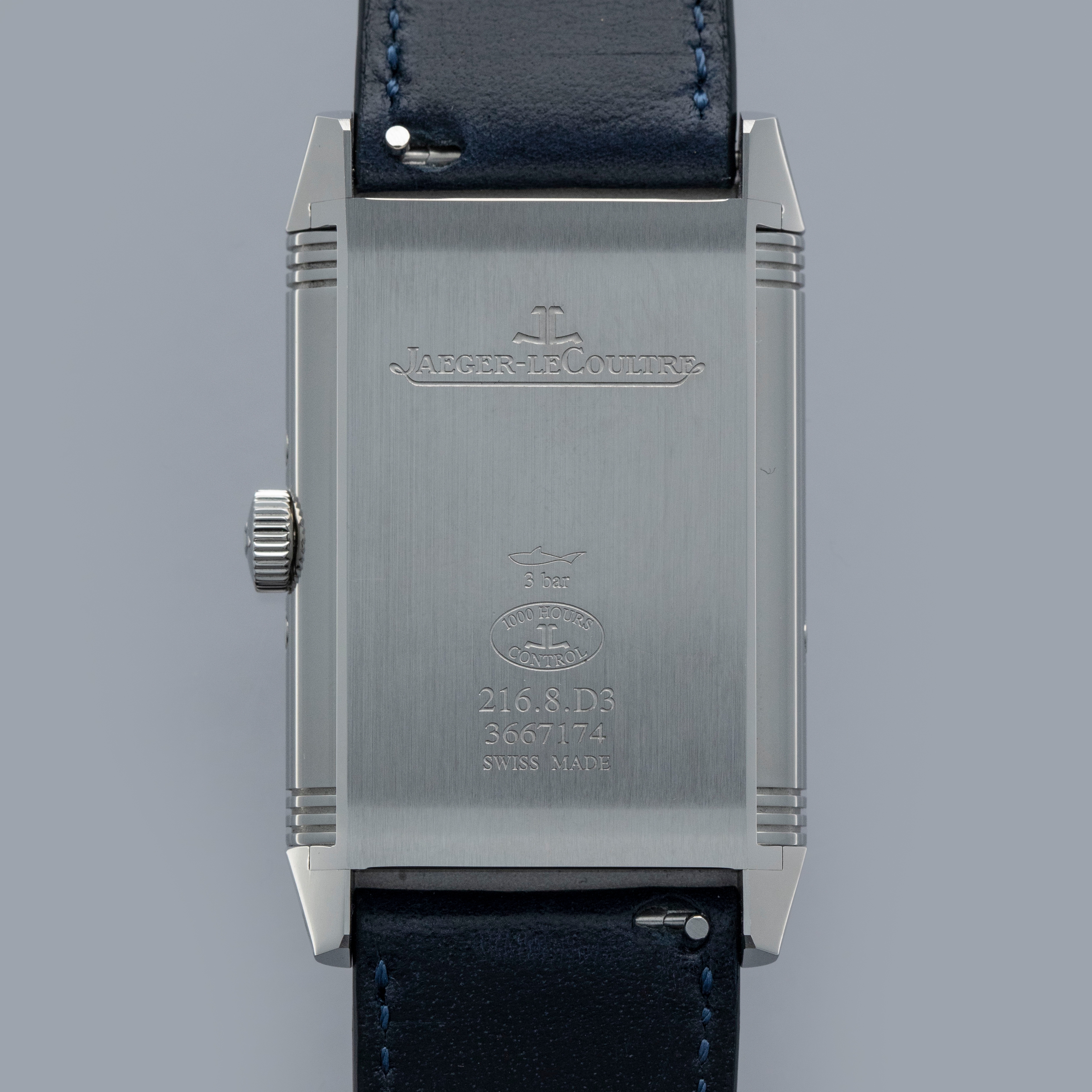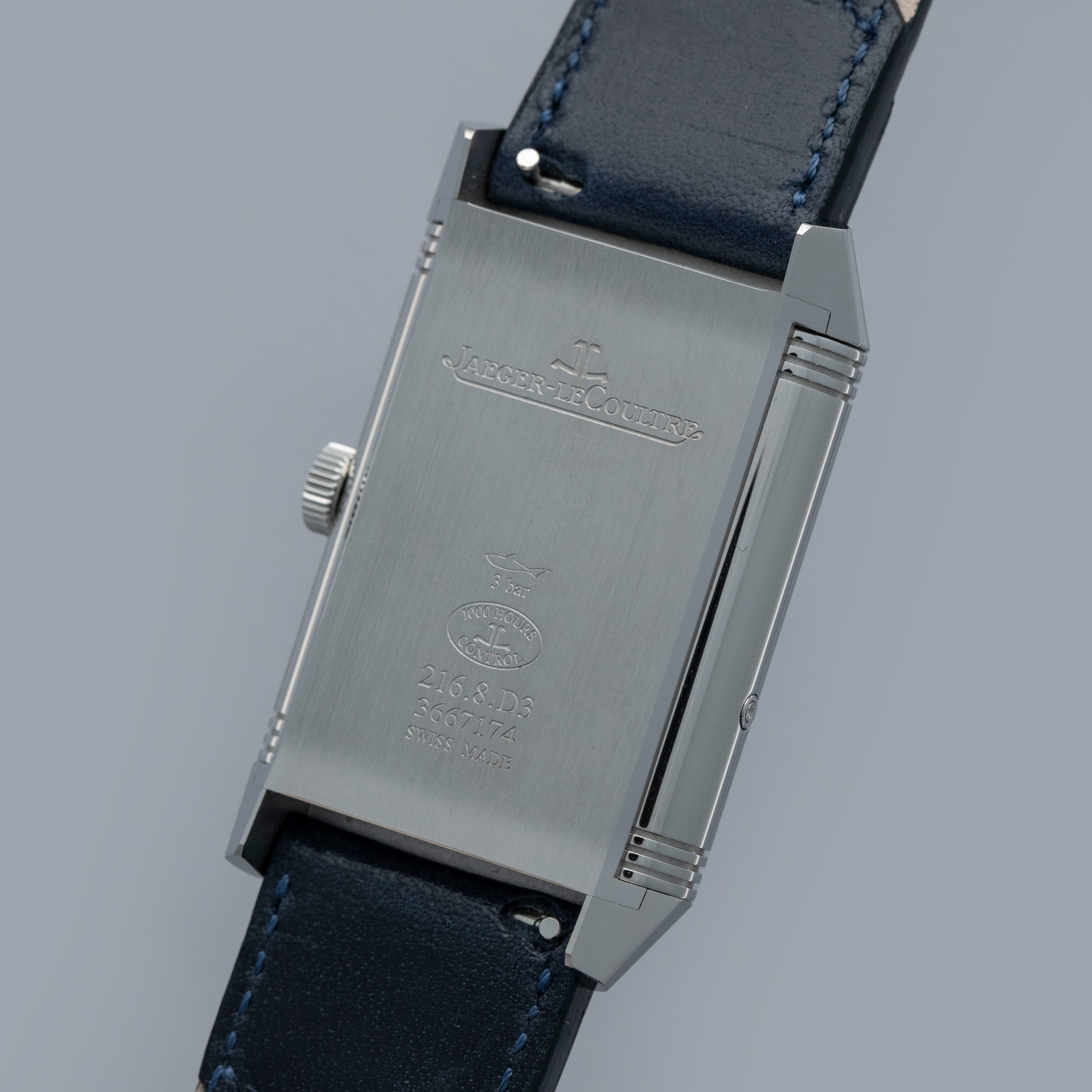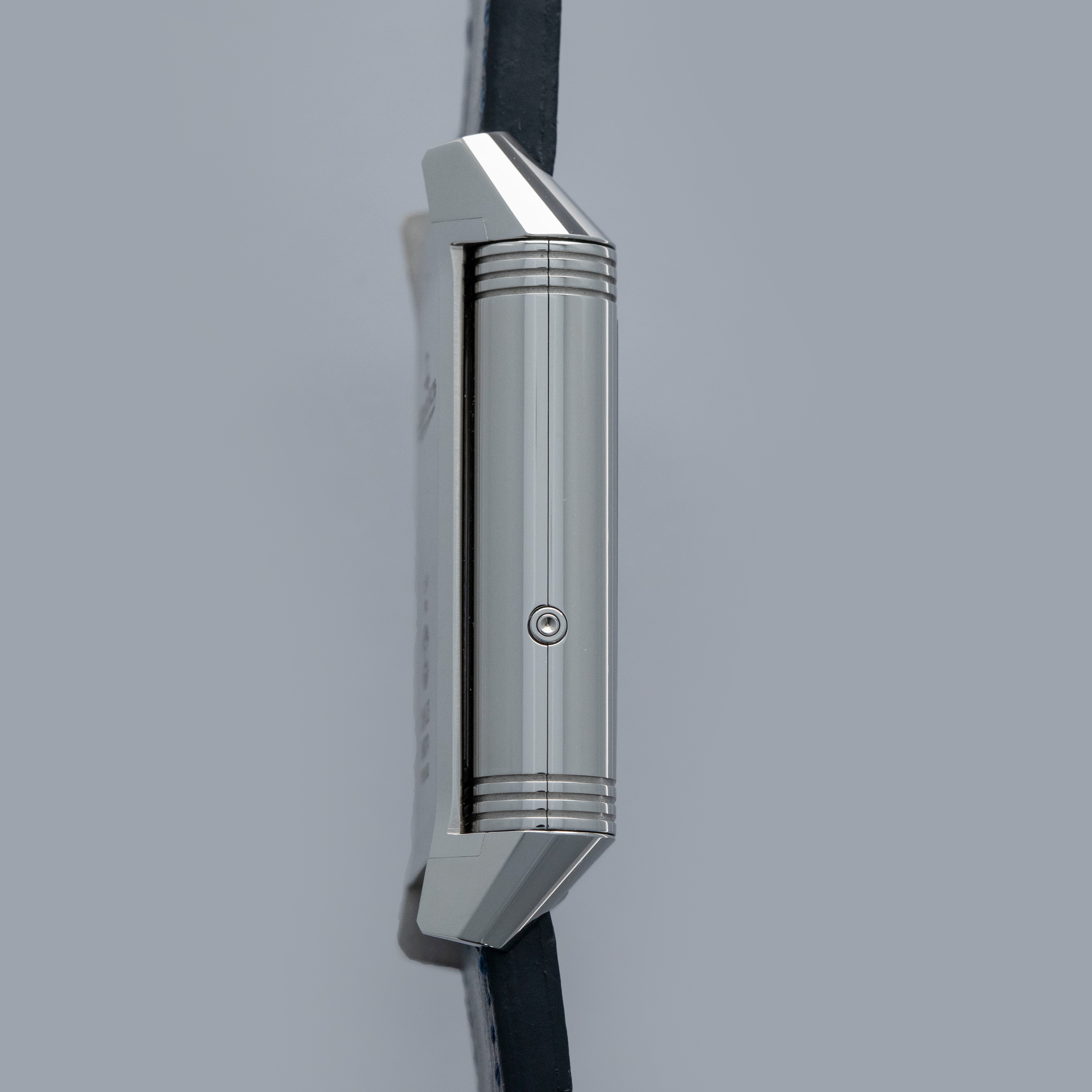 Designed by René-Alfred Chauvot, the Reverso was conceived with the express purpose of being able to withstand the harsh beating a watch would endure during a game of polo by virtue of its eponymous reversible function. This was put to JLC by entrepreneur César de Trey as a challenge for the brand in 1930. Born the year following in 1931, the Reverso was a sports watch, due to its particular use case. Thanks to its now-classical aesthetic and graceful design, the Reverso has evolved into a modern dress watch. However, in the 1930s, the Reverso needed to be more durable than other available watches; hence its ingenious reversible case was born. This protected the dial from a direct hit and gave the Reverso its name. Over 90 years later and the Reverso’s design lives on as one of the most recognizable in watchmaking. Offered here we have the Reverso Tribute Duoface Calendar ref. Q3918420. Made of stainless steel, it features a 29.9mm wide and 49.4mm case which gives meaning to its “Grande” designation. In keeping with the Reverso’s original versions, the ref. Q3918420 is powered by a manual-wind movement, the cal. 853AA, and features a monochromatic silver dial with a triple calendar function across its bevvy of aperture and indicators. Additionally, it also features a blue dial on the reverse side of its case that houses its own day and night indicator. Offering fantastic wearability on account of its twin-dial design, this Reverso will certainly be an easily fit for any collection.