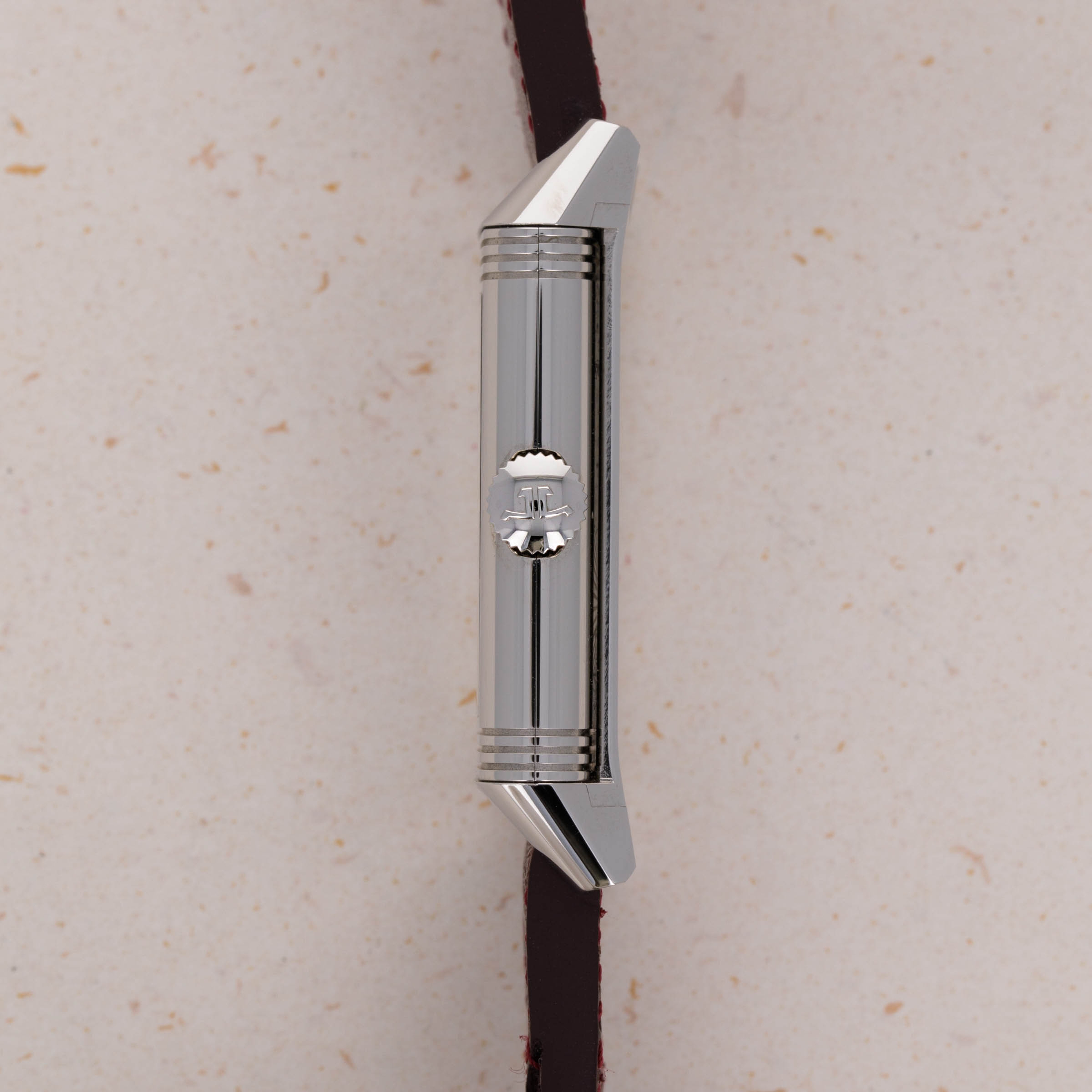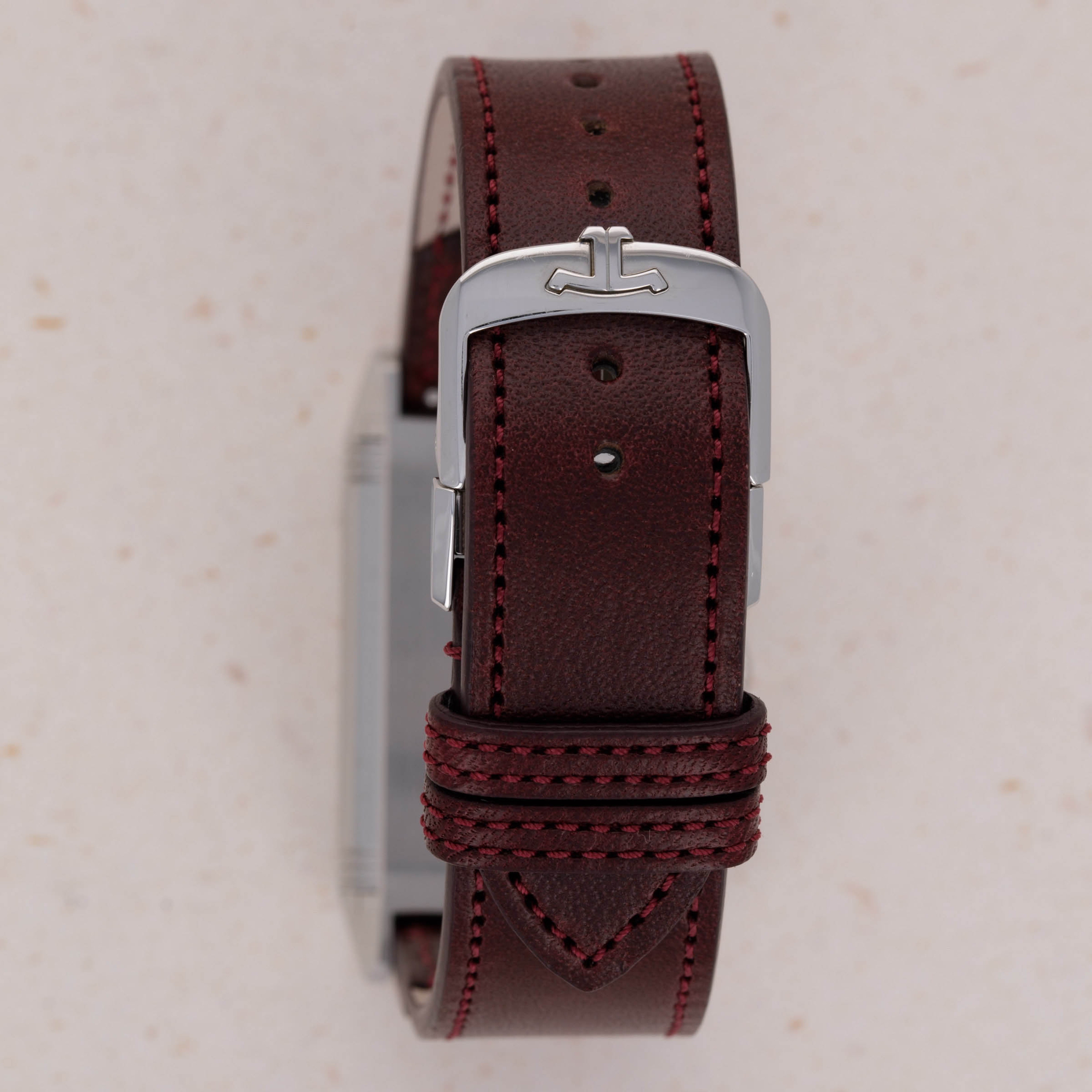 Designed by René-Alfred Chauvot, the Reverso was conceived with the express purpose of being able to withstand the harsh beating a watch would endure during a game of polo. This was put to JLC by entrepreneur César de Trey as a challenge for the brand in 1930. Born the year following in 1931, the Reverso was a sports watch, thanks to its unique case design. In the 1930s, the Reverso needed to be more durable than other available watches; hence its ingenious reversible case was born. This protected the dial from a direct hit and gave the Reverso its name. Over 90 years later and the Reverso’s design lives on as one of the most recognizable in watchmaking. First launched in 2011 and closely inspired by the Reverso’s small seconds variant that was launched in 1934, the Tribute Small Seconds features a small seconds subdial, as its name suggests, at 6 o’clock - providing tangible proof of its operation and another detail within its gorgeous burgundy red dial. A fantastic blend of timeless horological design and modern watchmaking, the ref. 214.8.62 features JLC’s in-house manual-wind cal. 822/2 movement and sits atop a sturdy leather strap with a stainless steel butterfly clasp to match its iconic stainless steel reversible case.