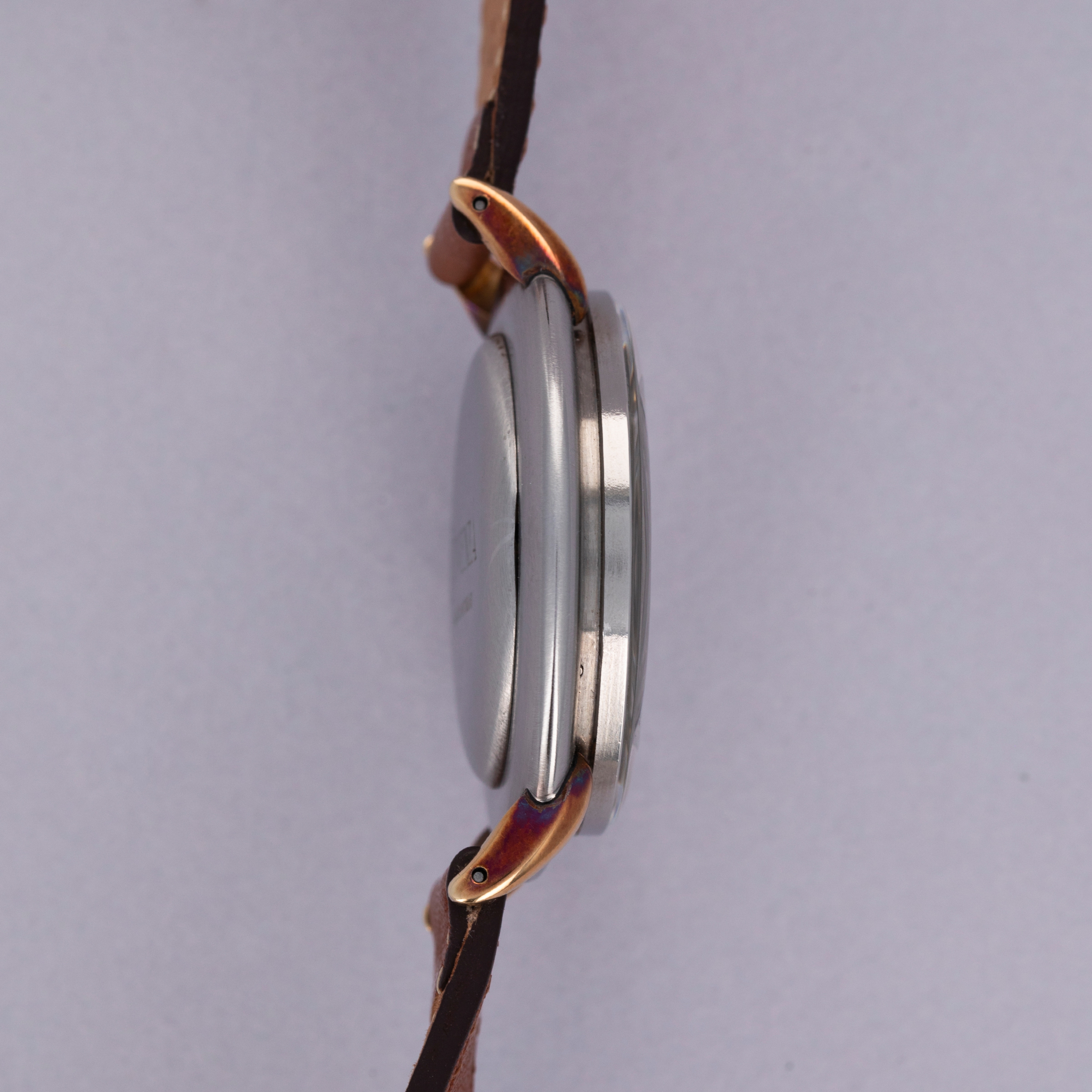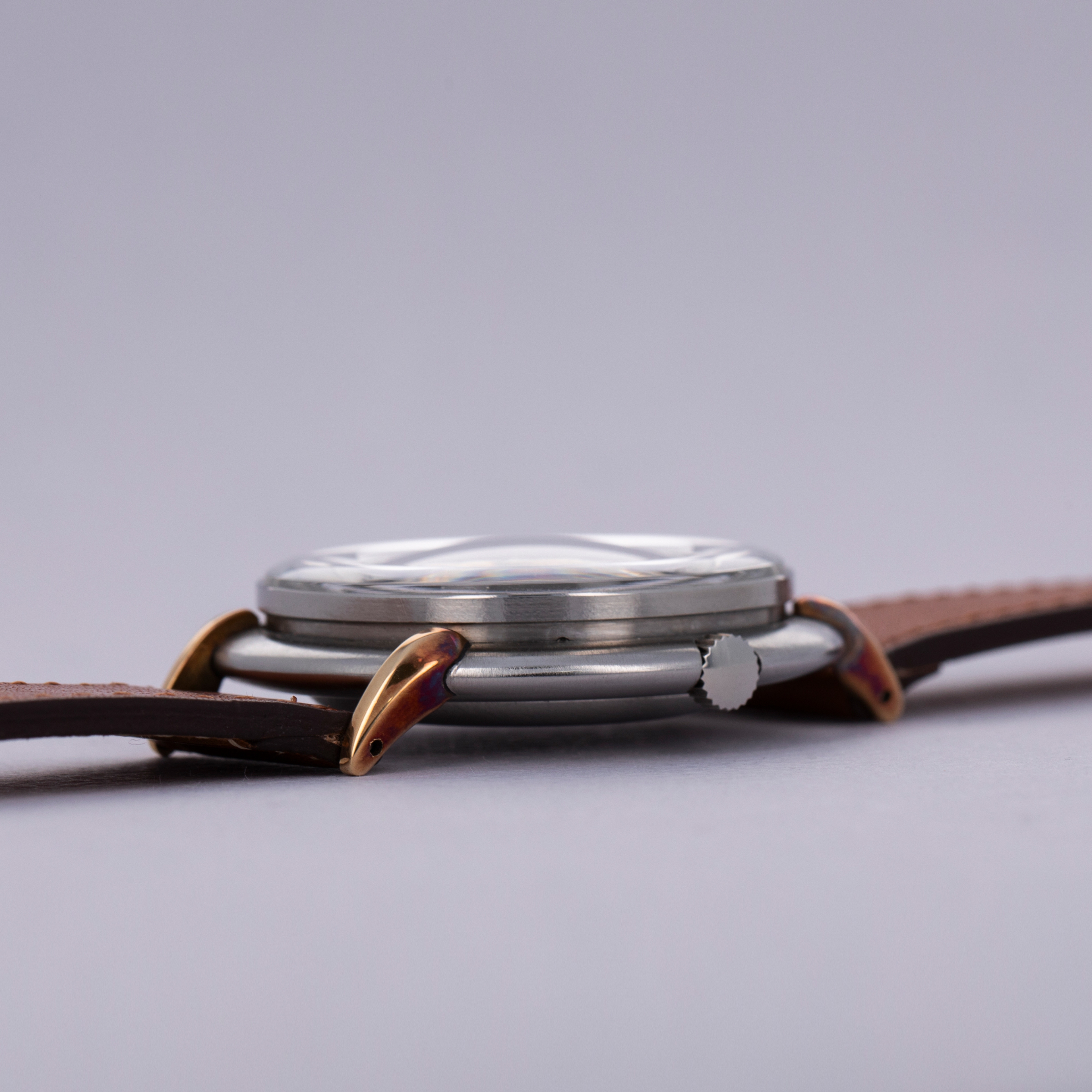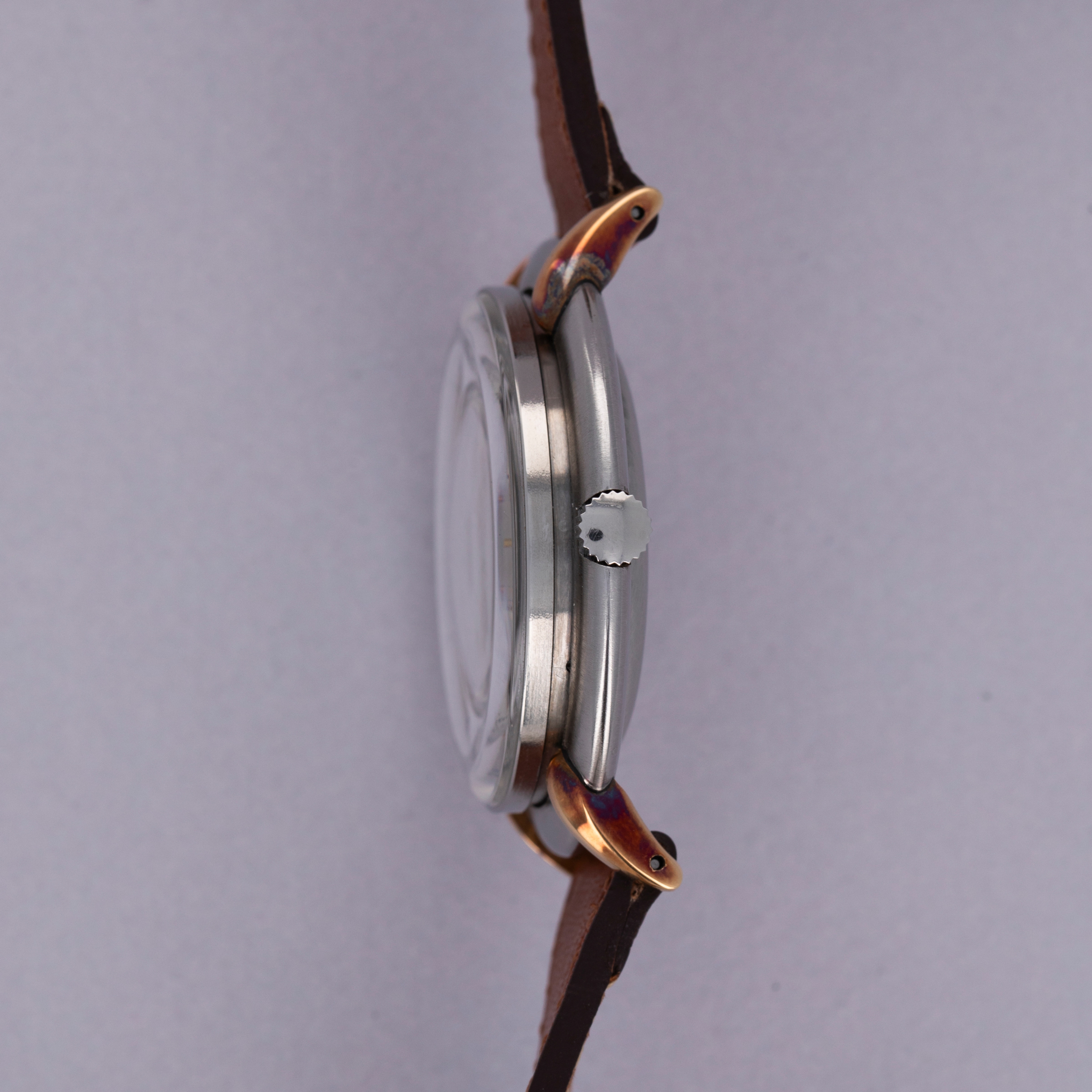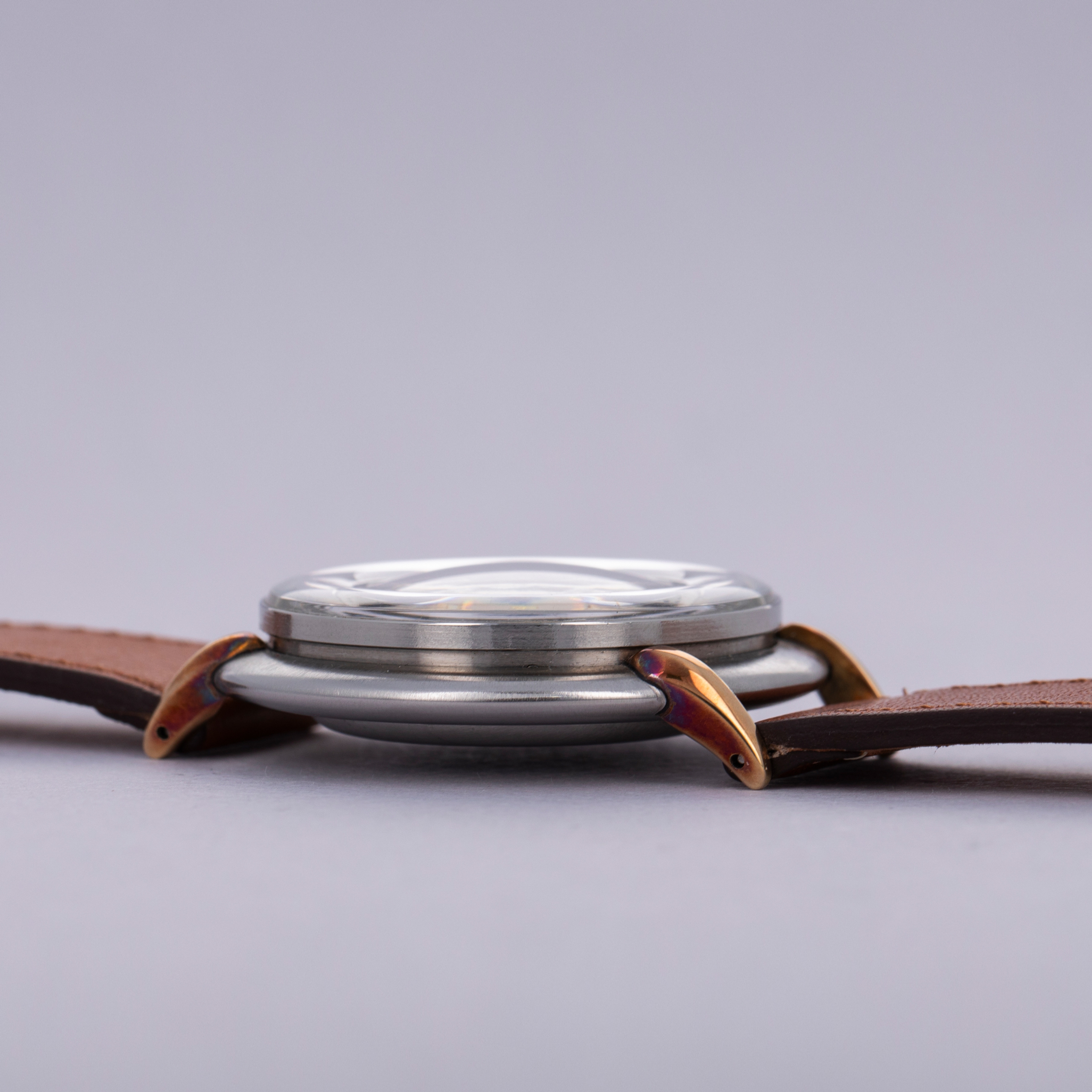 Beginning life in 1860, Juvenia can trace their origins to Saint-Imier in Switzerland after its founding by Jacques Didisheim-Goldschmidt. One of the few watchmakers to enjoy uninterrupted production since its founding, Juvenia have created a slew of timepieces best known for avant-garde designs, unorthodox constructions and unusual displays, of which the Arithmo that we have here features. Launched in 1945 to aid its wearer in performing calculations through its slide rule bezel, the Arithmo boasts a hulking (for the time) 42mm stainless steel construction with 18kt gold lugs. Boasting golden accents on its information-dense silver dial to match its golden lugs, the Arithmo feeds into Juvenia’s history as the creator of several wonderful and whacky timepieces that have come to symbolize the brand’s unique history.