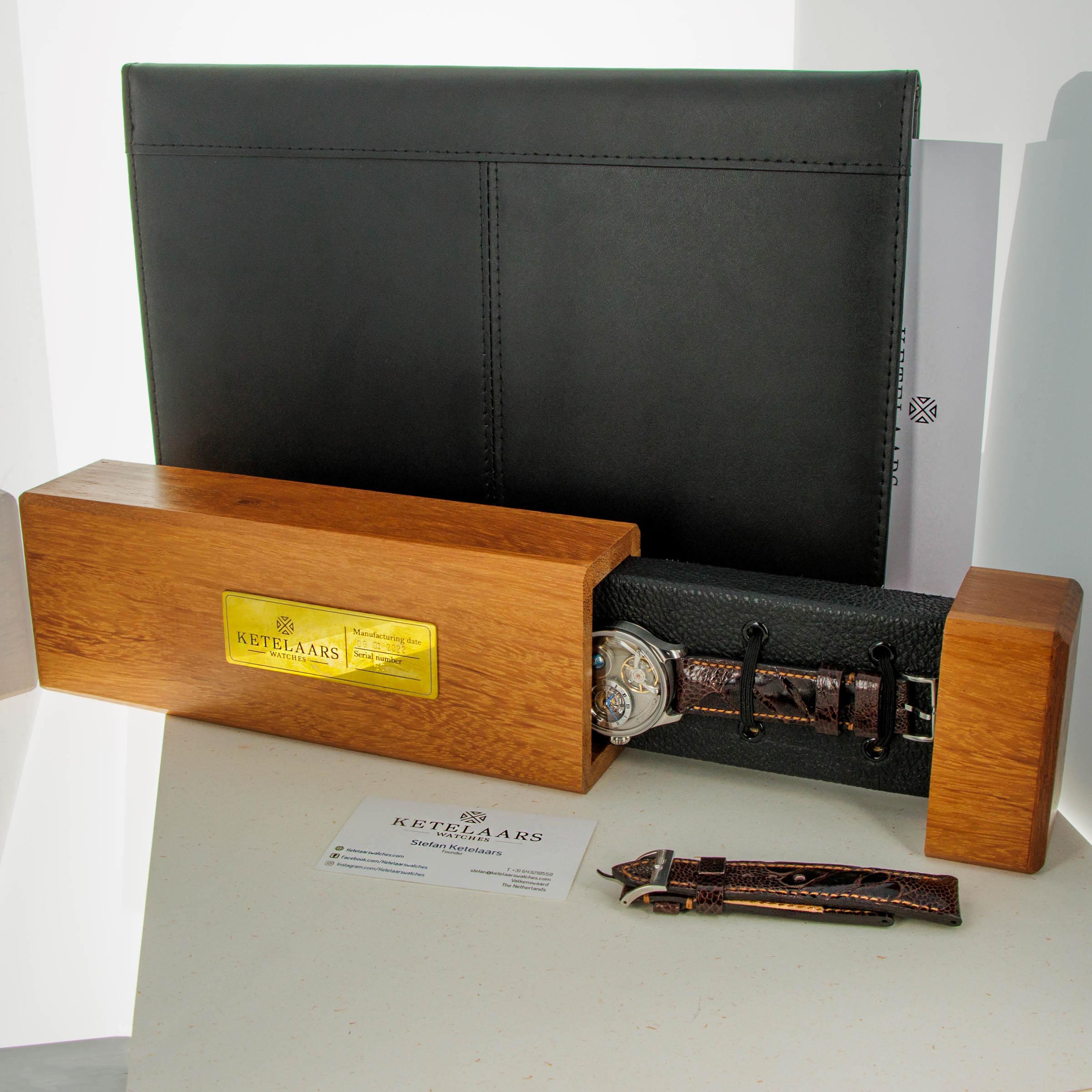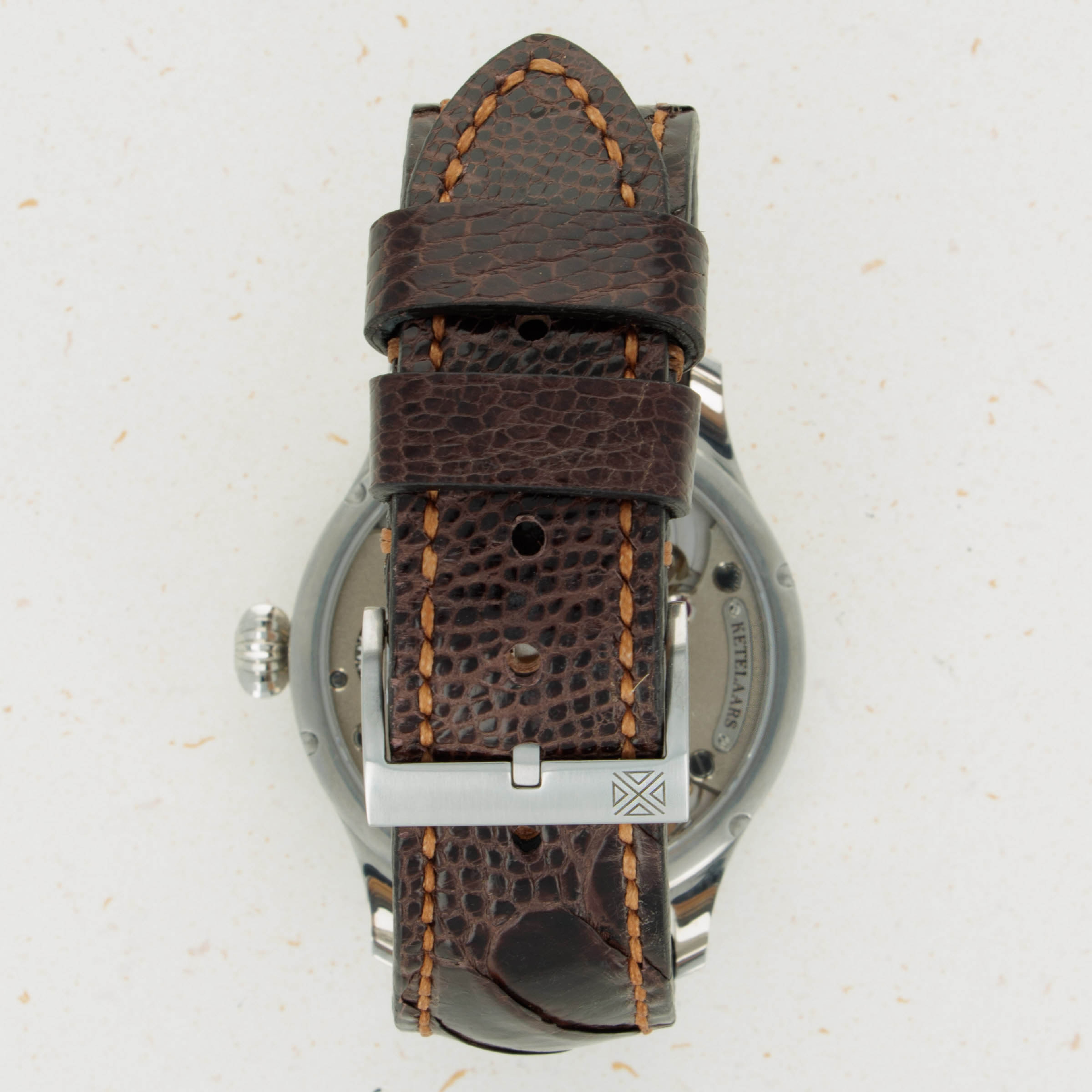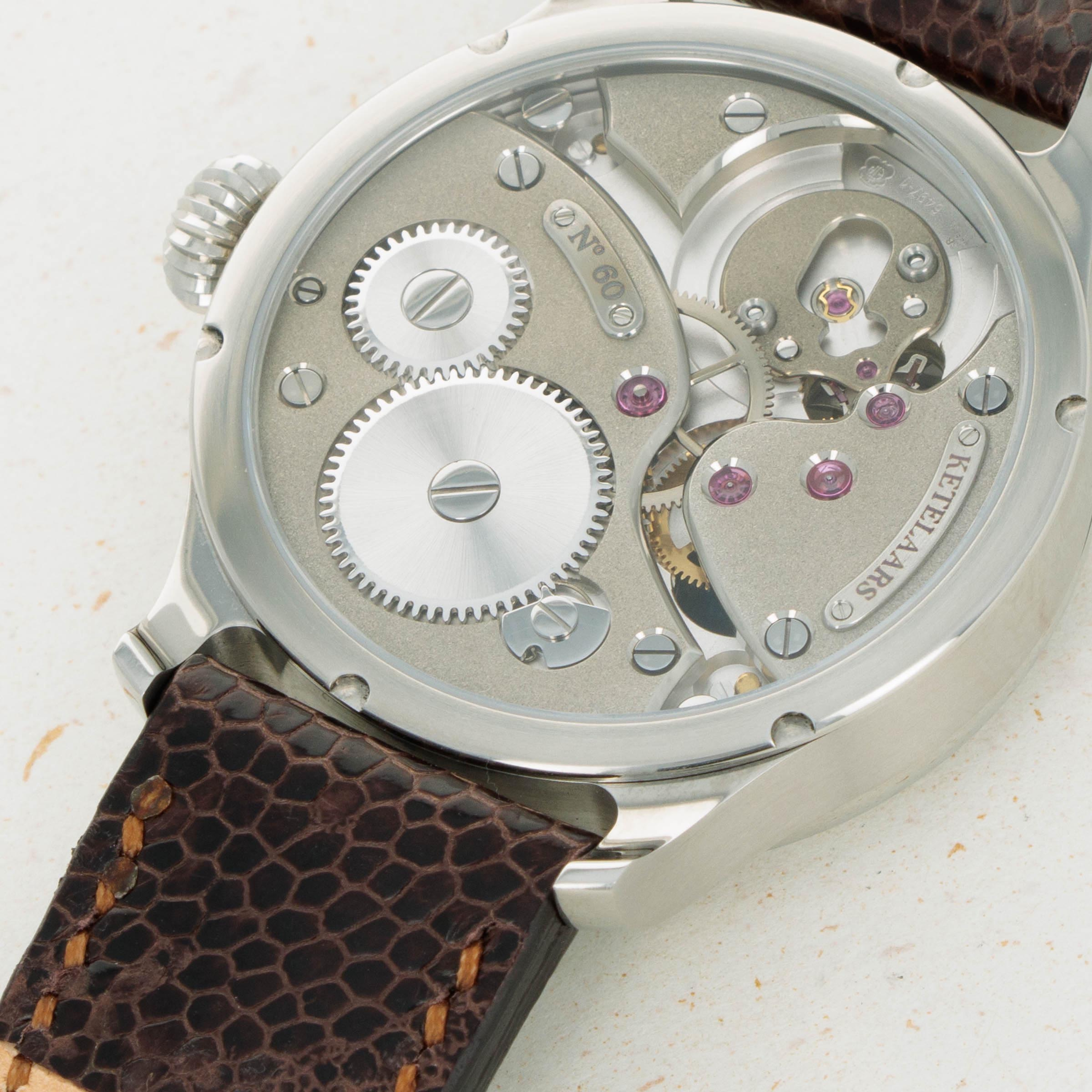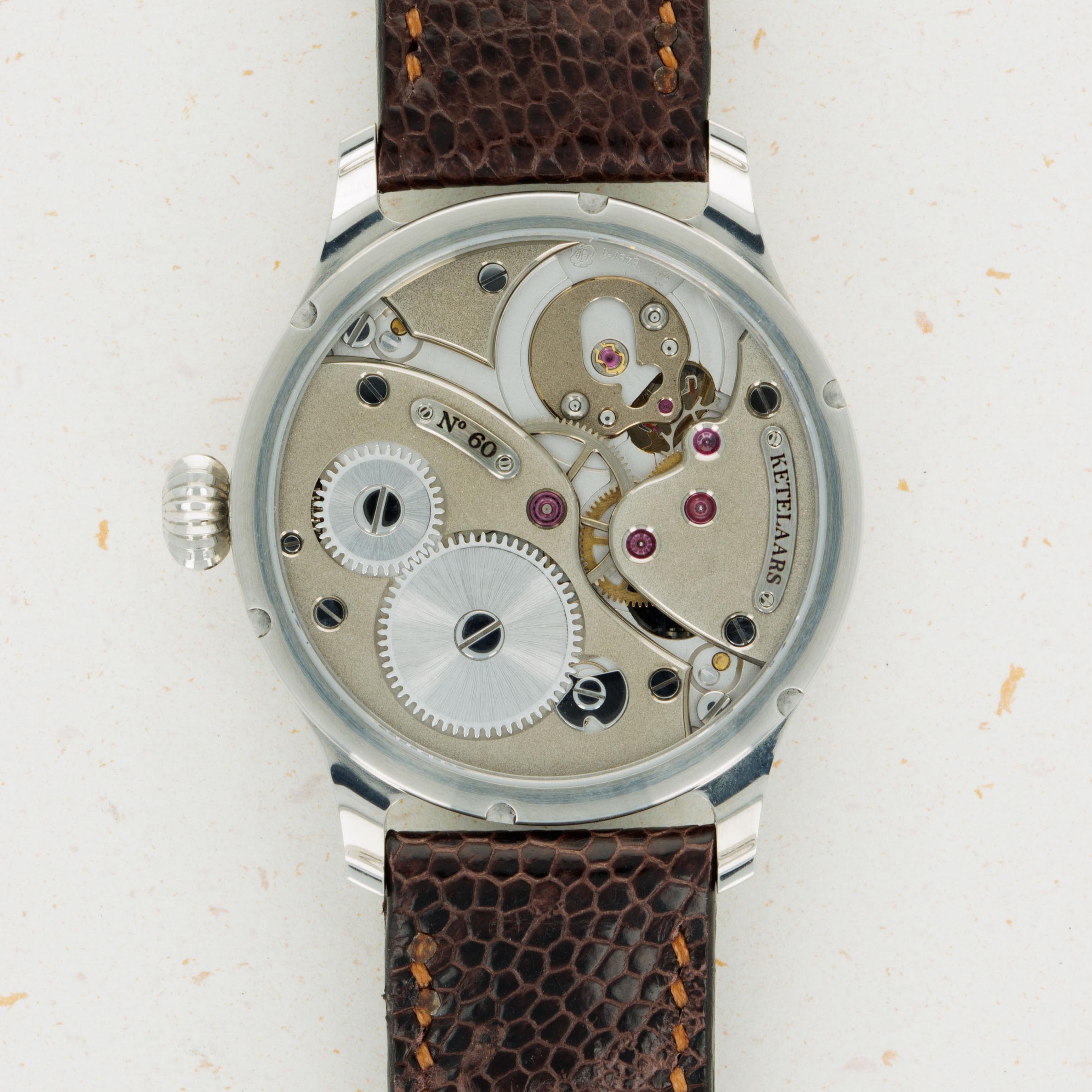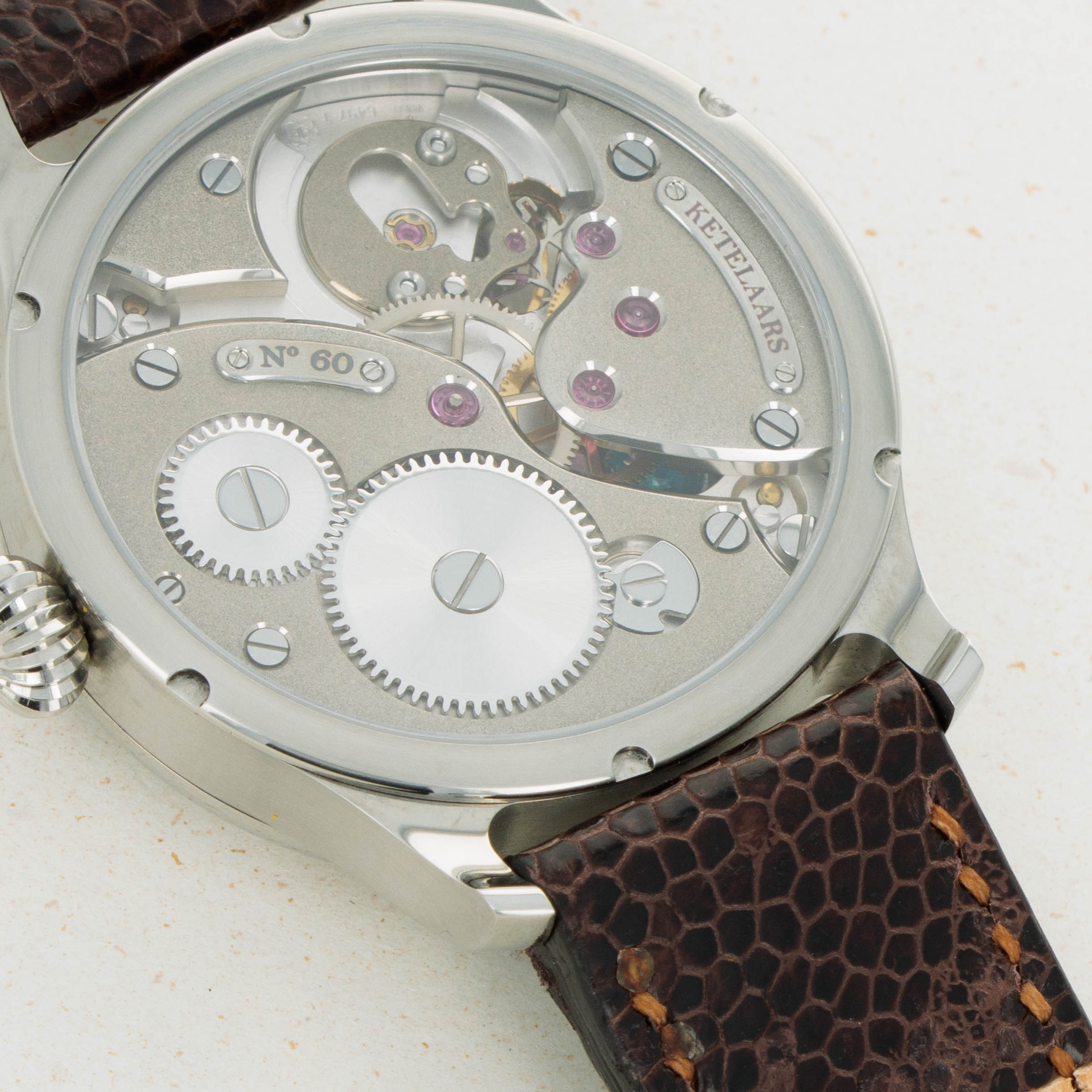 Retaining the essence of the ETA cal. 6497's architecture, Ketelaars have only given the movement deeper anglage across its bridges and more pronounced countersinking for the screws and jewels.