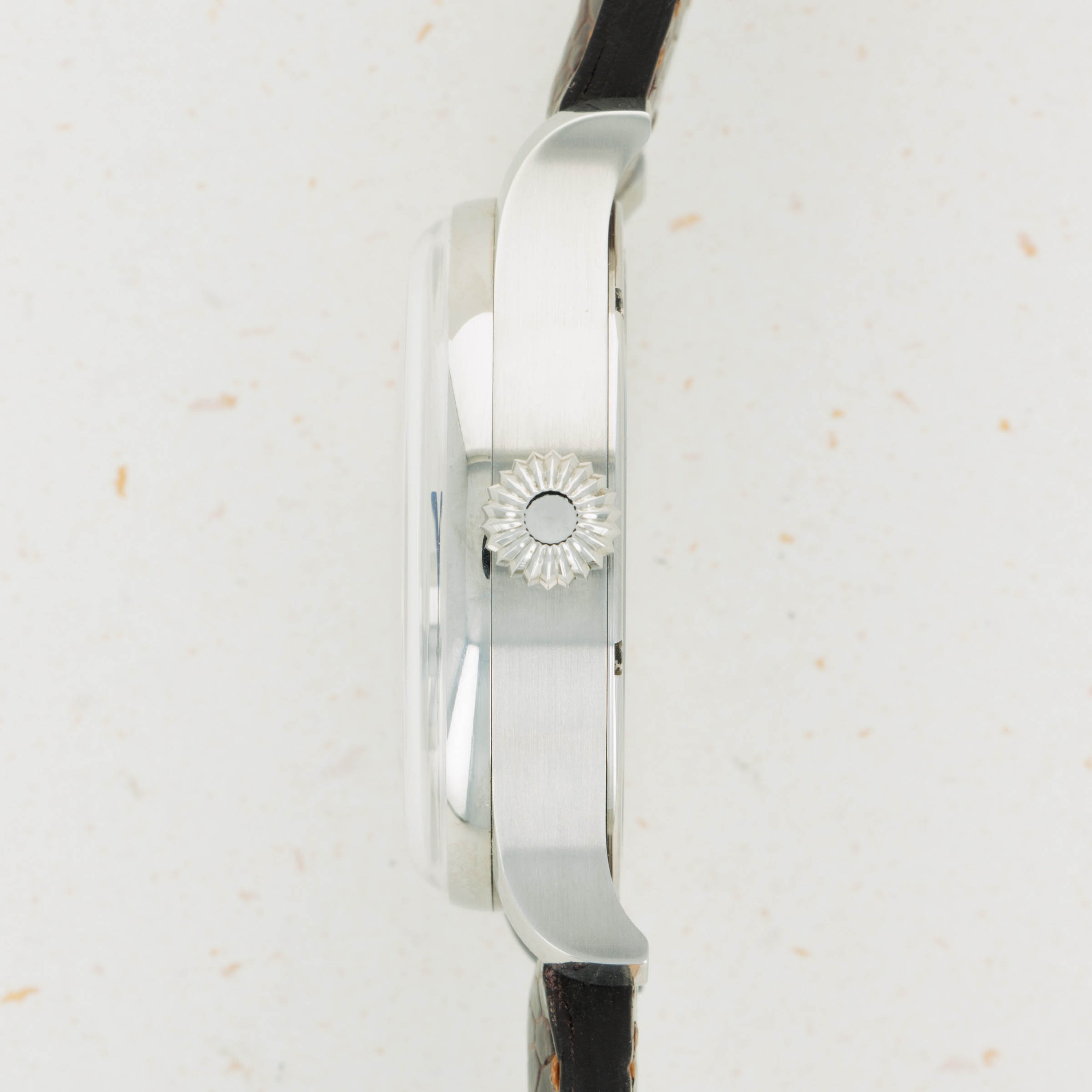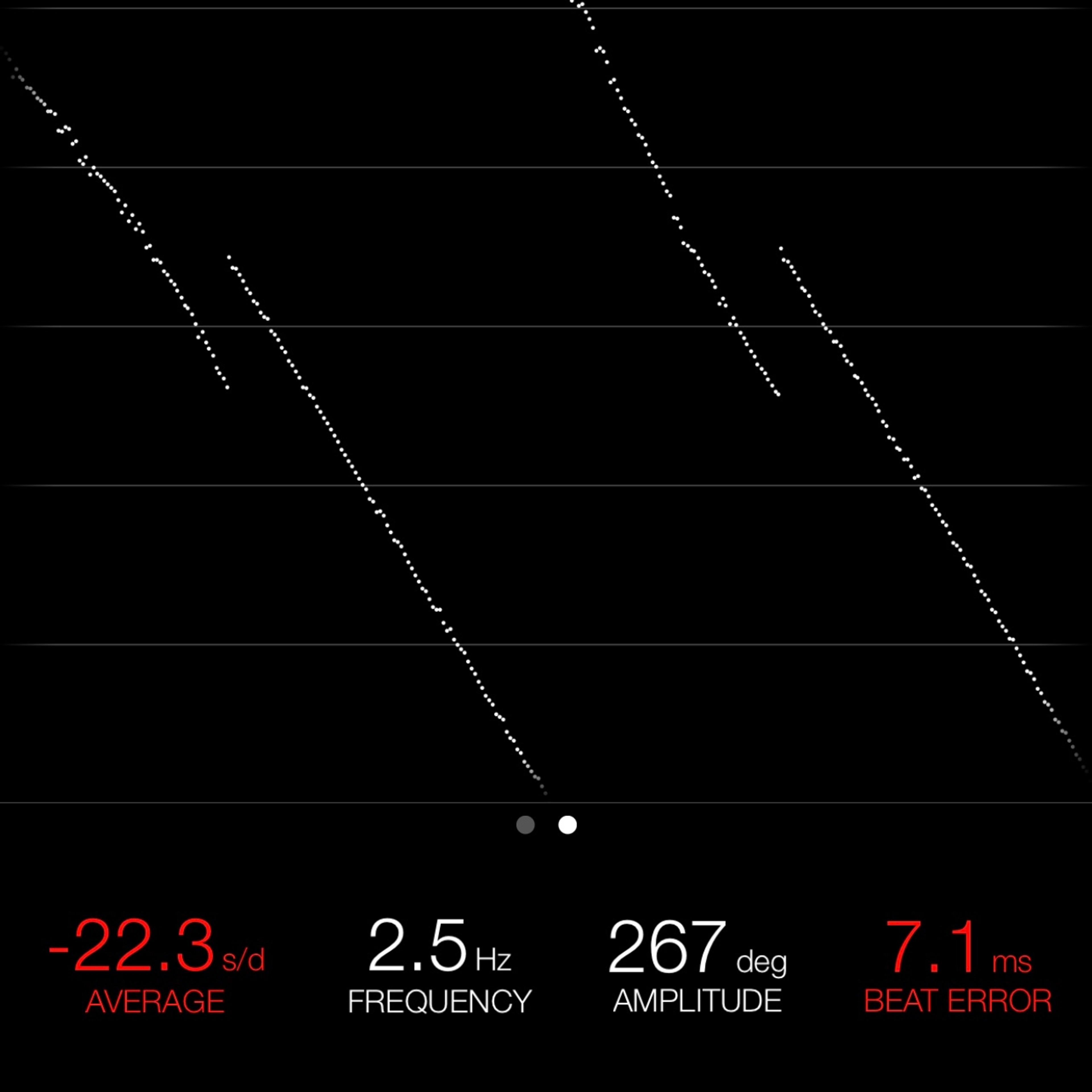 This reading was taken (crown down) with a ONEOF Accuracy Boutique Edition timing machine at time of cataloging. It is provided as a courtesy only, and shall not be construed as a warranty or guarantee of any kind. Please refer to our terms and conditions of sale for more information.