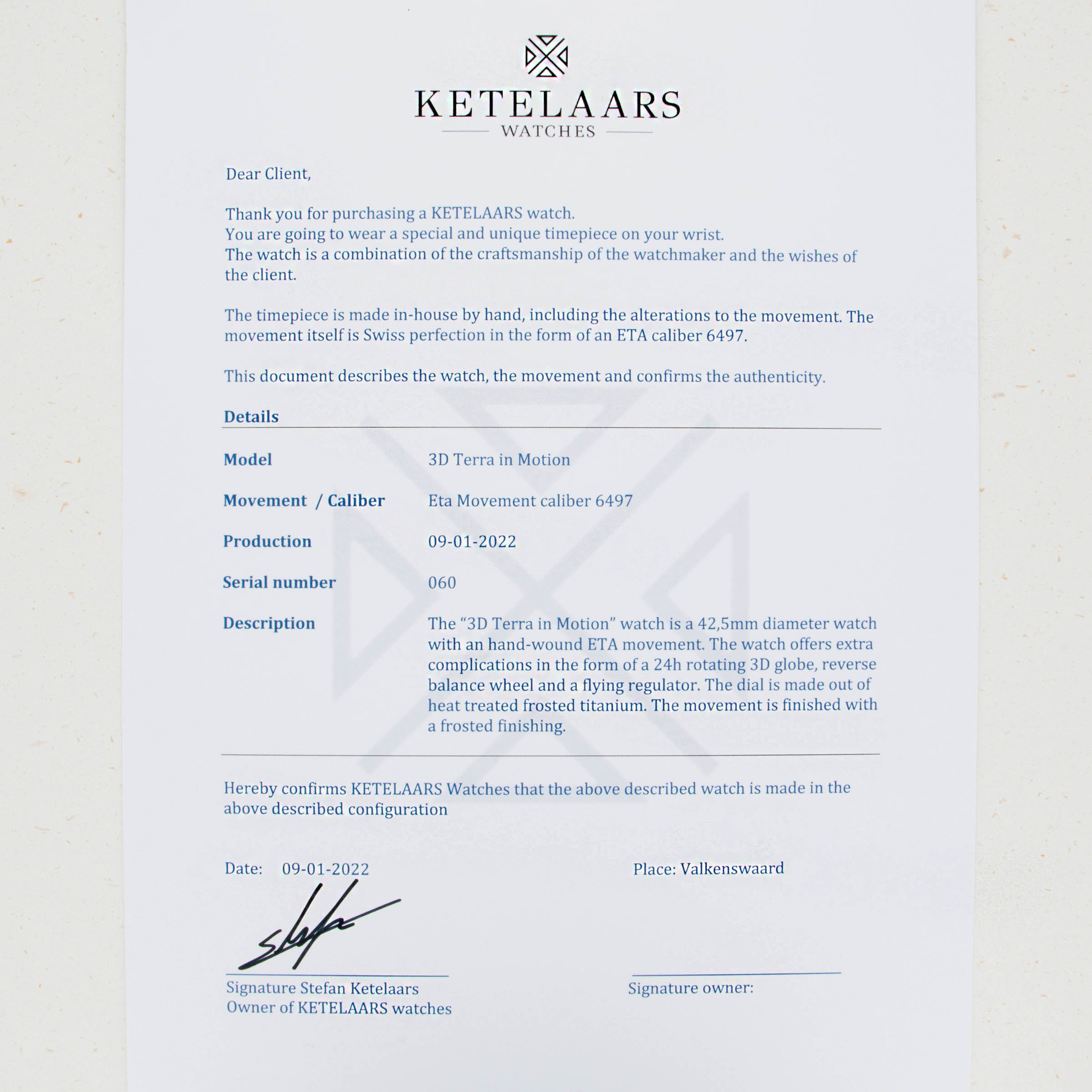 Founded by young watchmaker Stefan Ketelaars, his Netherlands-based eponymous brand is perhaps one of the most exciting watchmakers in the independent scene. Using modified ETA movements and Stefan’s own talents as a watchmaker, Ketelaars watches are some of the most unique timepieces on the market. Launched in 2020 as the brand’s second collection, the watch we have here is the 3D Terra in Motion. While watchmakers will typically modify the back of their movements, Ketelaars leave the back of their movements relatively untouched and rework the dial side of the movement, giving their timepieces an entirely unique look and feel on the wrist. Perhaps most notably, the 3D Terra in Motion features a miniature Earth that rotates and acts as a day and night indicator. Furthermore, the