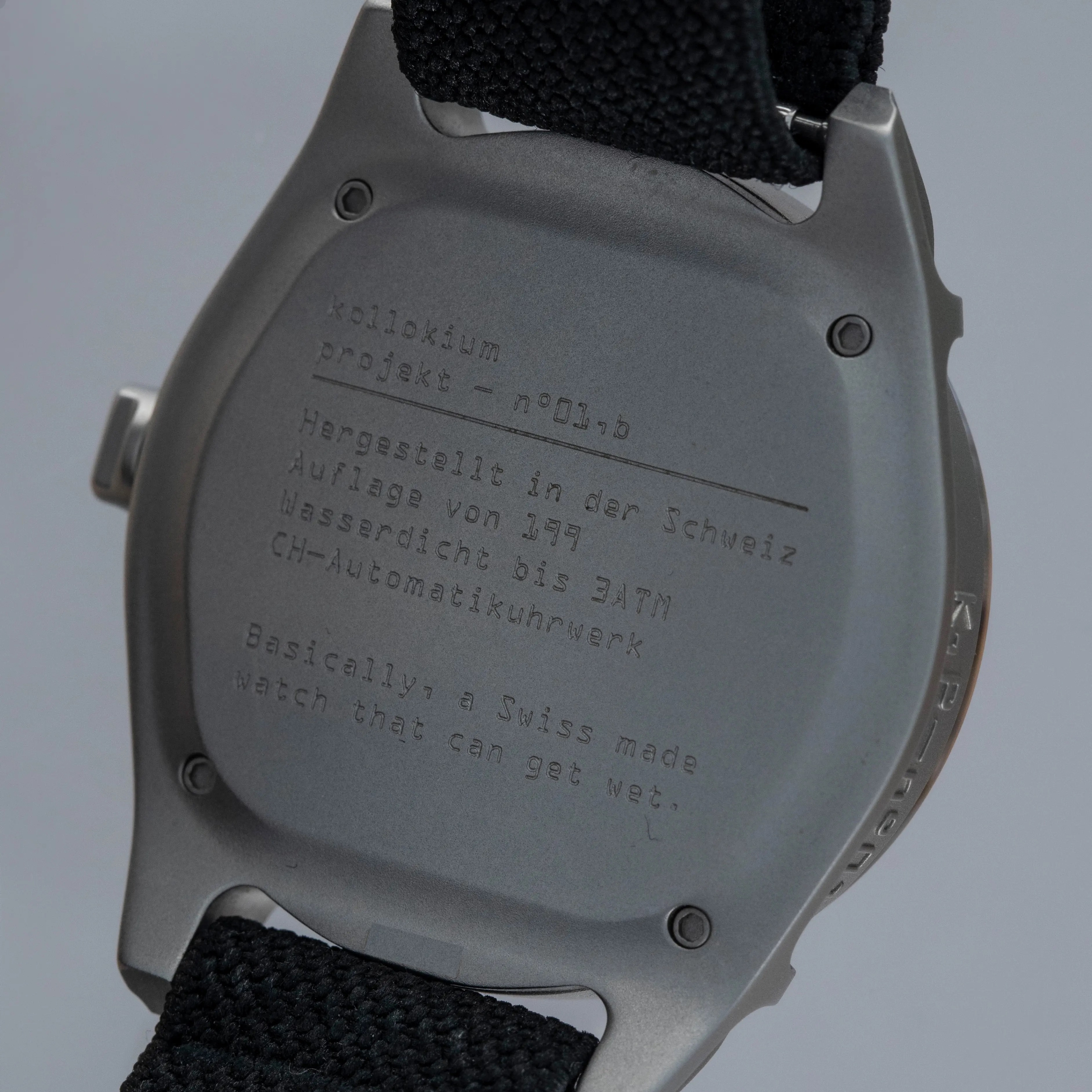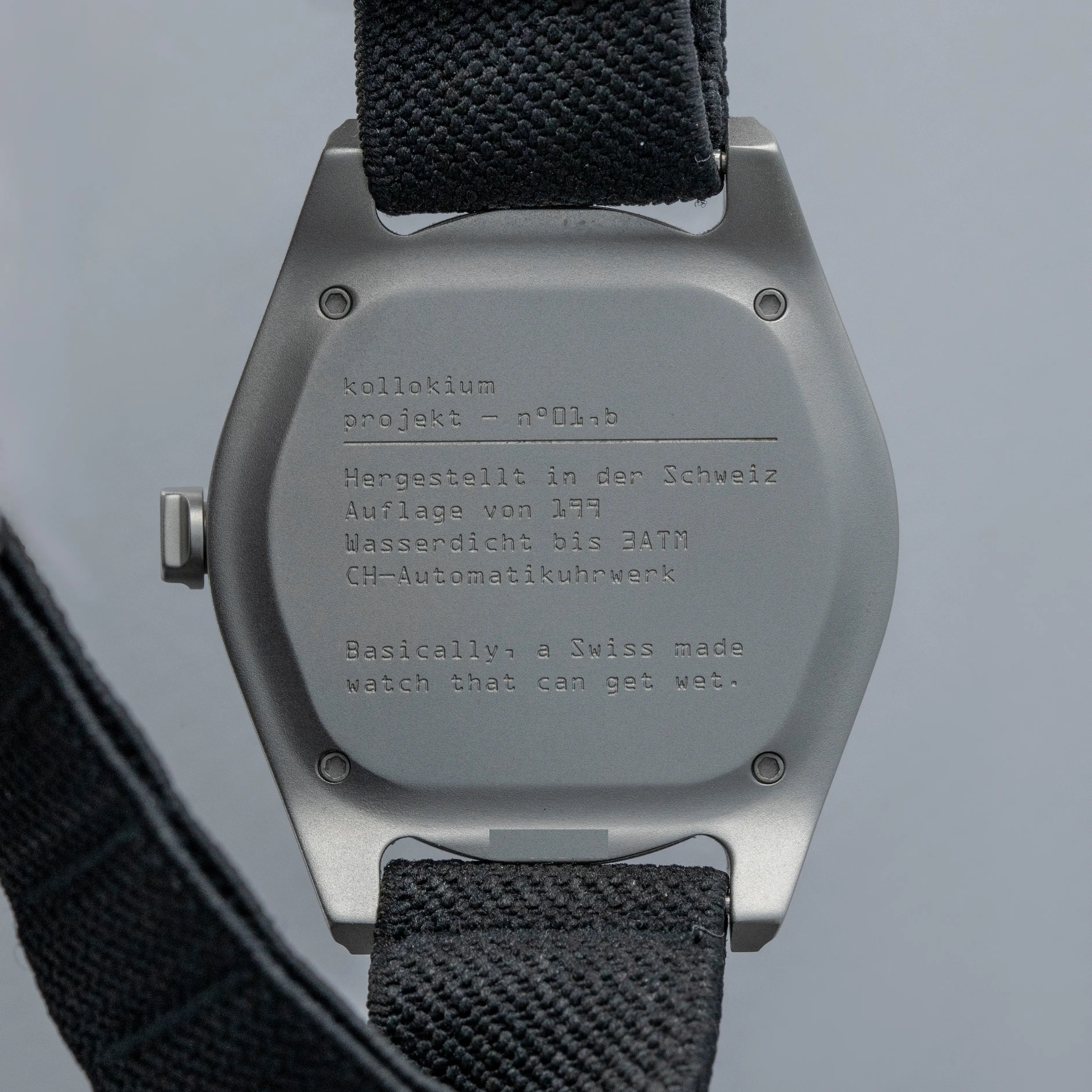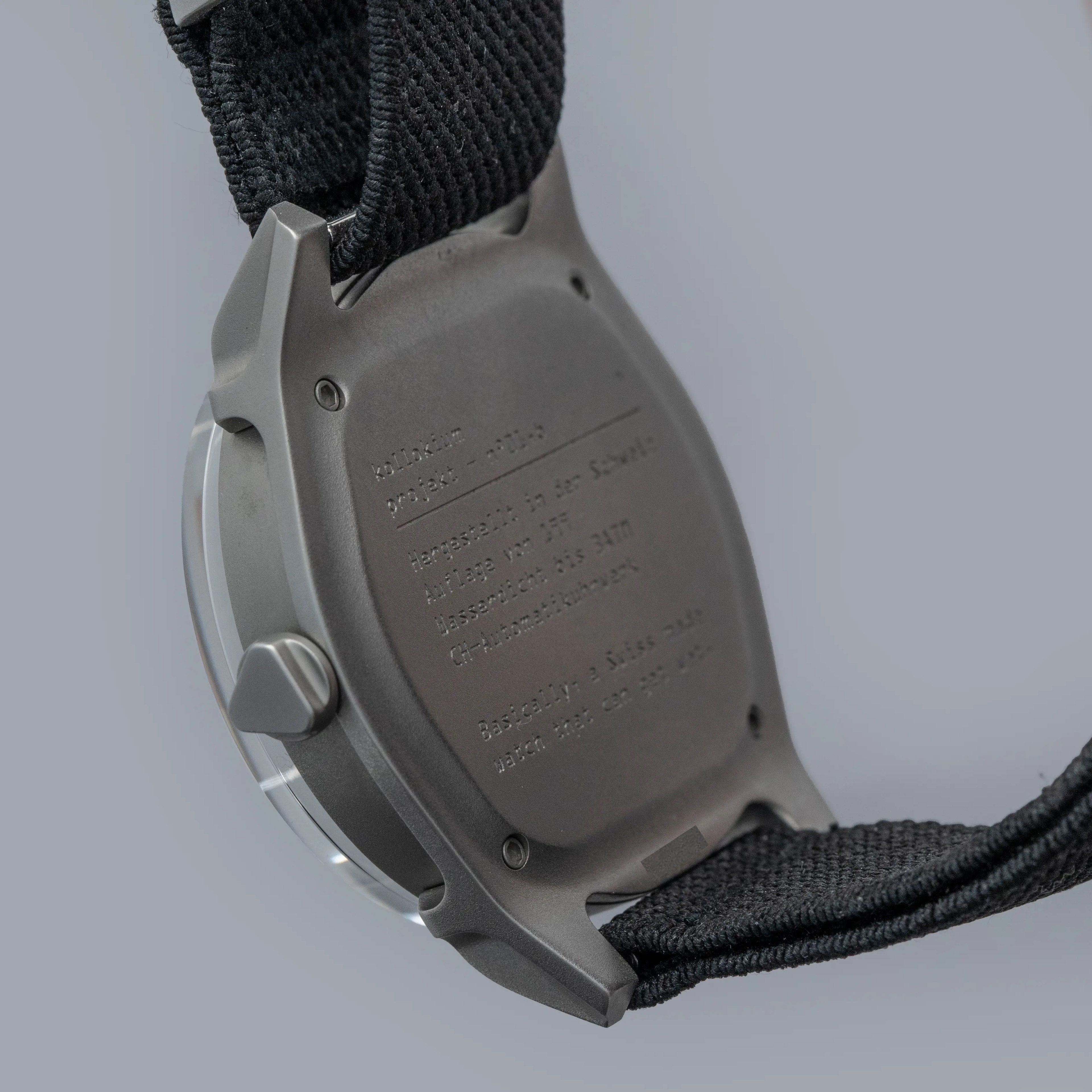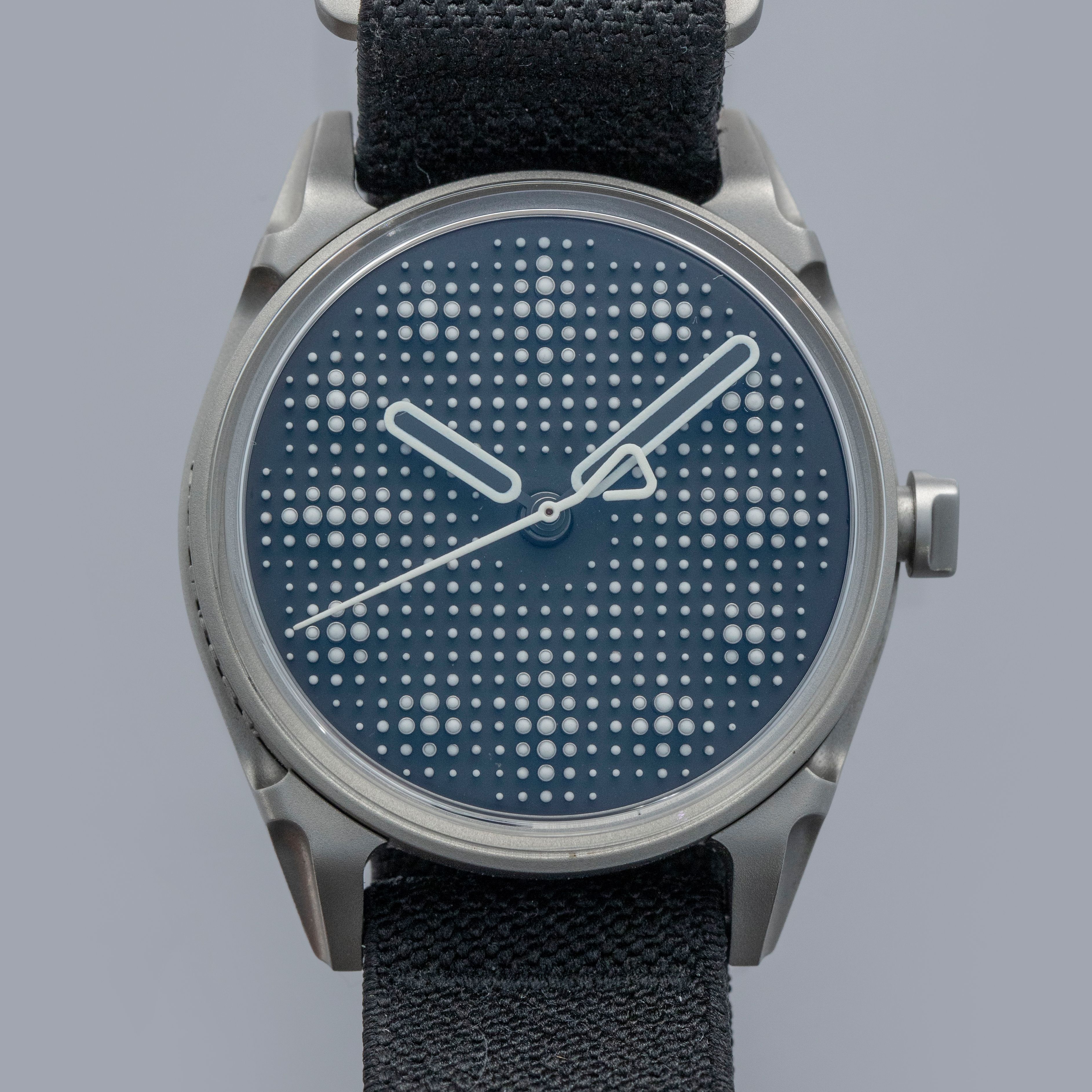 Boasting a wonderful die-cast two-part construction with a resulting sandblasted-like finish, the Projekt 01's case immediately sets it apart as a unique watch thanks to its shapely lugs and uniquely stepped midcase.