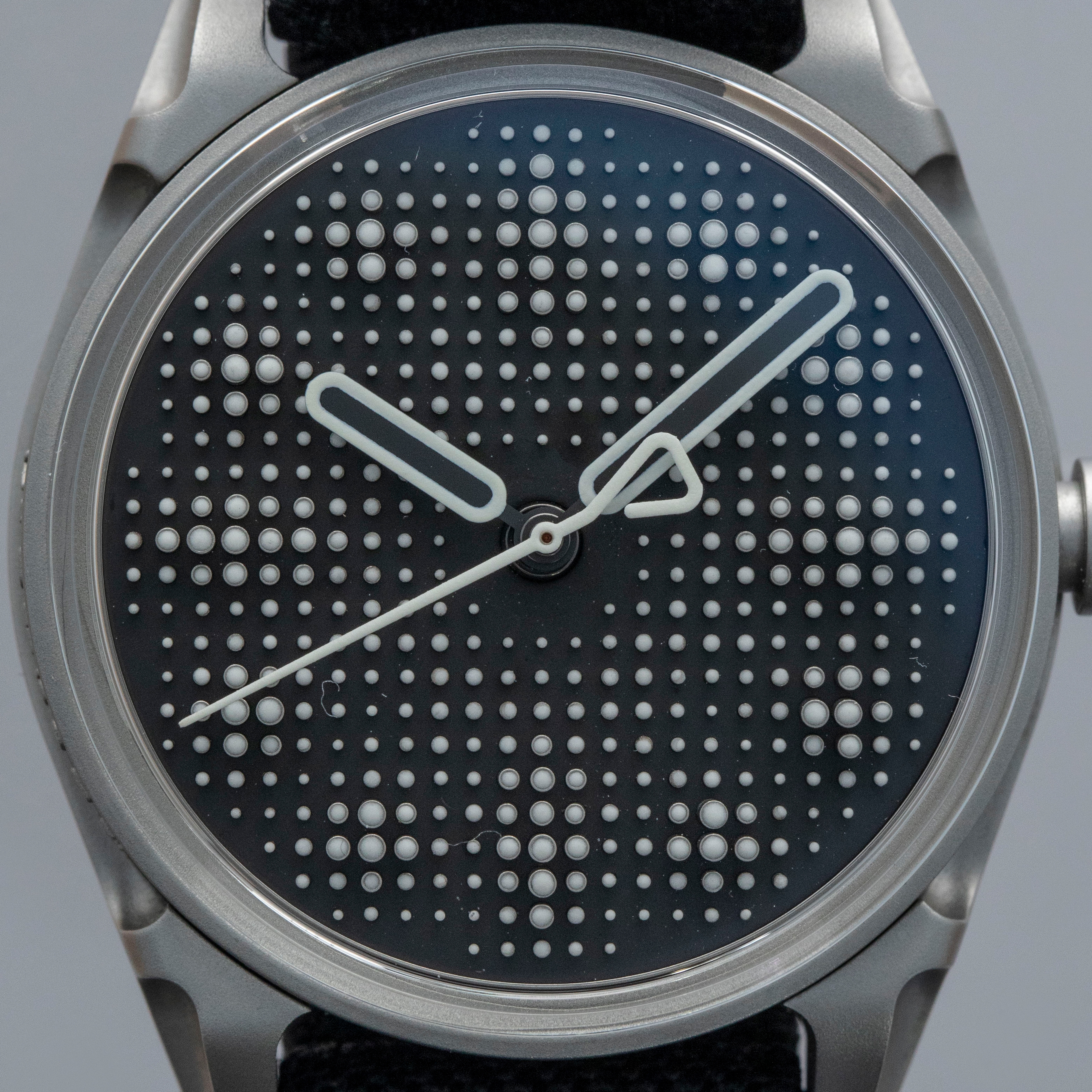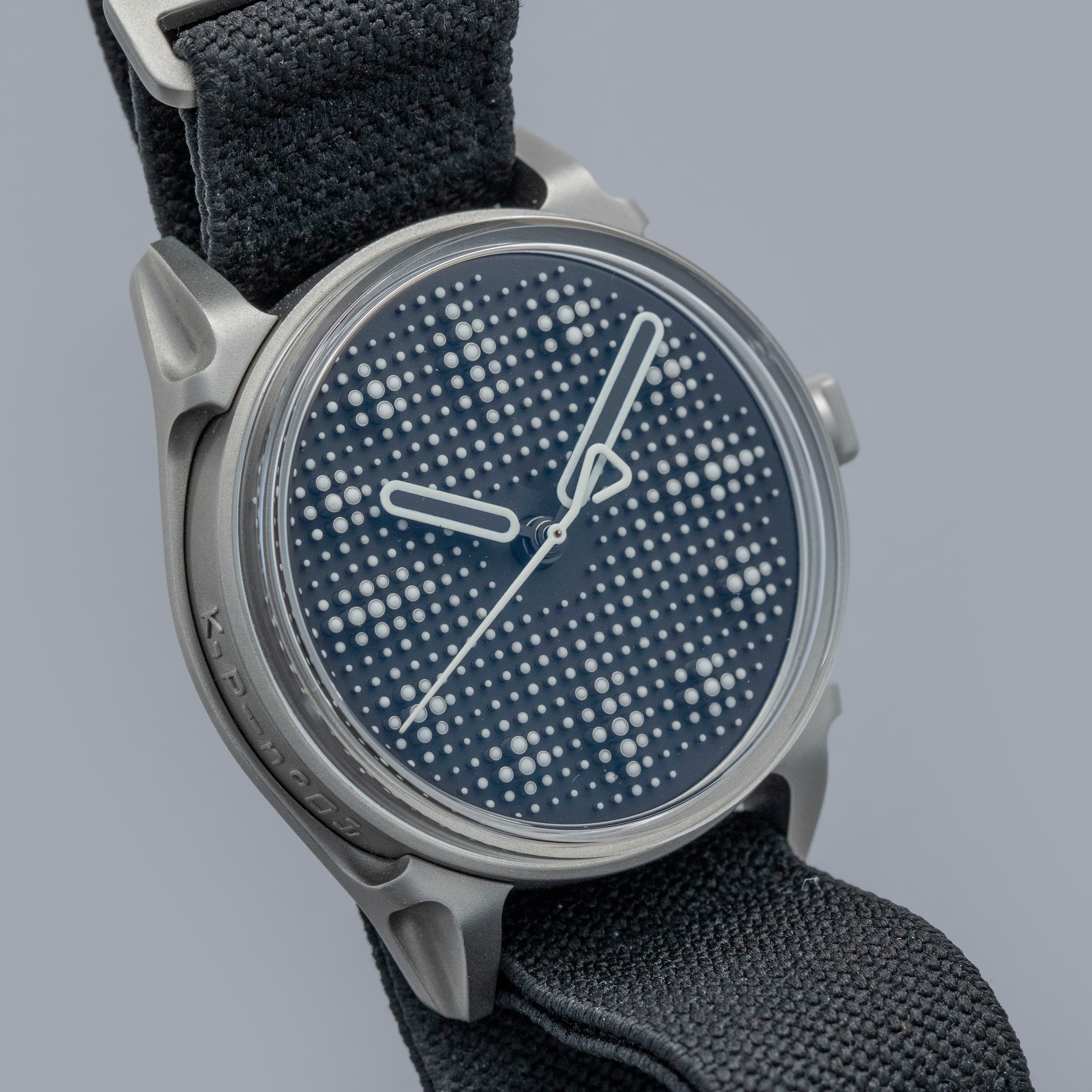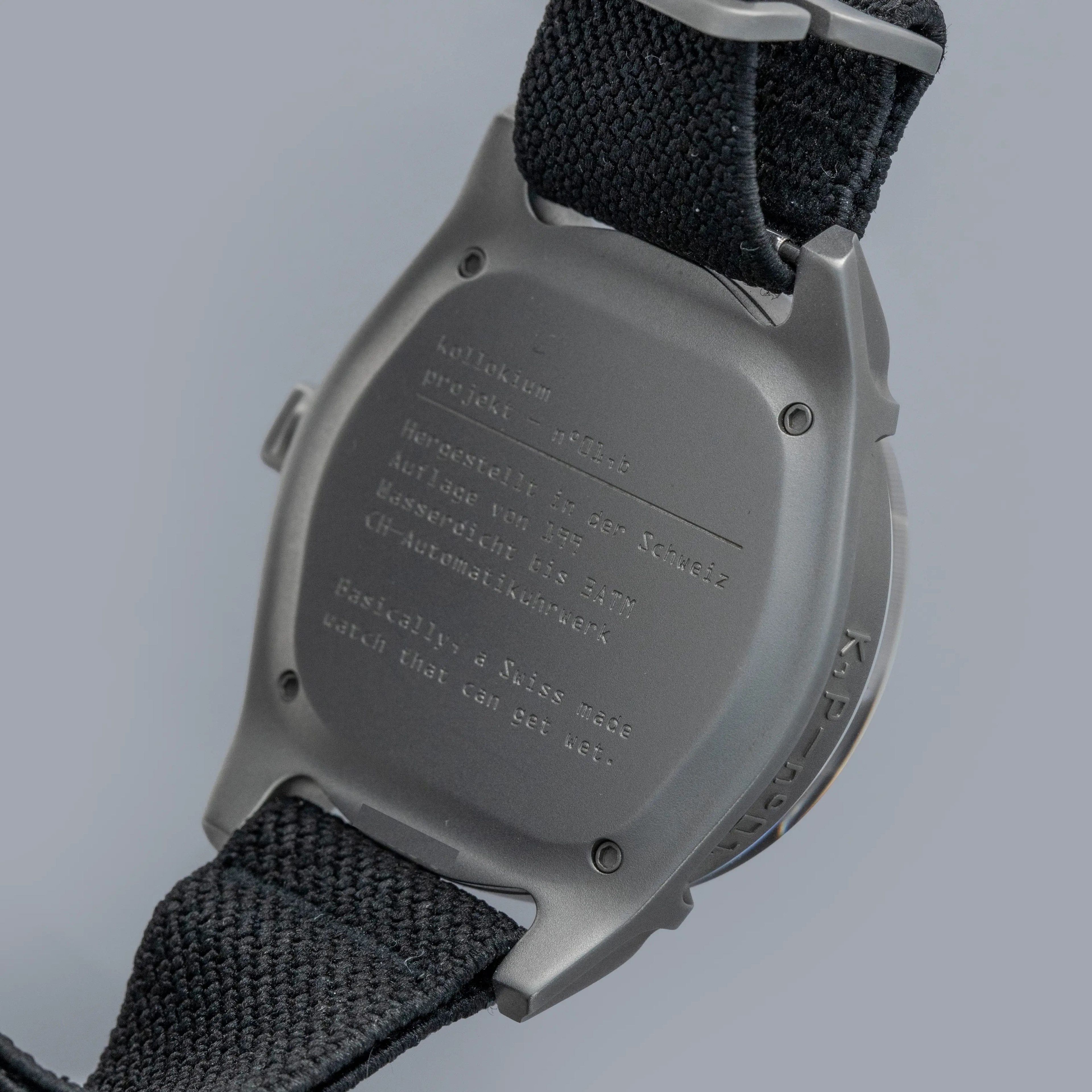Boasting a wonderful die-cast two-part construction with a resulting sandblasted-like finish, the Projekt 01's case immediately sets it apart as a unique watch thanks to its shapely lugs and uniquely stepped midcase.