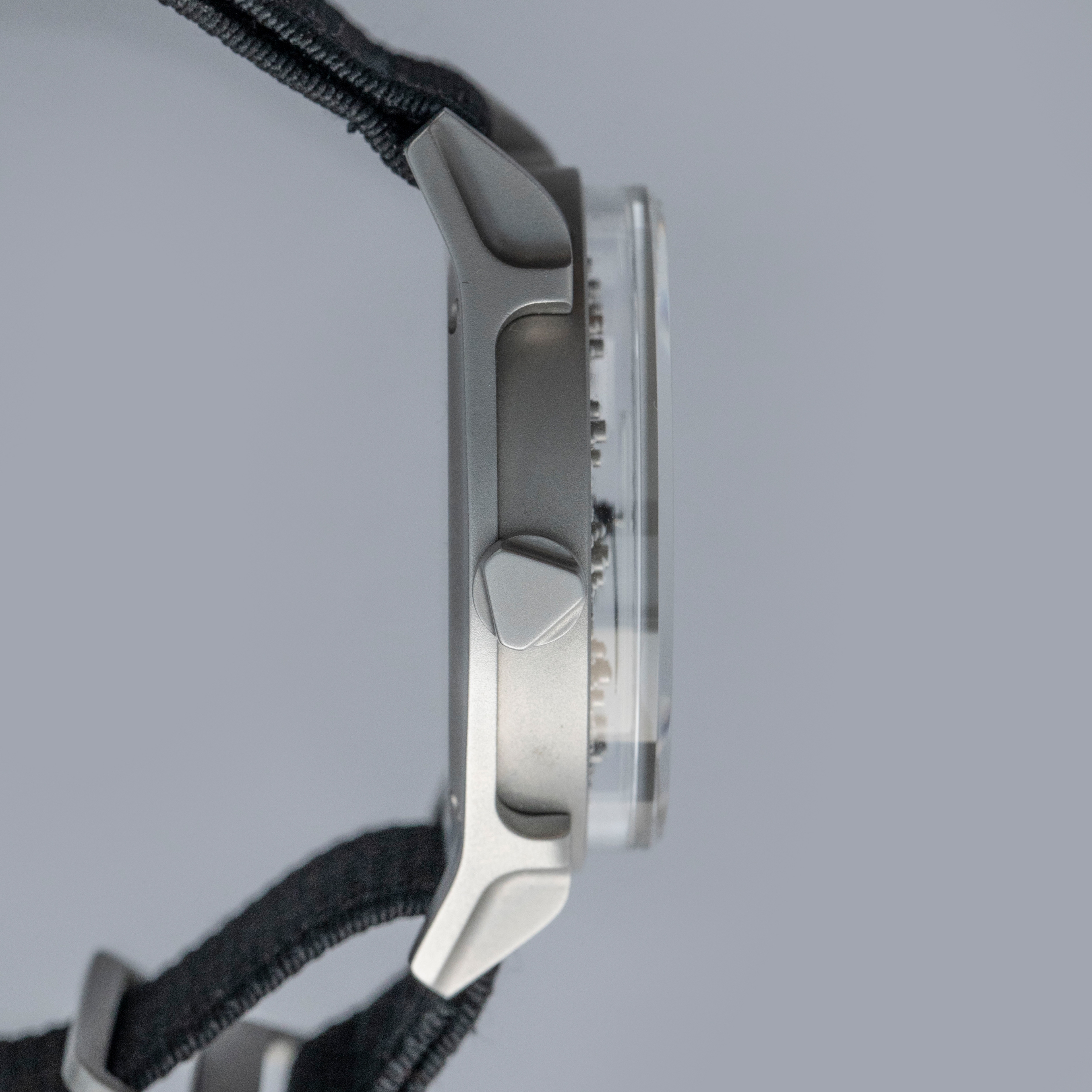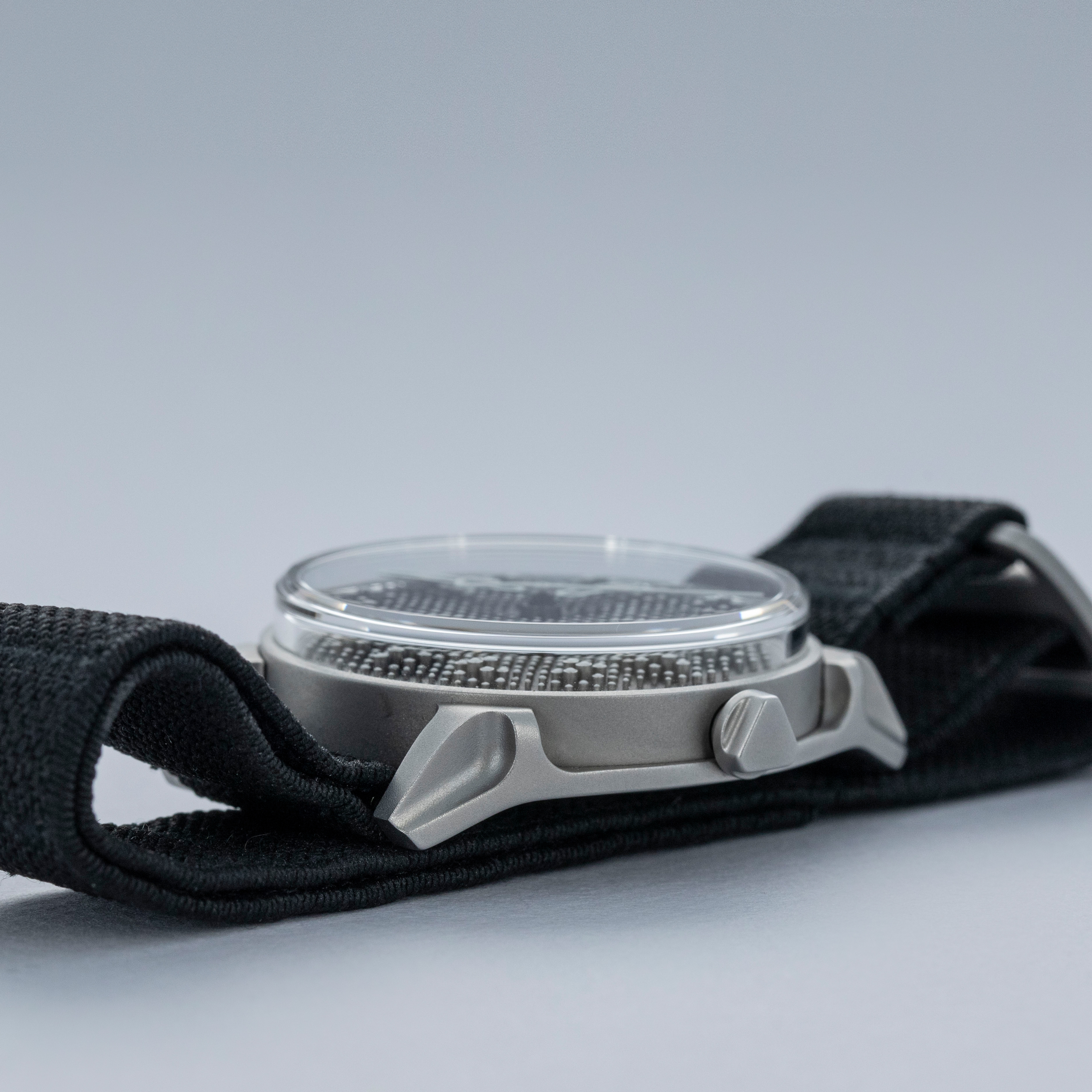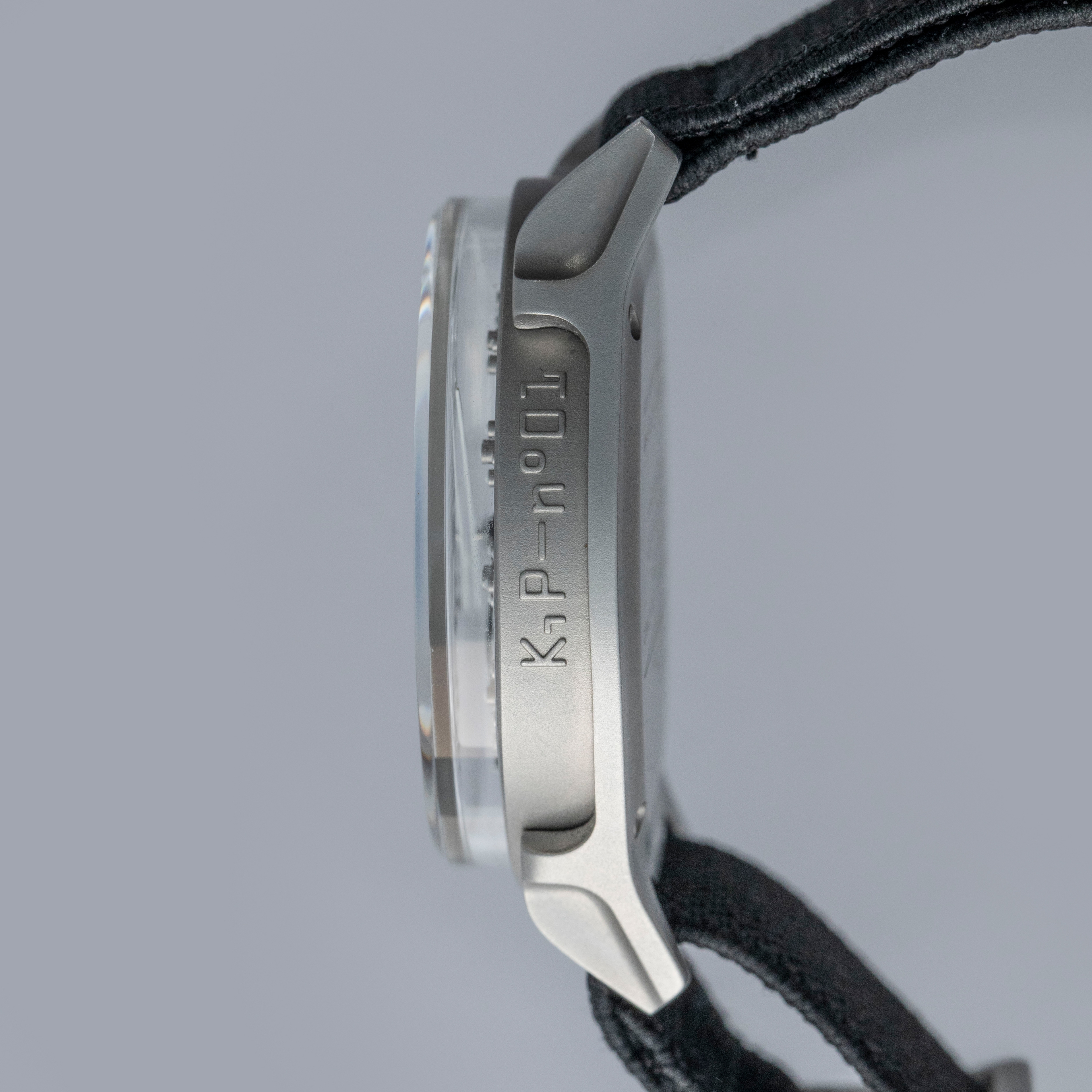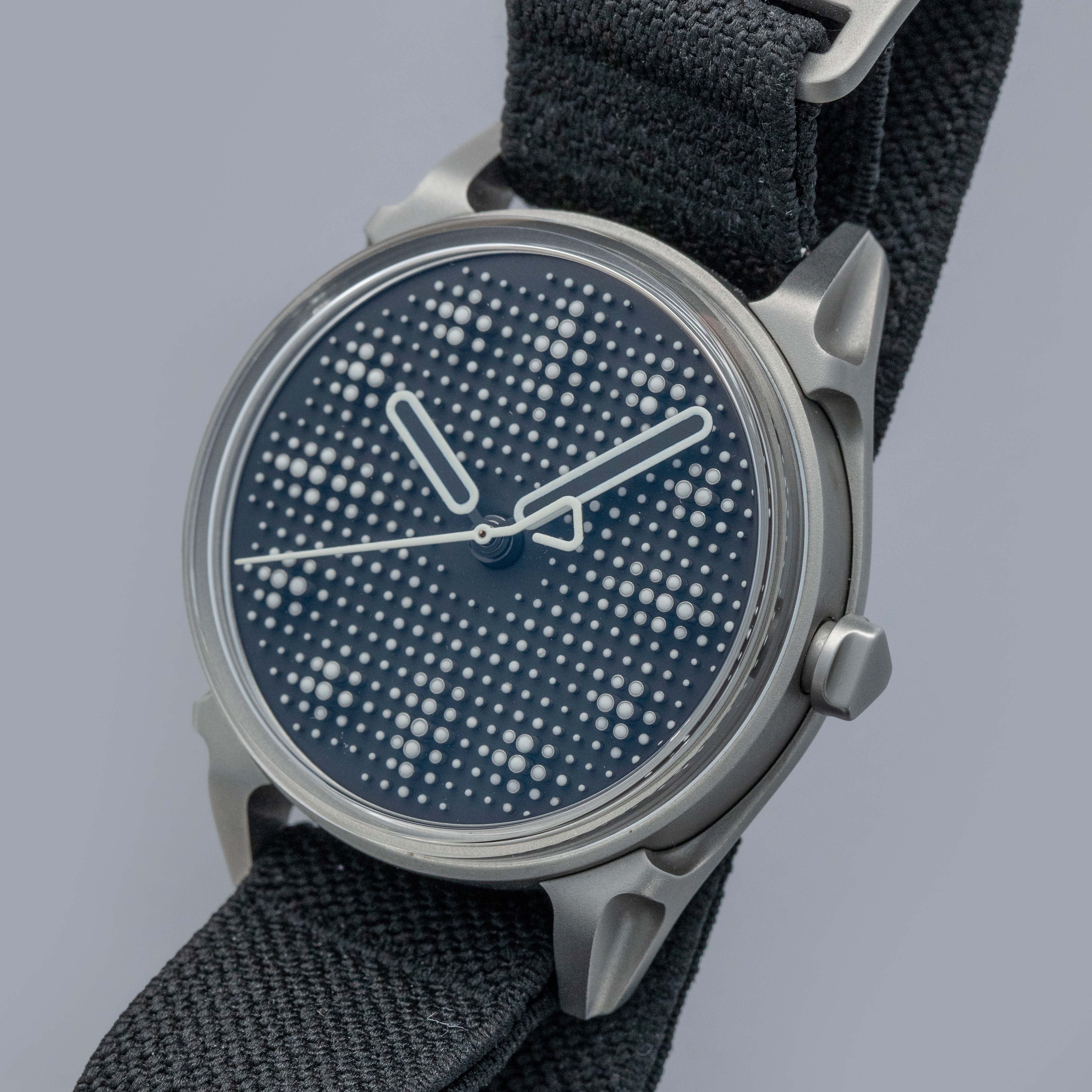 Boasting a wonderful die-cast two-part construction with a resulting sandblasted-like finish, the Projekt 01's case immediately sets it apart as a unique watch thanks to its shapely lugs and uniquely stepped midcase.